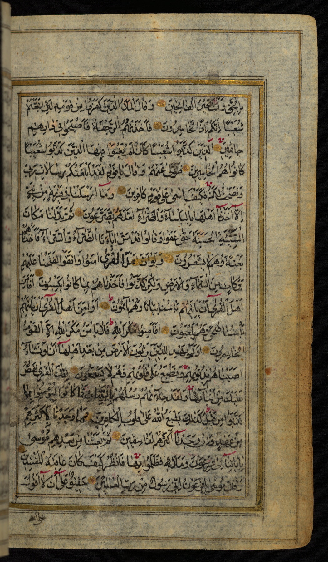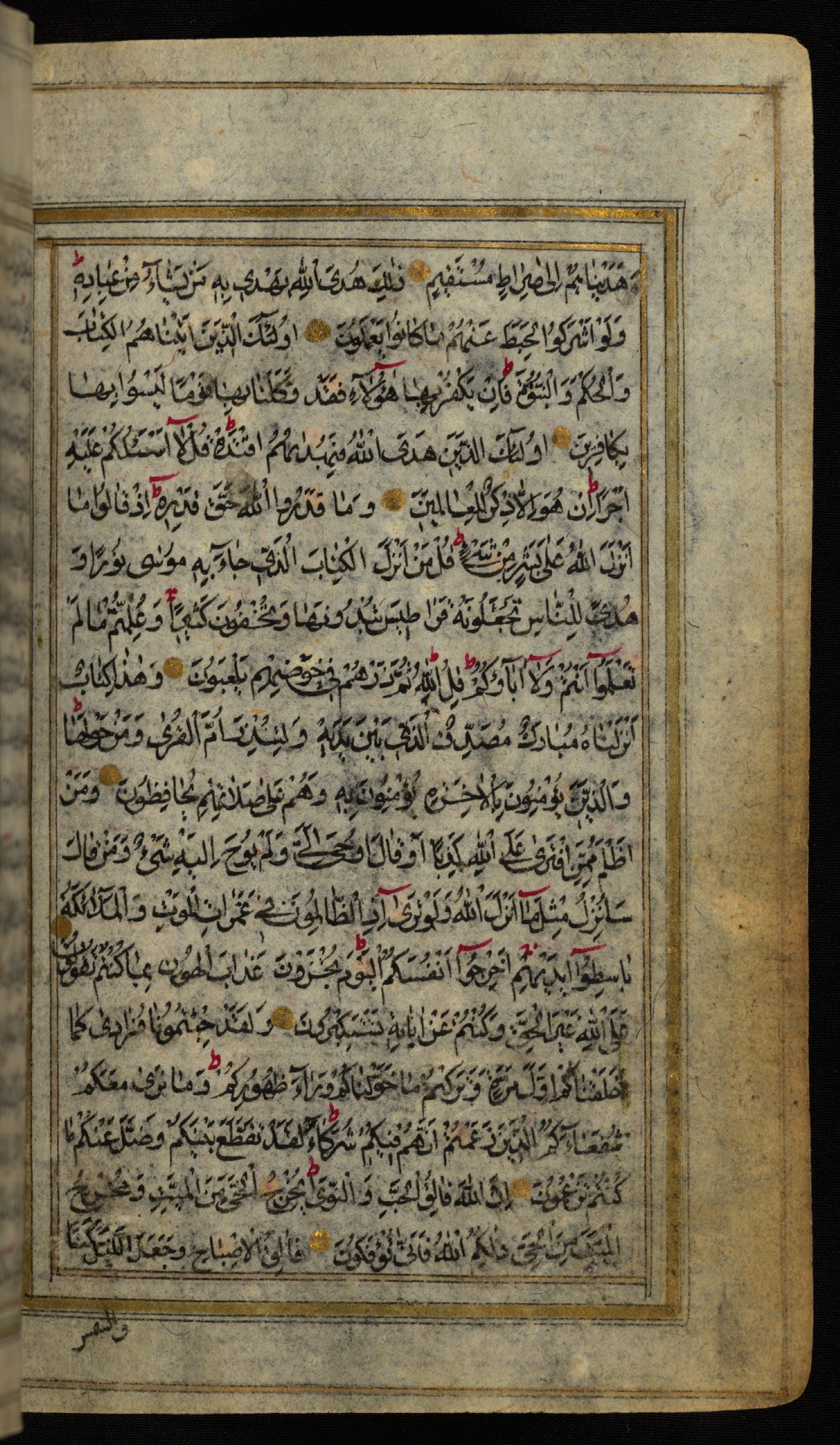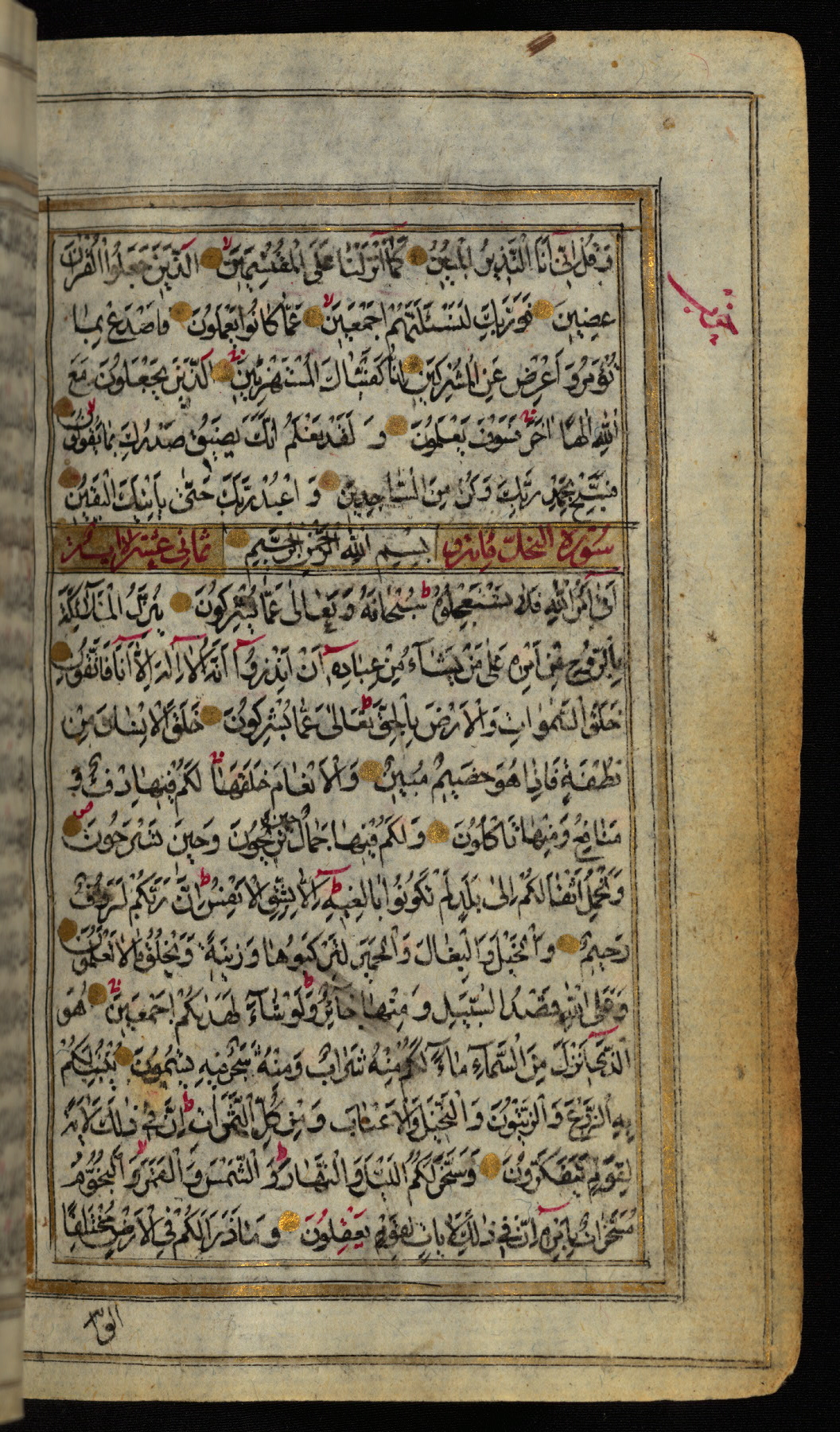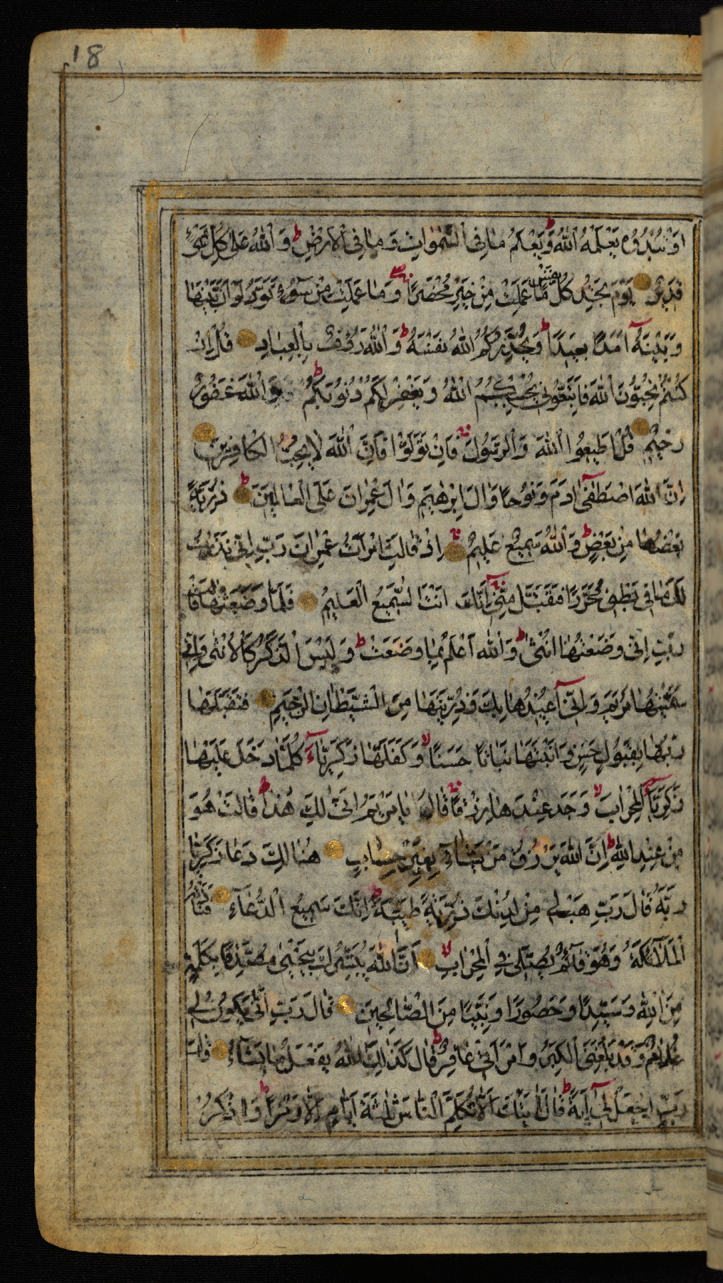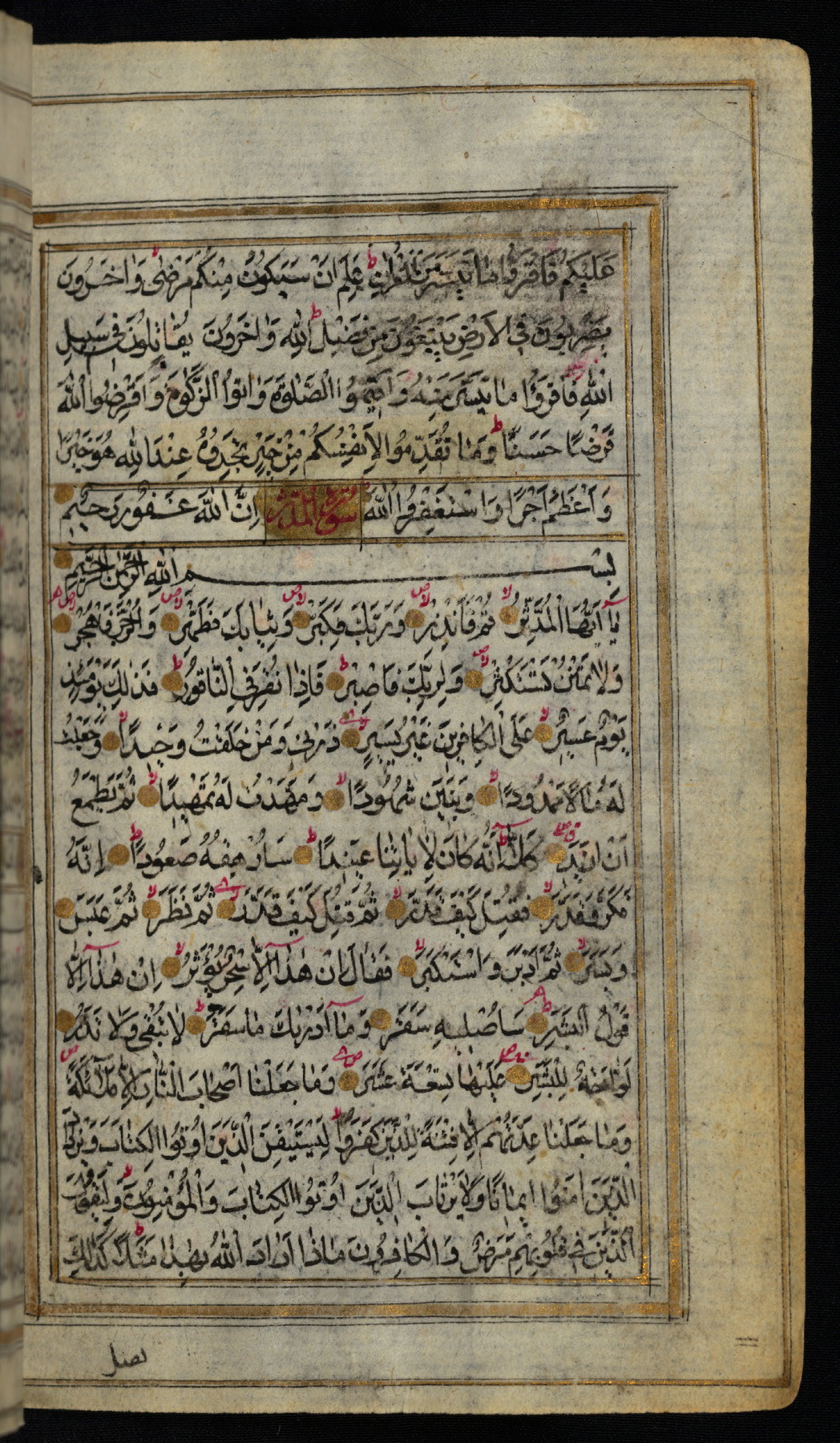 This small copy of the Qur'an was penned by an anonymous scribe in Iran in the thirteenth century AH / nineteenth century CE.