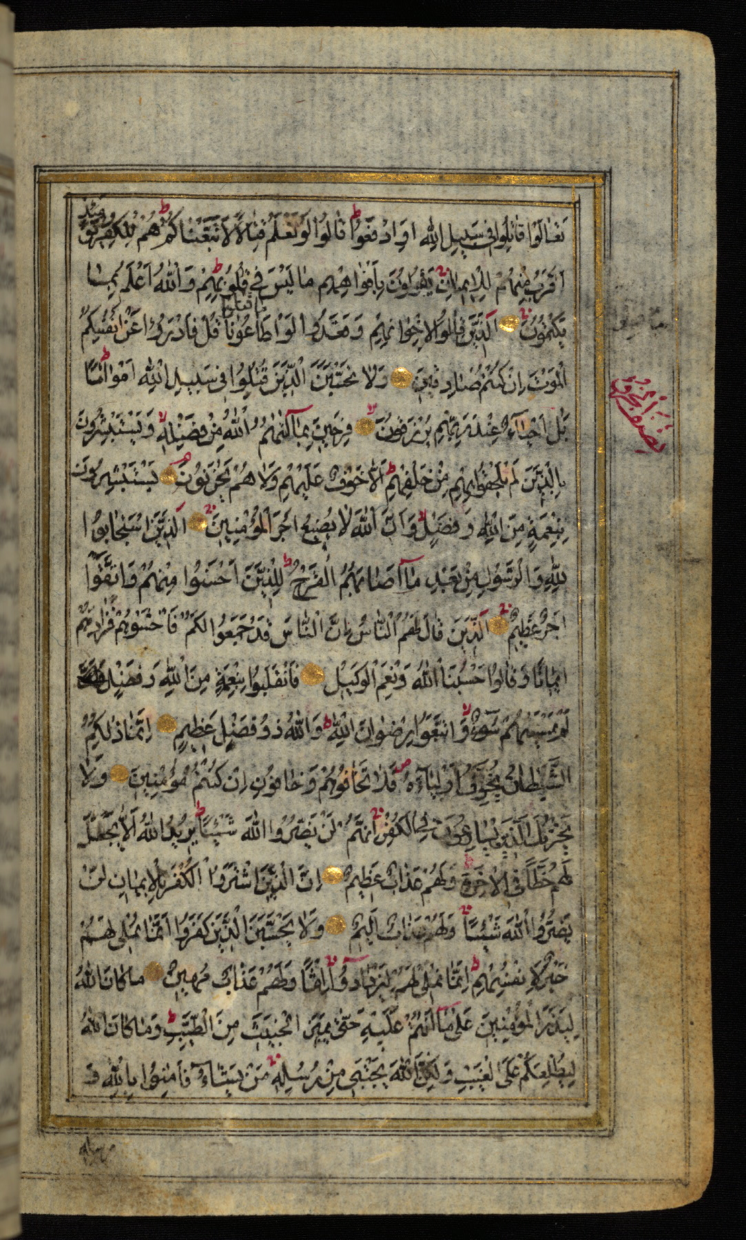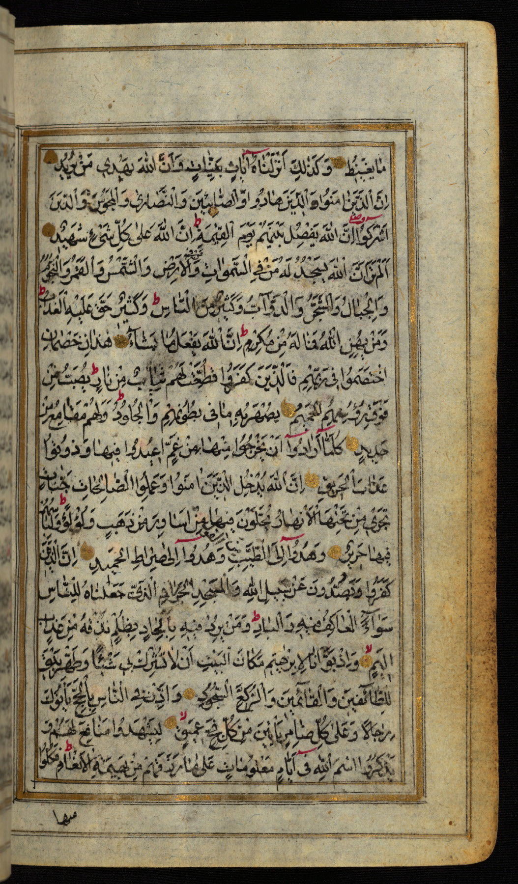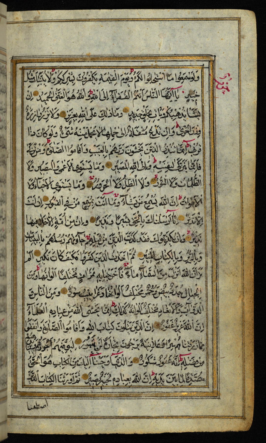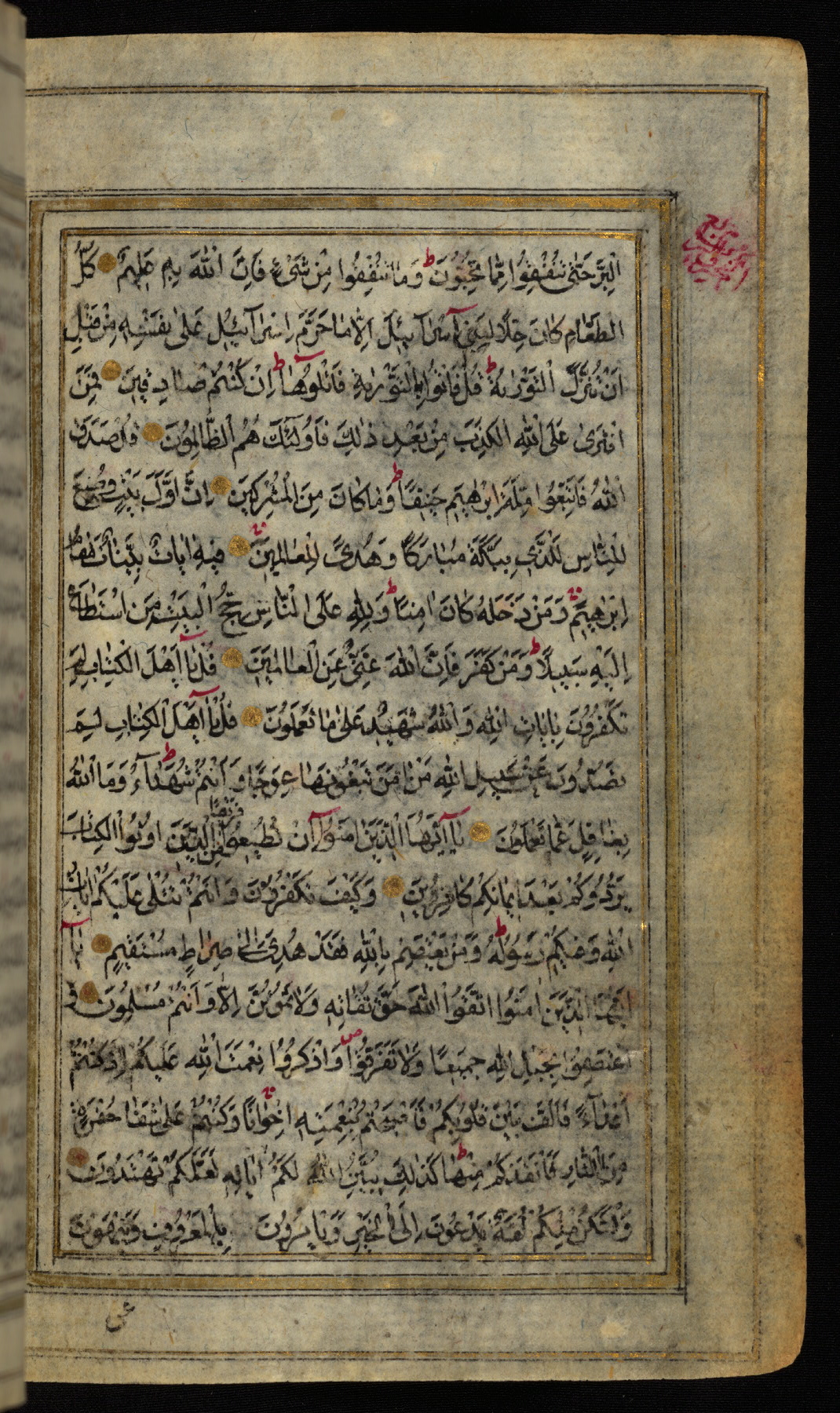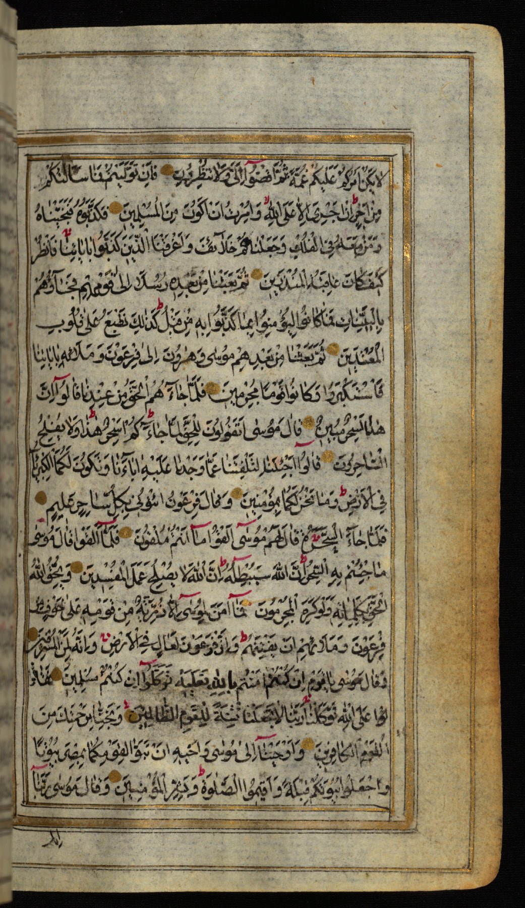 This small copy of the Qur'an was penned by an anonymous scribe in Iran in the thirteenth century AH / nineteenth century CE.