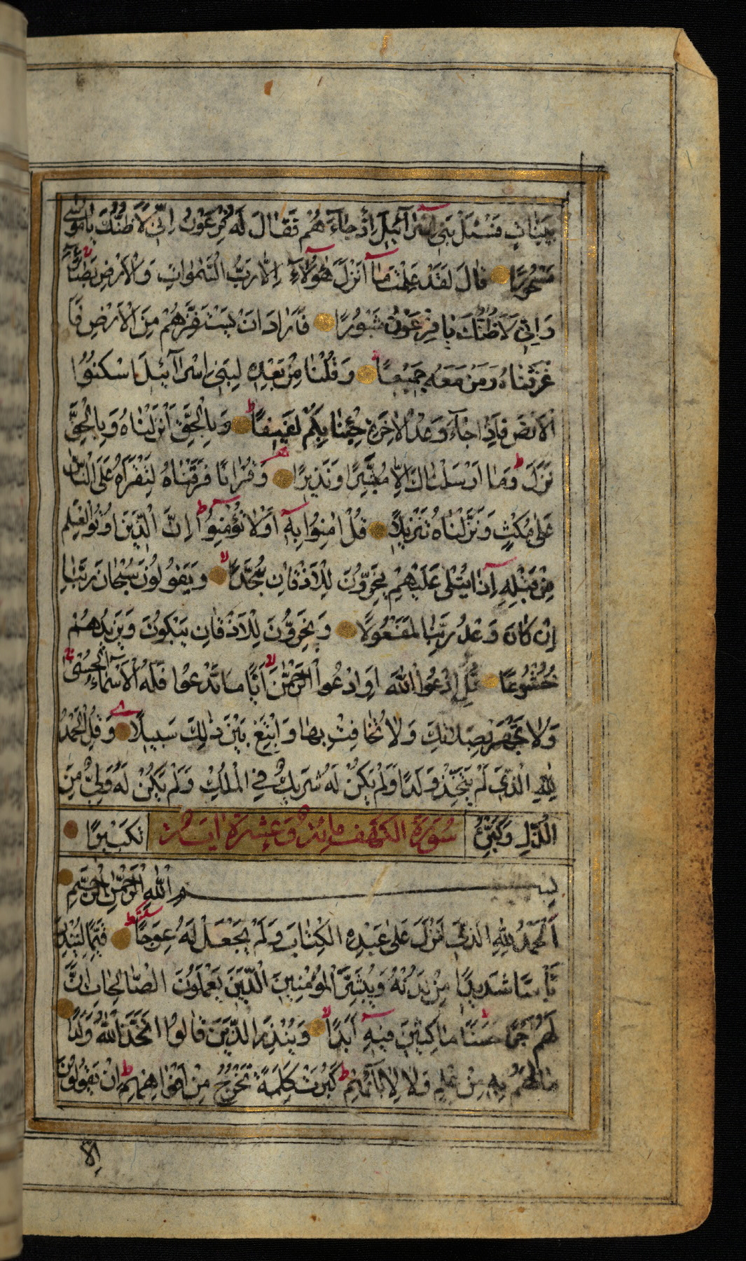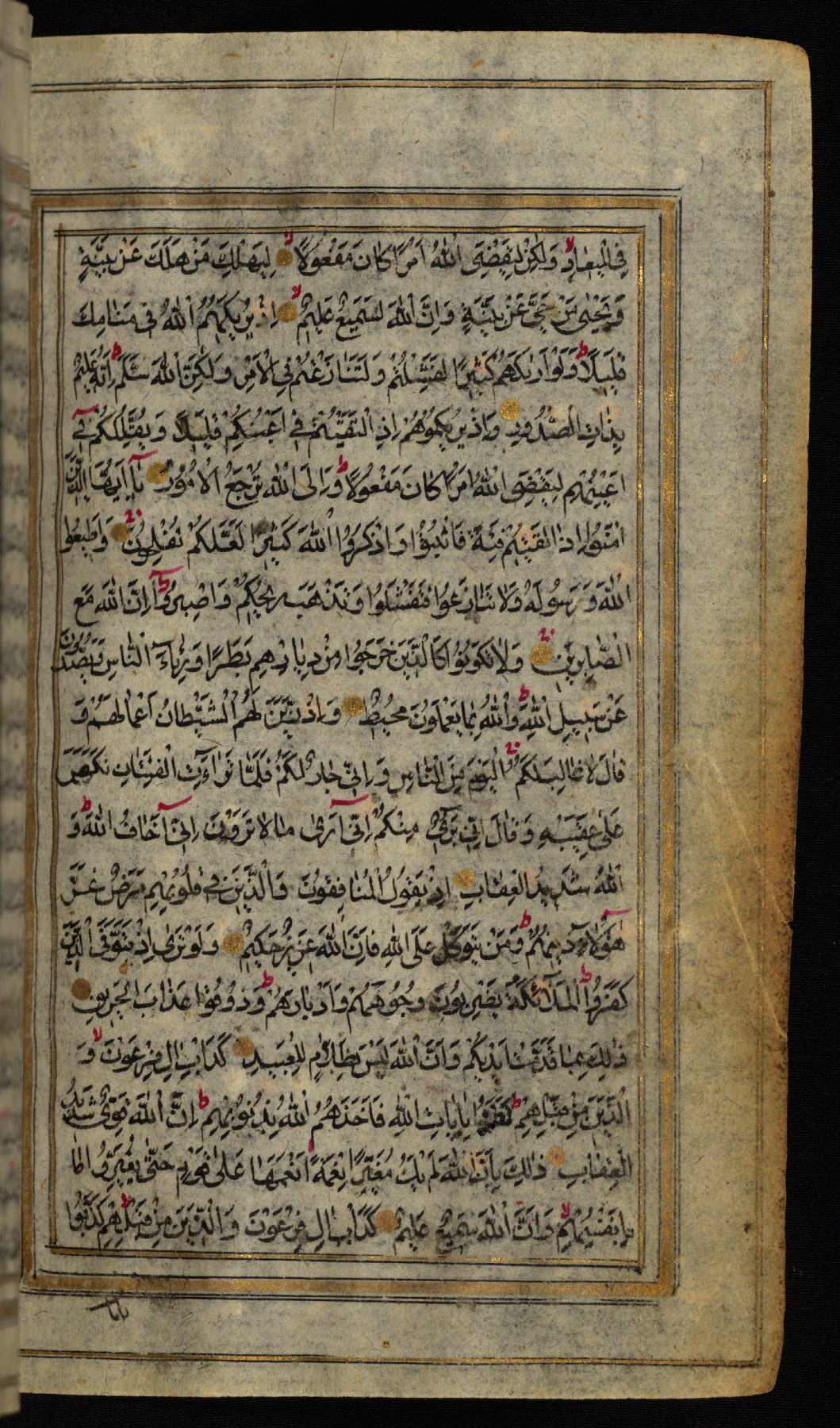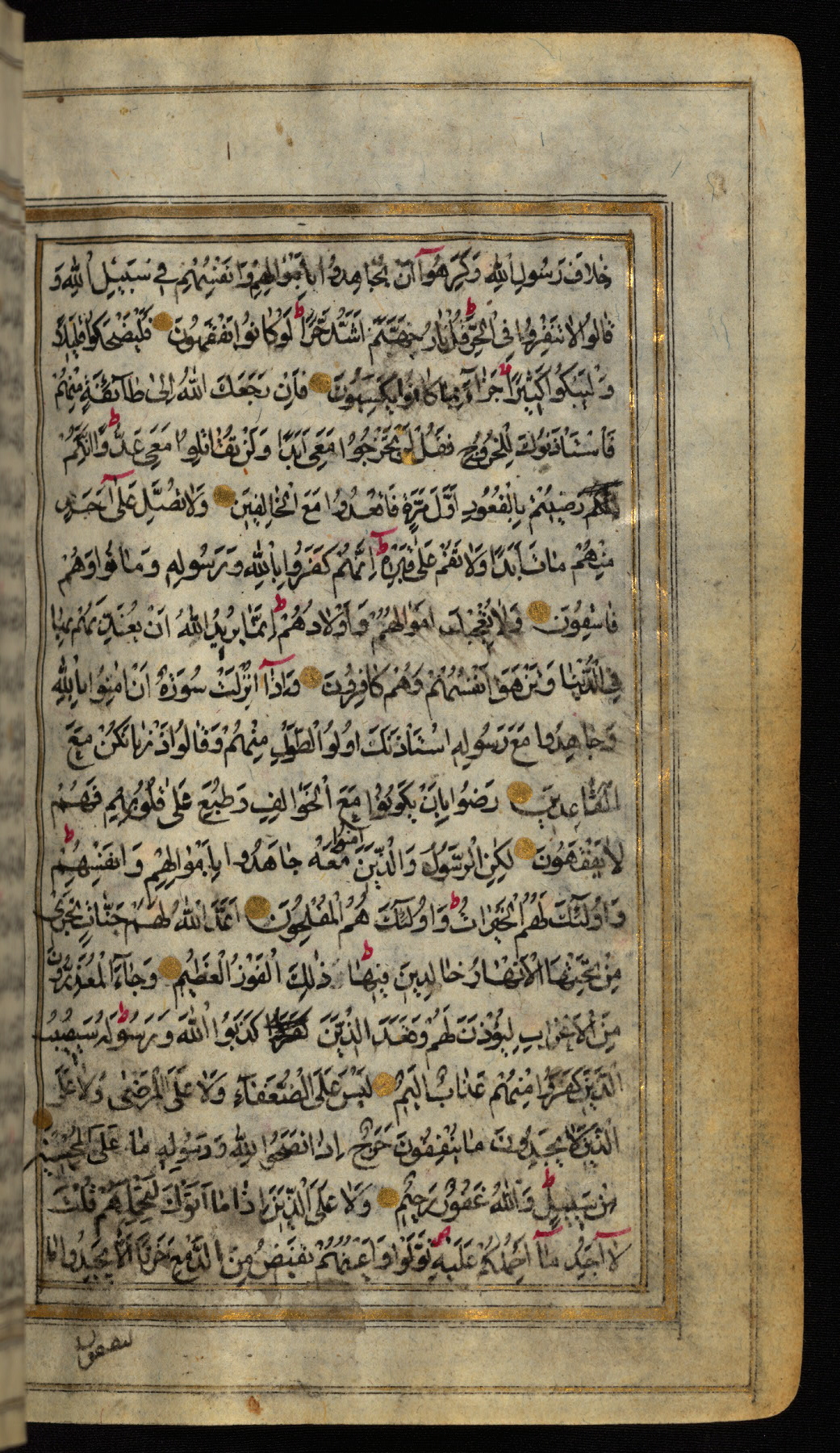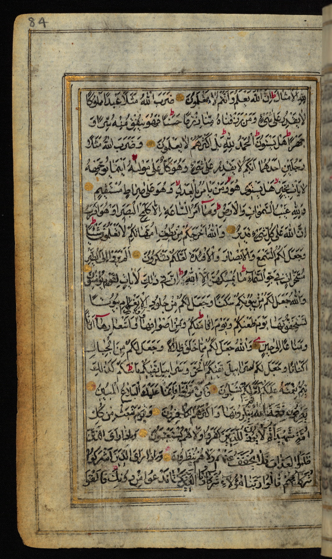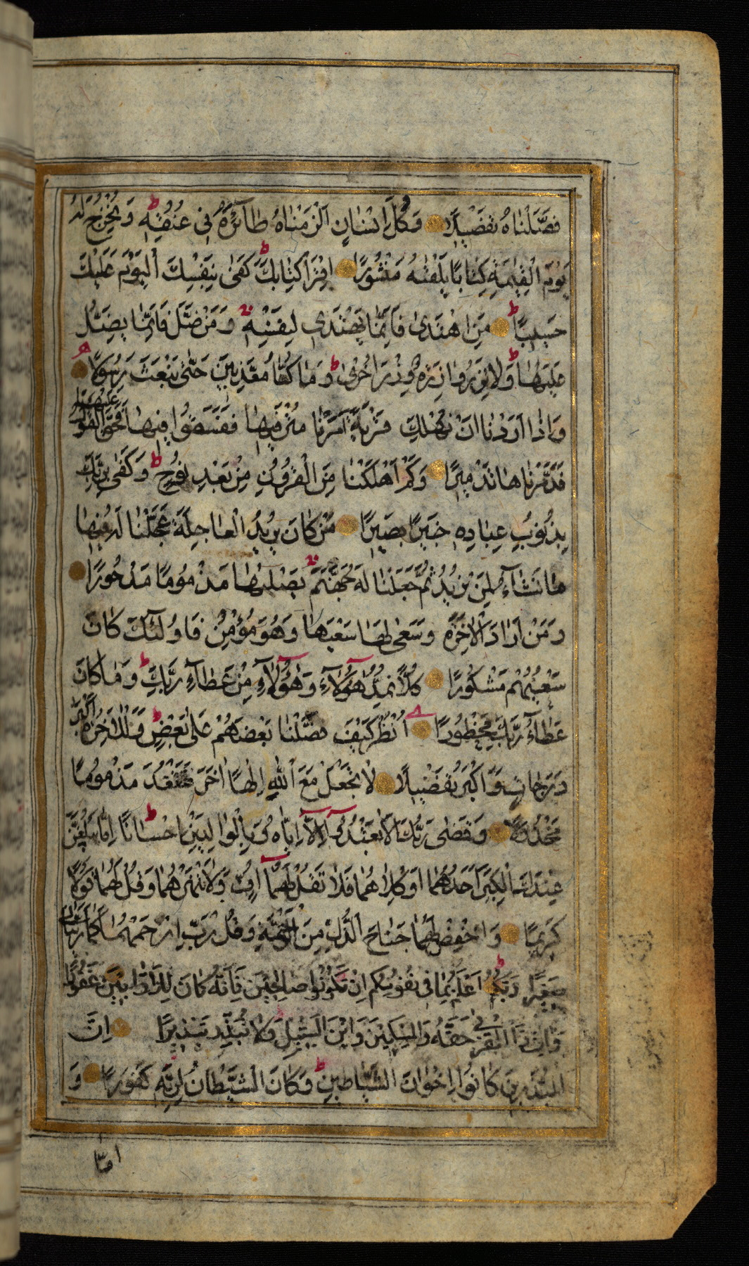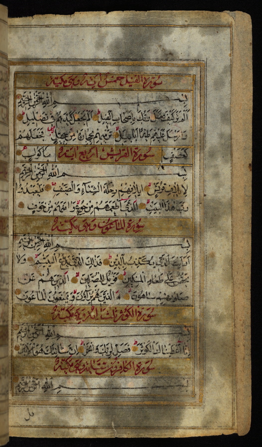 This small copy of the Qur'an was penned by an anonymous scribe in Iran in the thirteenth century AH / nineteenth century CE.