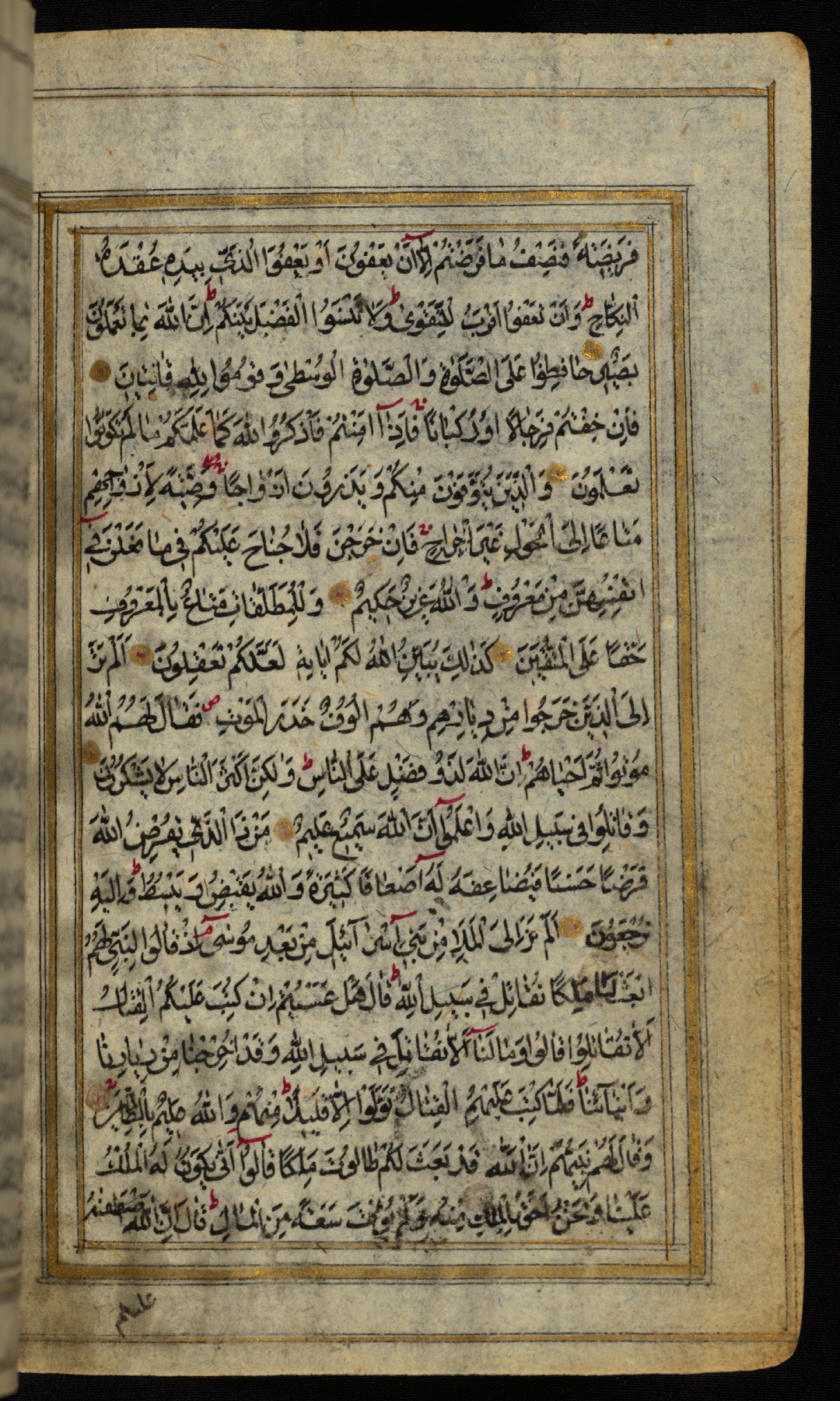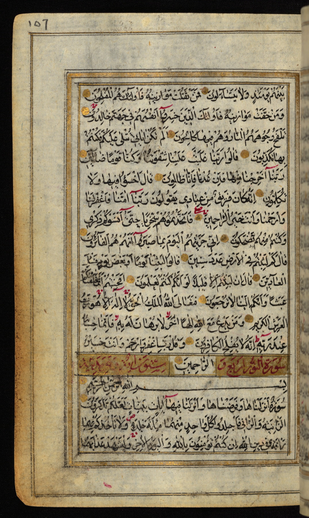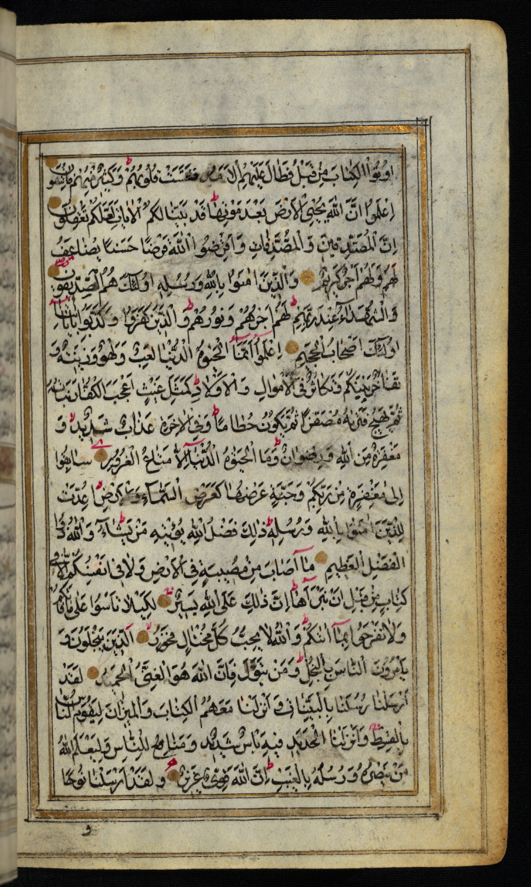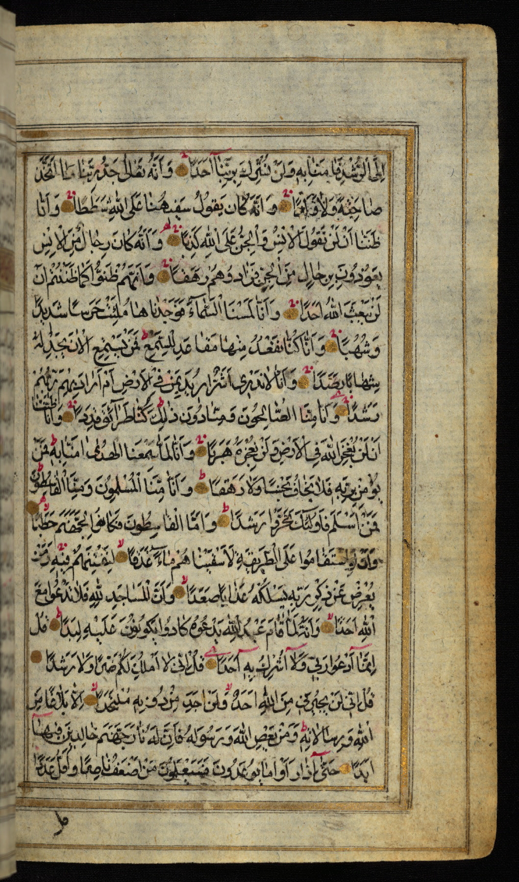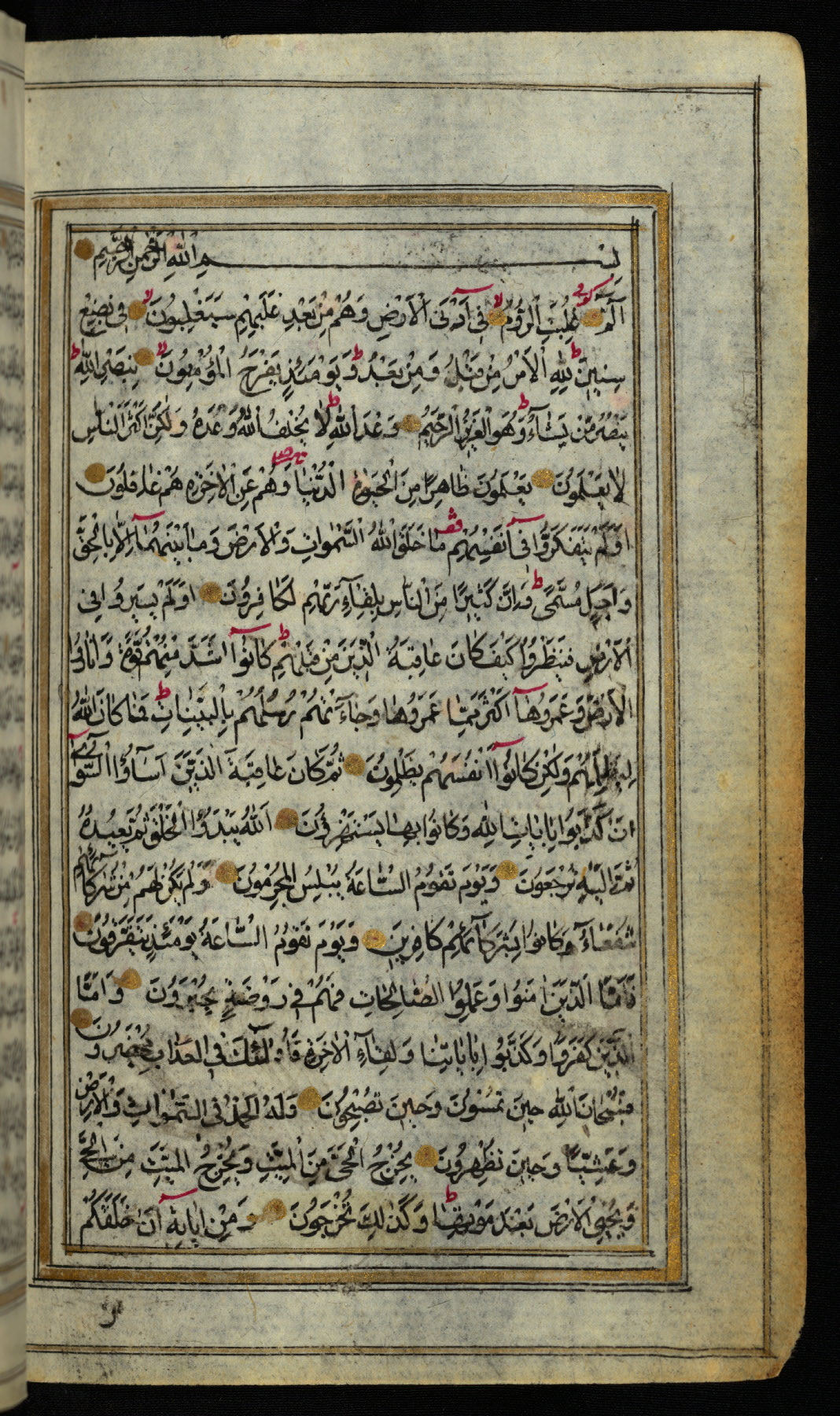 This small copy of the Qur'an was penned by an anonymous scribe in Iran in the thirteenth century AH / nineteenth century CE.