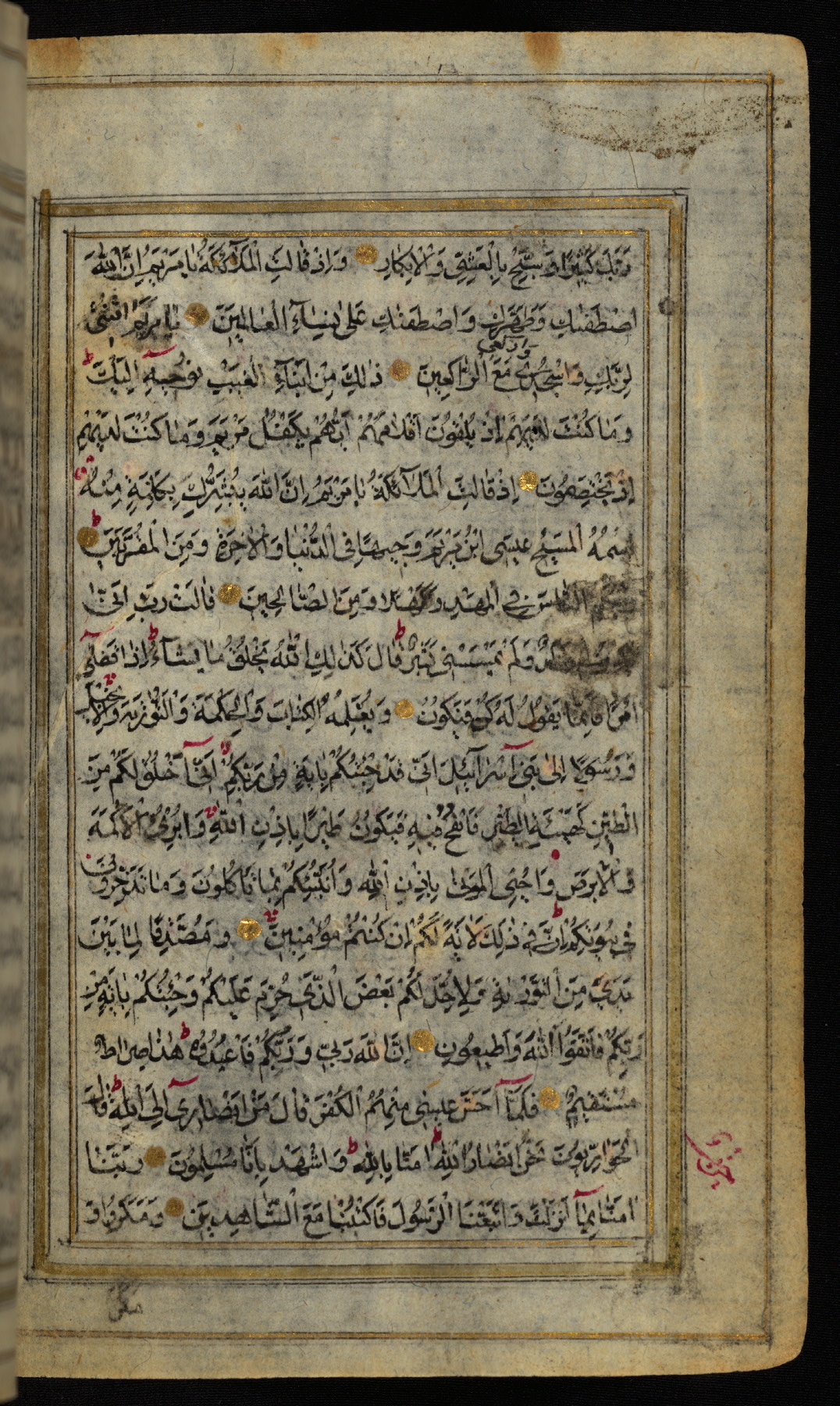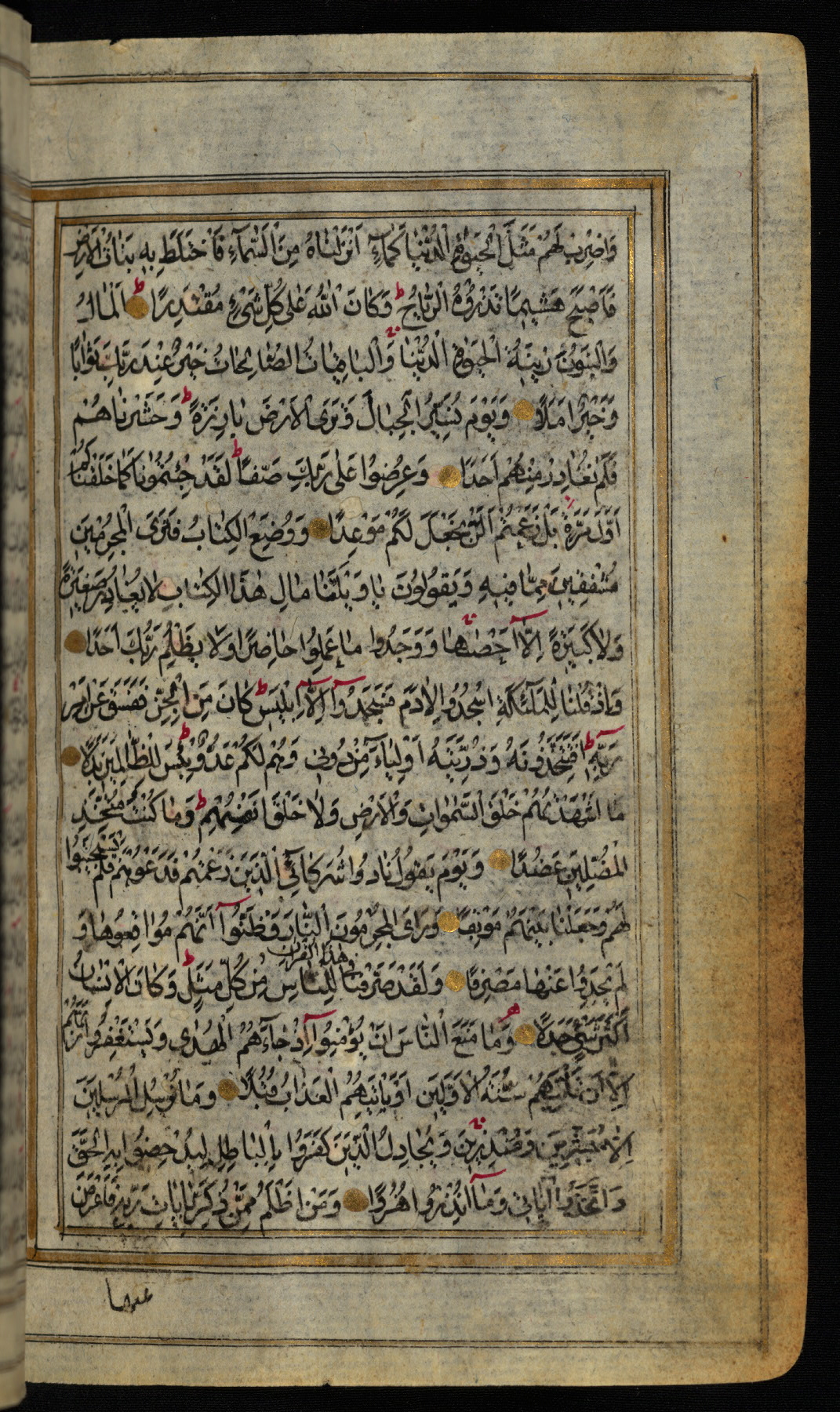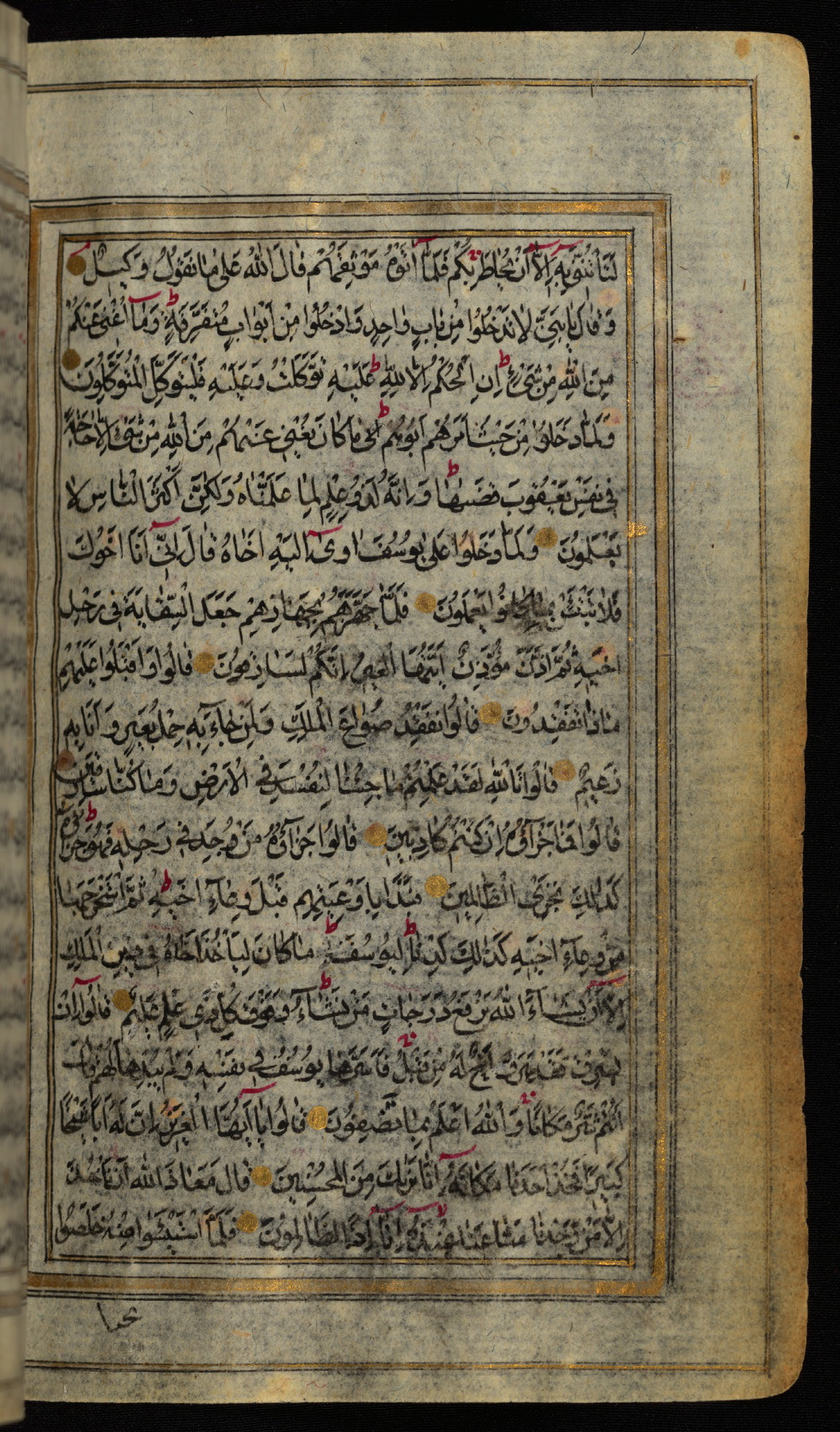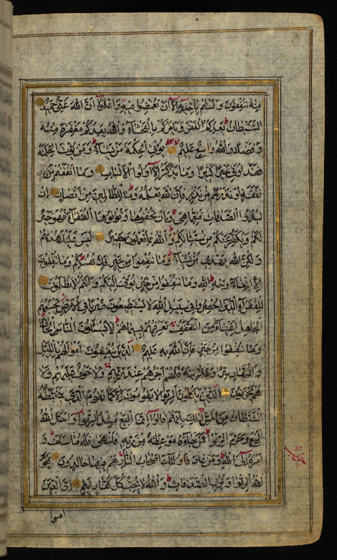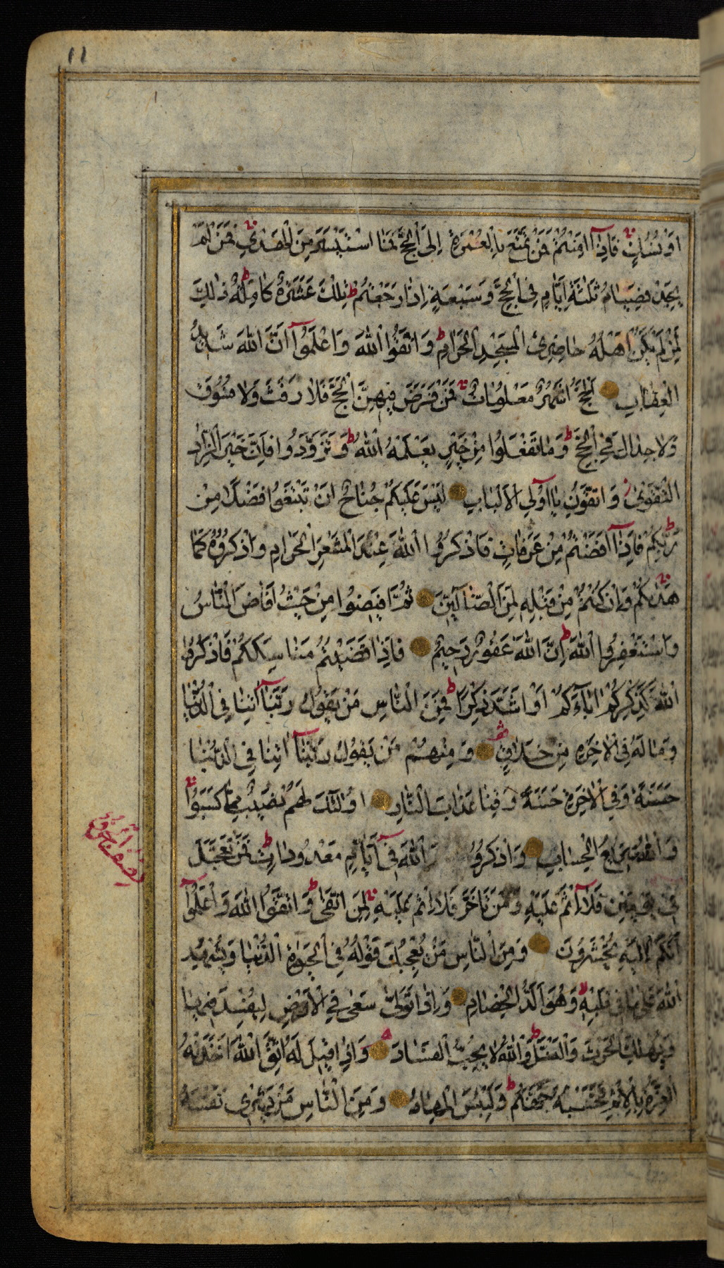 This small copy of the Qur'an was penned by an anonymous scribe in Iran in the thirteenth century AH / nineteenth century CE.