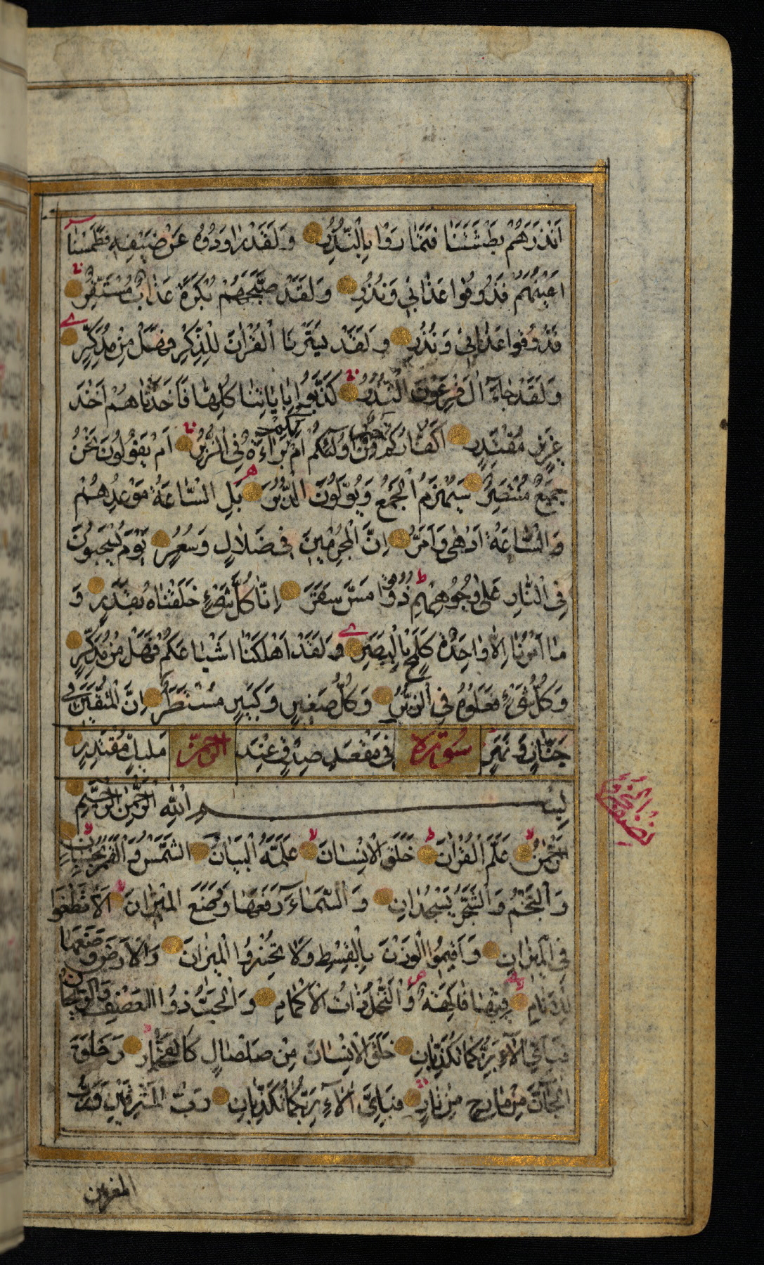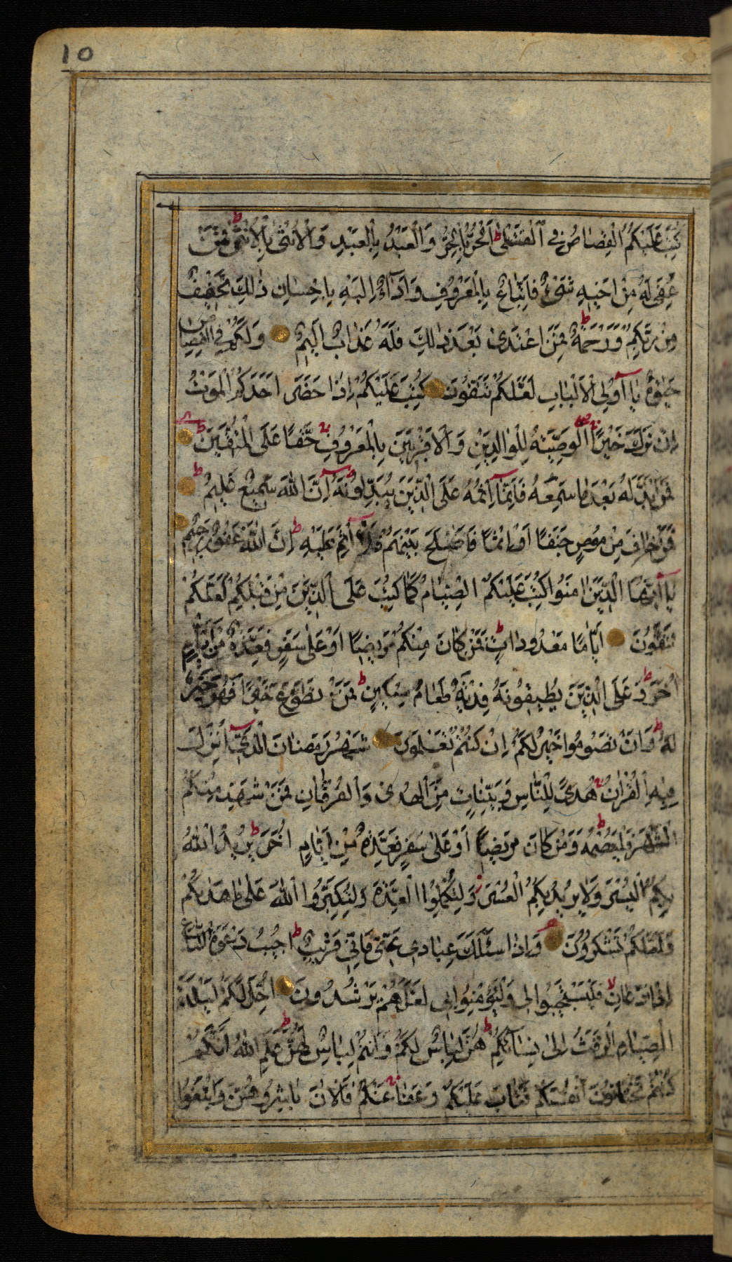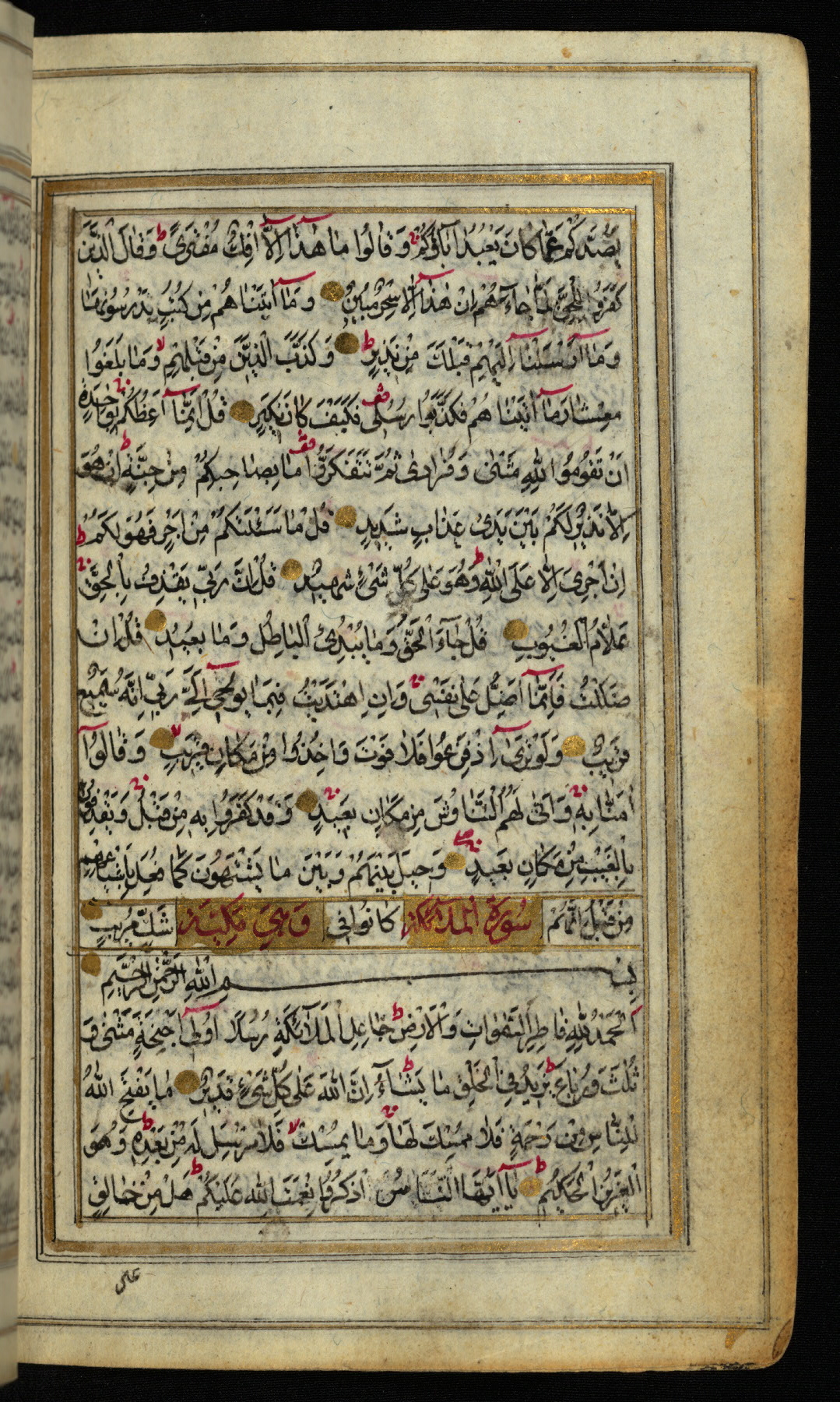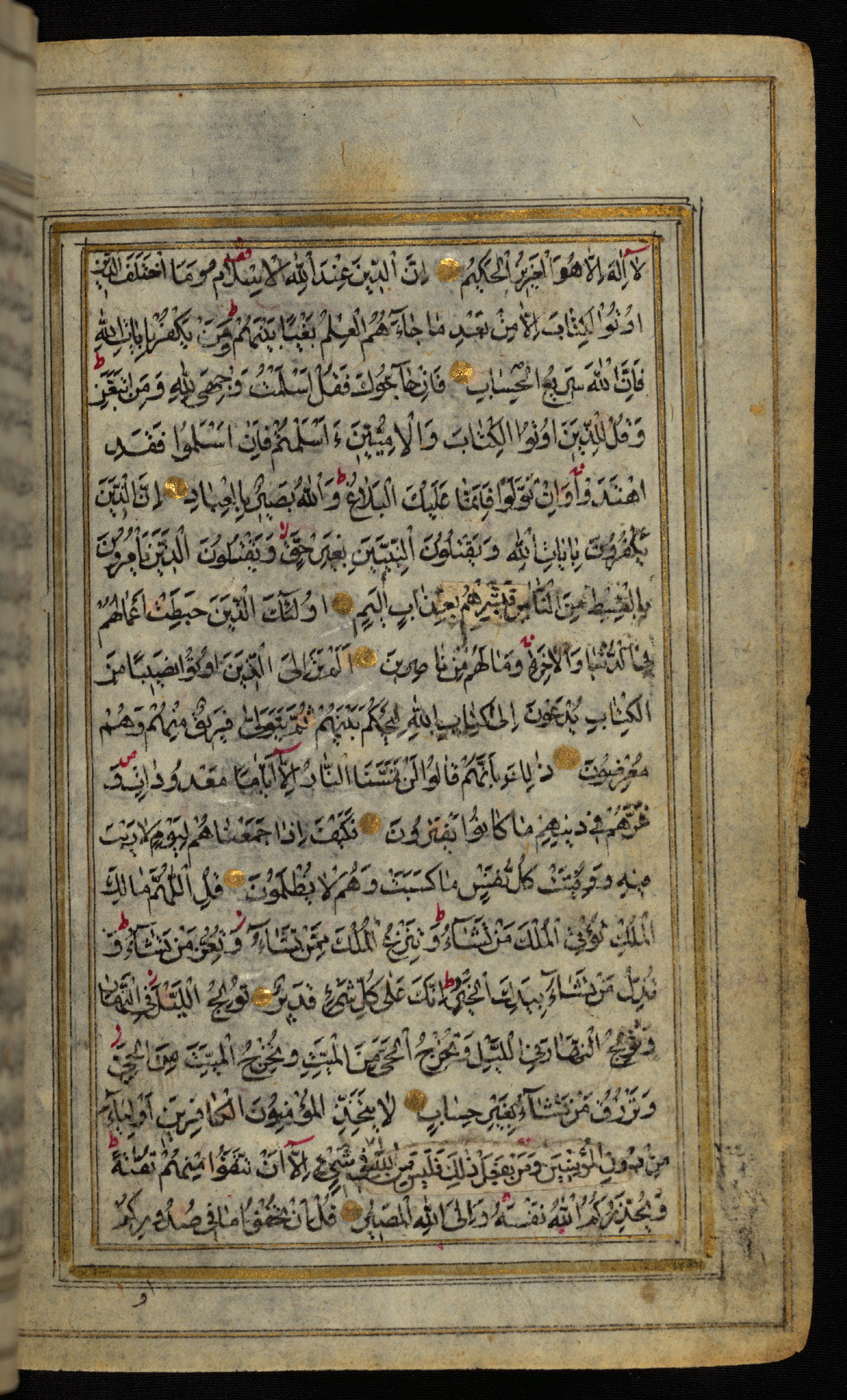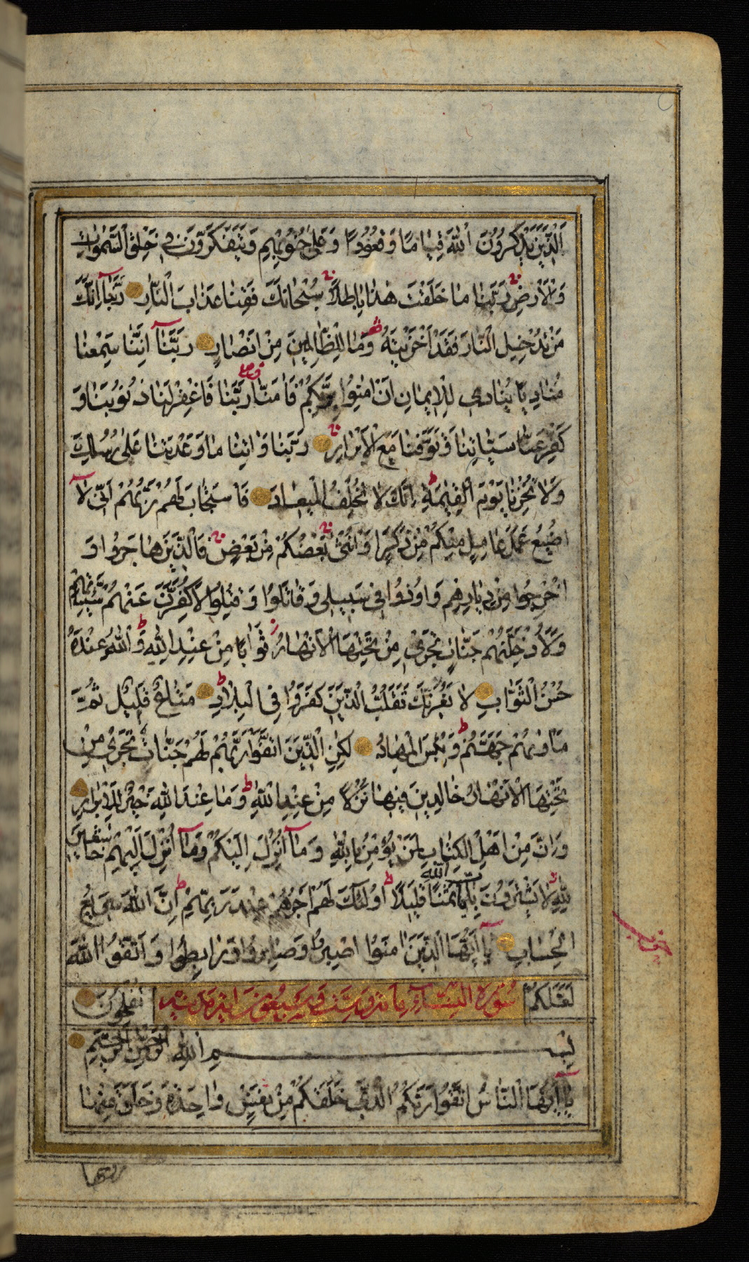 This small copy of the Qur'an was penned by an anonymous scribe in Iran in the thirteenth century AH / nineteenth century CE.