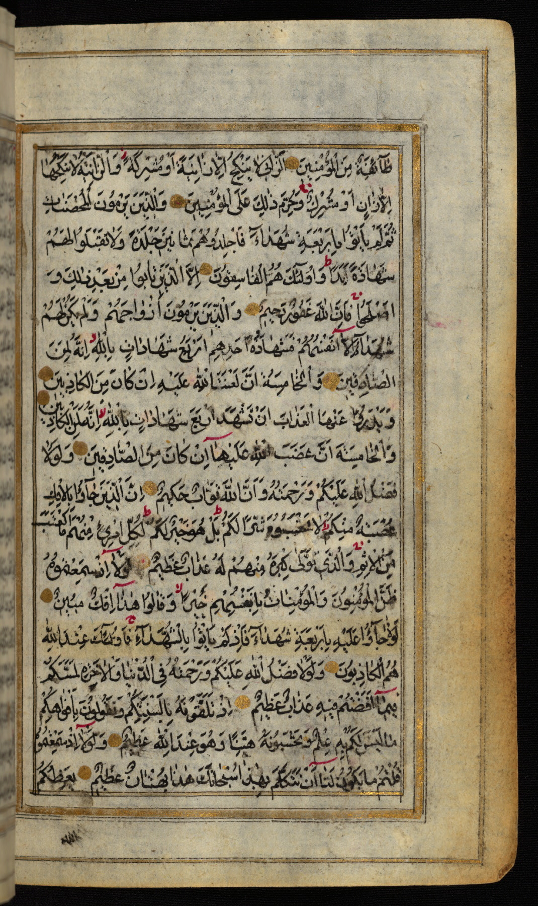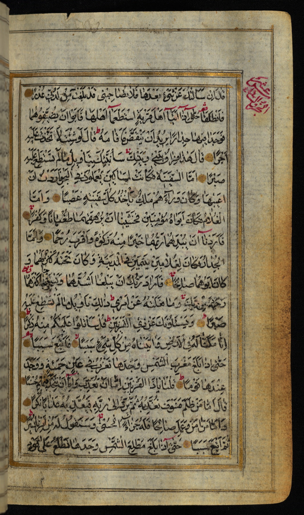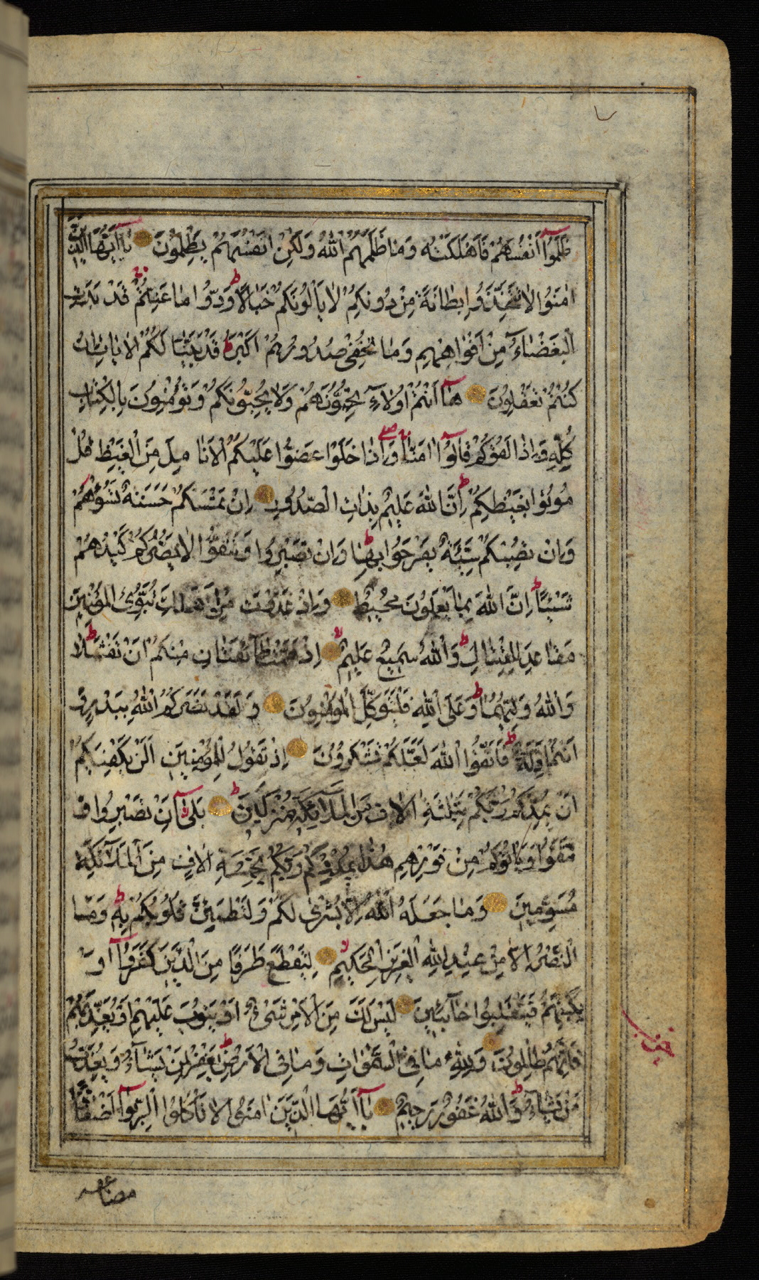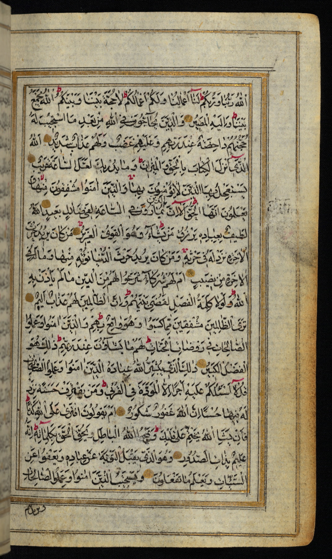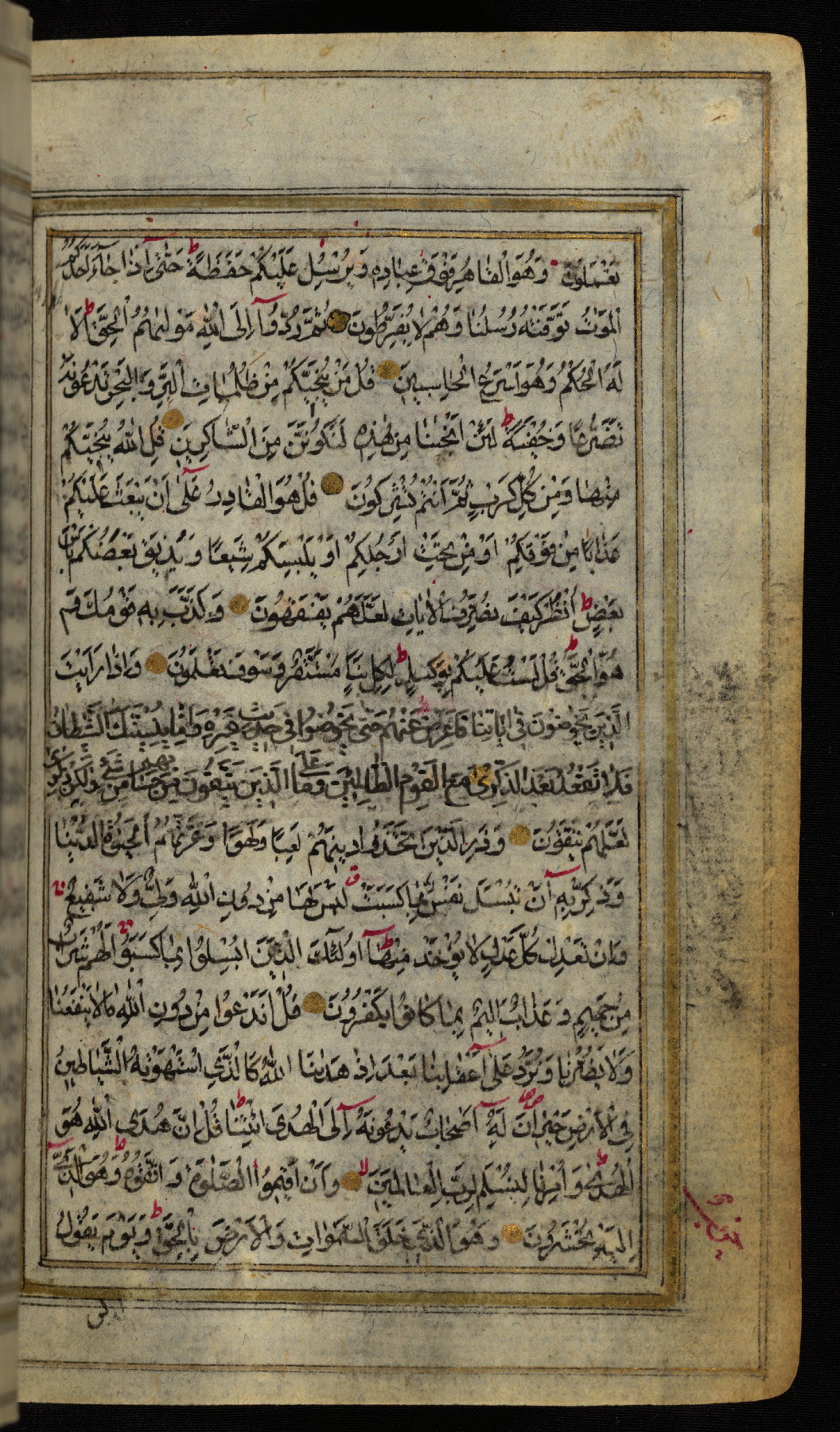 This small copy of the Qur'an was penned by an anonymous scribe in Iran in the thirteenth century AH / nineteenth century CE.
