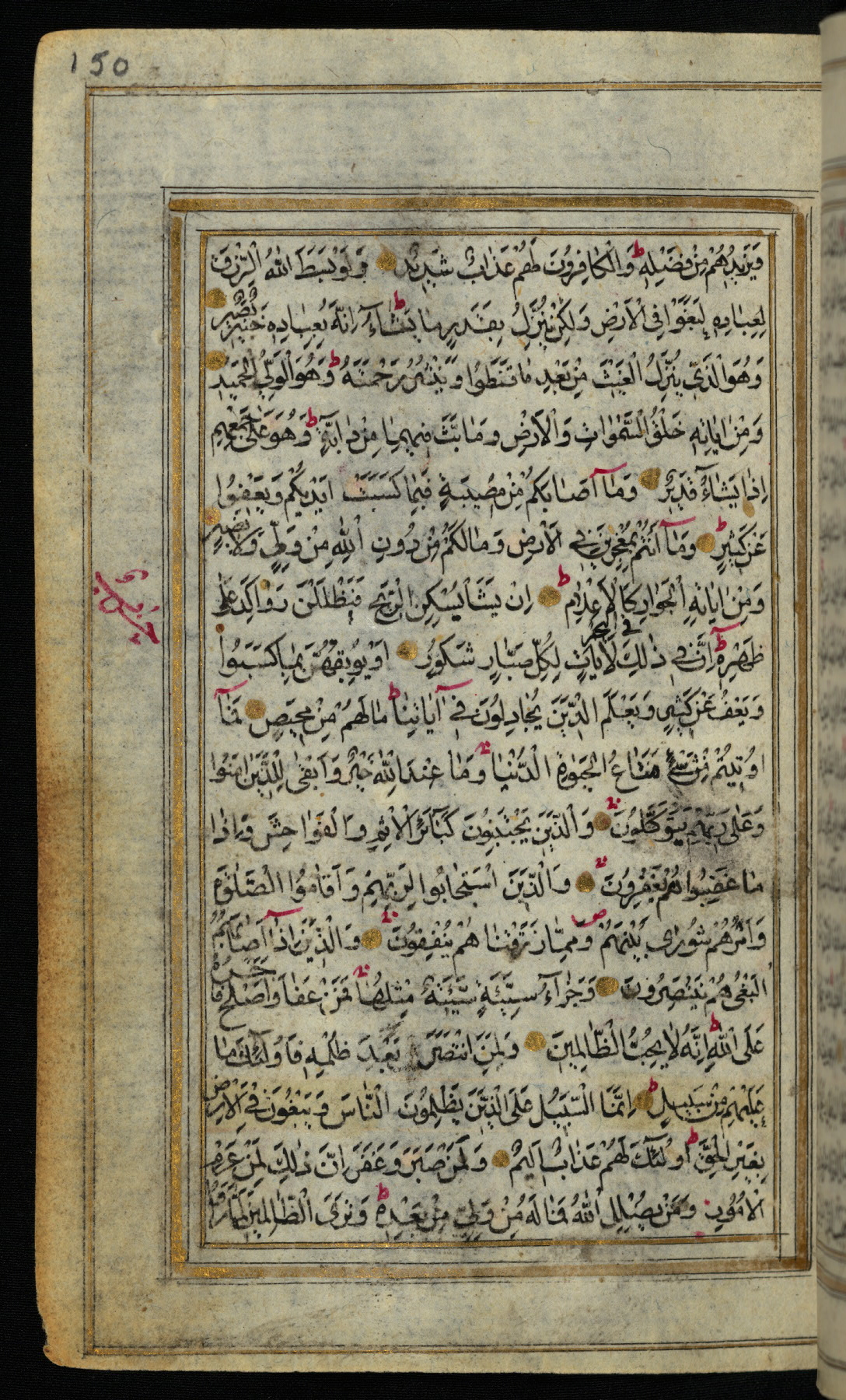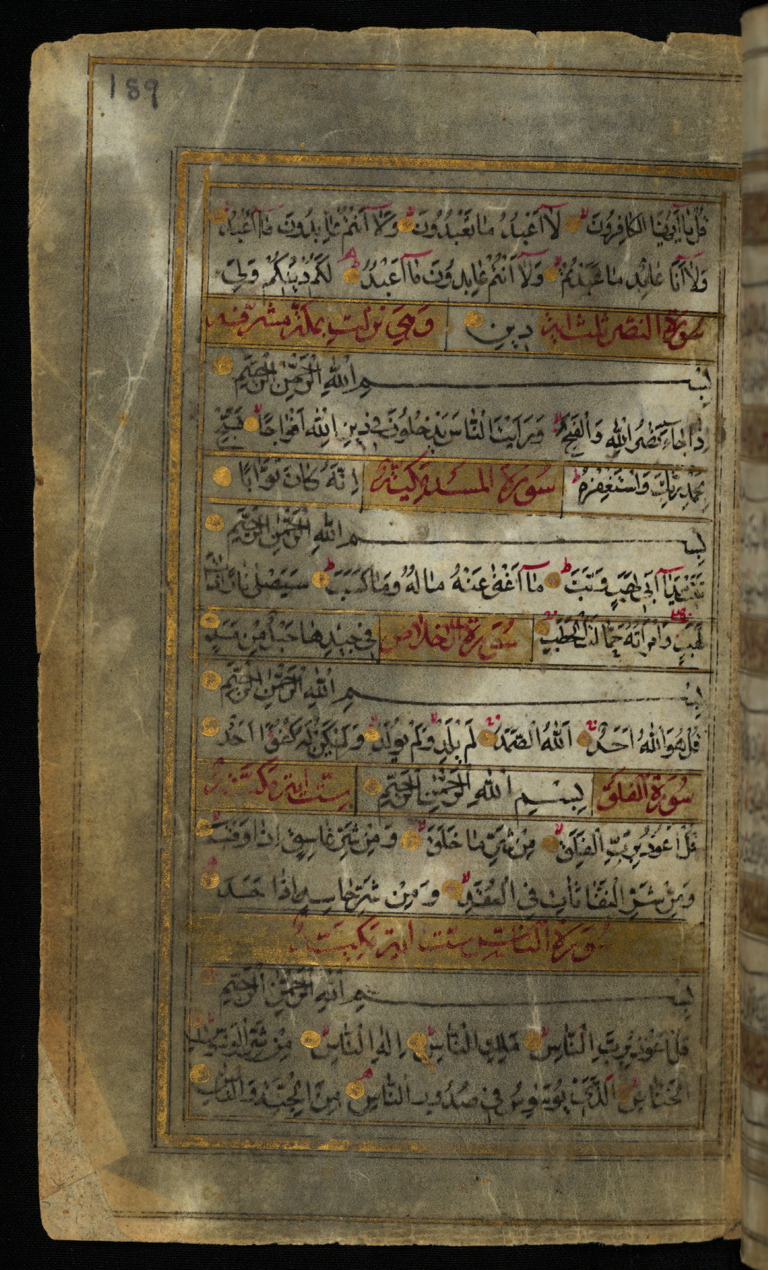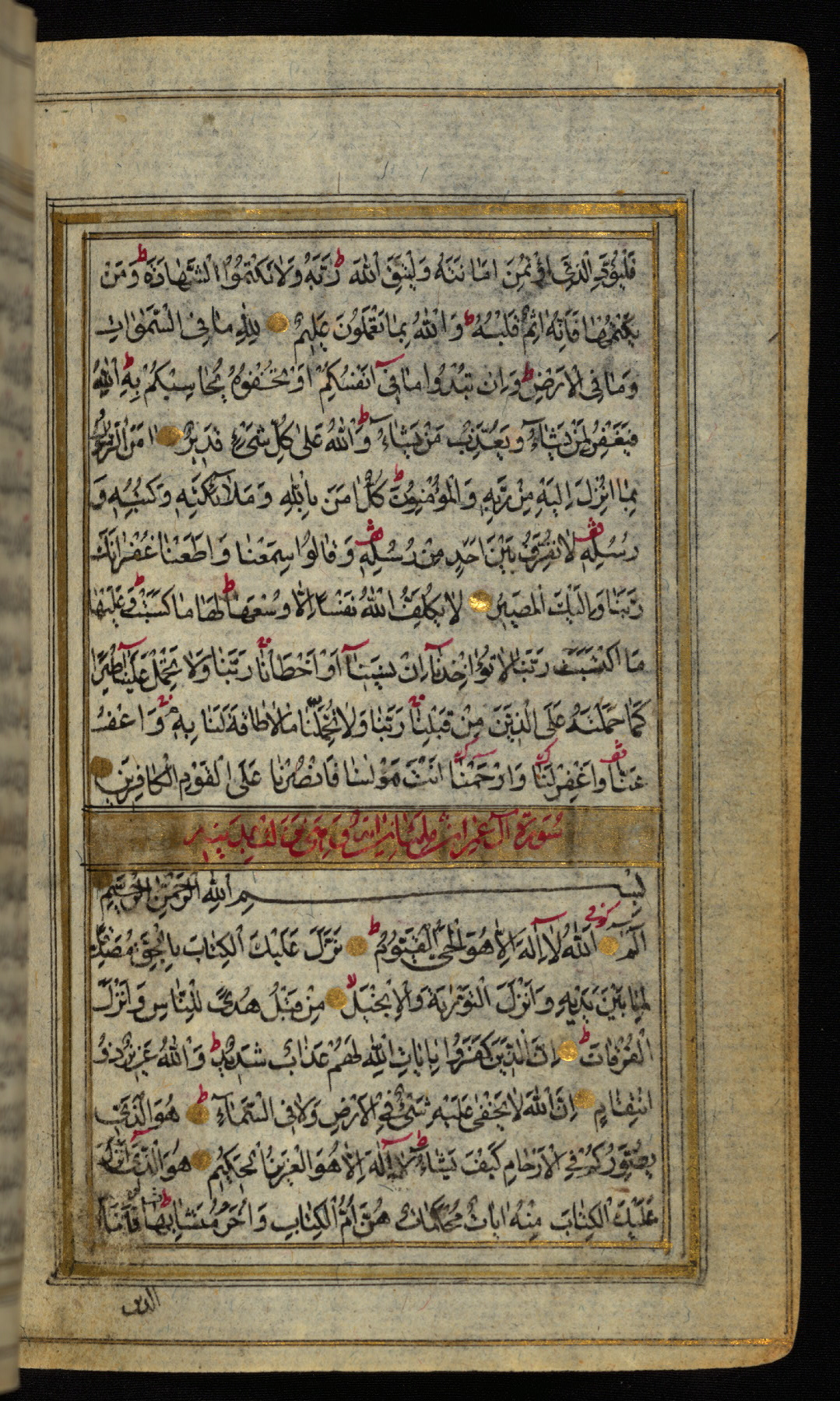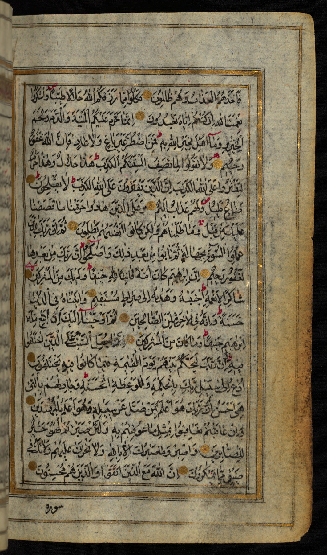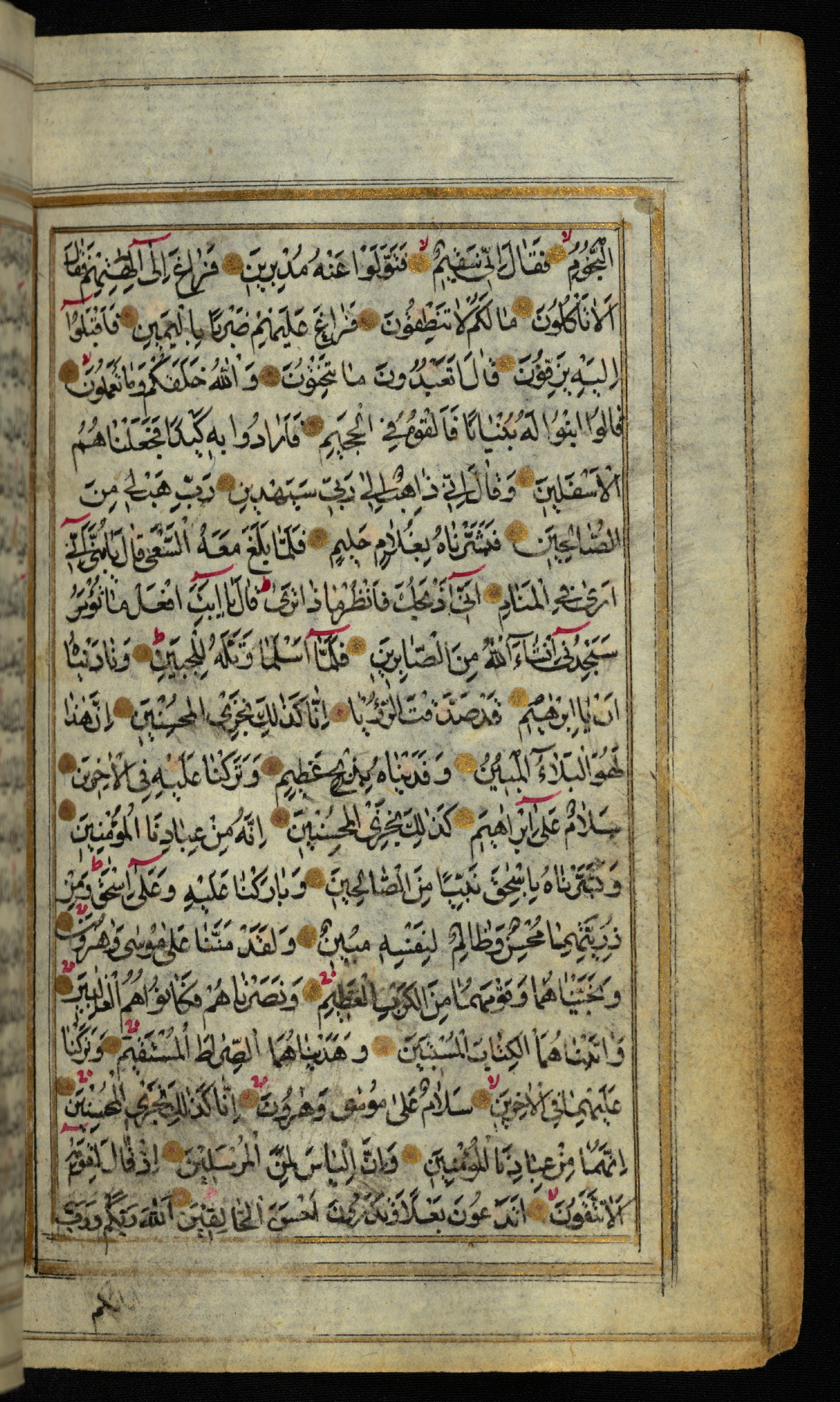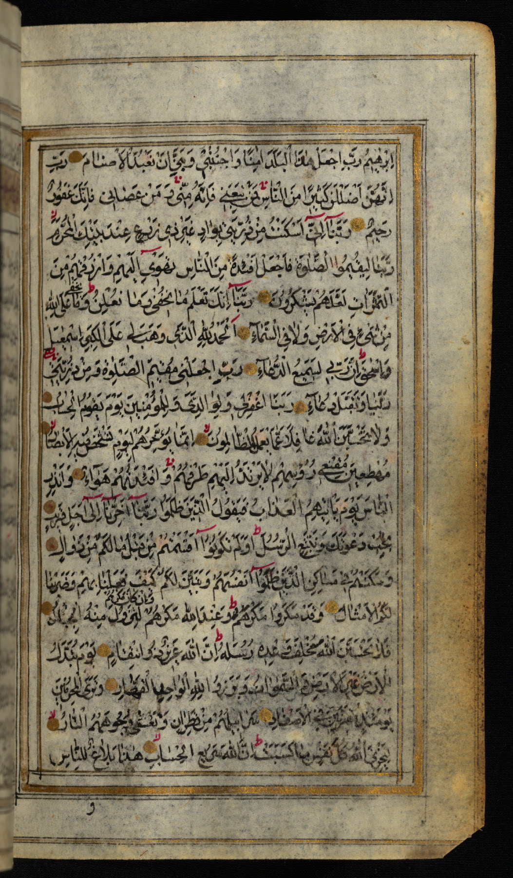 This small copy of the Qur'an was penned by an anonymous scribe in Iran in the thirteenth century AH / nineteenth century CE.