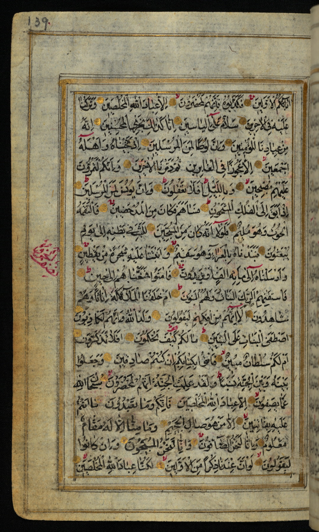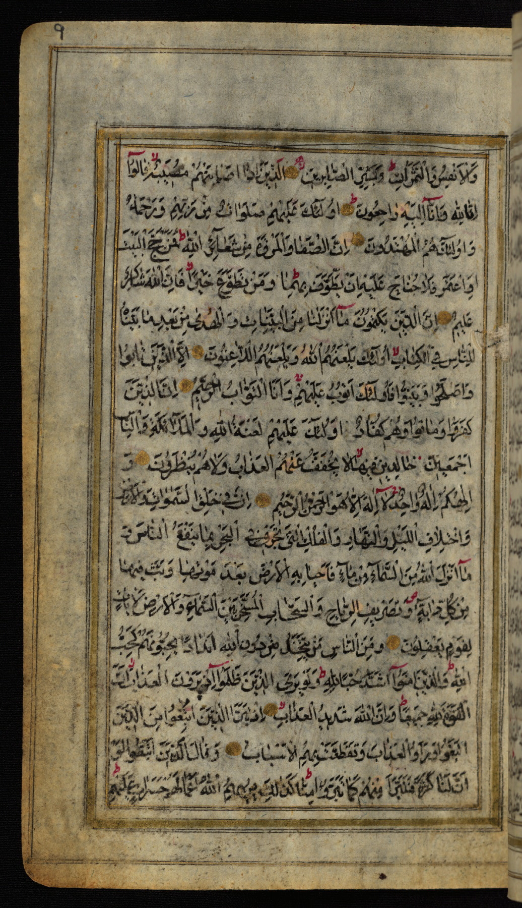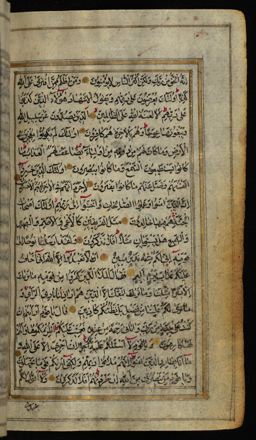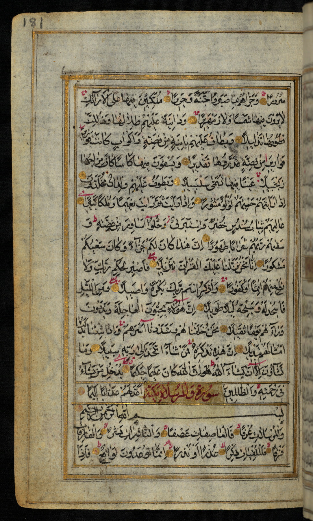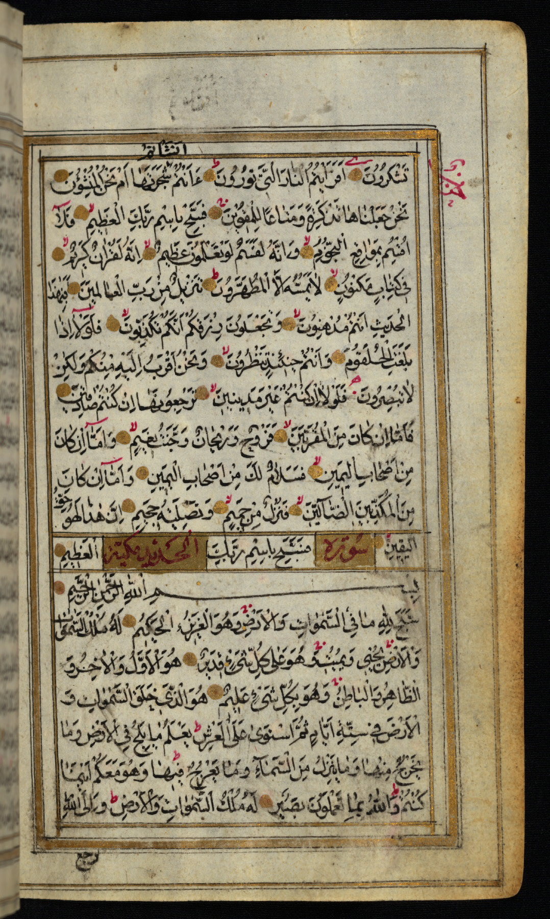 This small copy of the Qur'an was penned by an anonymous scribe in Iran in the thirteenth century AH / nineteenth century CE.