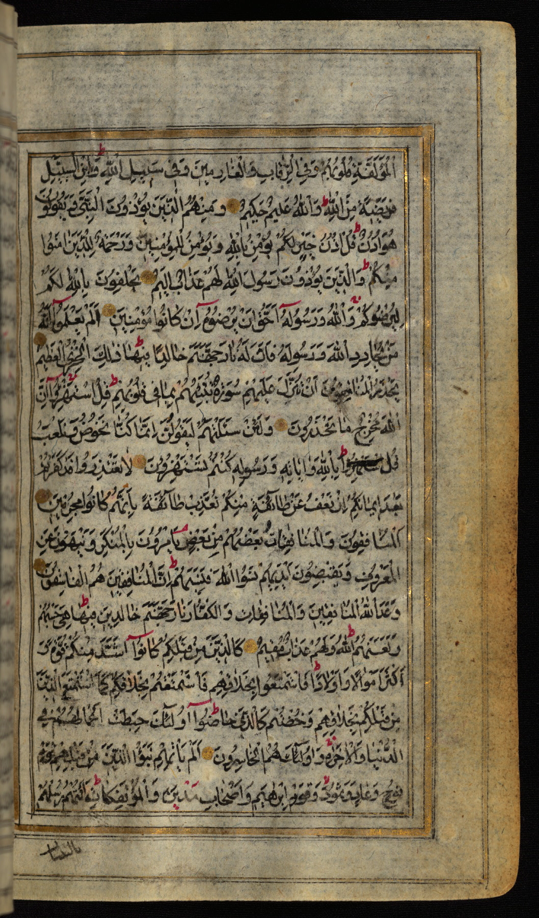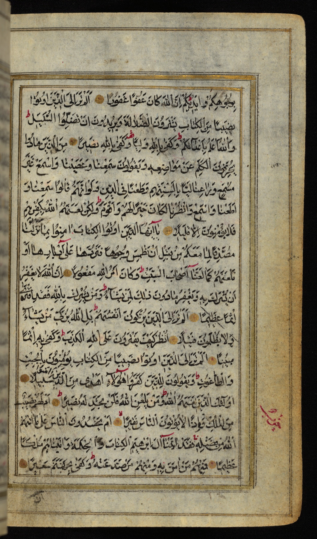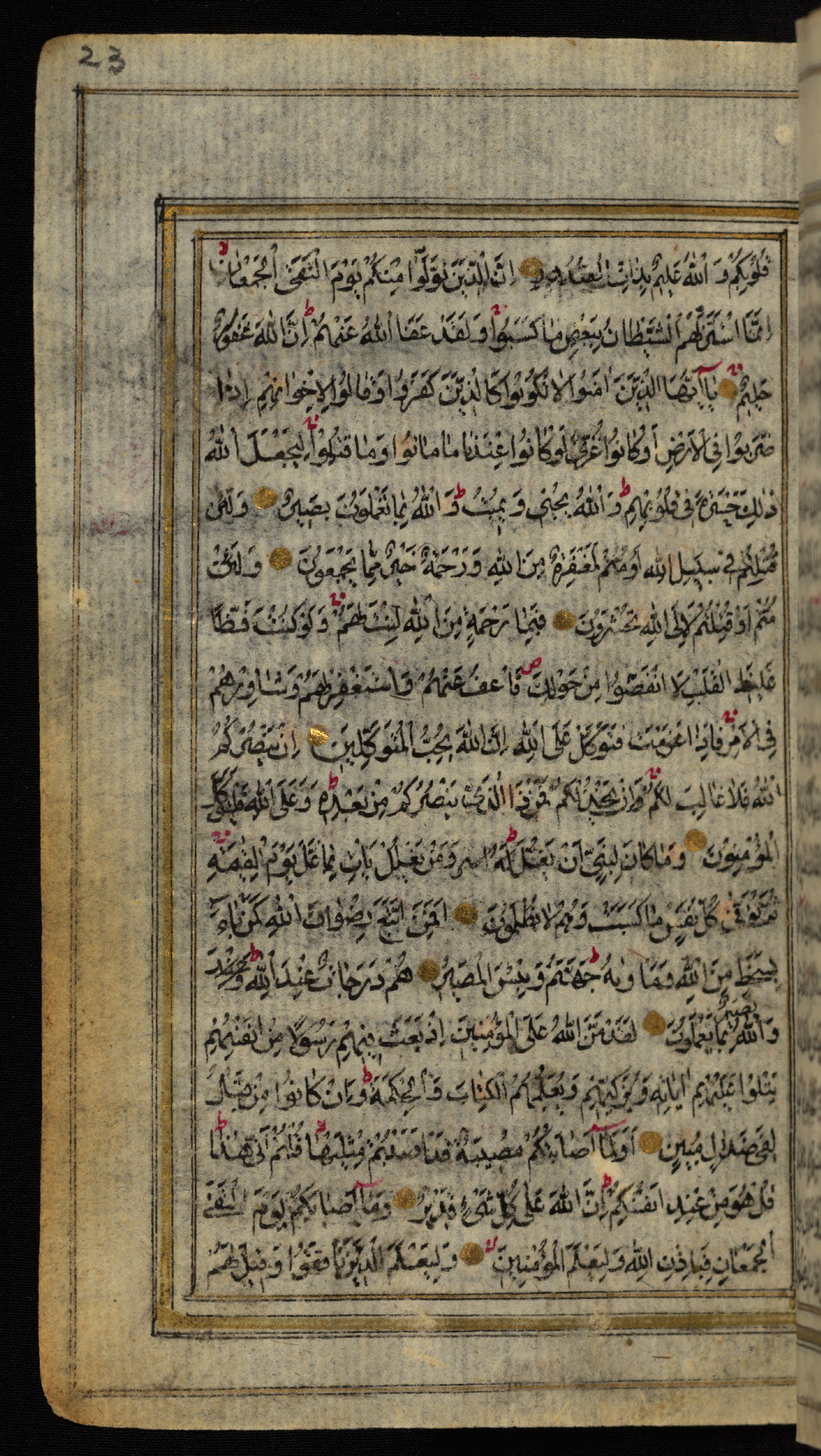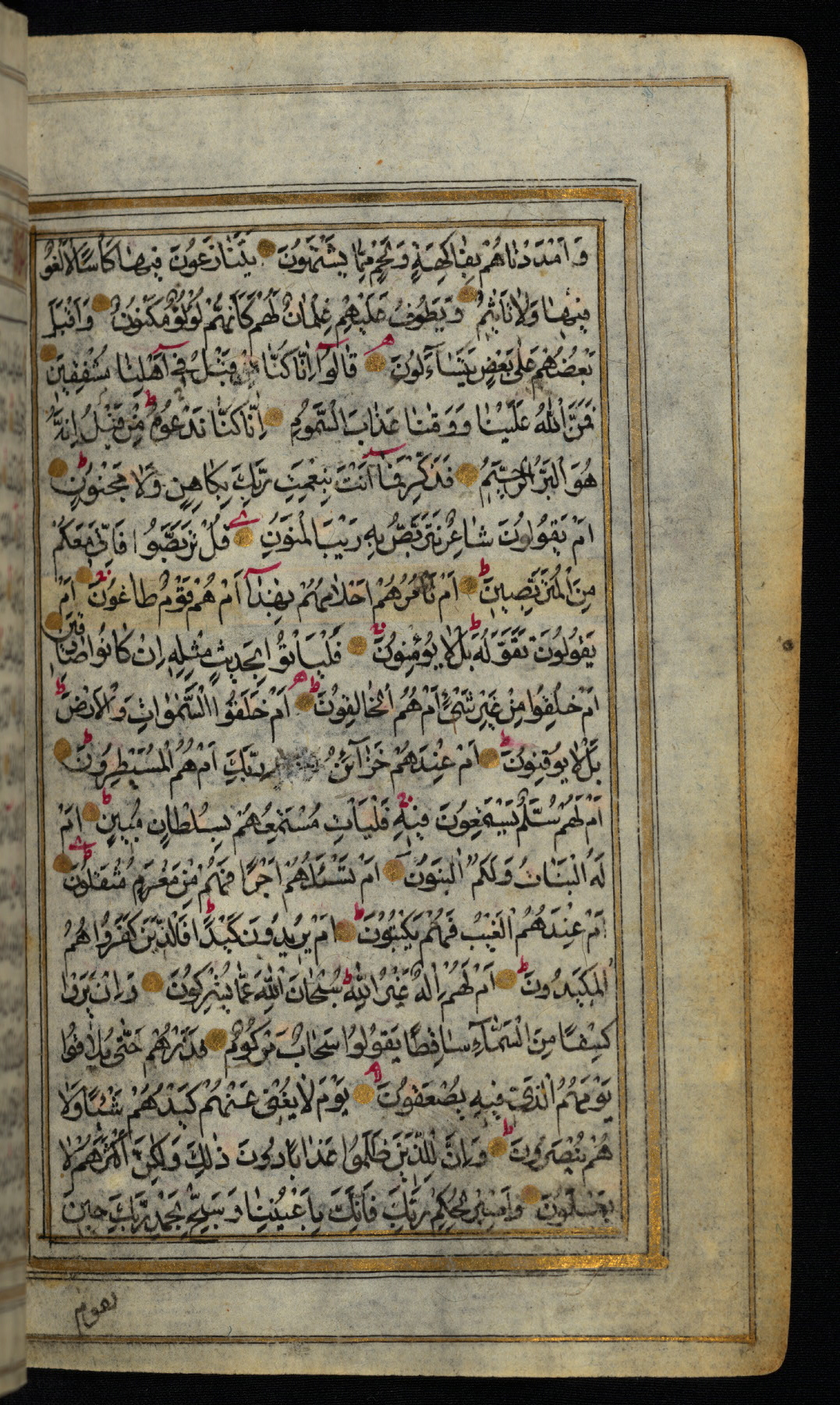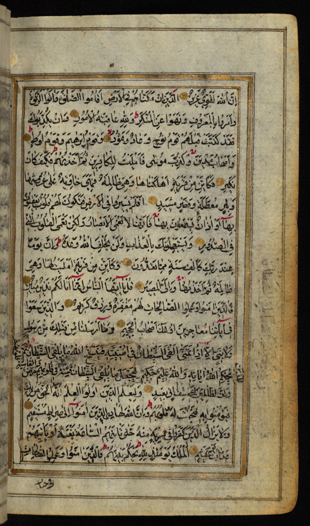 This small copy of the Qur'an was penned by an anonymous scribe in Iran in the thirteenth century AH / nineteenth century CE.