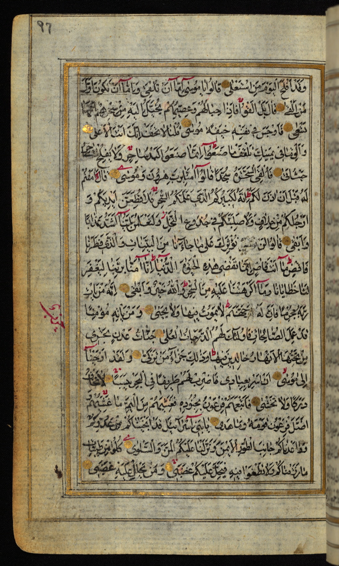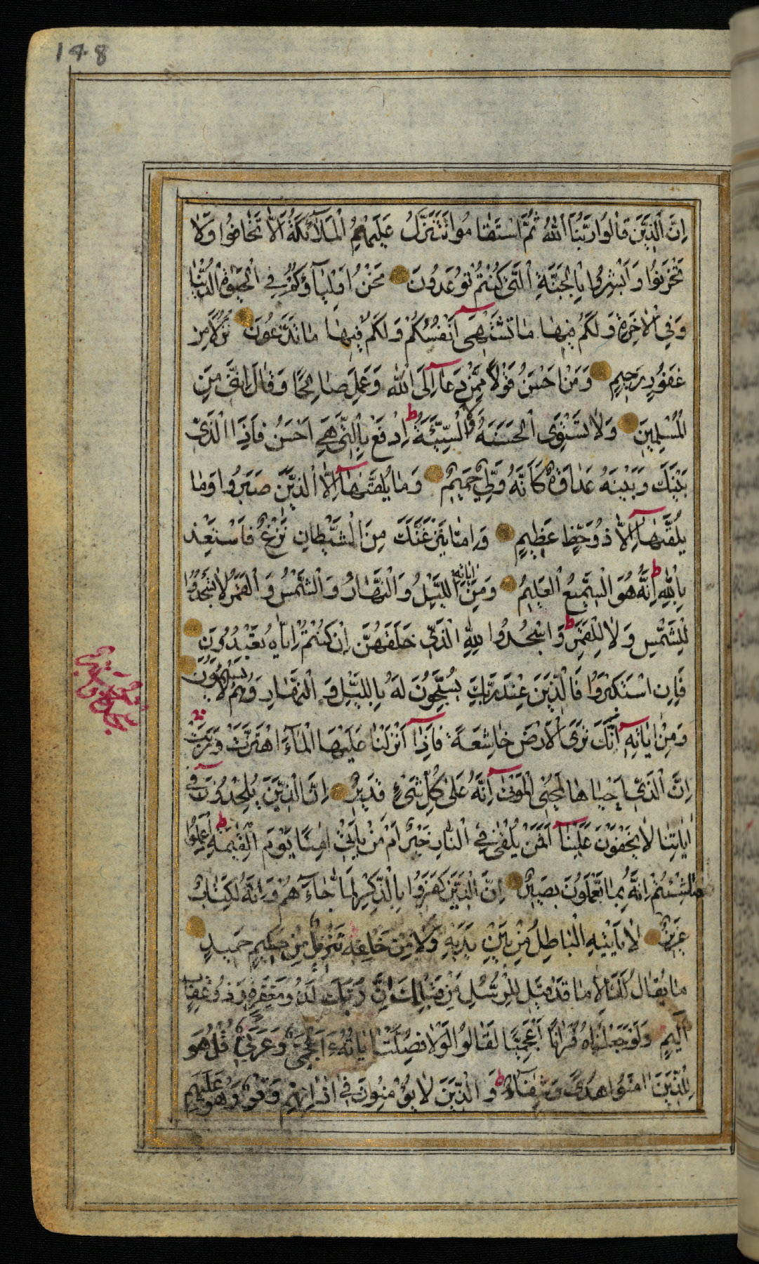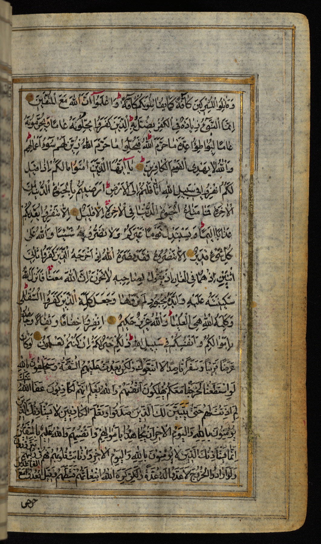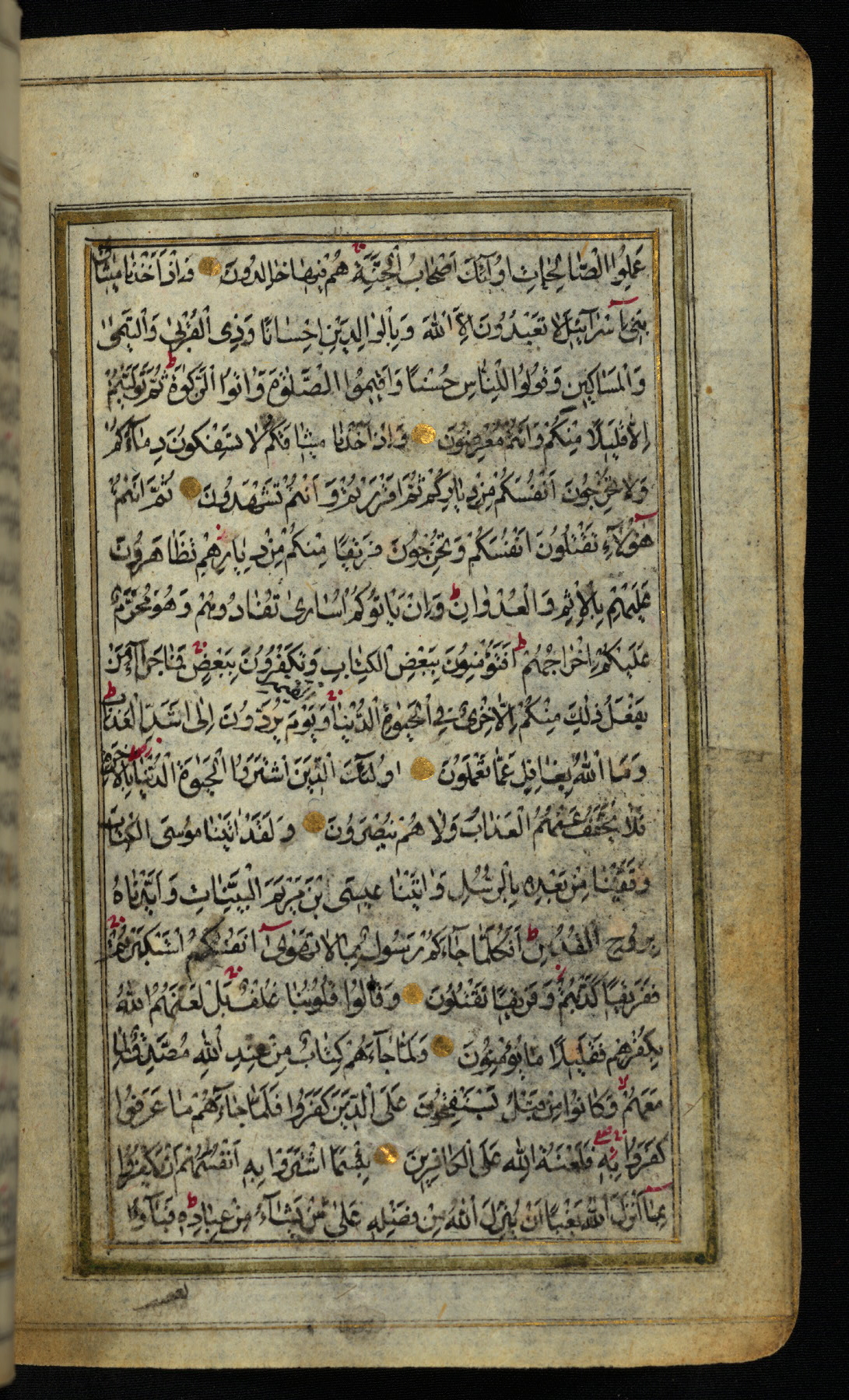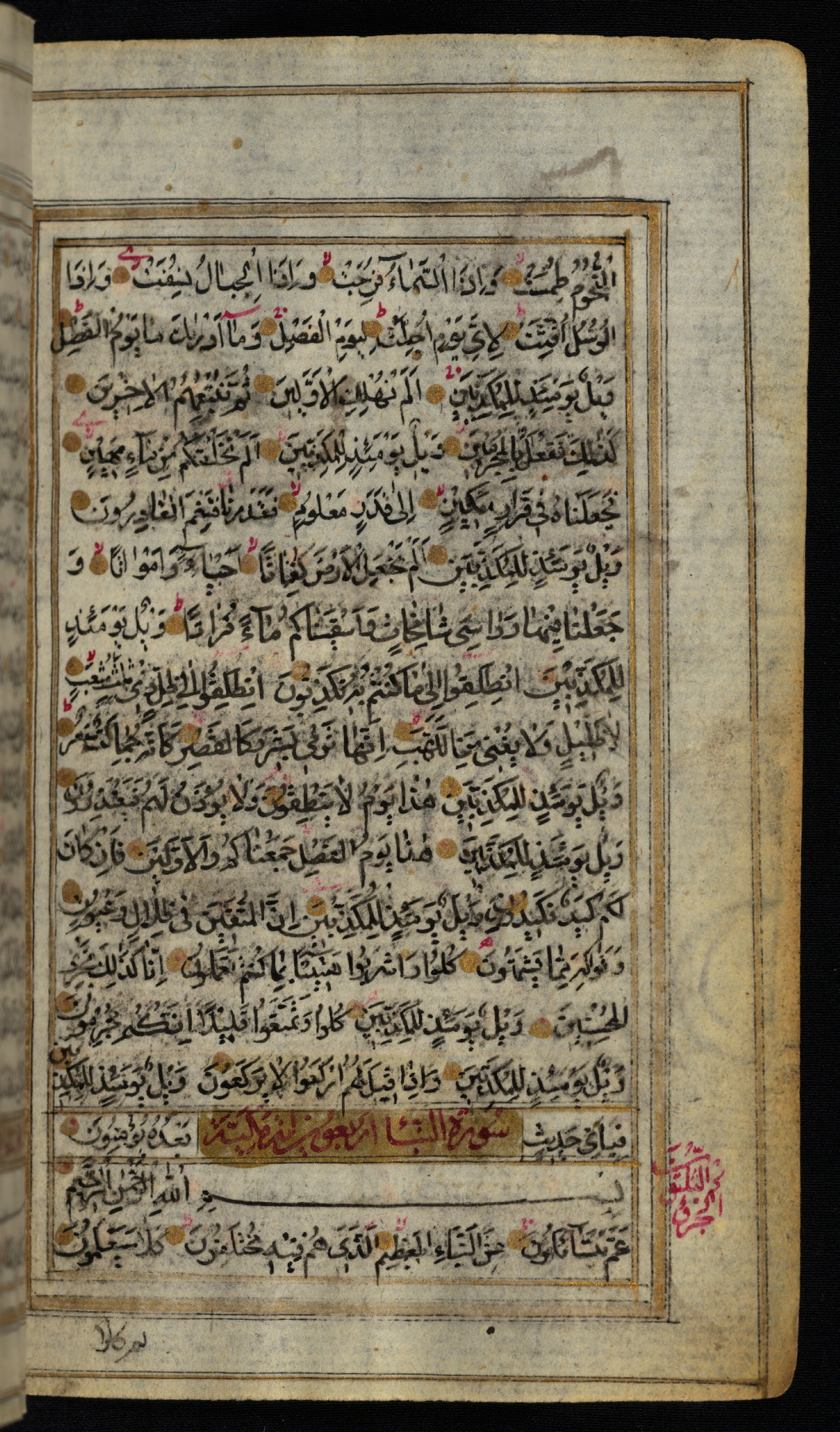 This small copy of the Qur'an was penned by an anonymous scribe in Iran in the thirteenth century AH / nineteenth century CE.