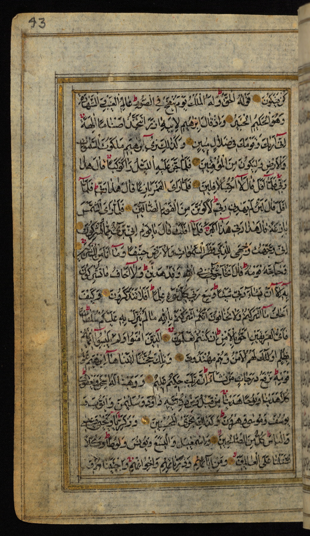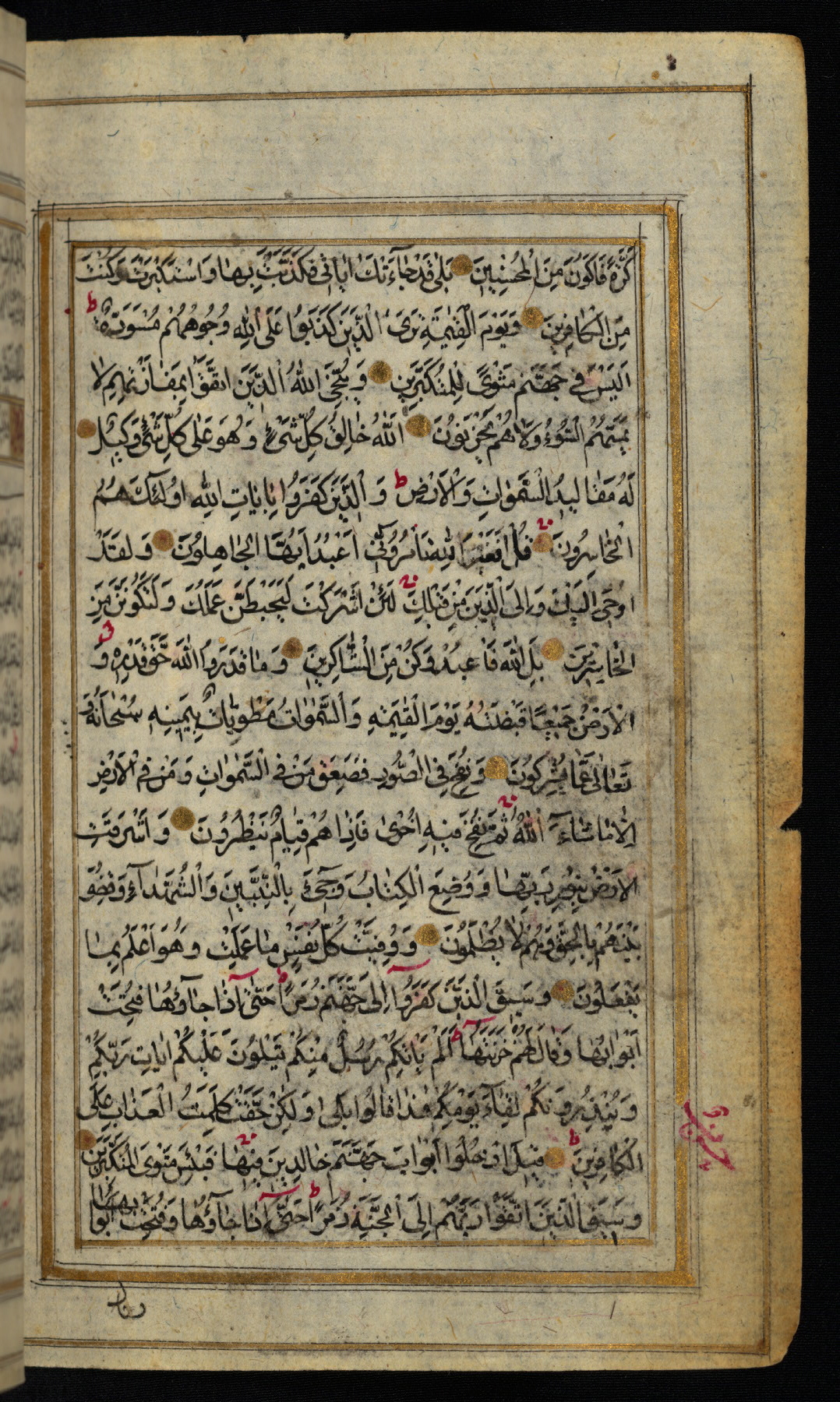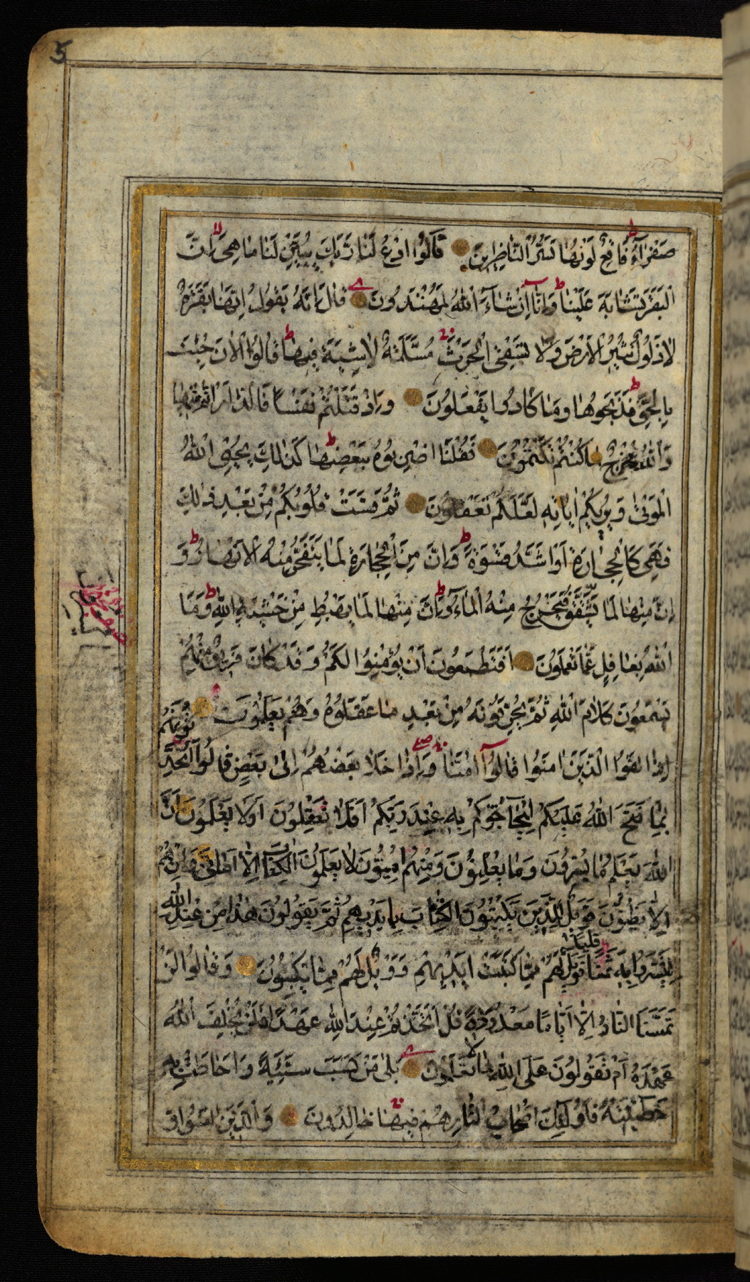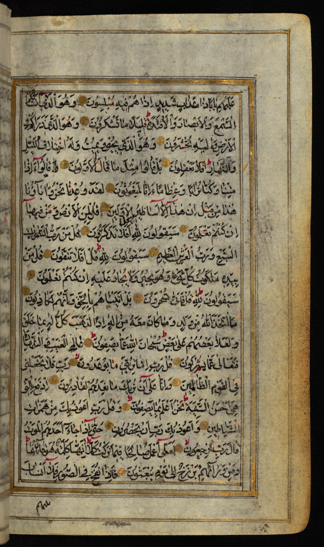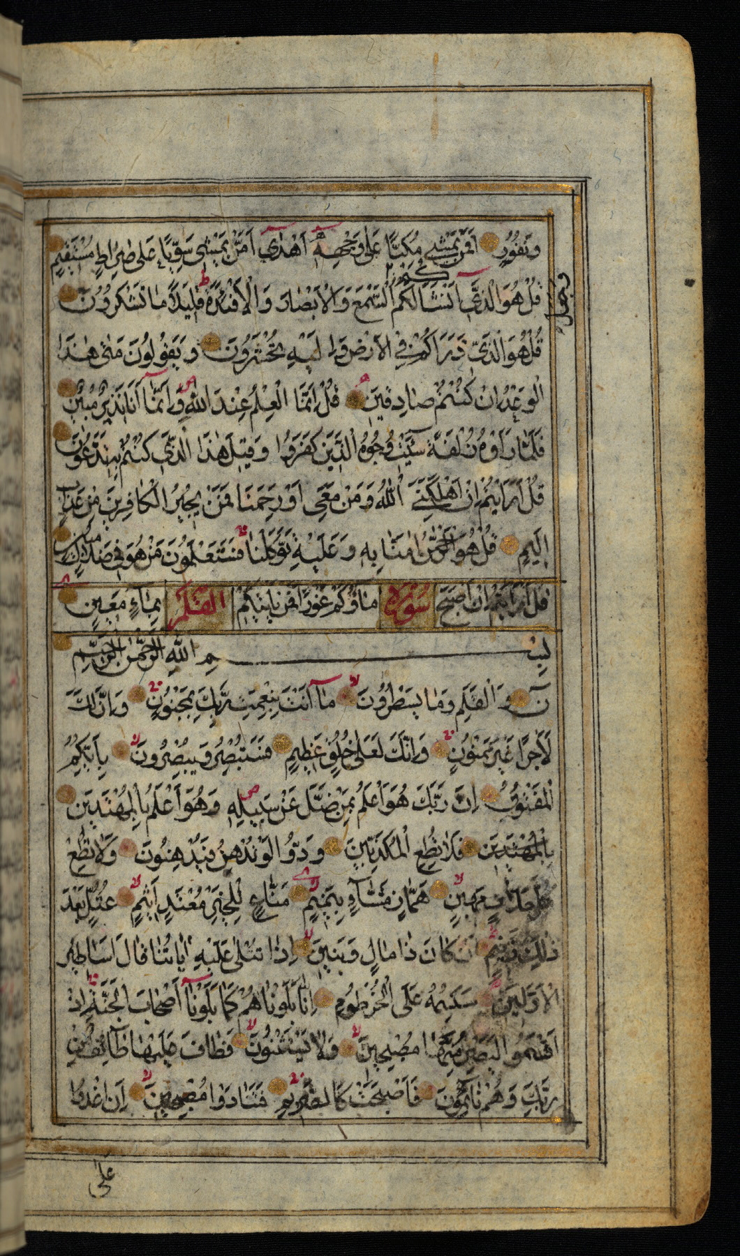 This small copy of the Qur'an was penned by an anonymous scribe in Iran in the thirteenth century AH / nineteenth century CE.