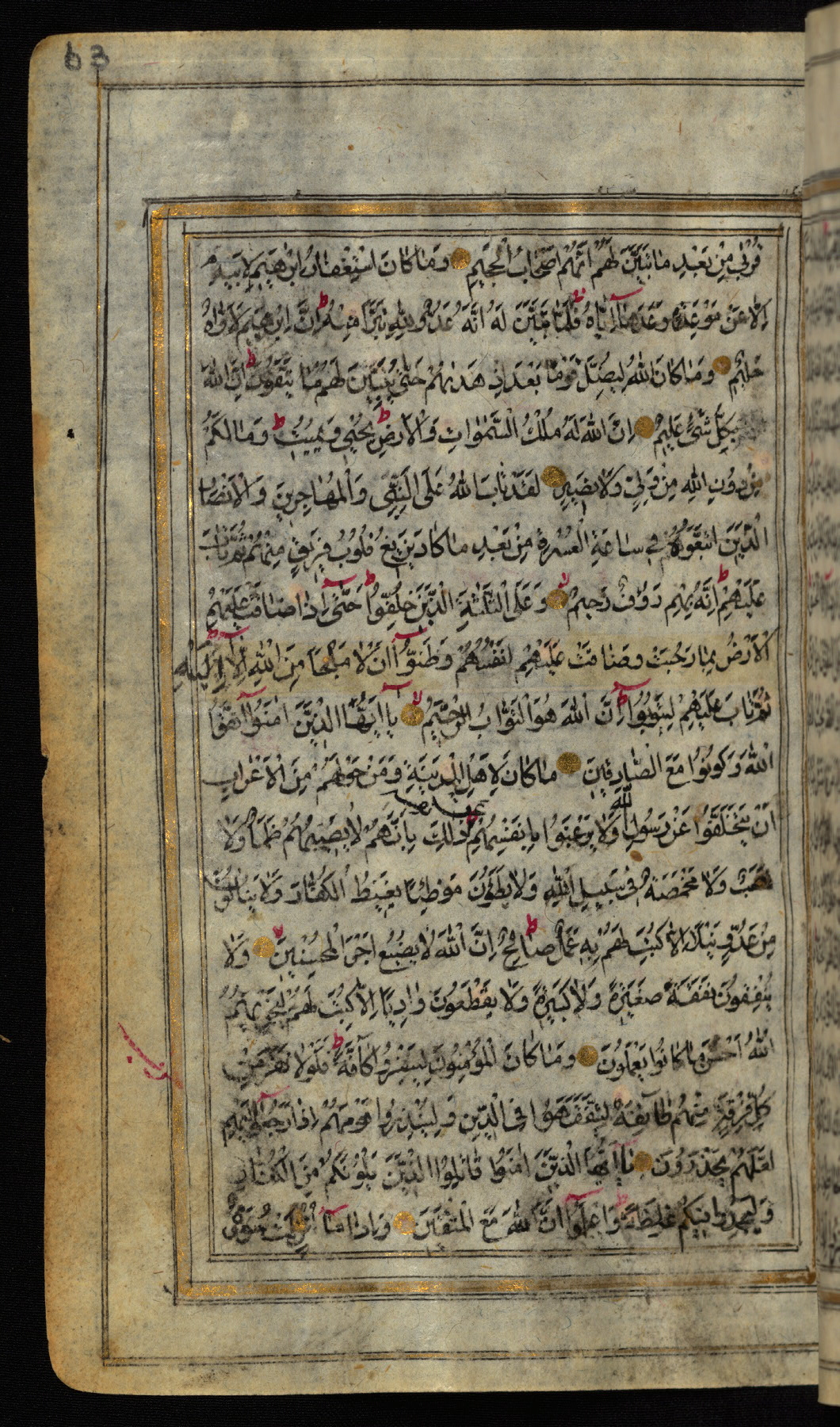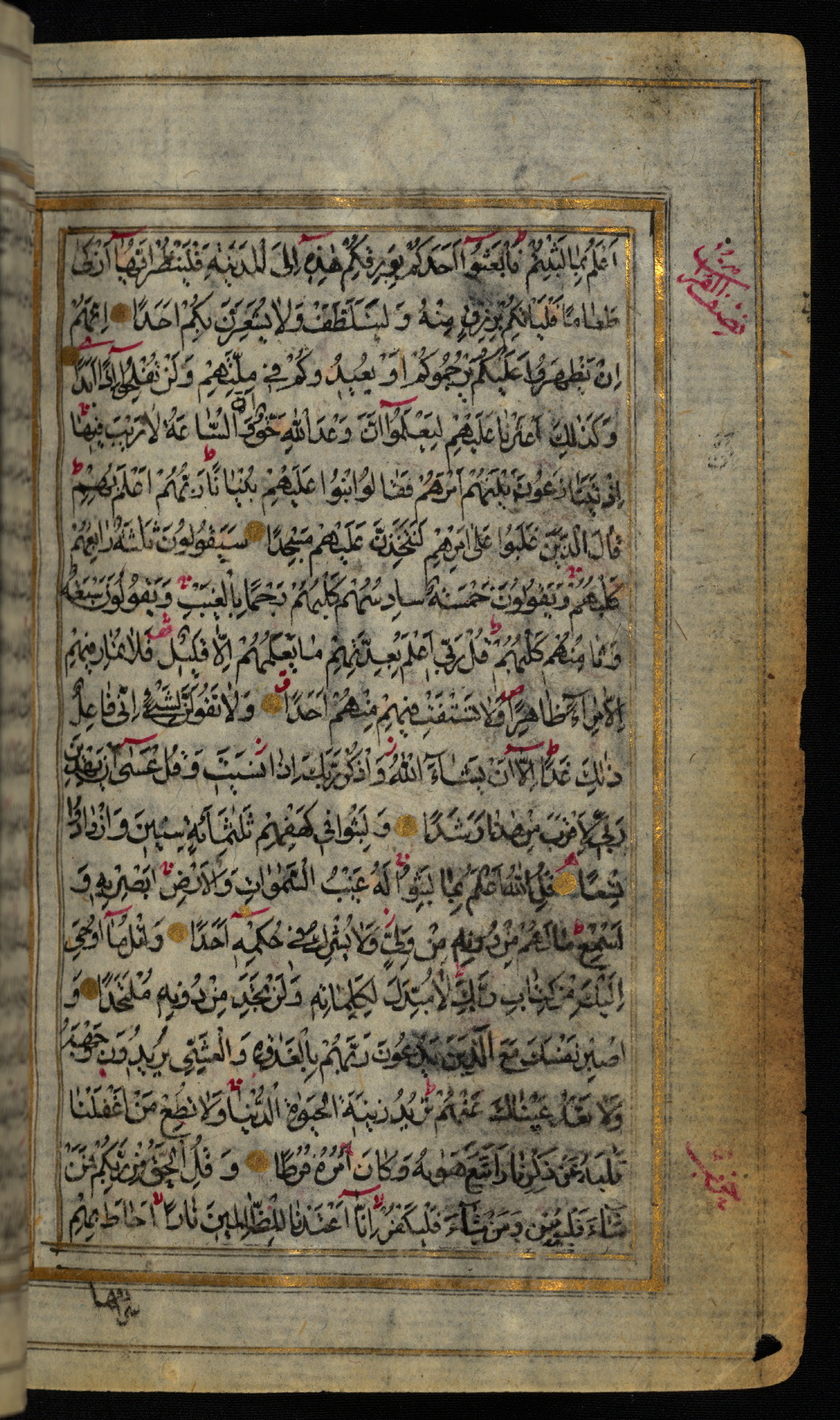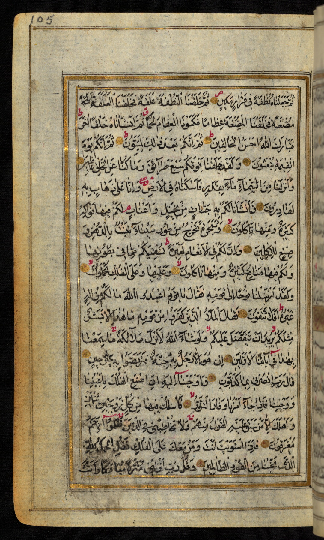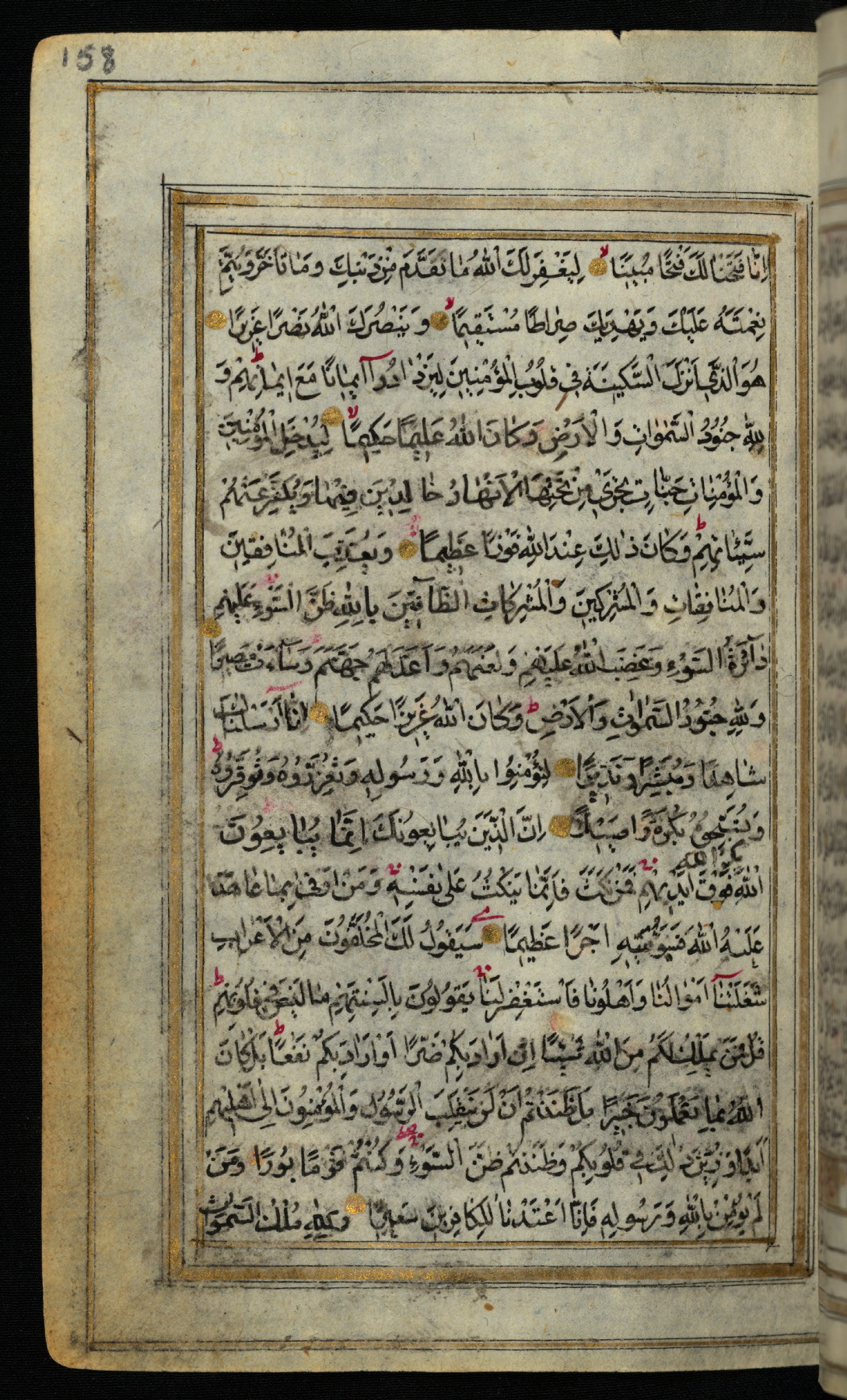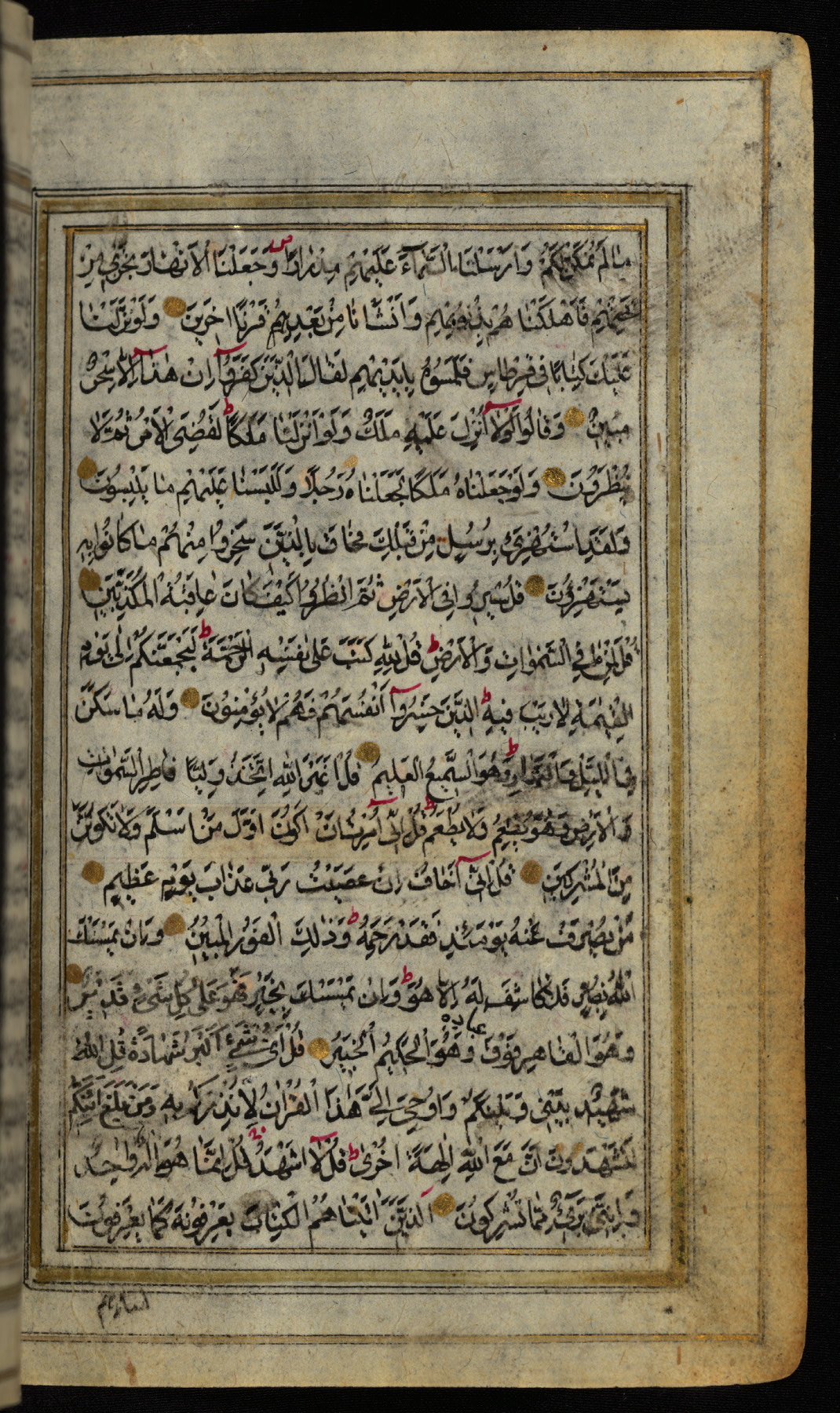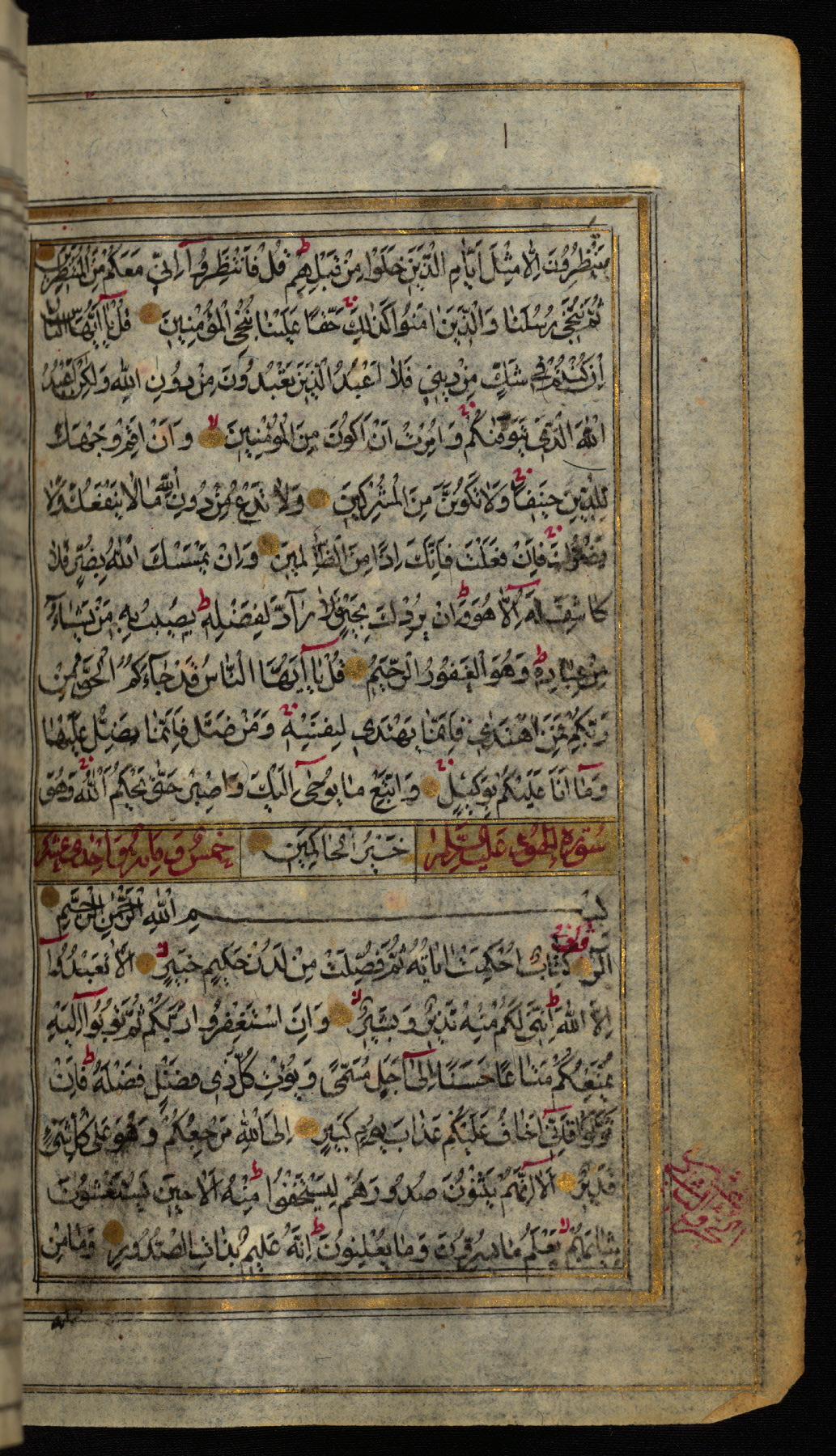 This small copy of the Qur'an was penned by an anonymous scribe in Iran in the thirteenth century AH / nineteenth century CE.