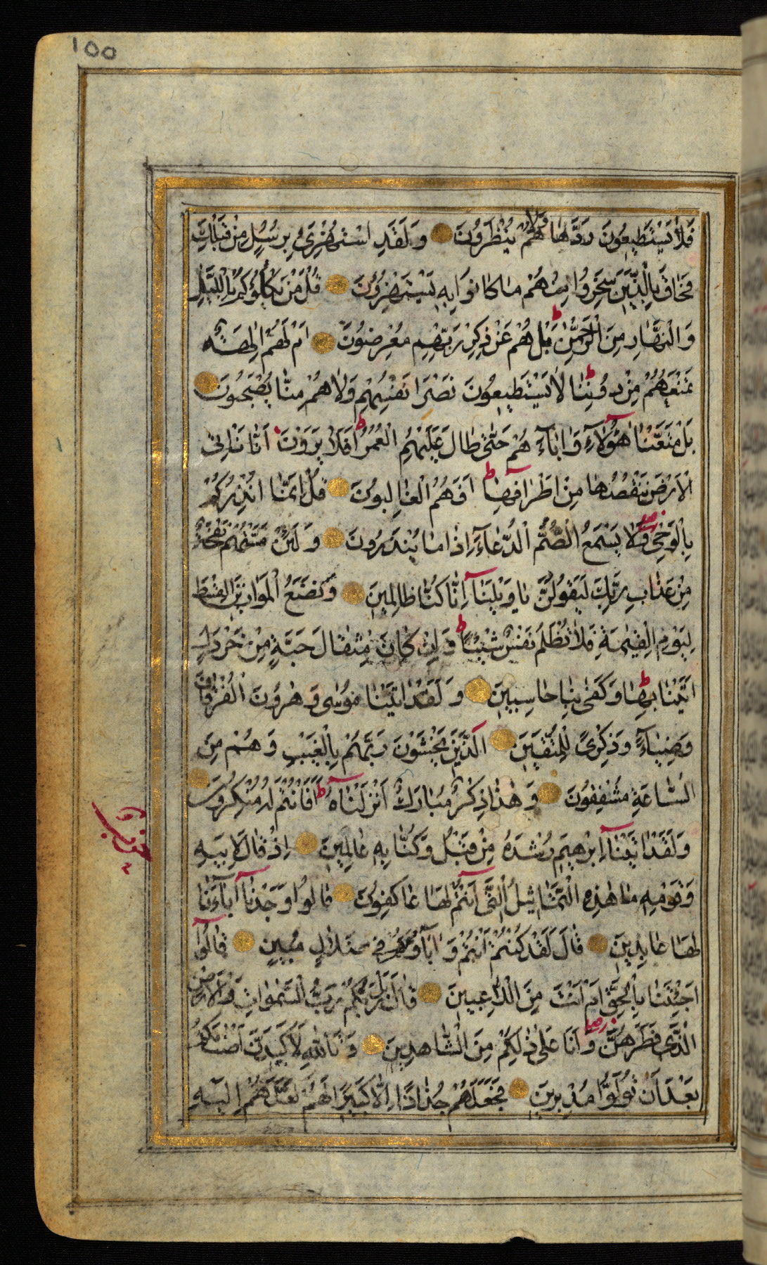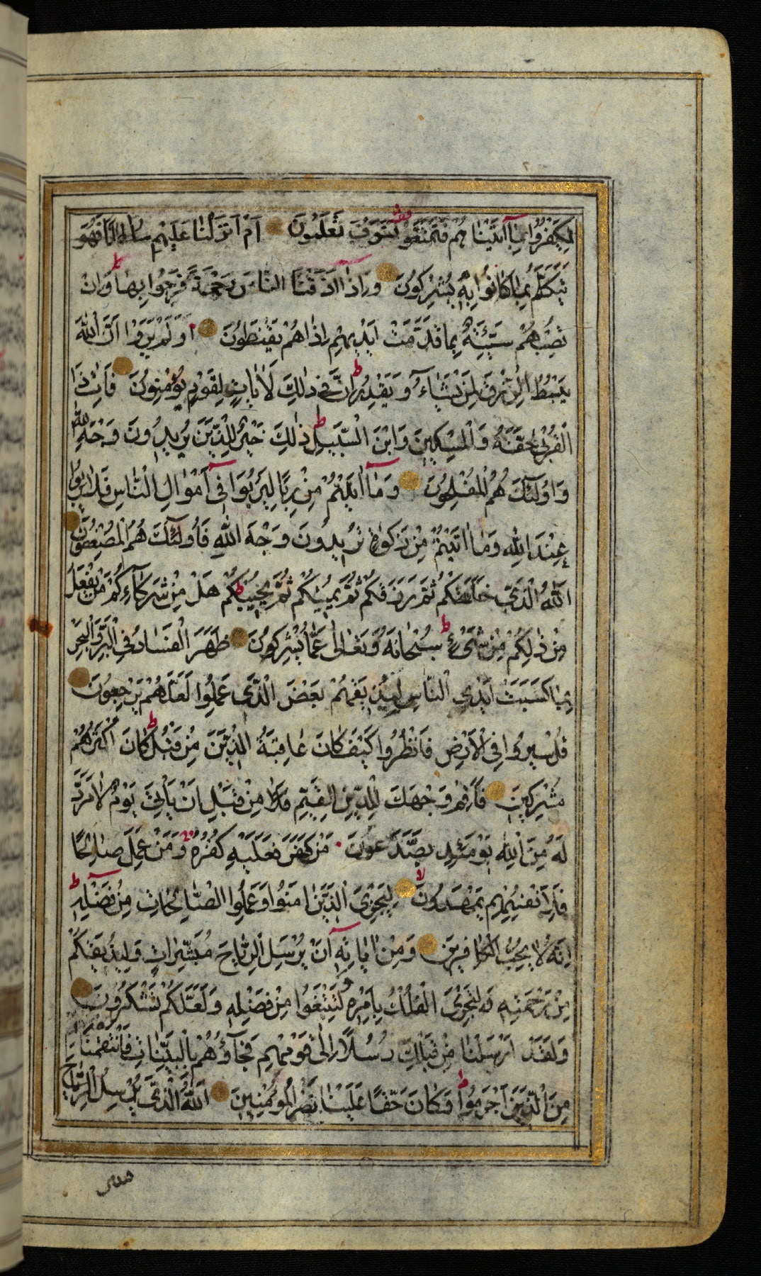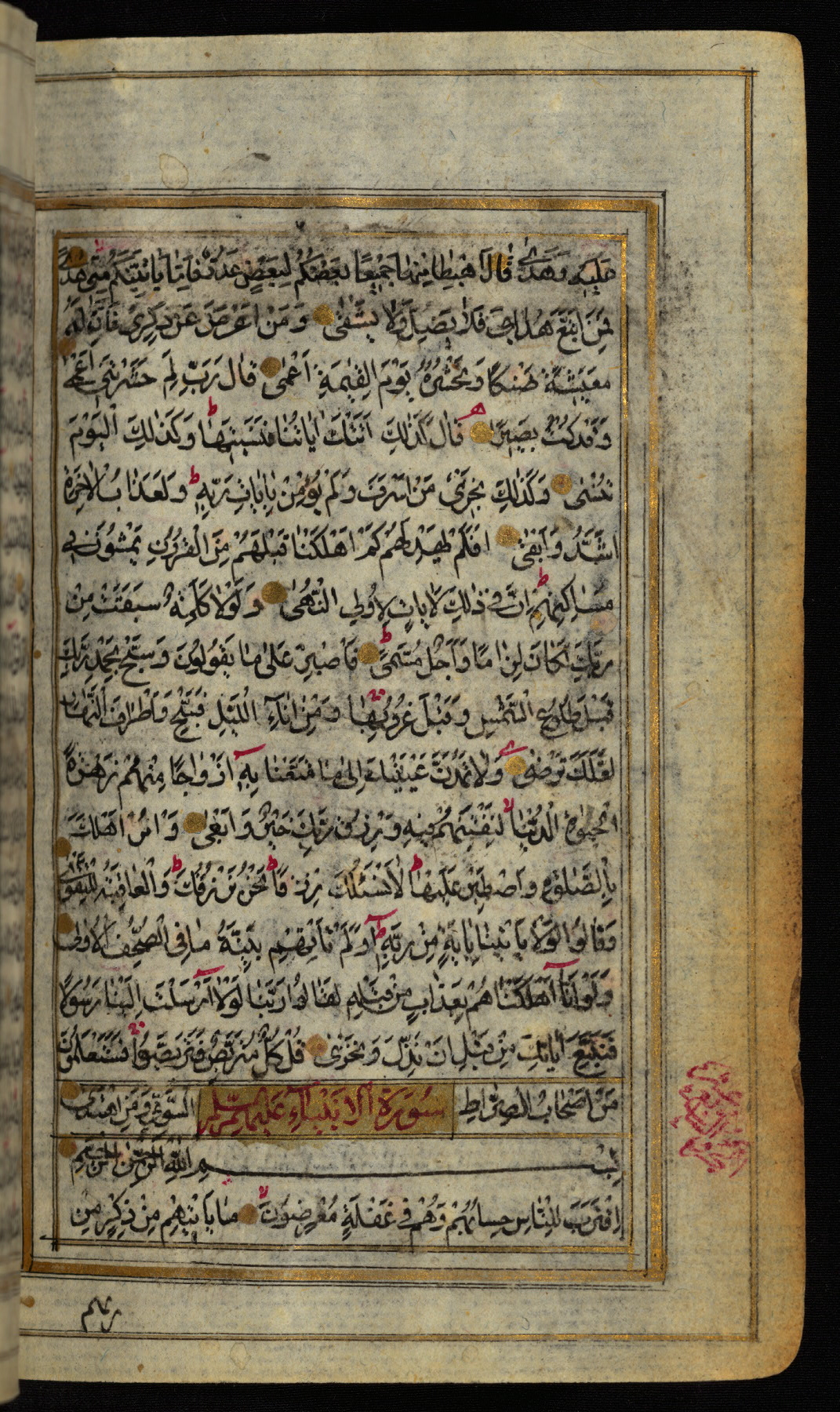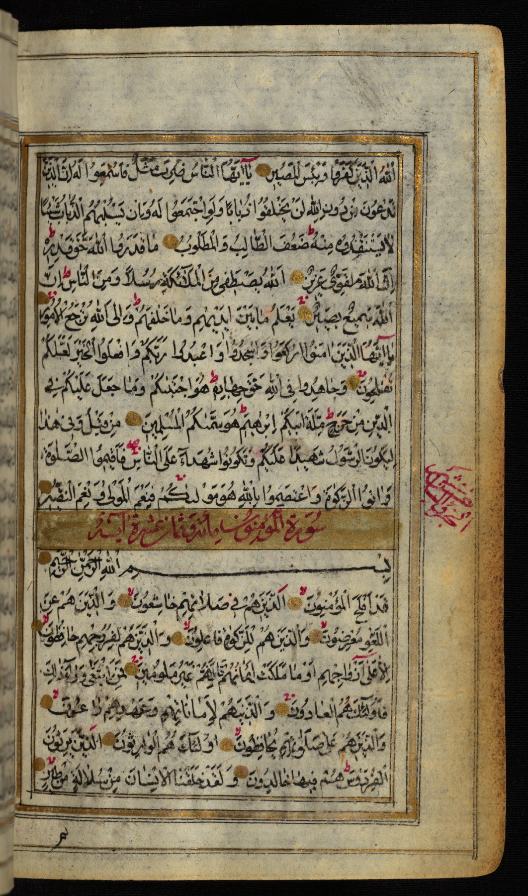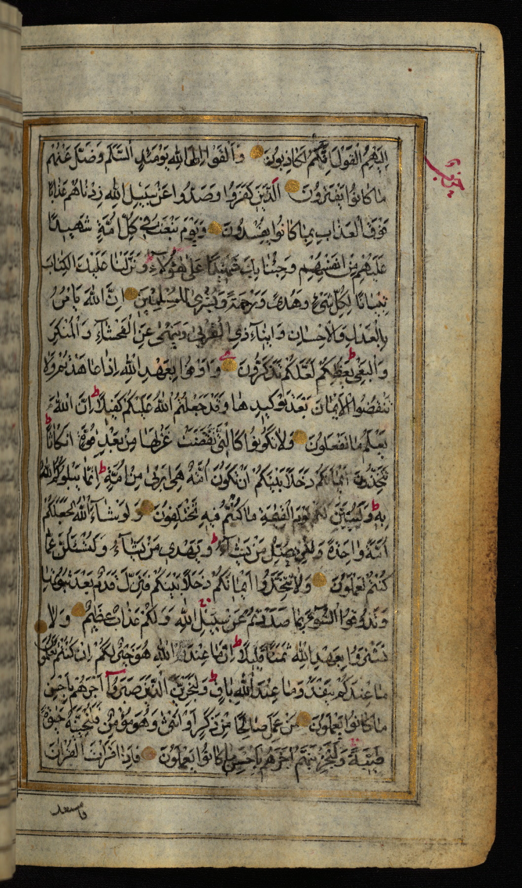 This small copy of the Qur'an was penned by an anonymous scribe in Iran in the thirteenth century AH / nineteenth century CE.