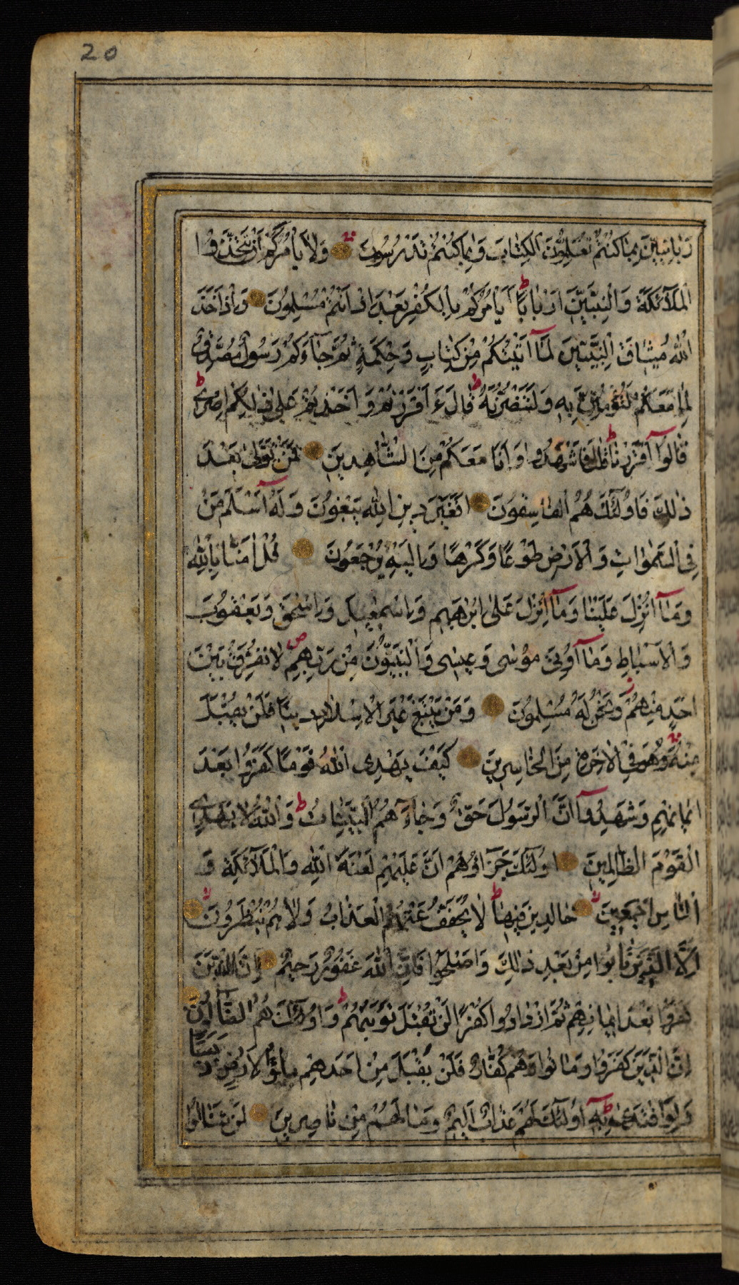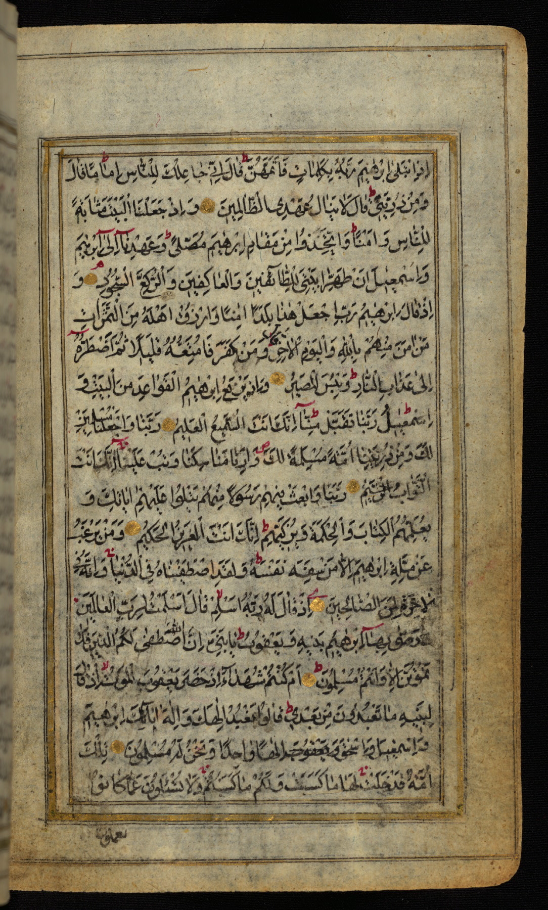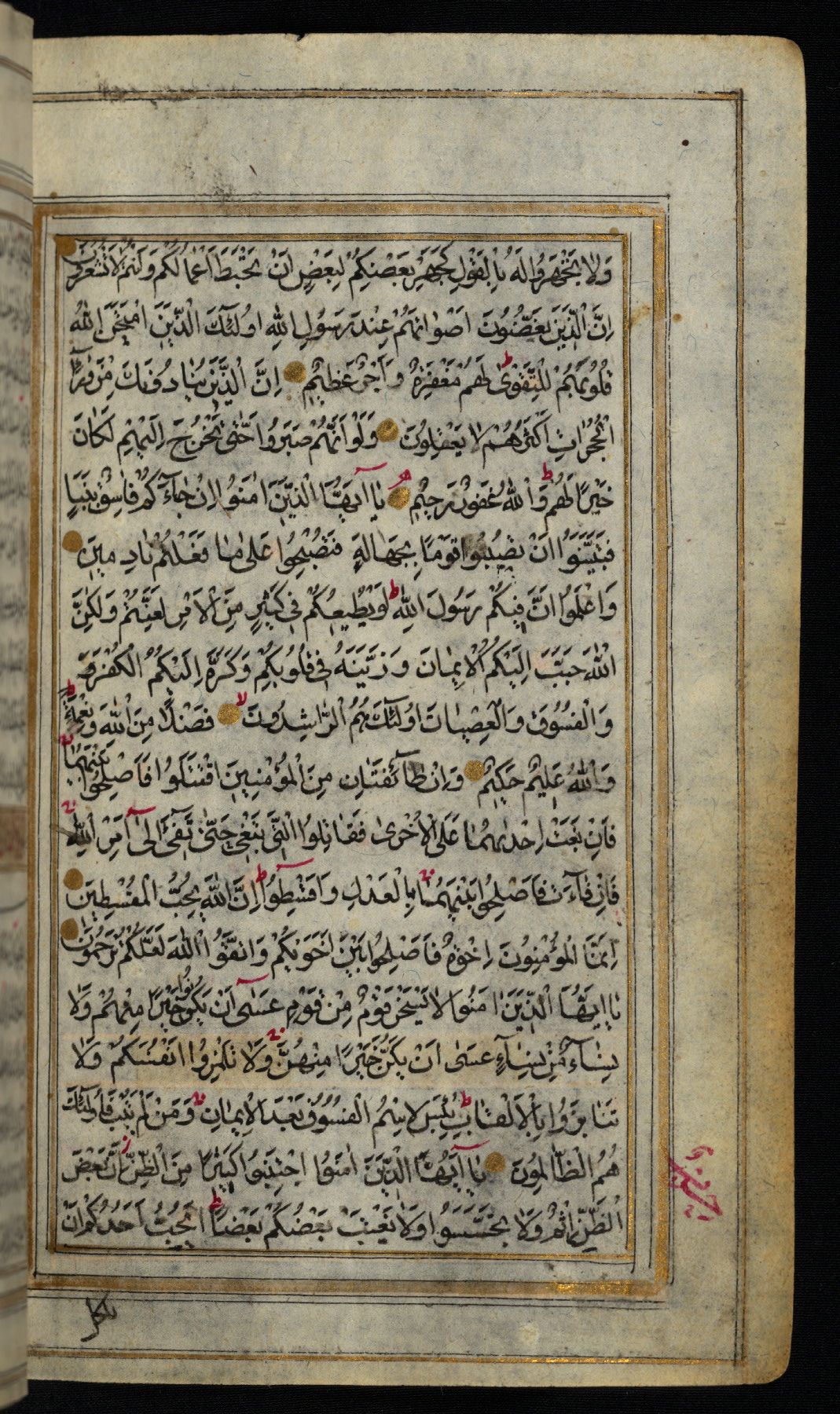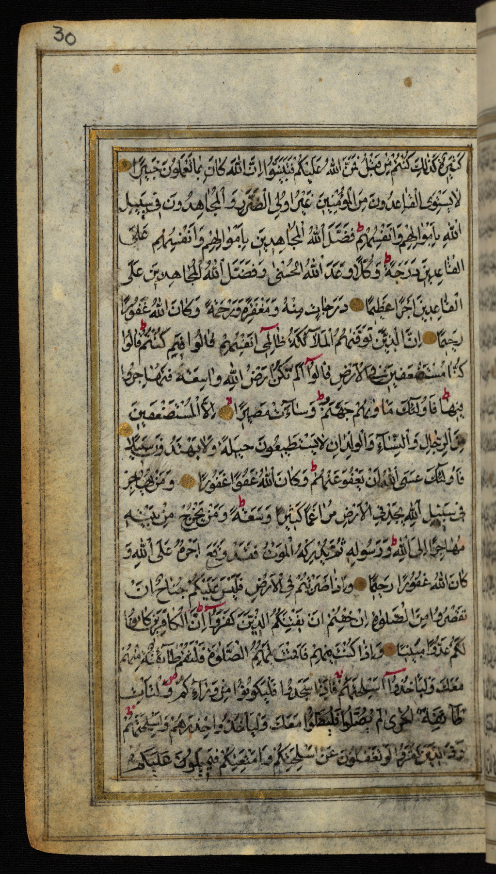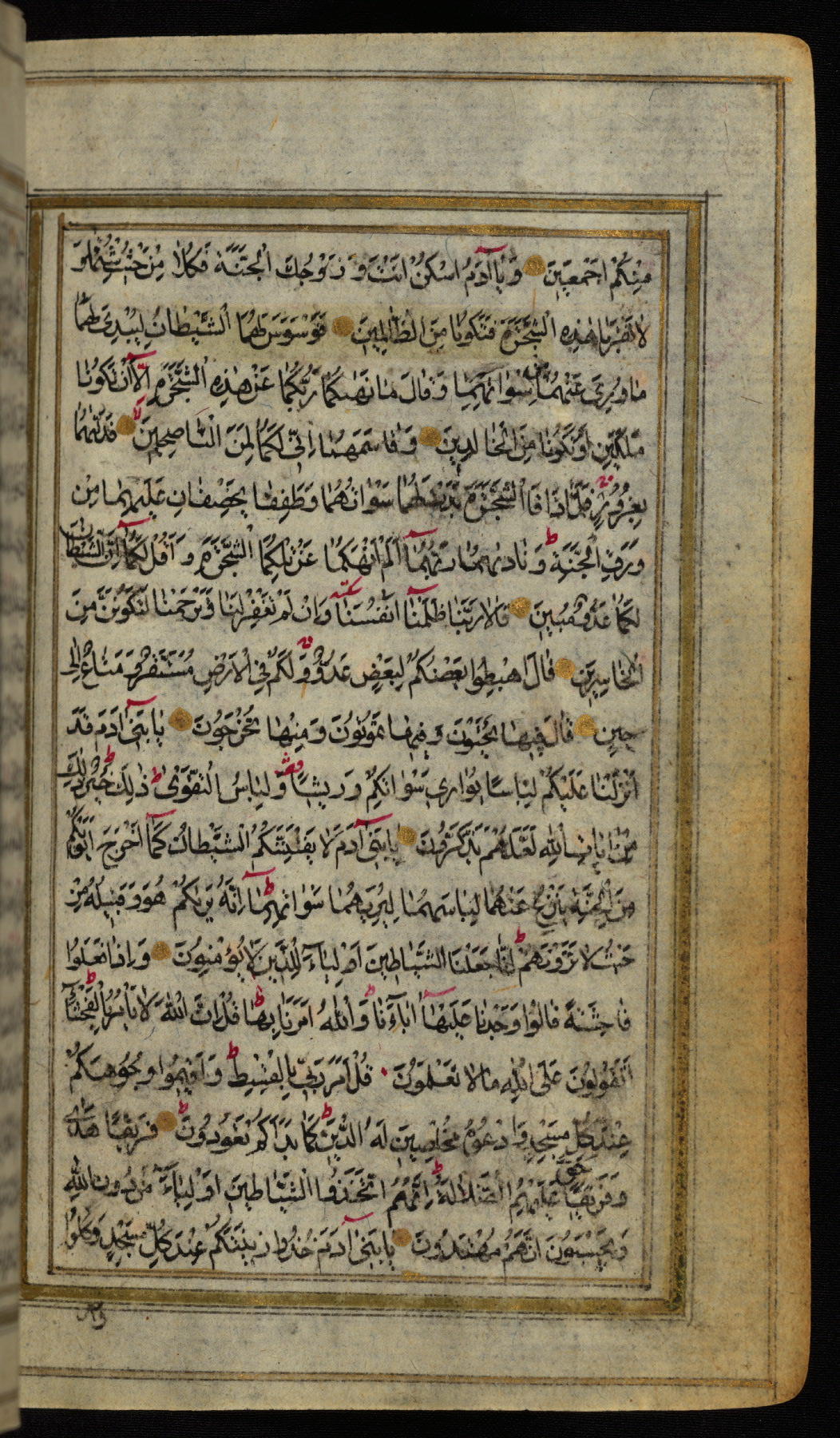 This small copy of the Qur'an was penned by an anonymous scribe in Iran in the thirteenth century AH / nineteenth century CE.