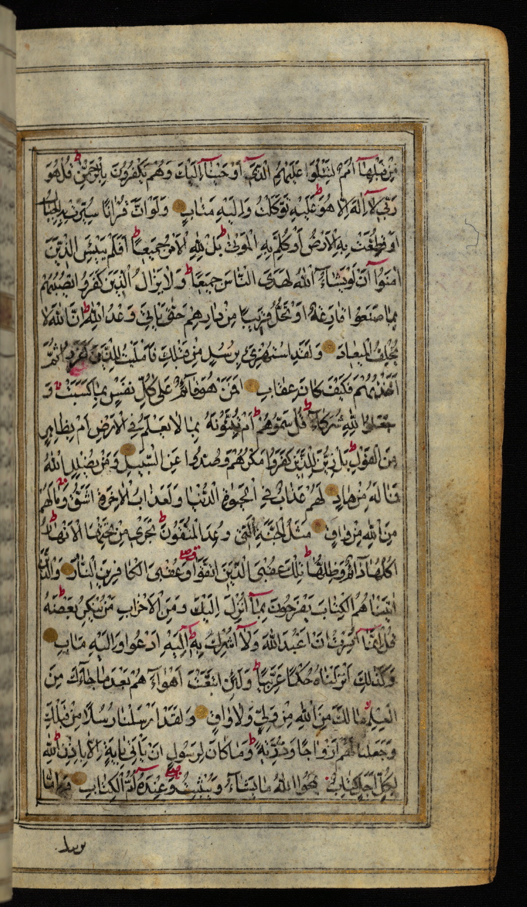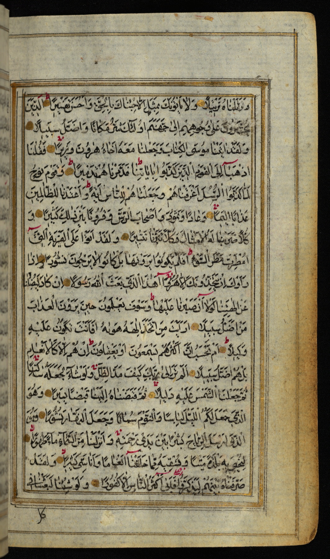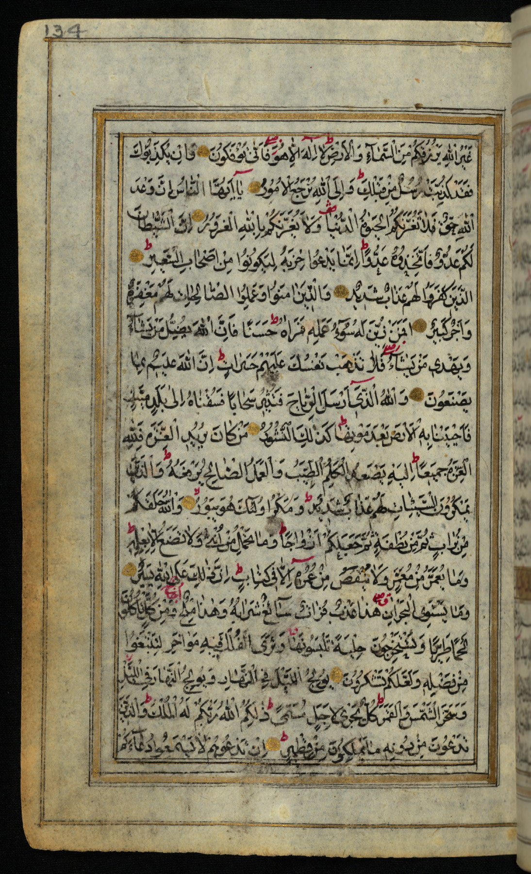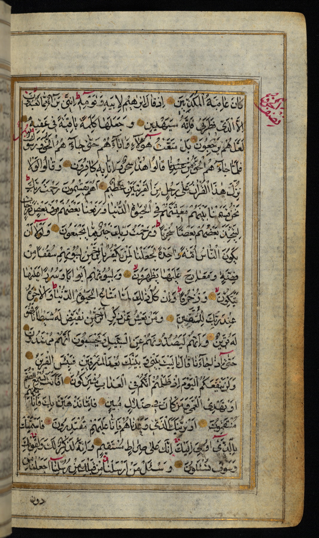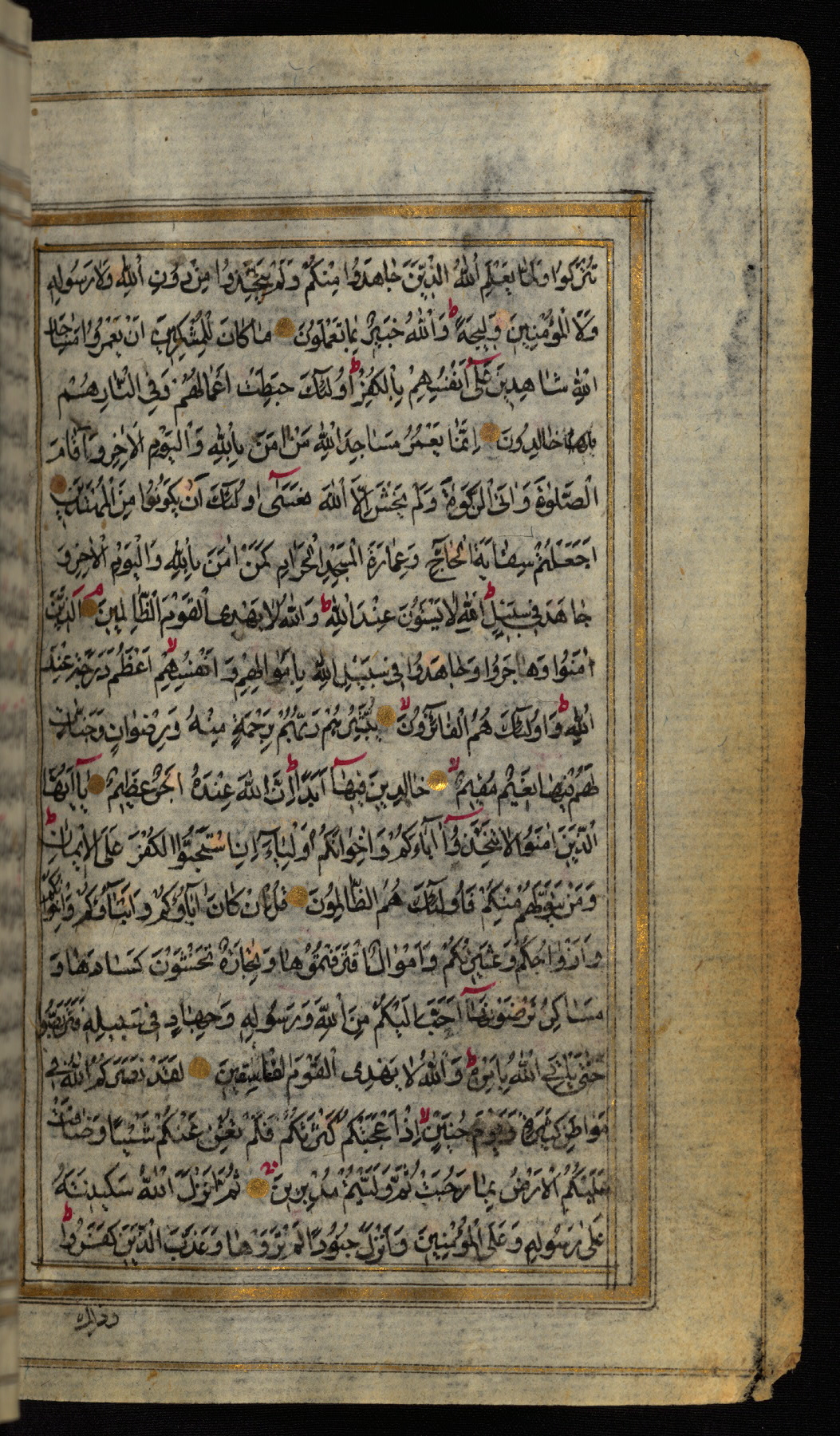 This small copy of the Qur'an was penned by an anonymous scribe in Iran in the thirteenth century AH / nineteenth century CE.