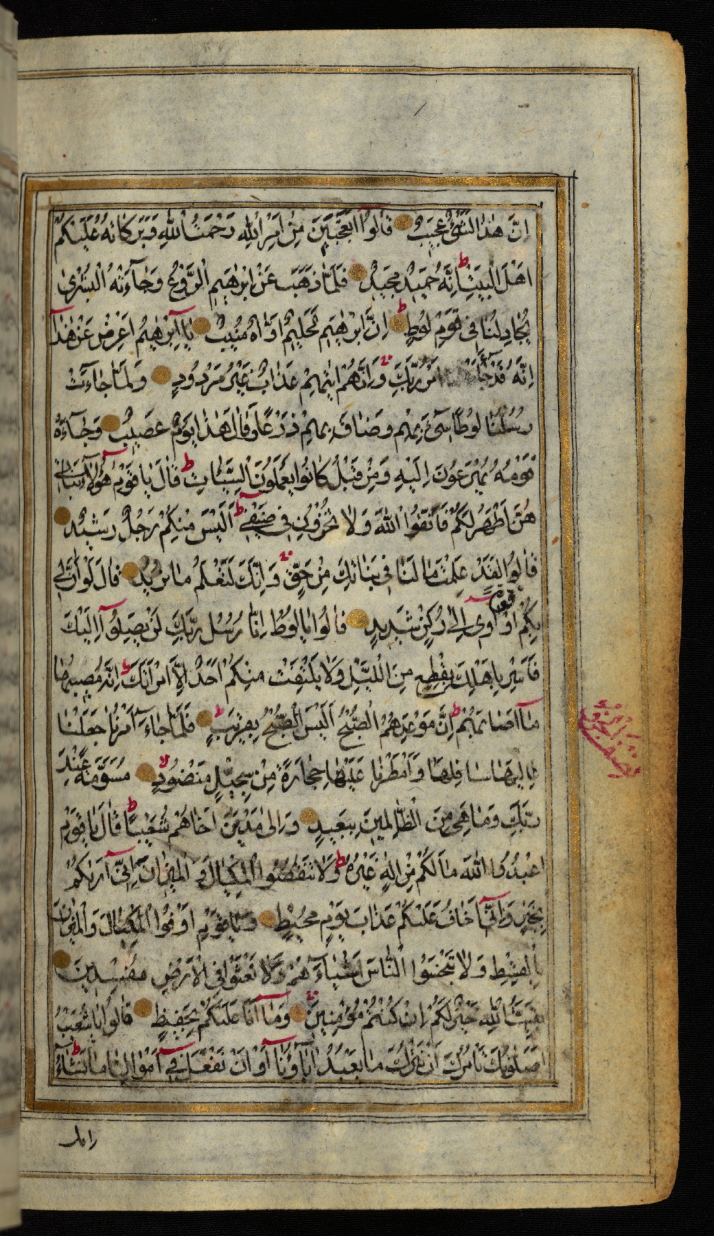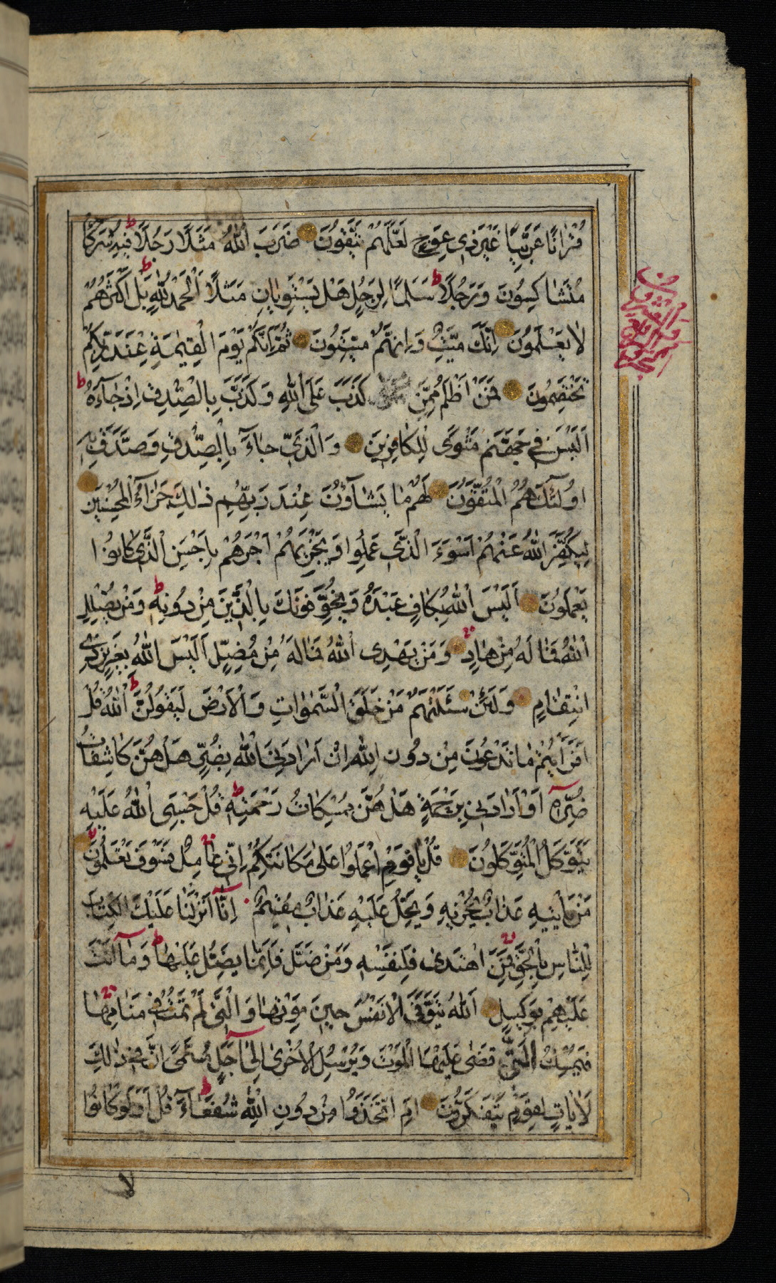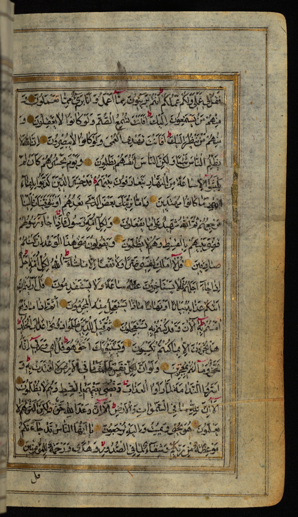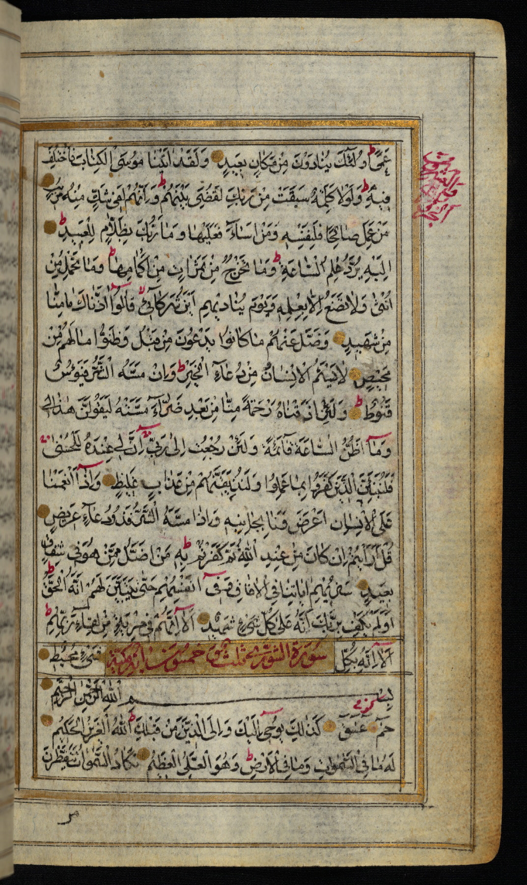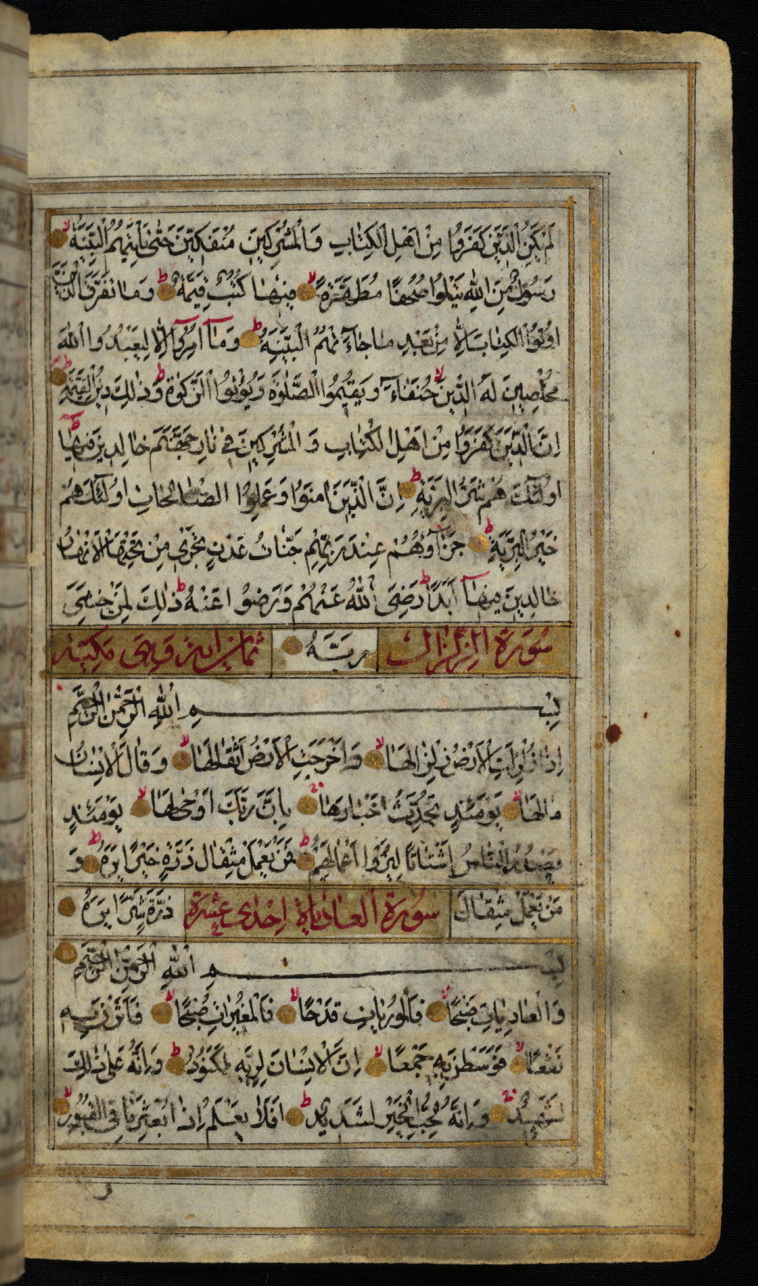 This small copy of the Qur'an was penned by an anonymous scribe in Iran in the thirteenth century AH / nineteenth century CE.