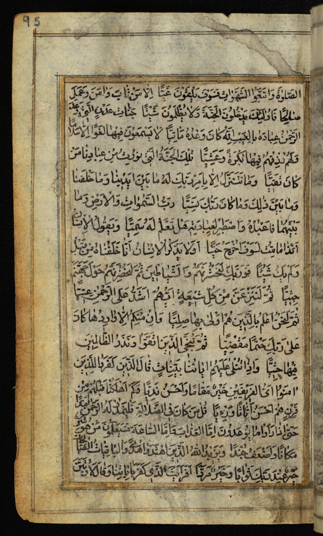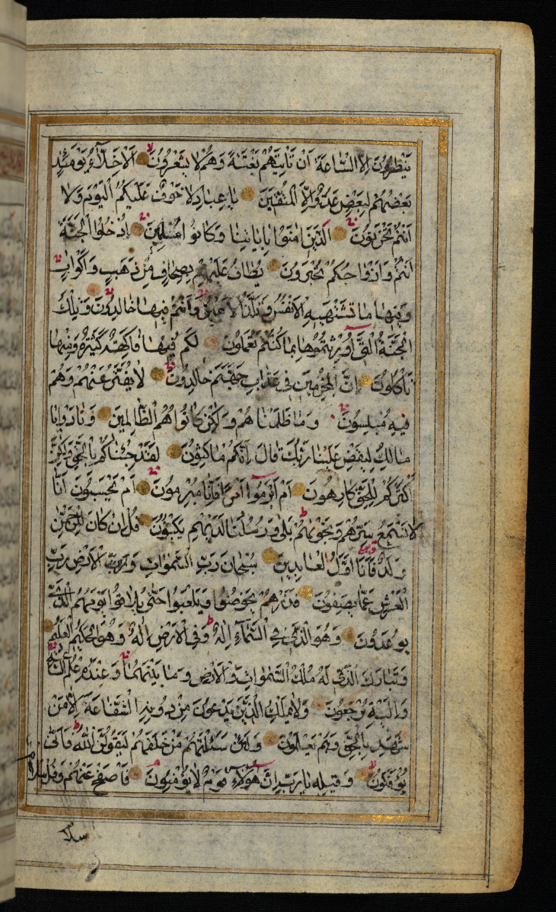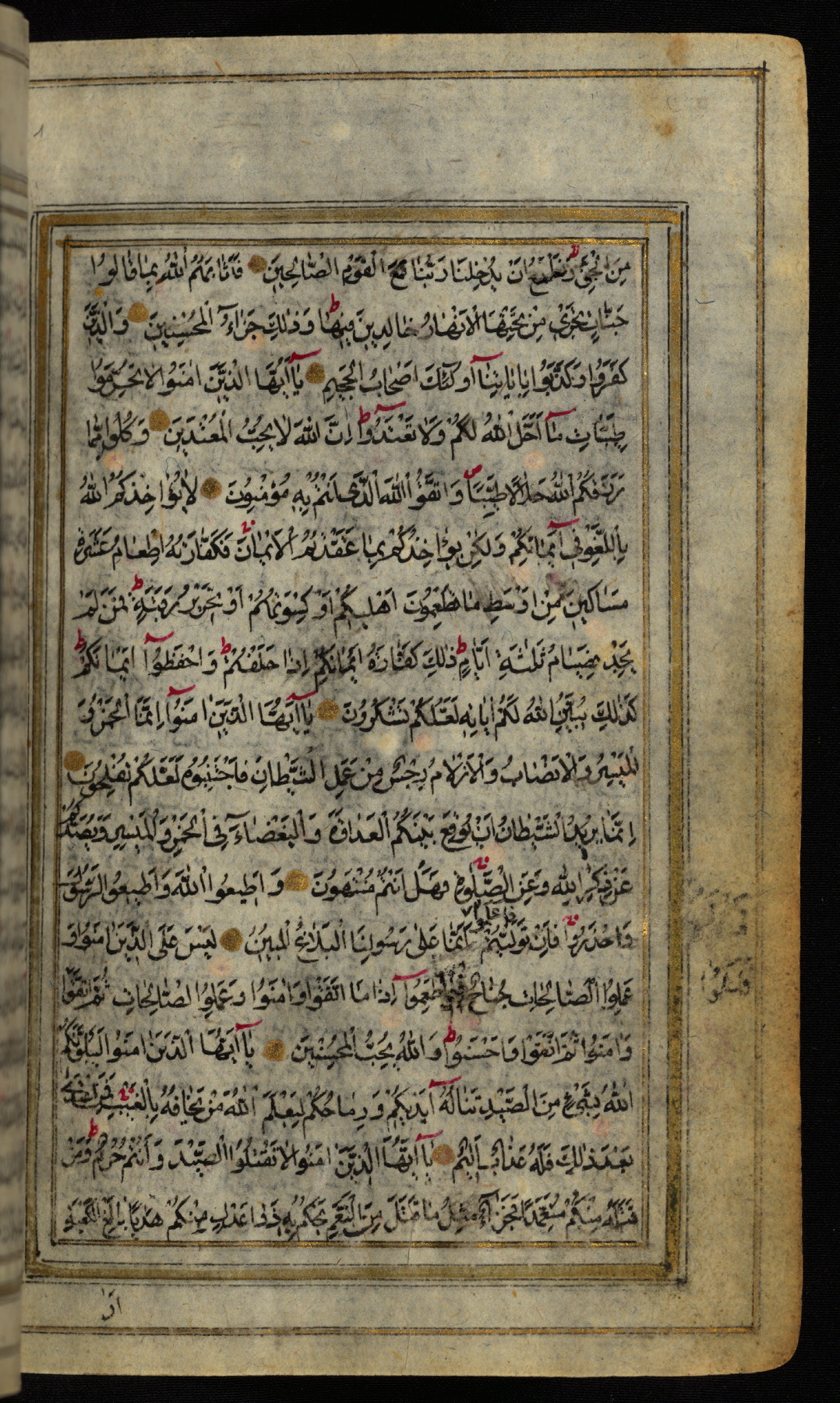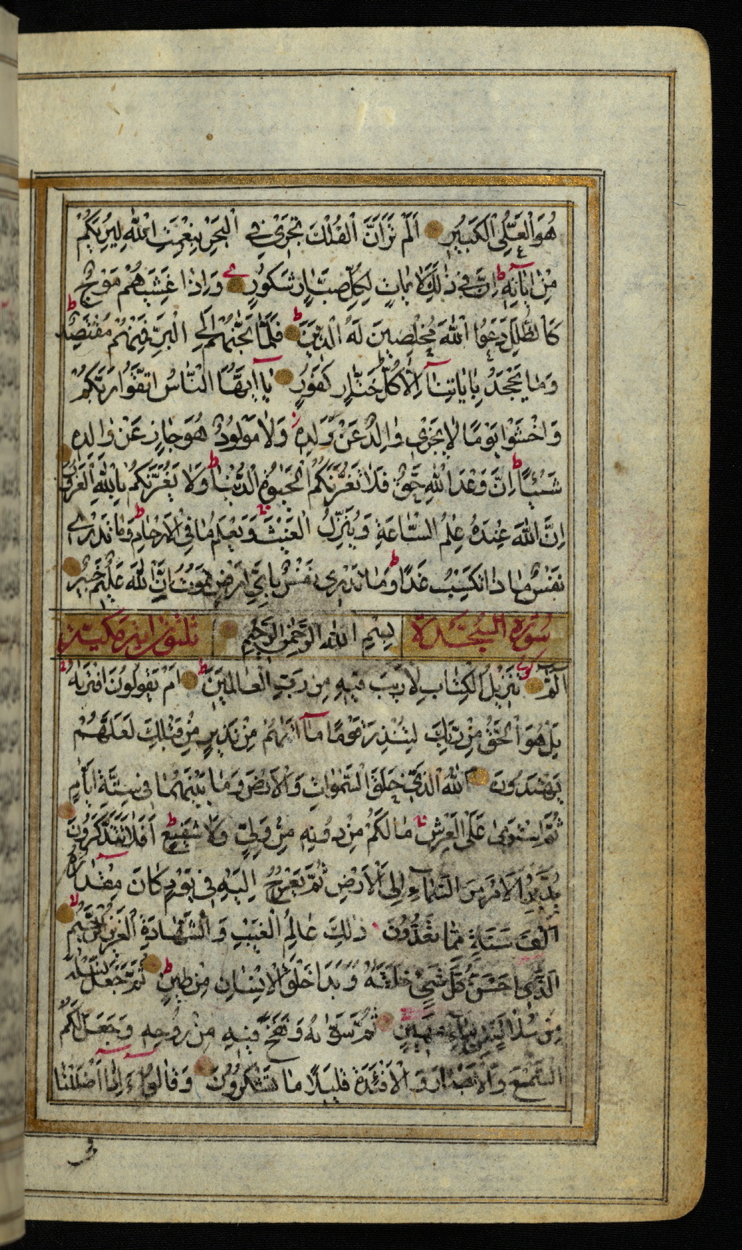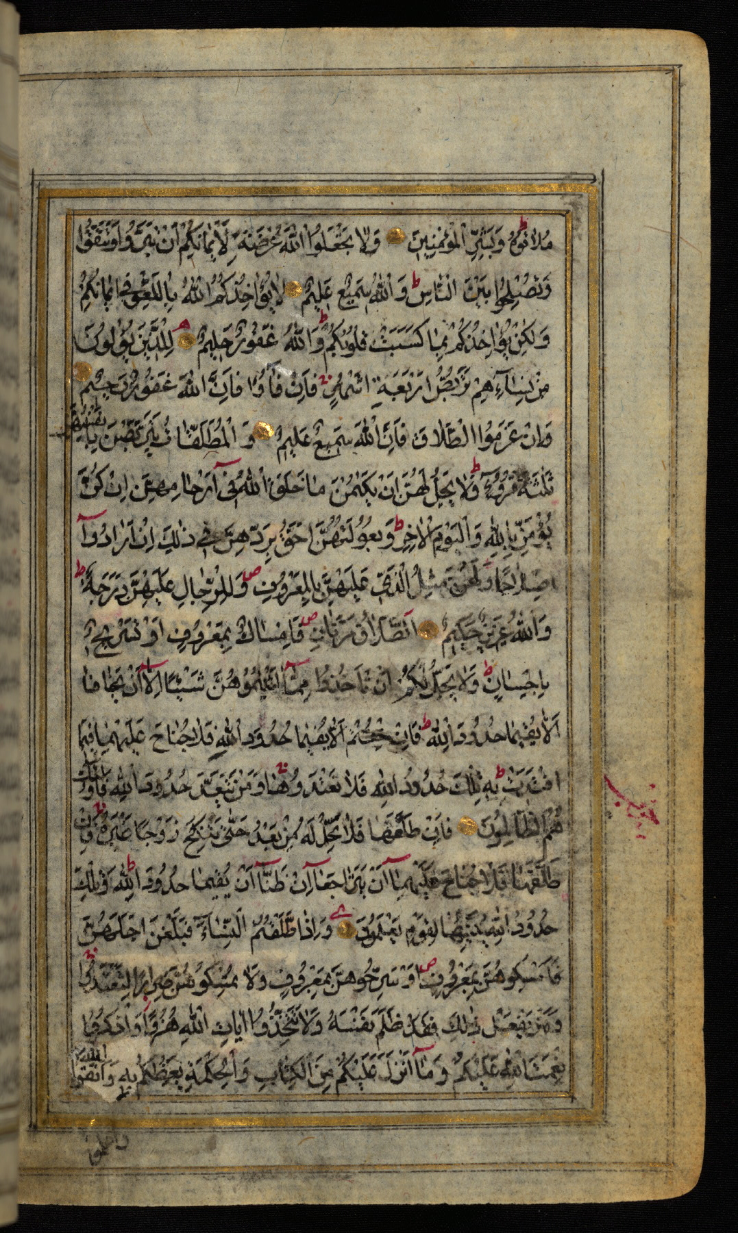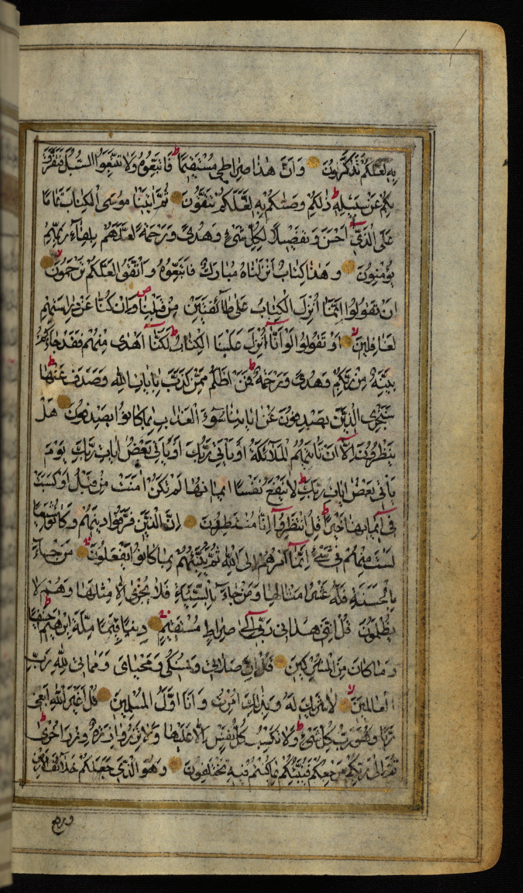 This small copy of the Qur'an was penned by an anonymous scribe in Iran in the thirteenth century AH / nineteenth century CE.