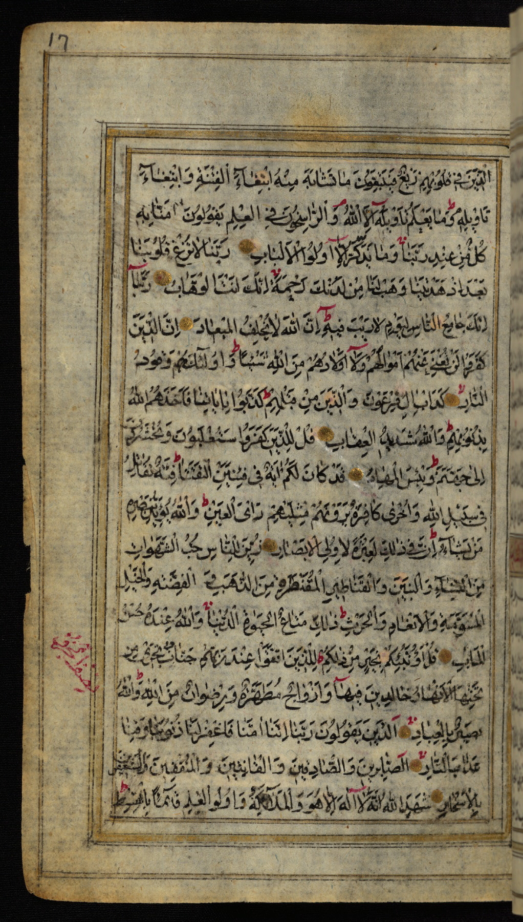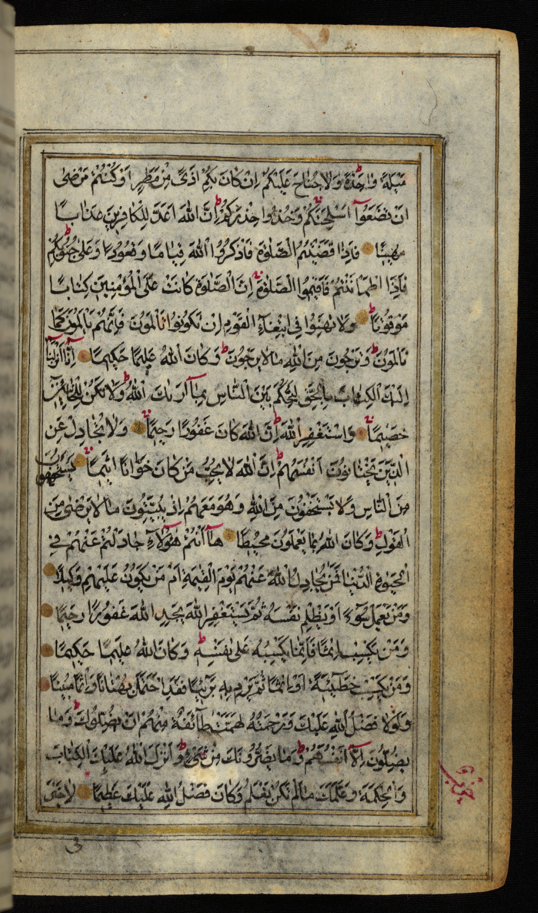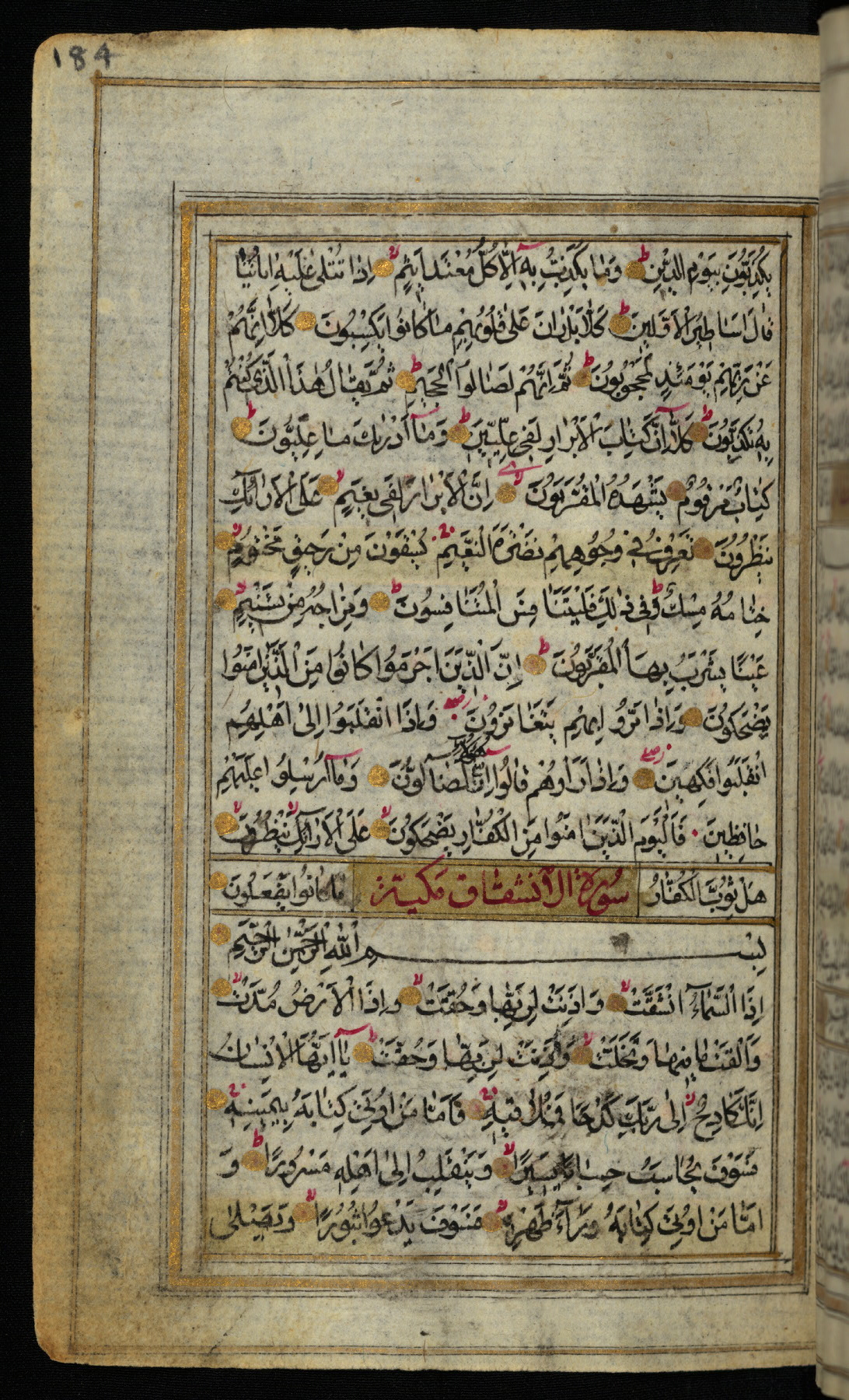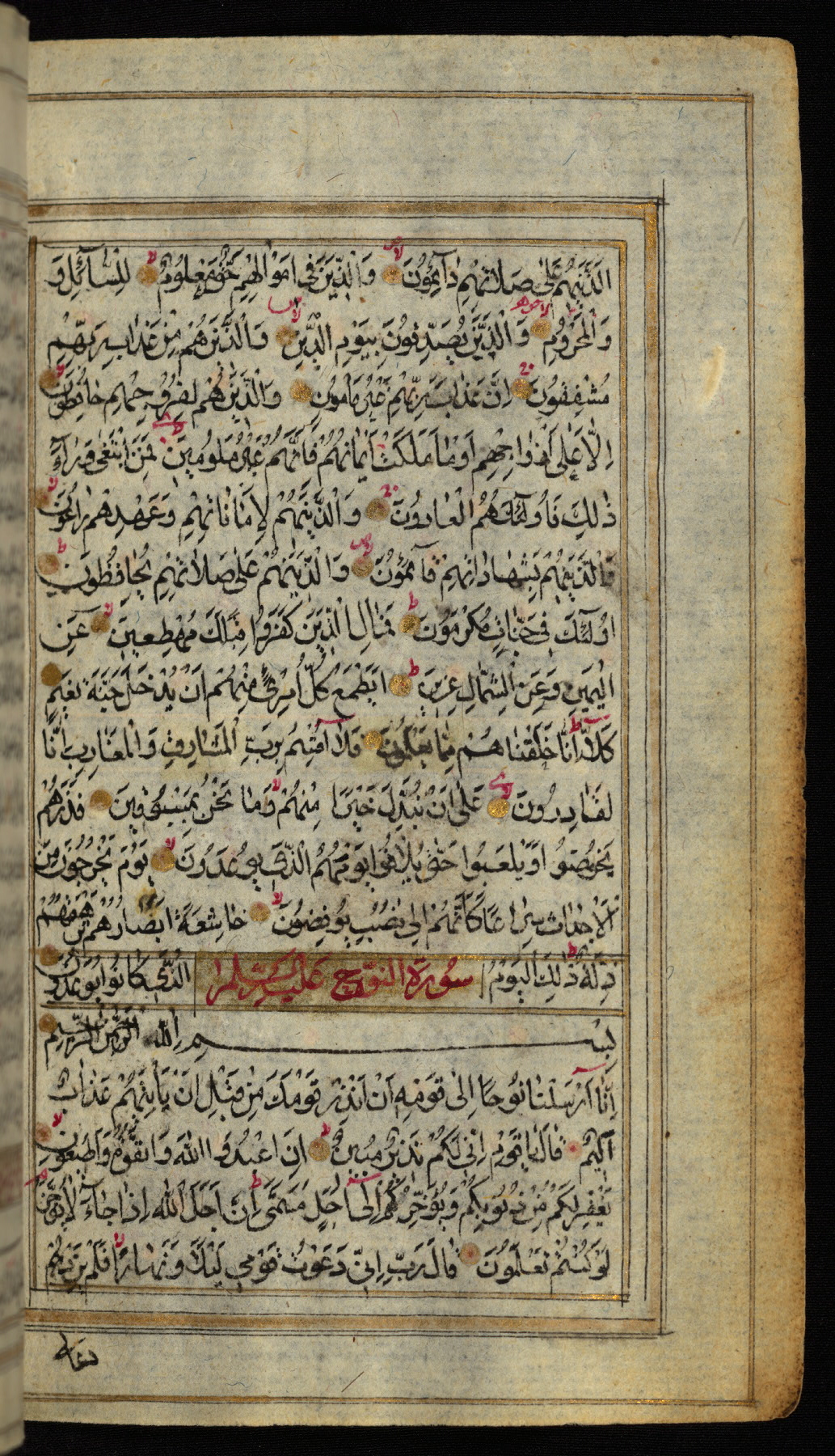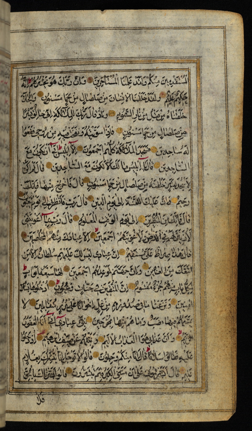This small copy of the Qur'an was penned by an anonymous scribe in Iran in the thirteenth century AH / nineteenth century CE.