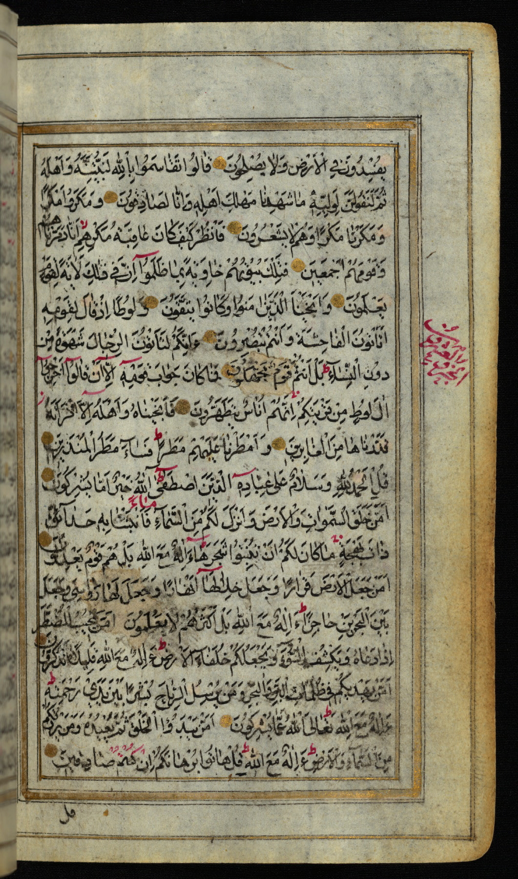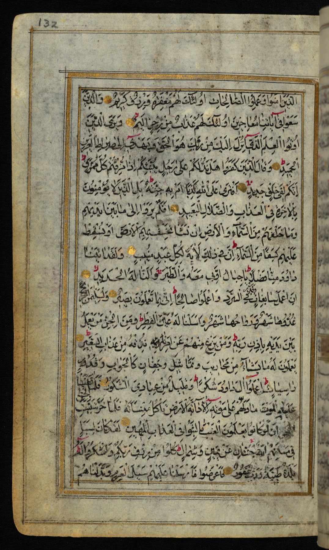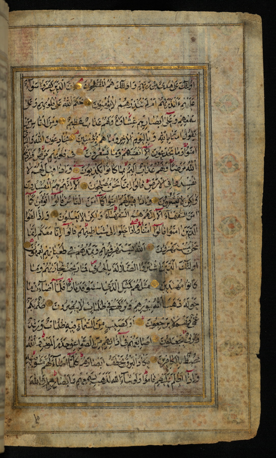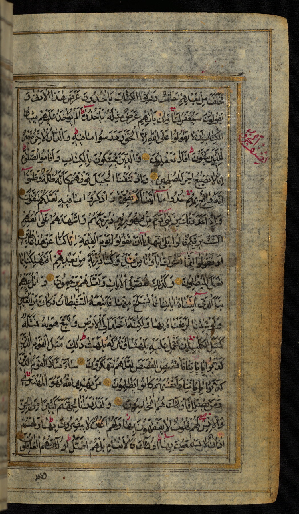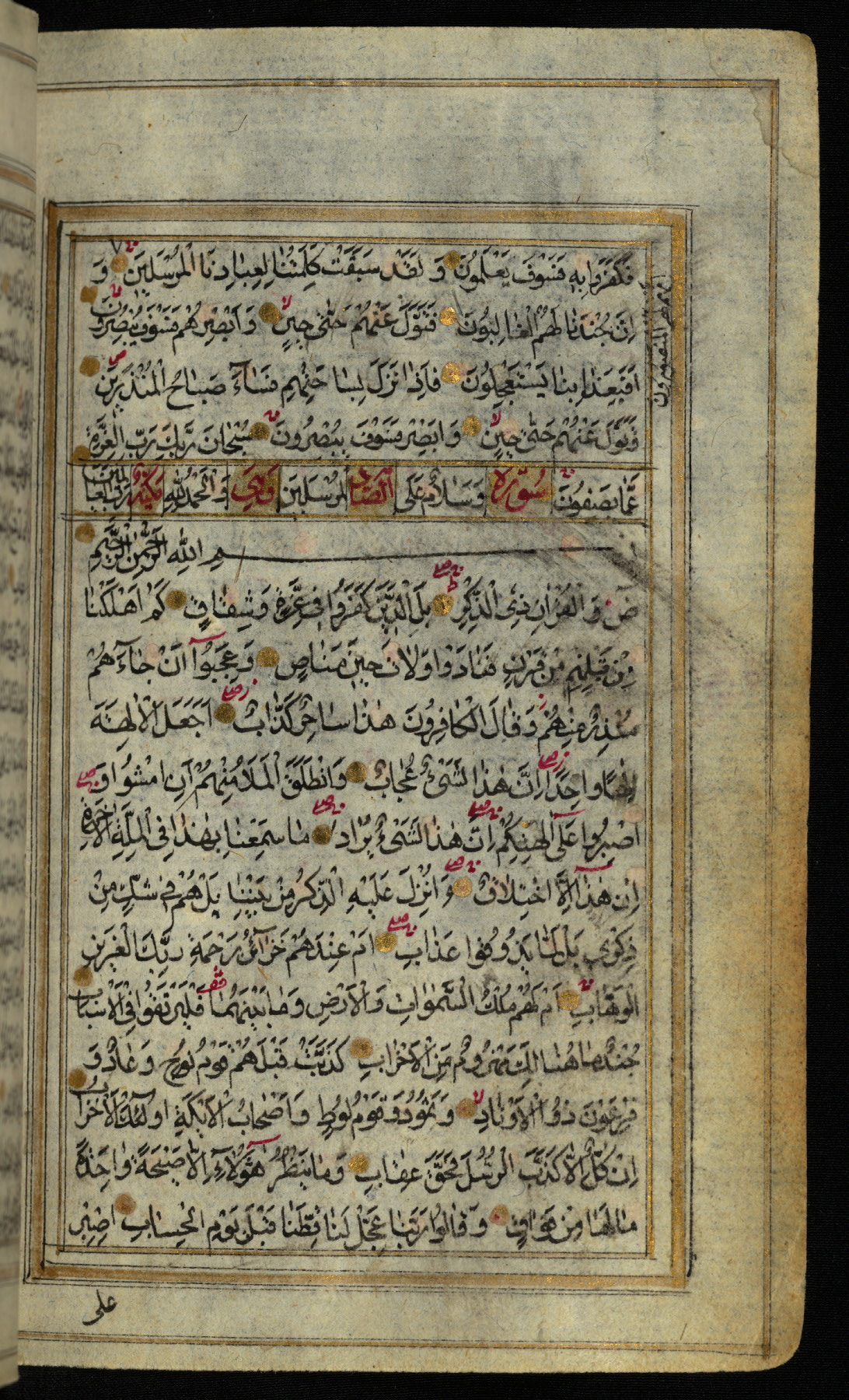 This small copy of the Qur'an was penned by an anonymous scribe in Iran in the thirteenth century AH / nineteenth century CE.