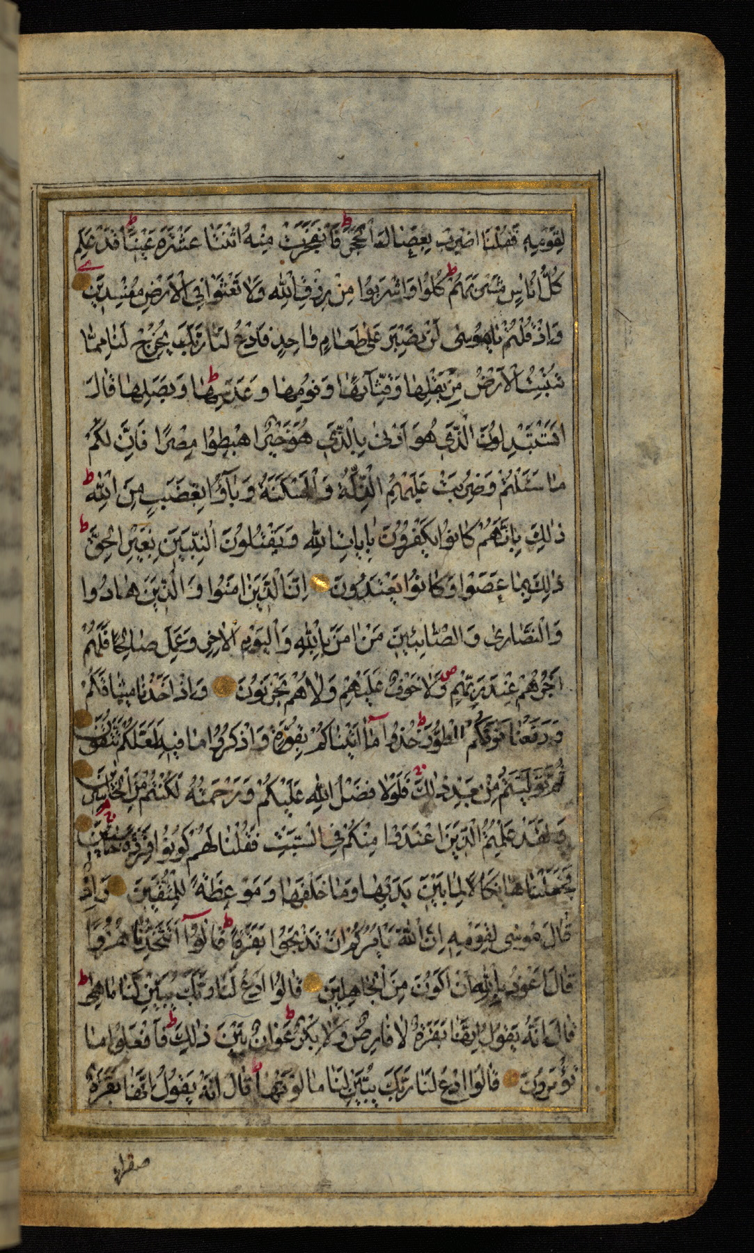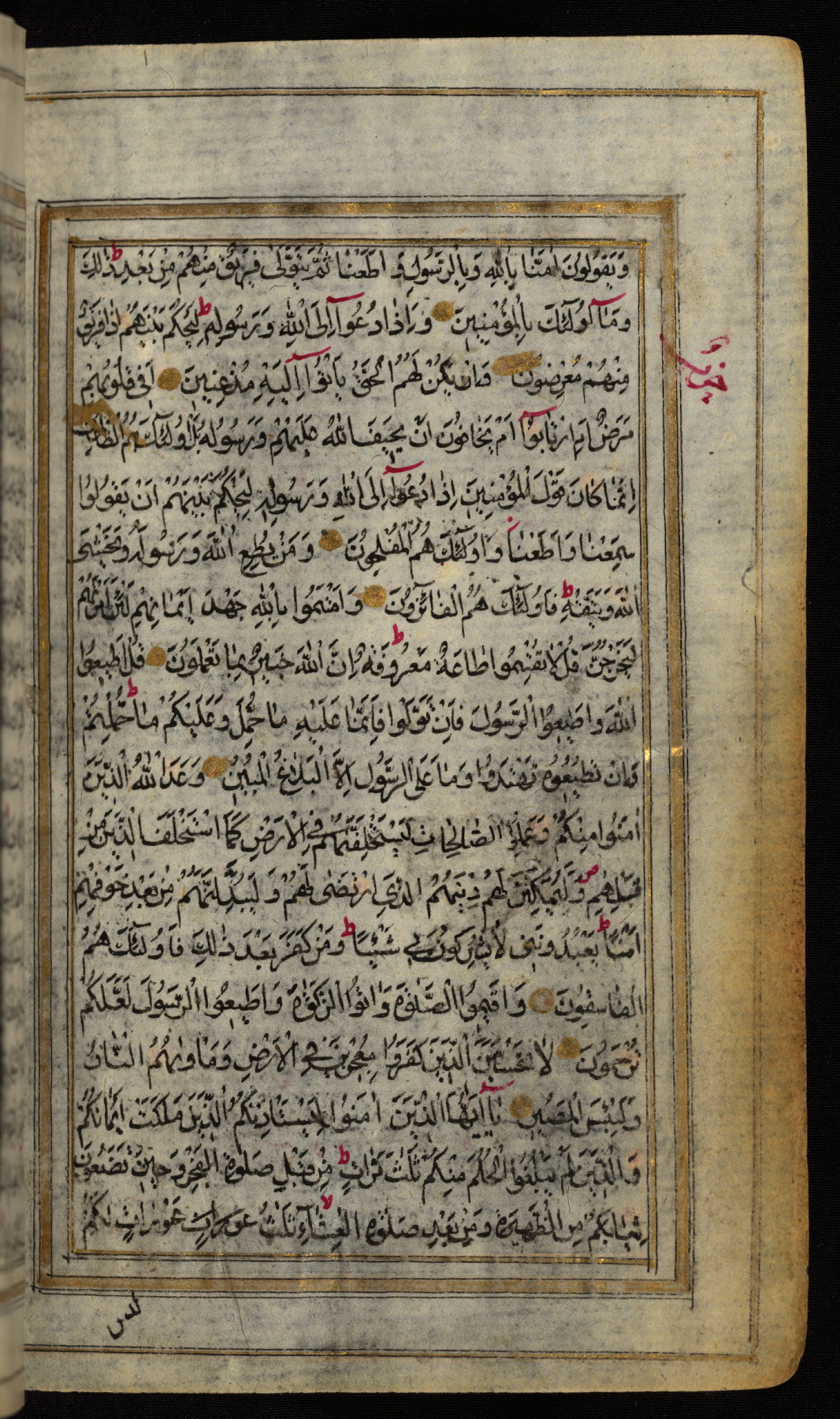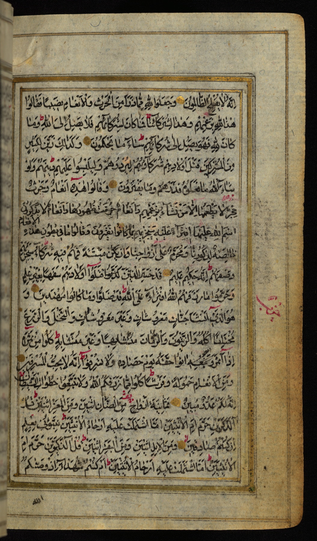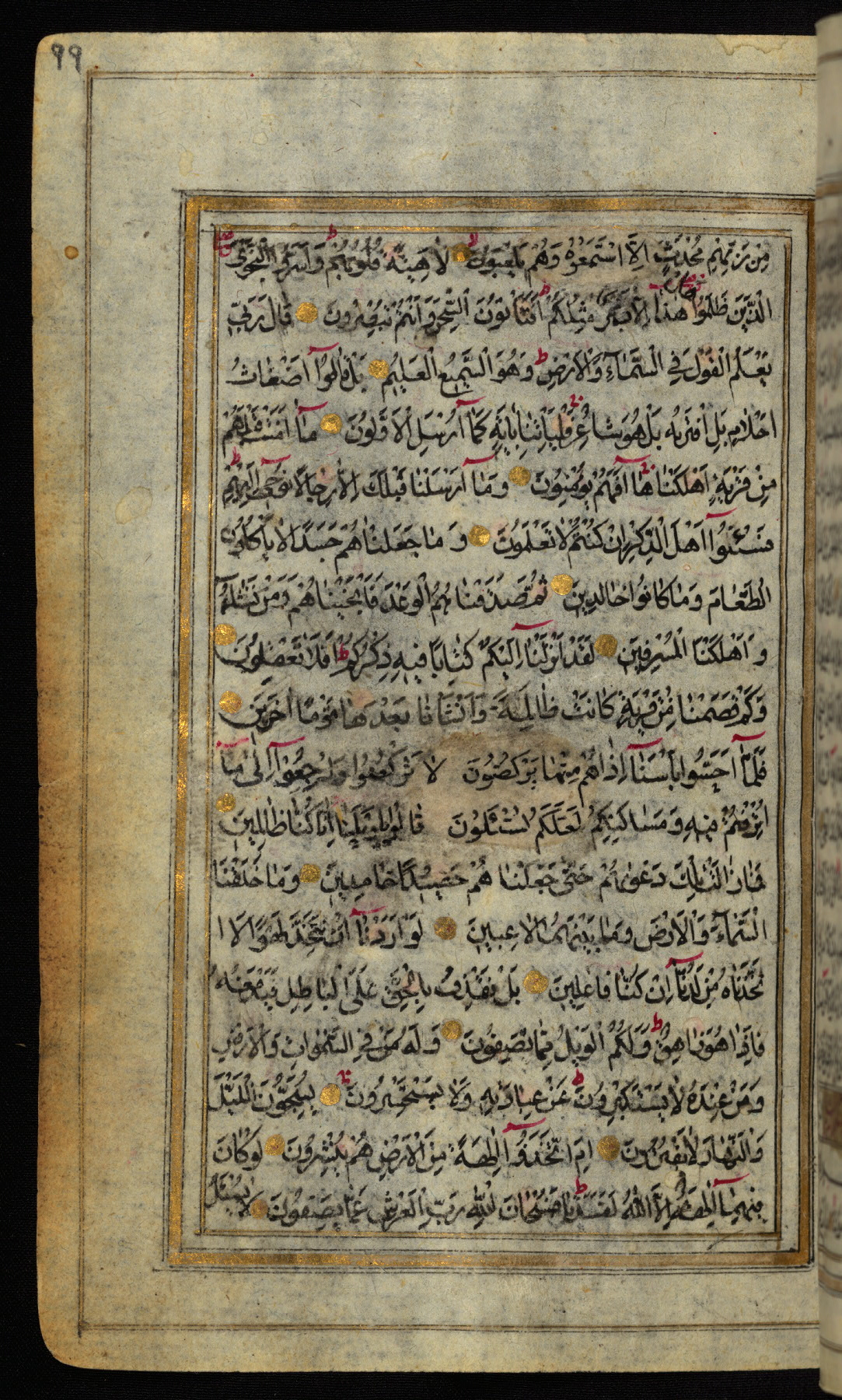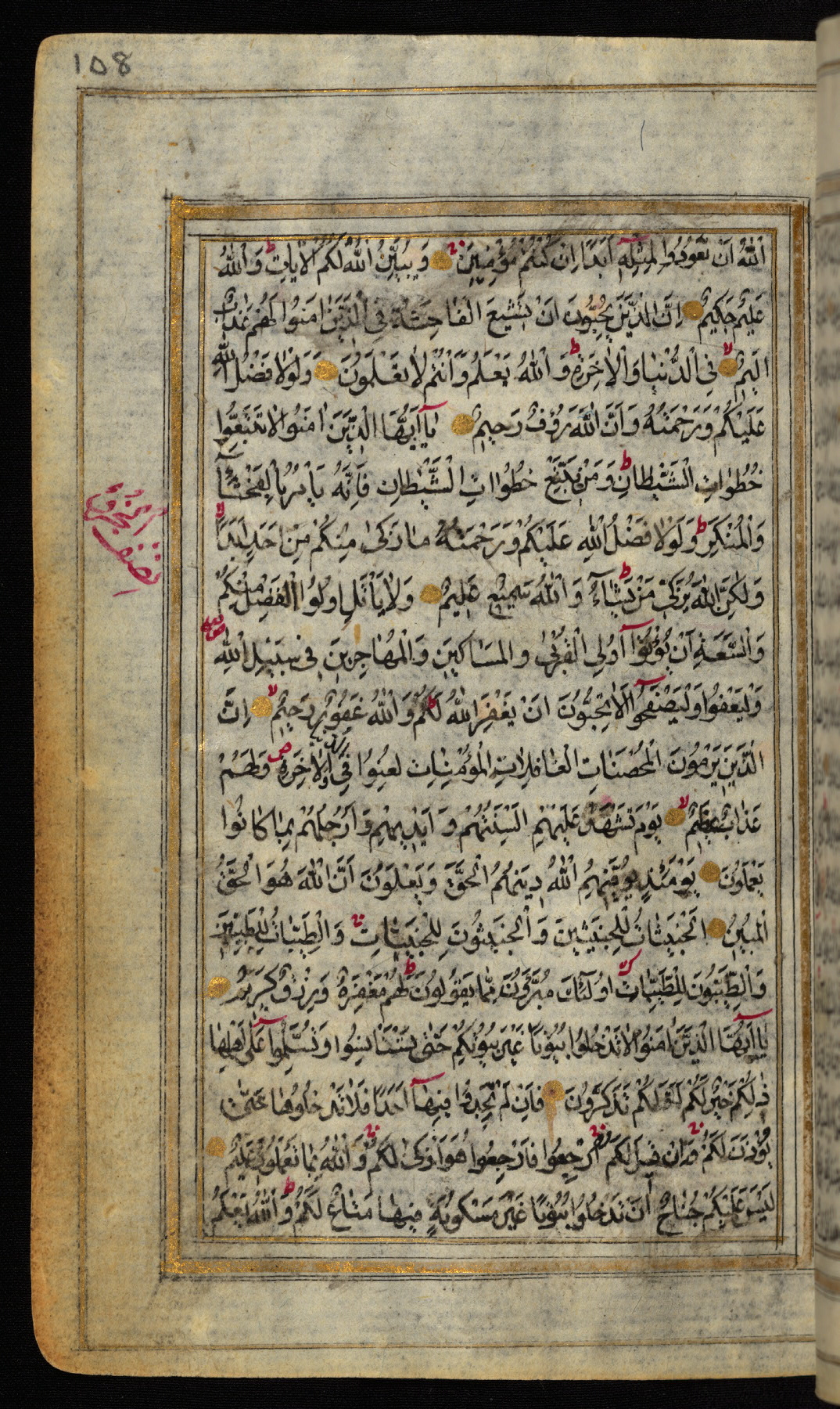 This small copy of the Qur'an was penned by an anonymous scribe in Iran in the thirteenth century AH / nineteenth century CE.