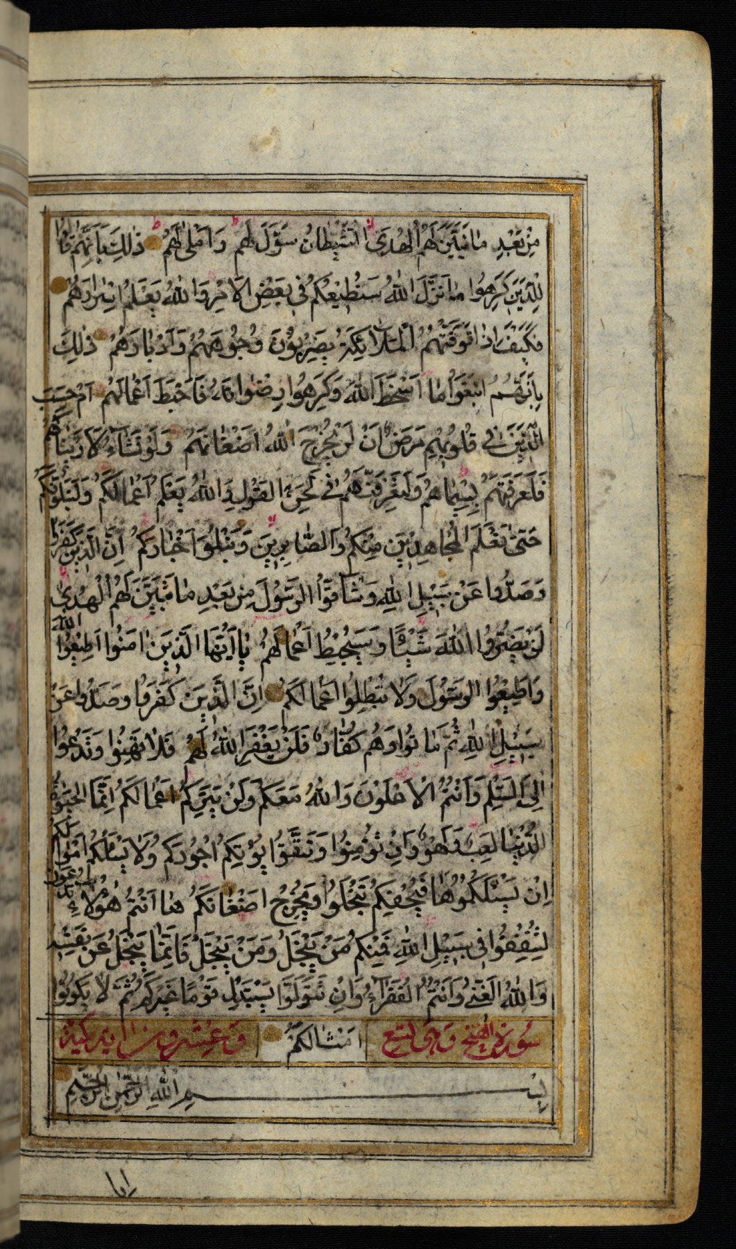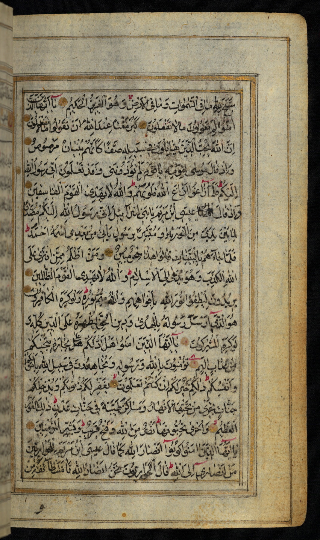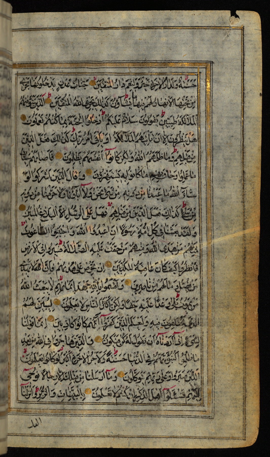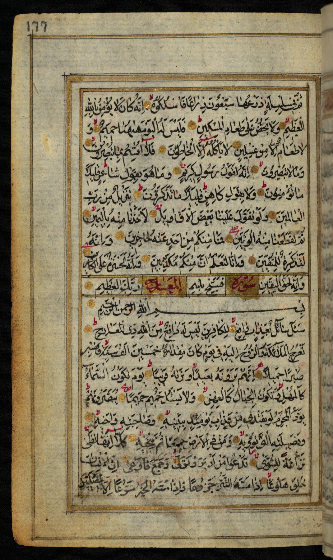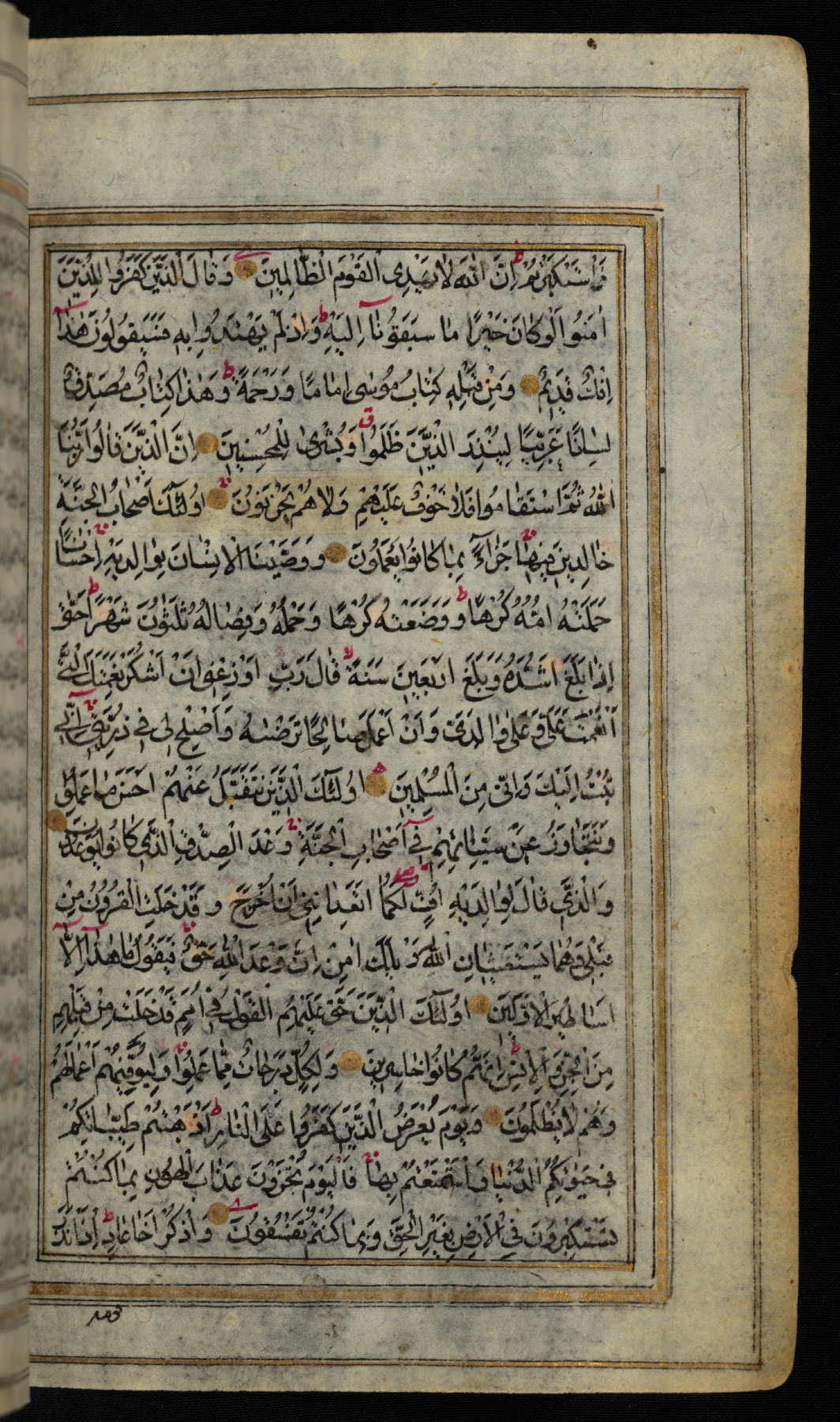 This small copy of the Qur'an was penned by an anonymous scribe in Iran in the thirteenth century AH / nineteenth century CE.
