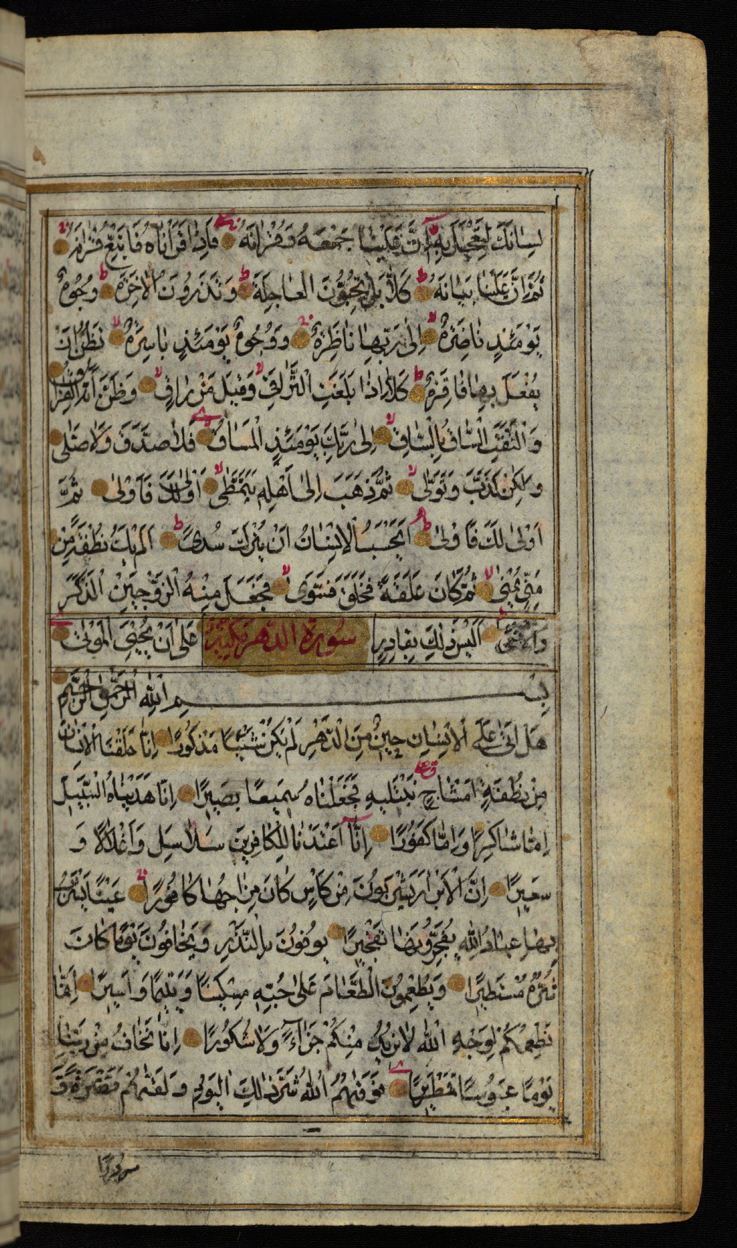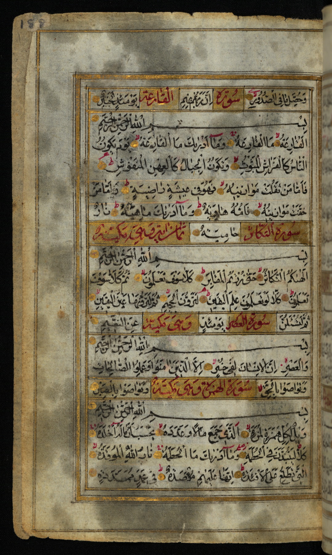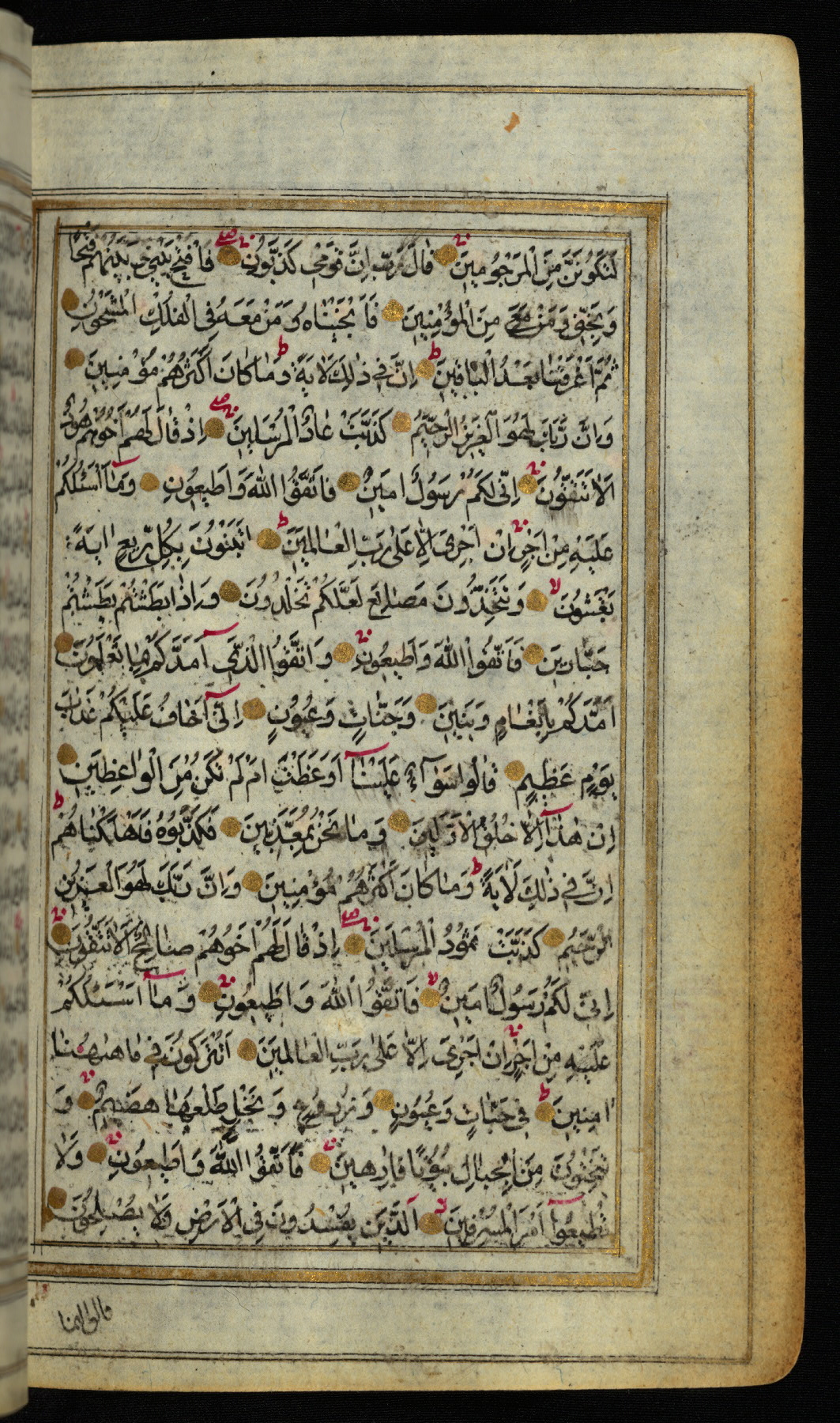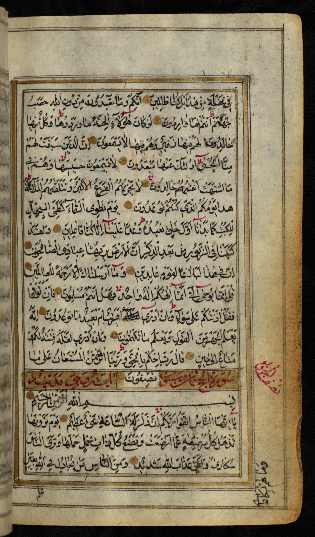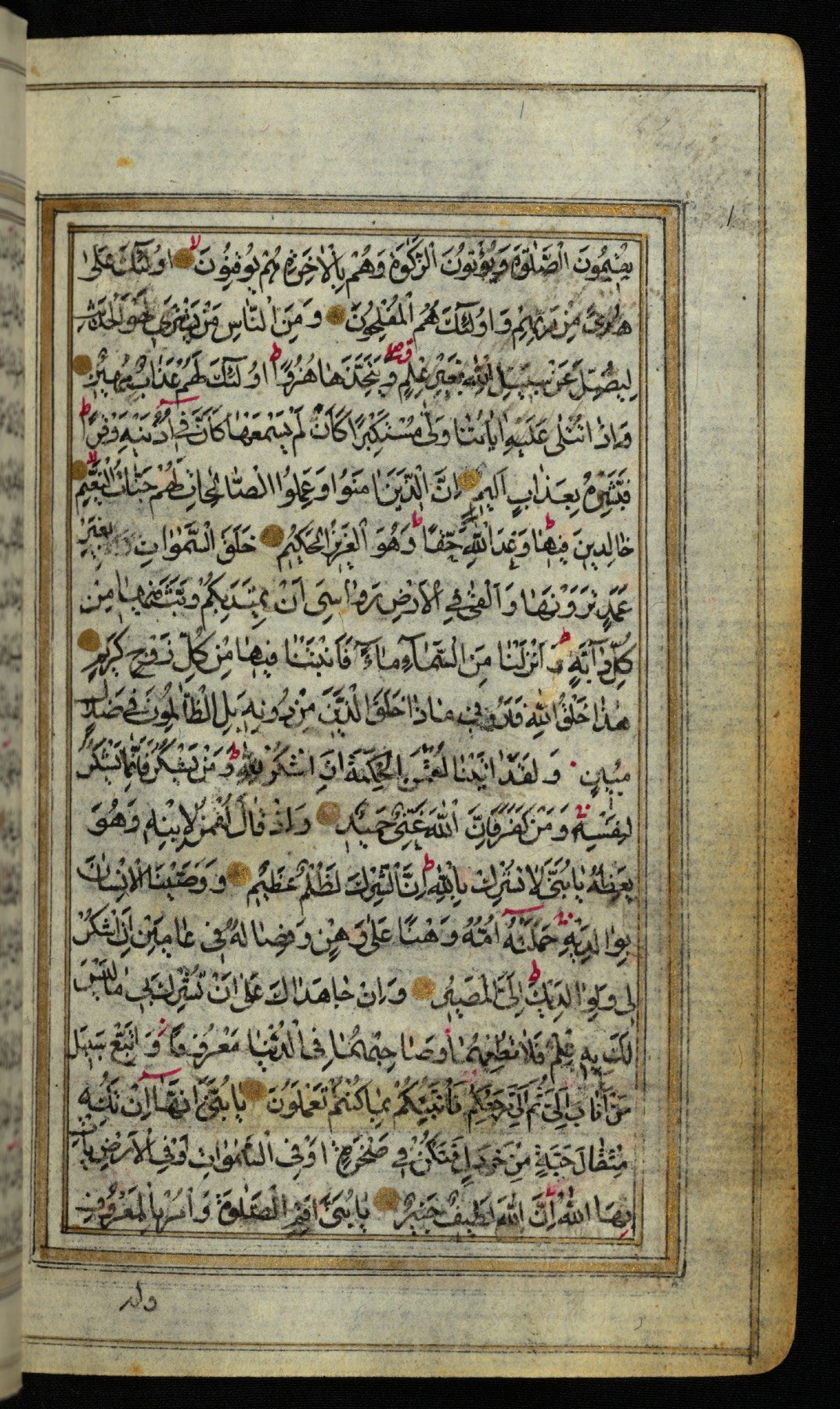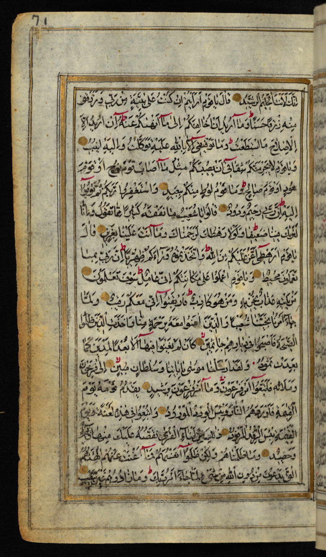 This small copy of the Qur'an was penned by an anonymous scribe in Iran in the thirteenth century AH / nineteenth century CE.