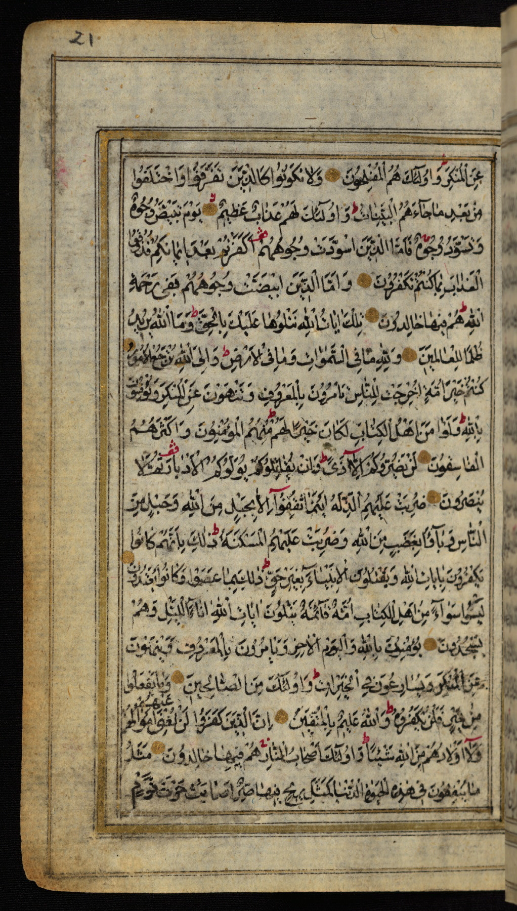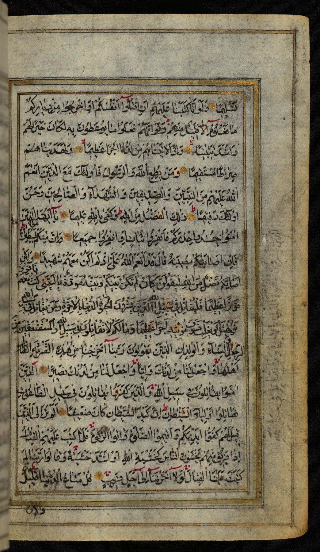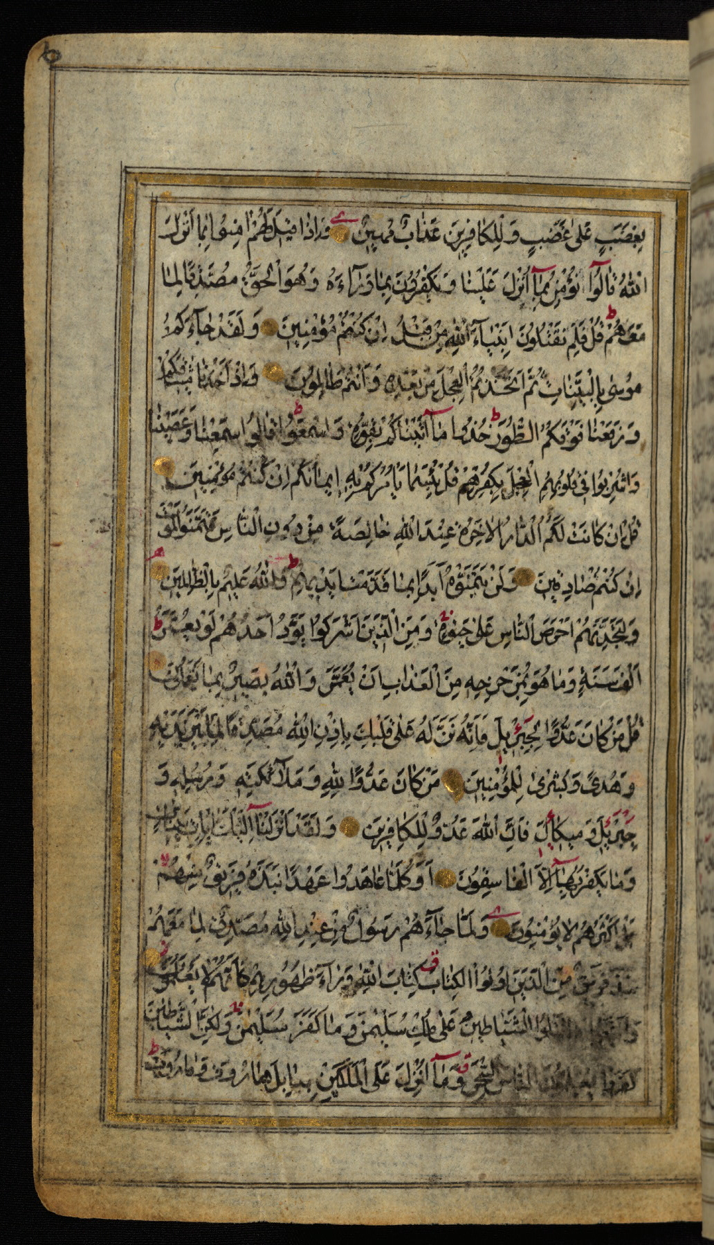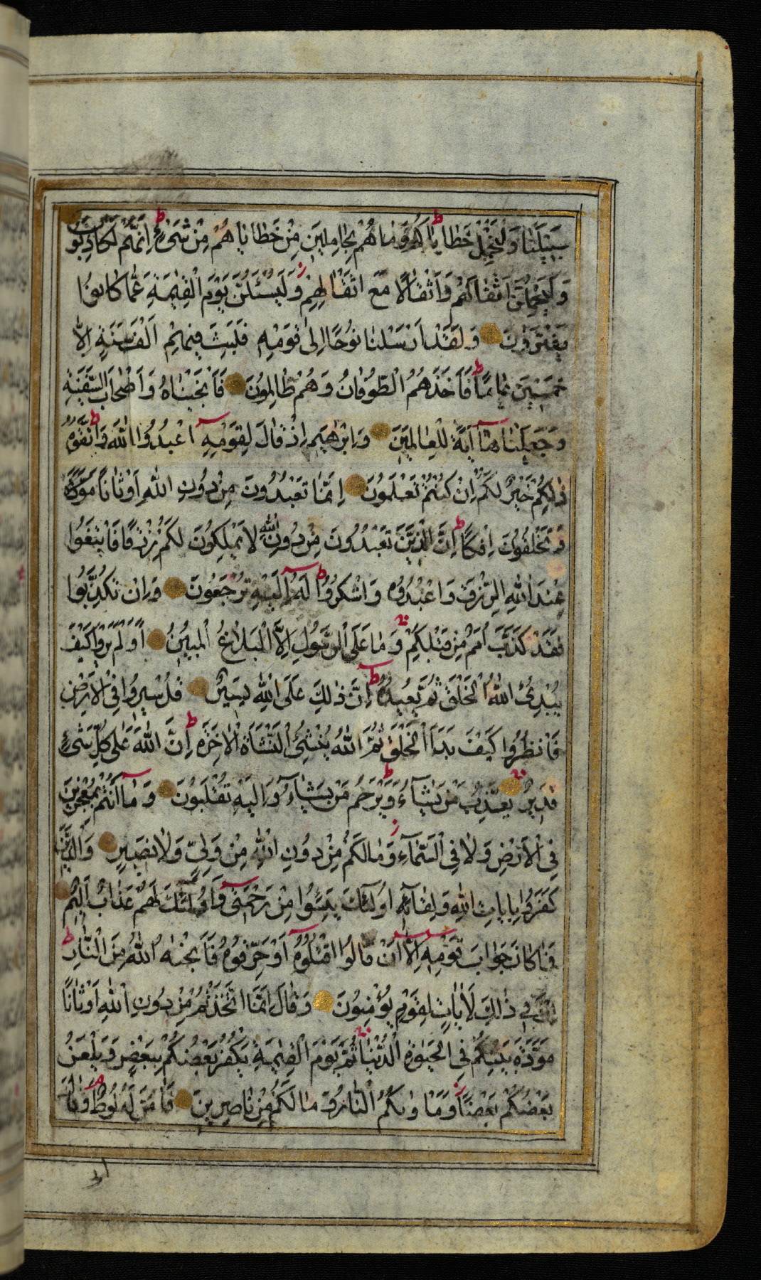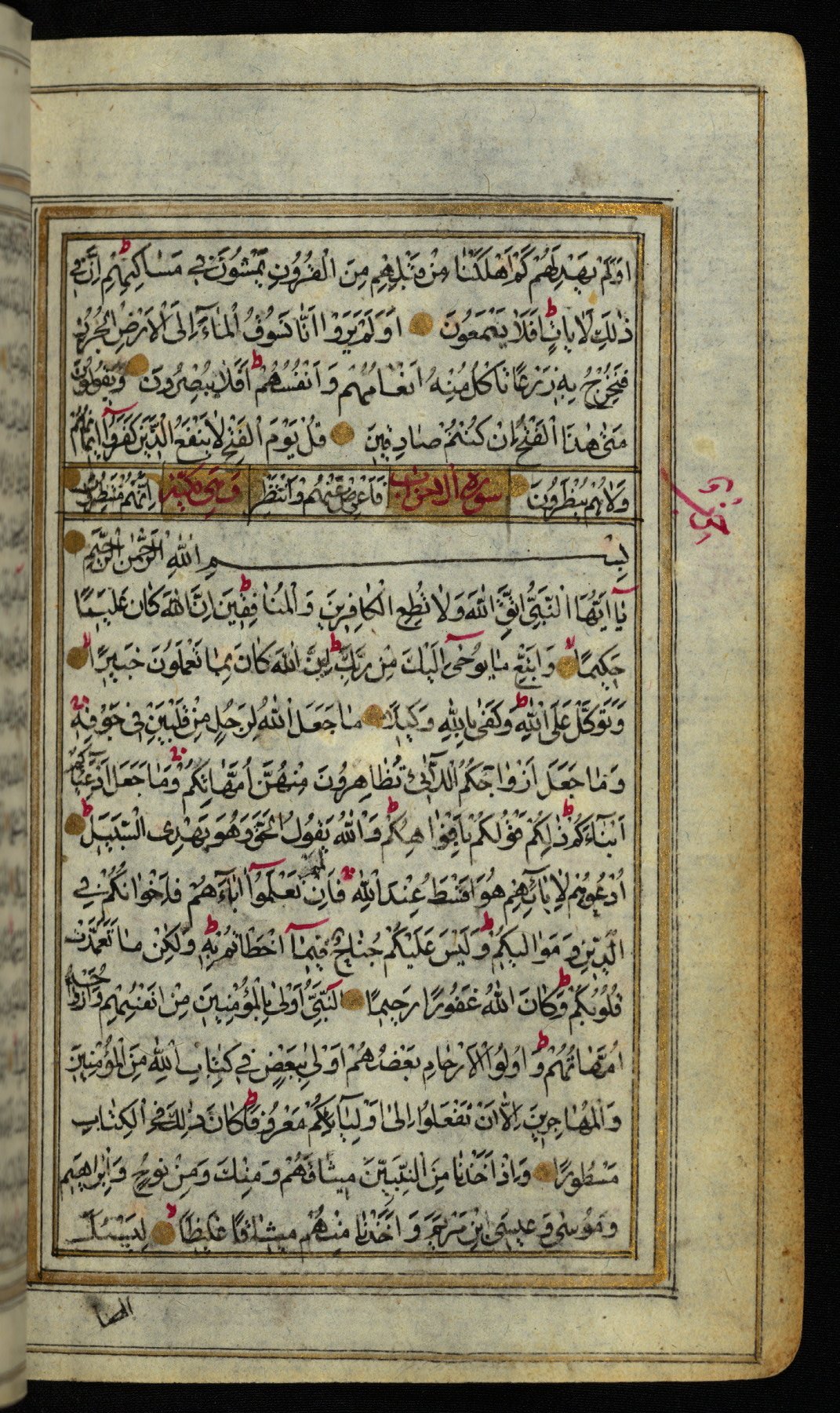 This small copy of the Qur'an was penned by an anonymous scribe in Iran in the thirteenth century AH / nineteenth century CE.