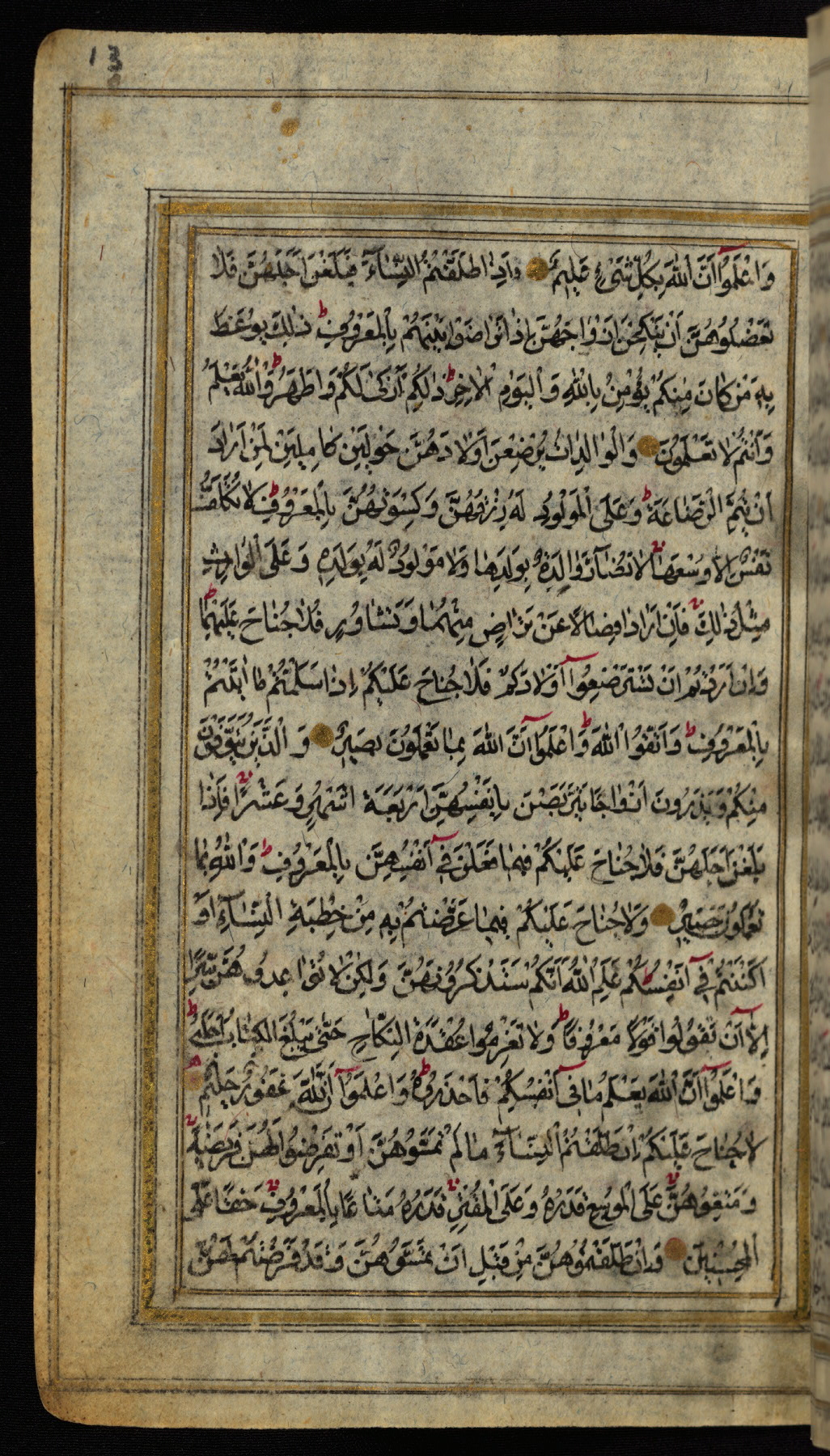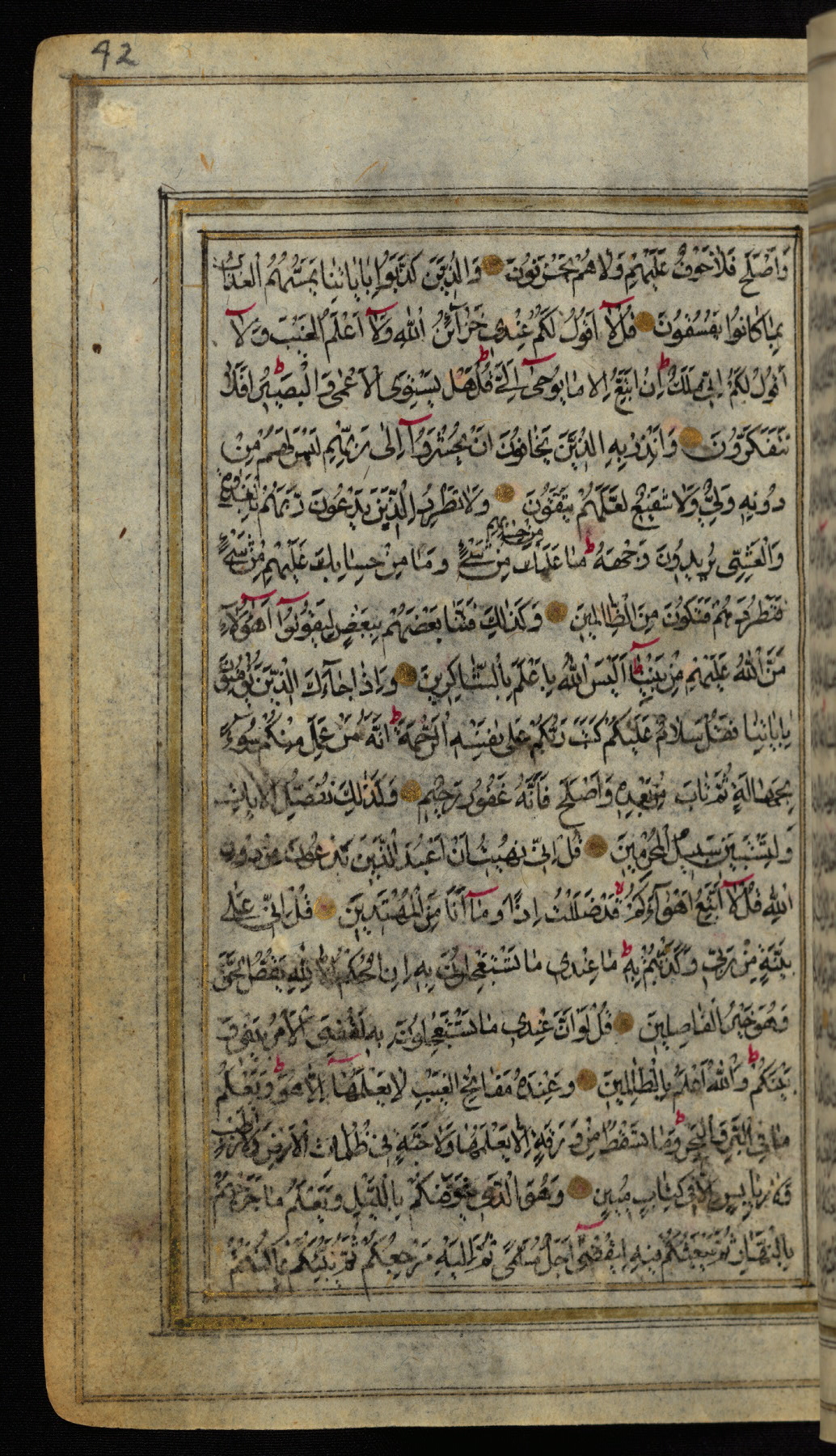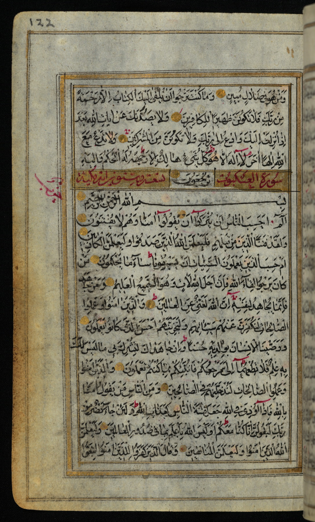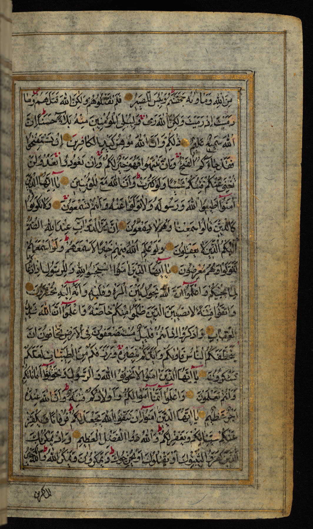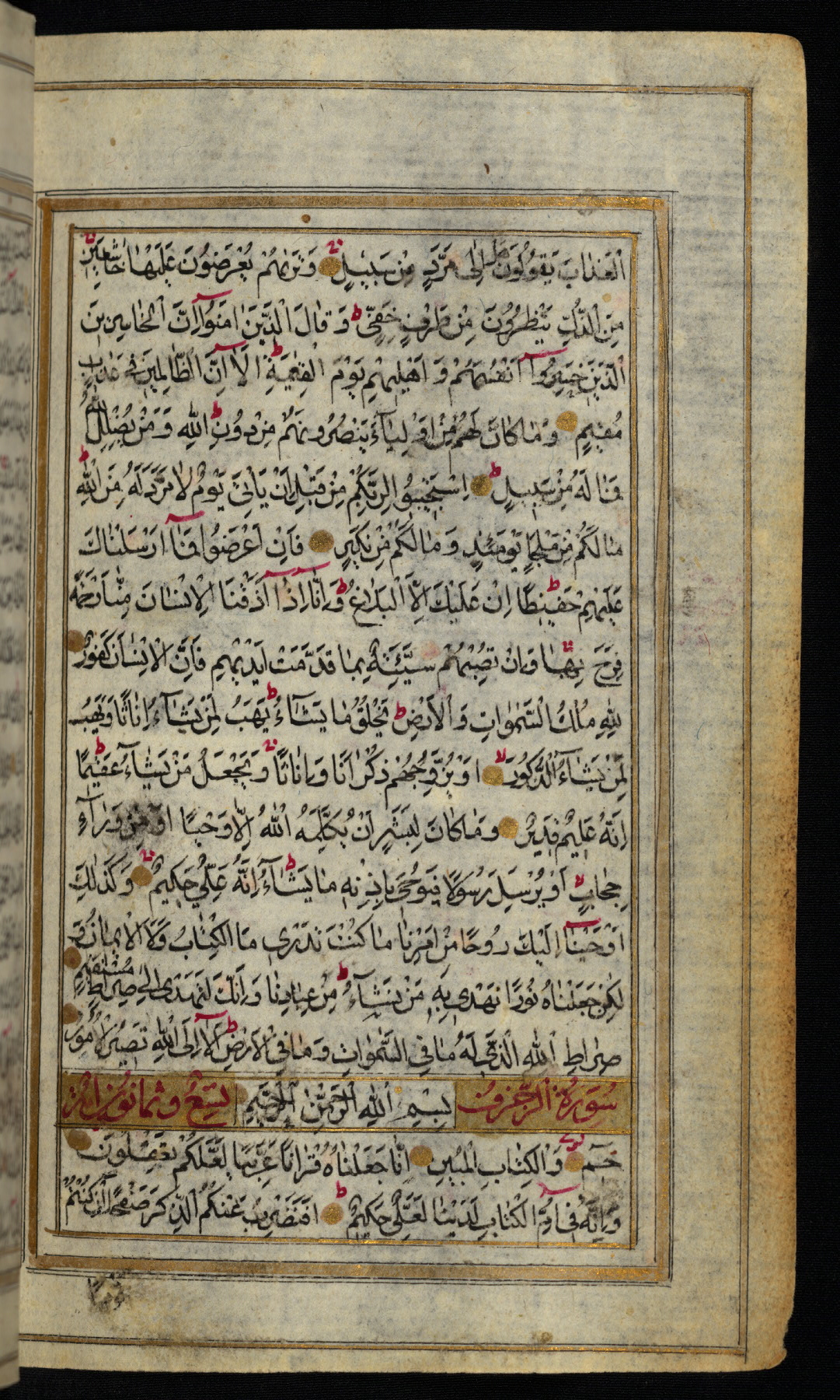 This small copy of the Qur'an was penned by an anonymous scribe in Iran in the thirteenth century AH / nineteenth century CE.