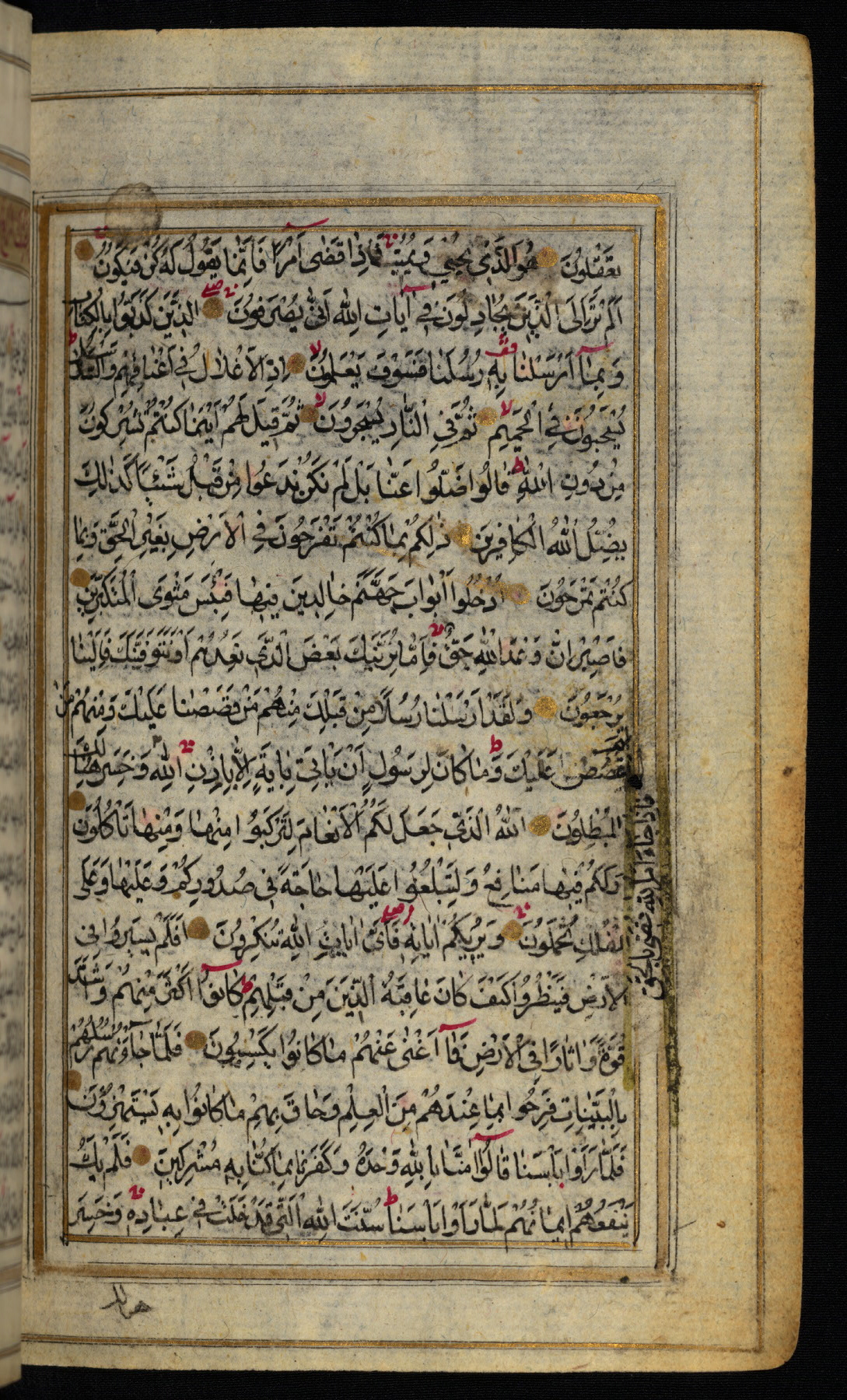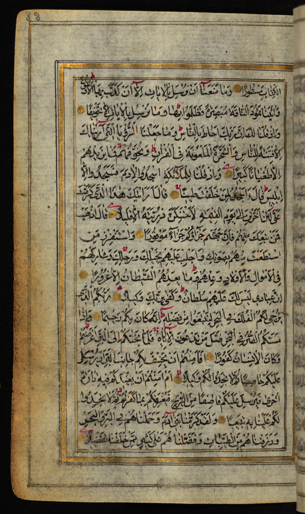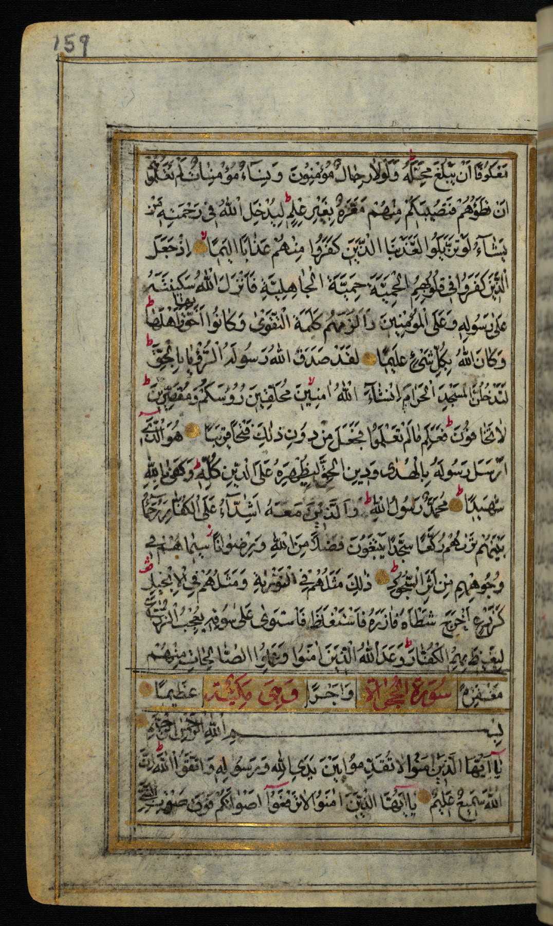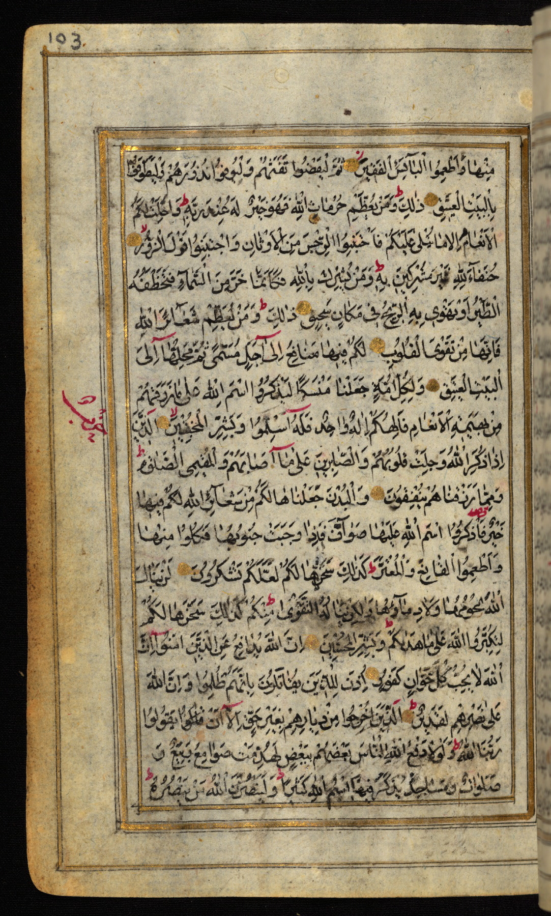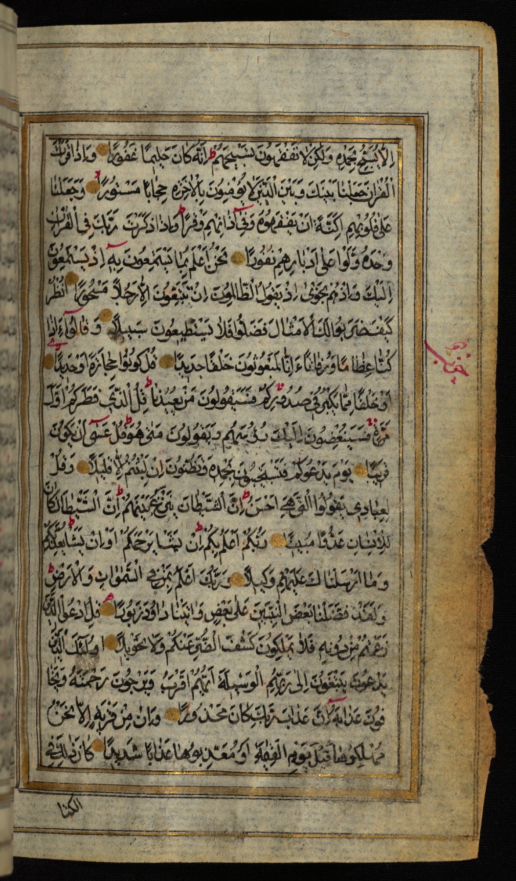 This small copy of the Qur'an was penned by an anonymous scribe in Iran in the thirteenth century AH / nineteenth century CE.