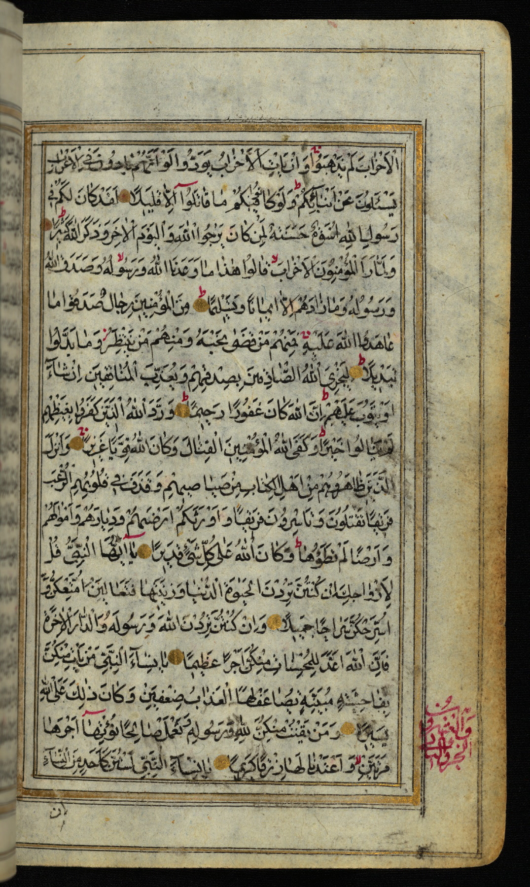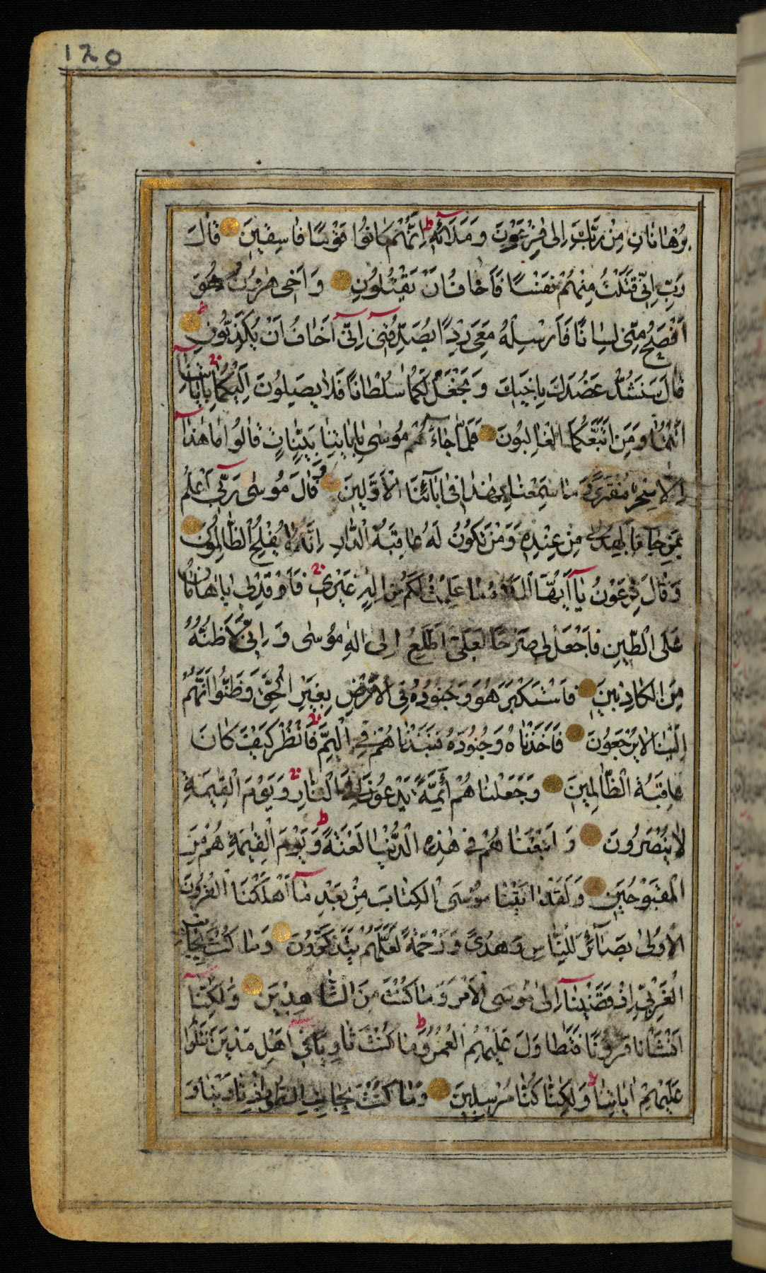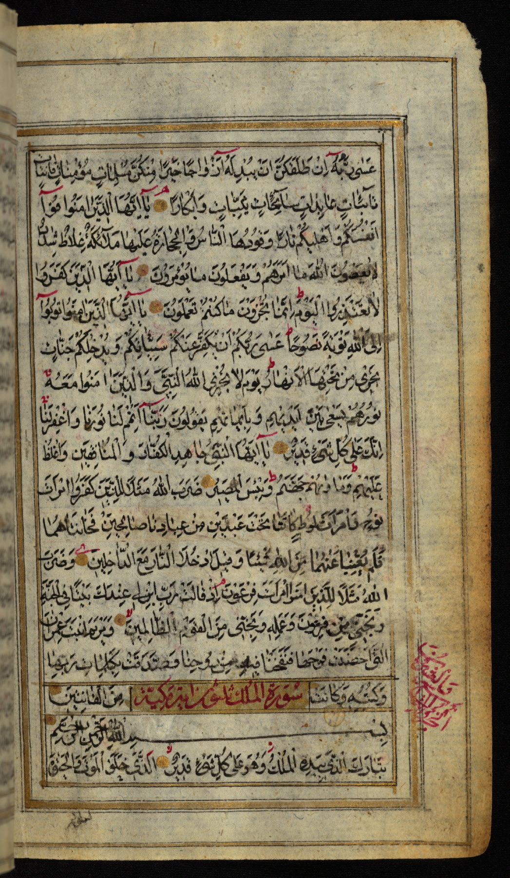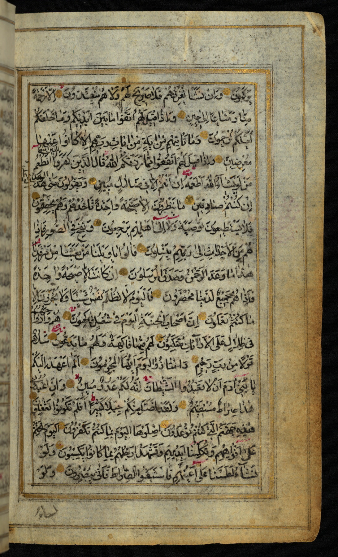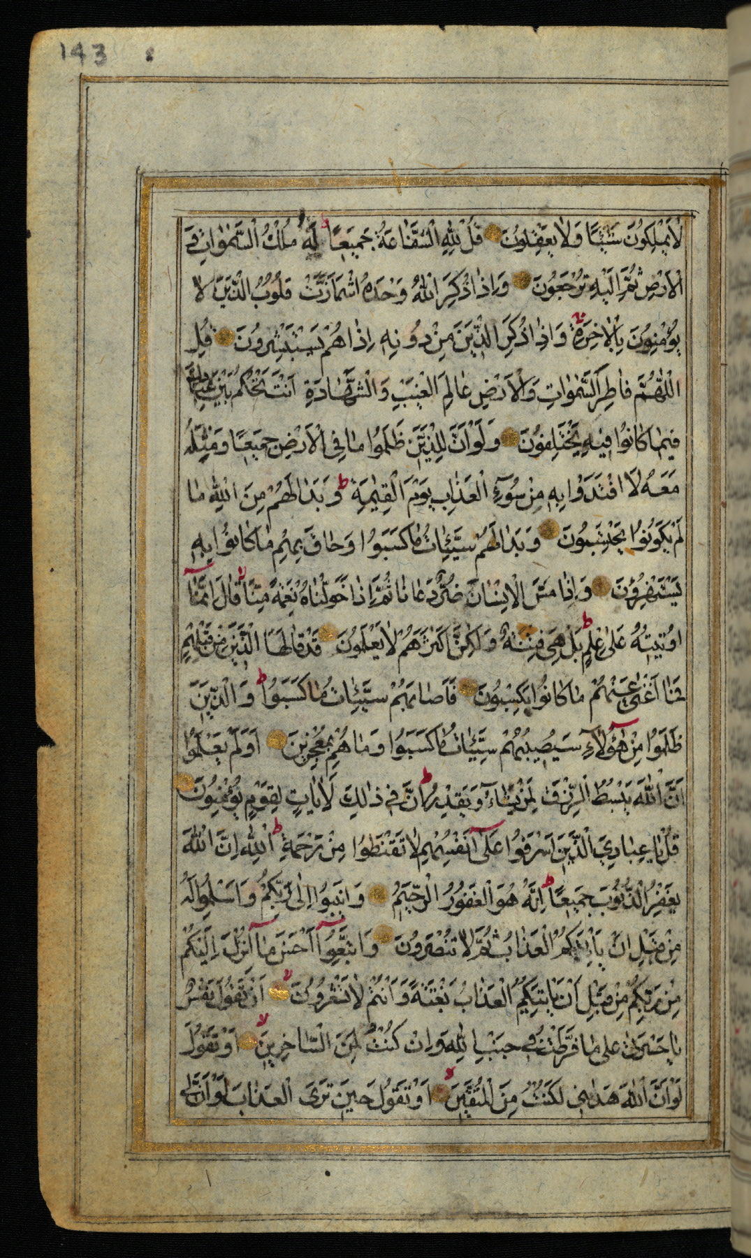 This small copy of the Qur'an was penned by an anonymous scribe in Iran in the thirteenth century AH / nineteenth century CE.