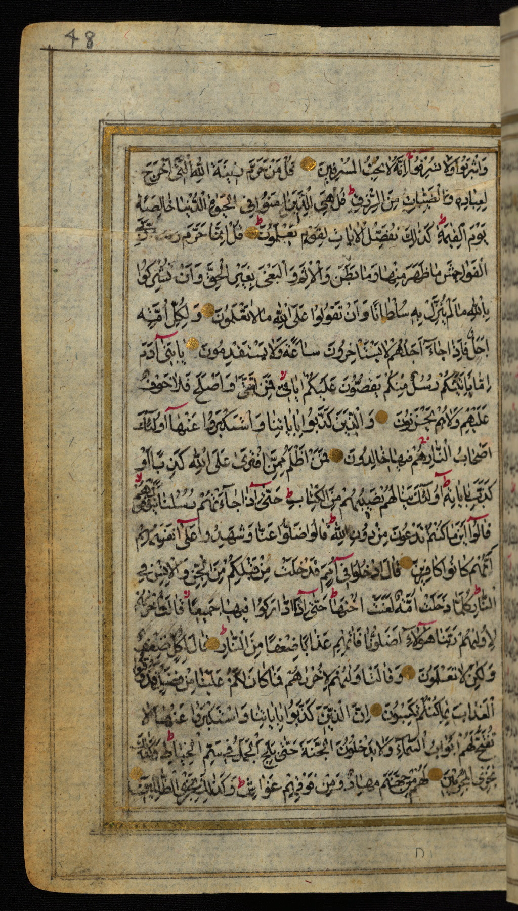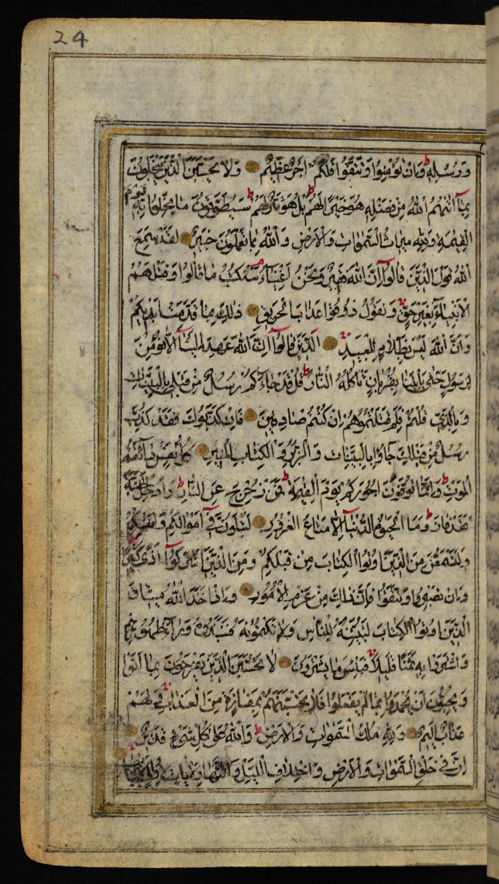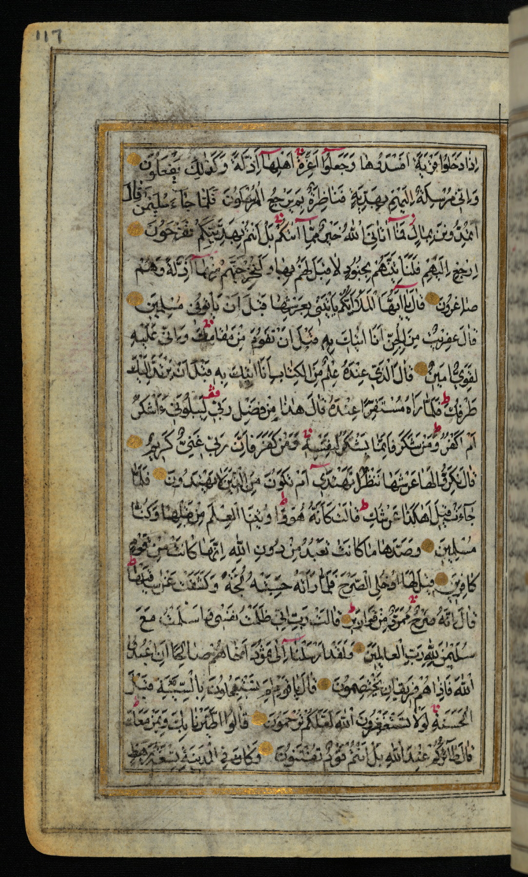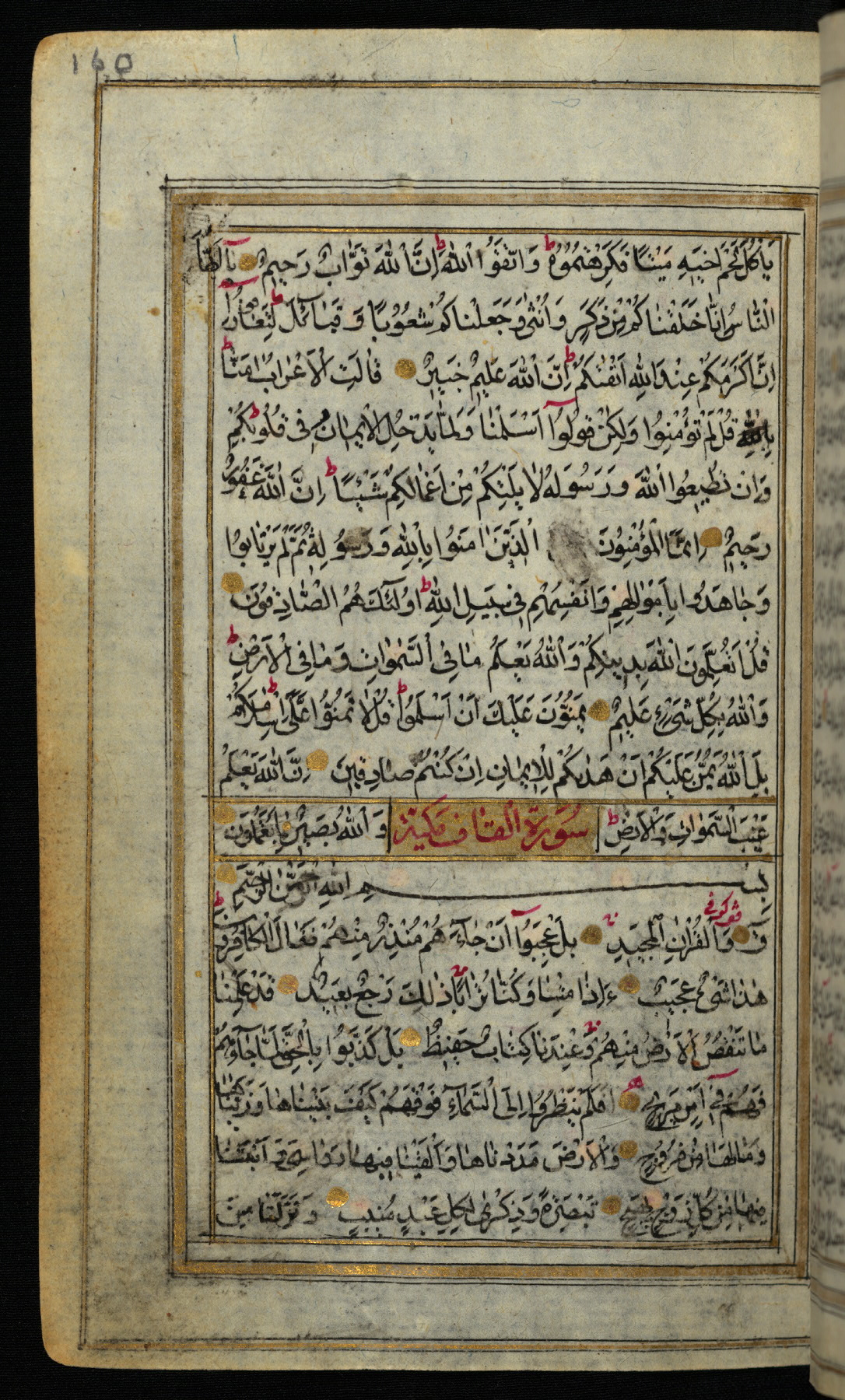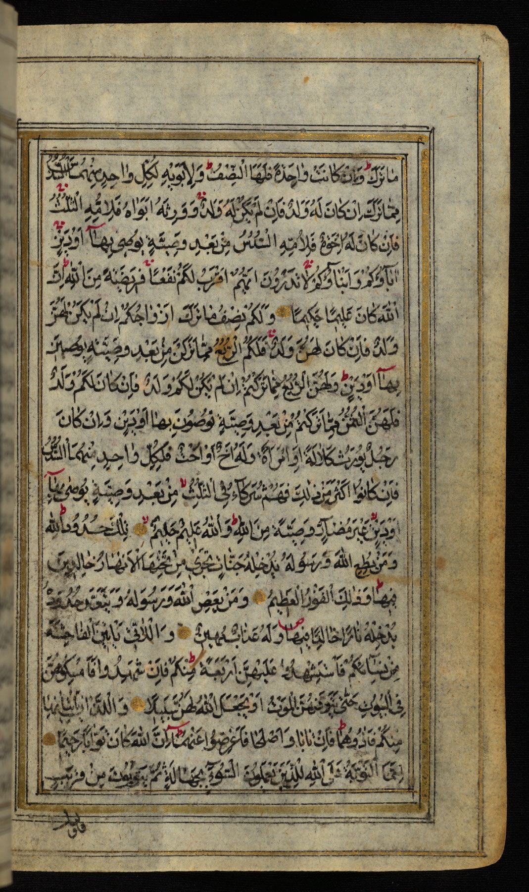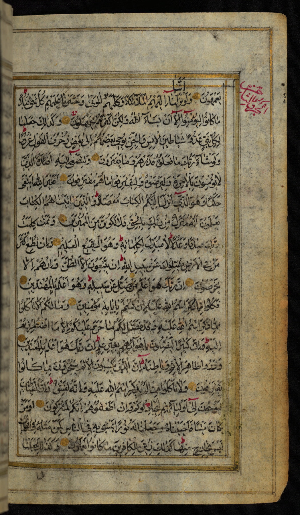 This small copy of the Qur'an was penned by an anonymous scribe in Iran in the thirteenth century AH / nineteenth century CE.