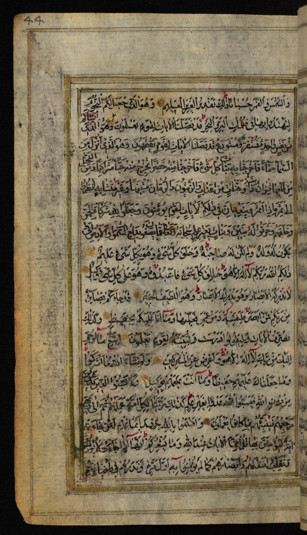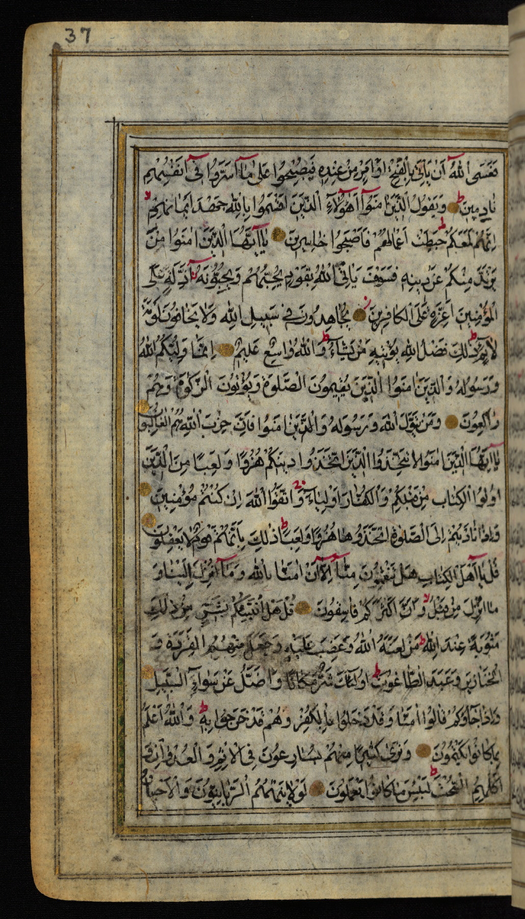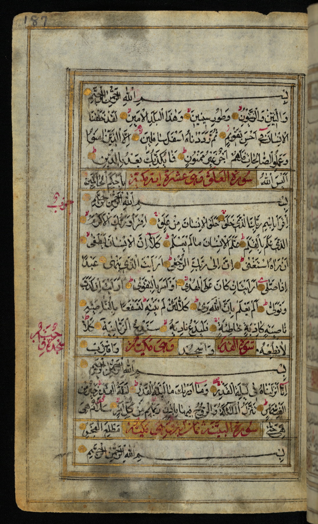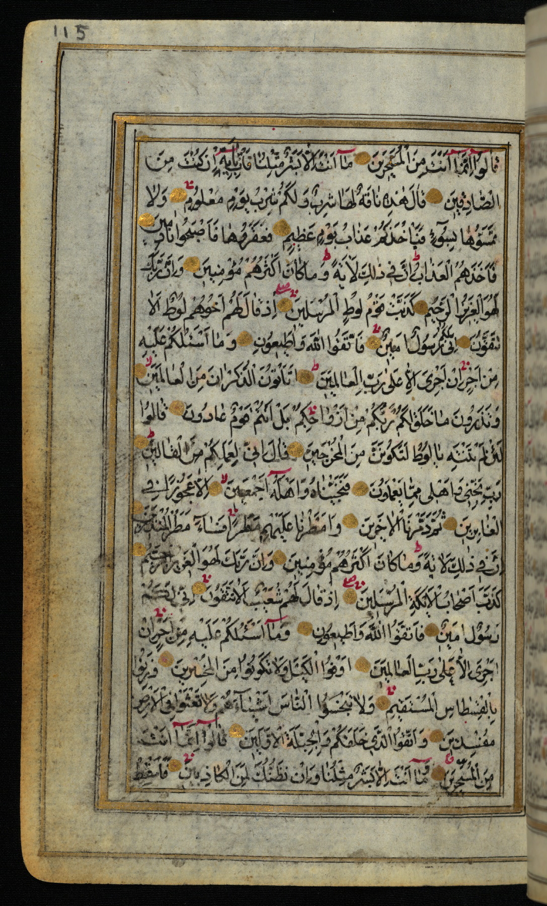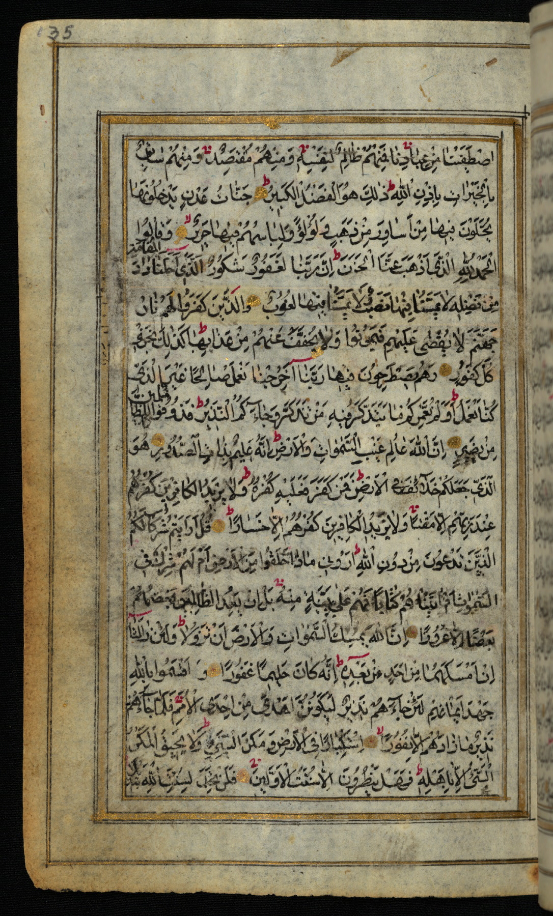 This small copy of the Qur'an was penned by an anonymous scribe in Iran in the thirteenth century AH / nineteenth century CE.