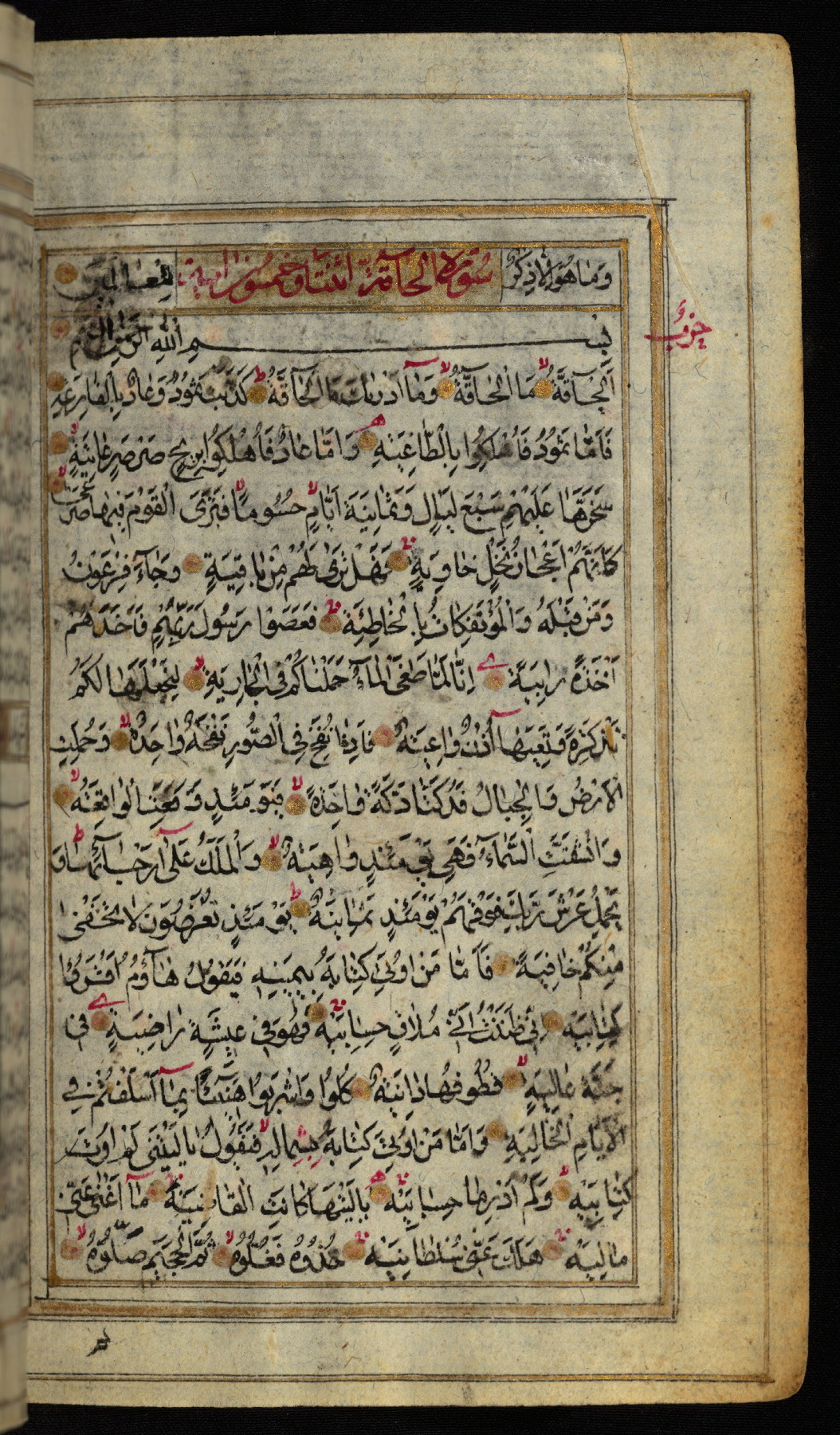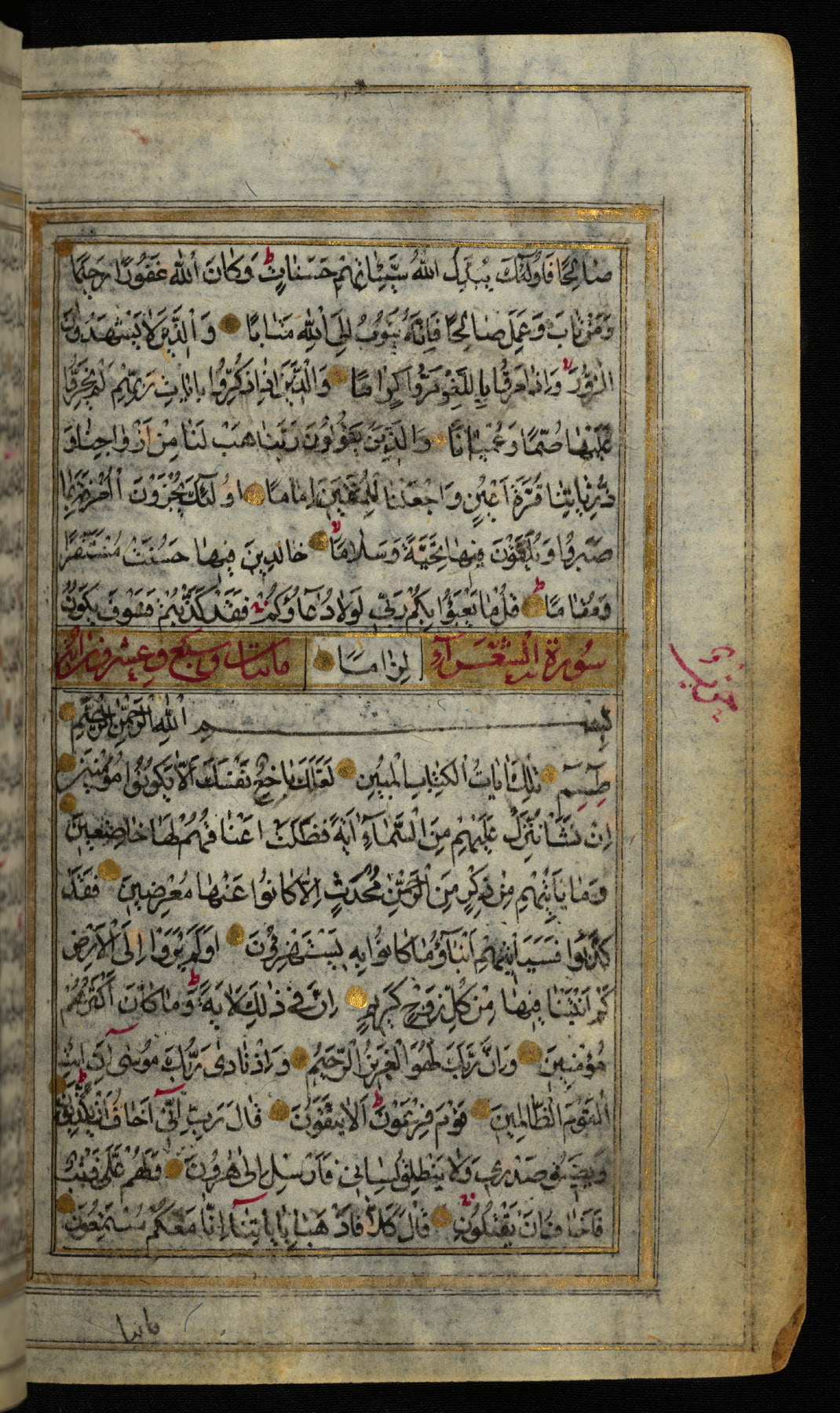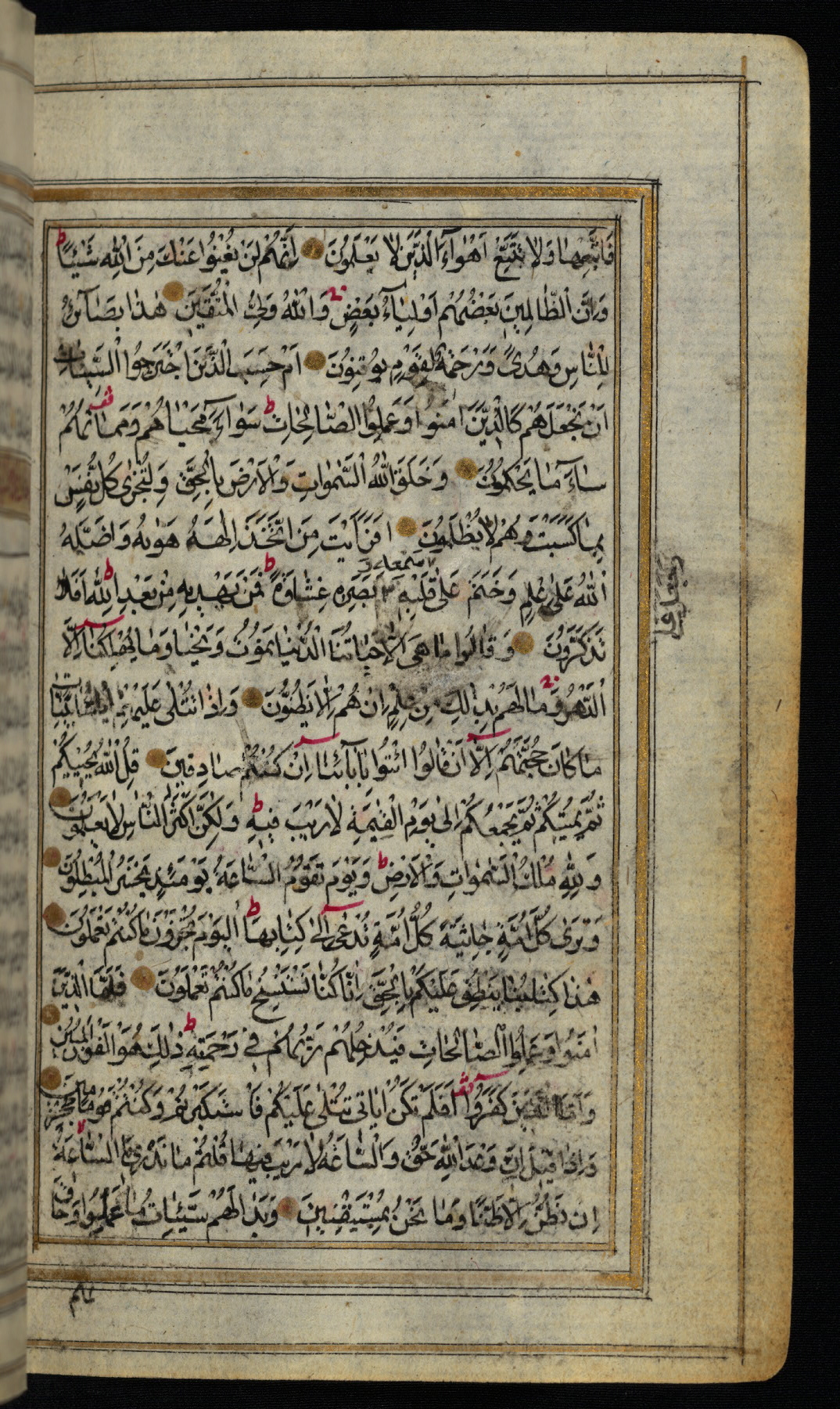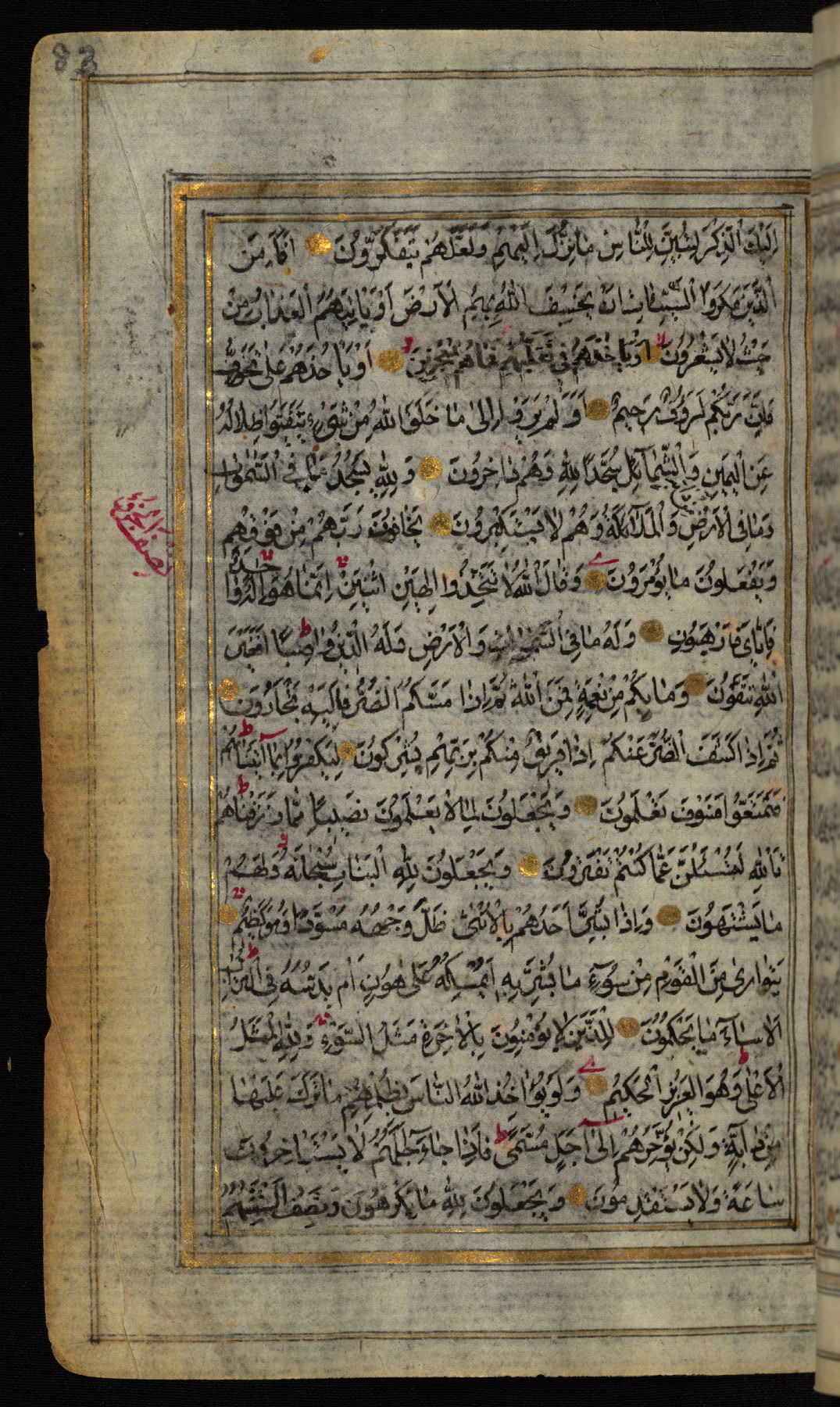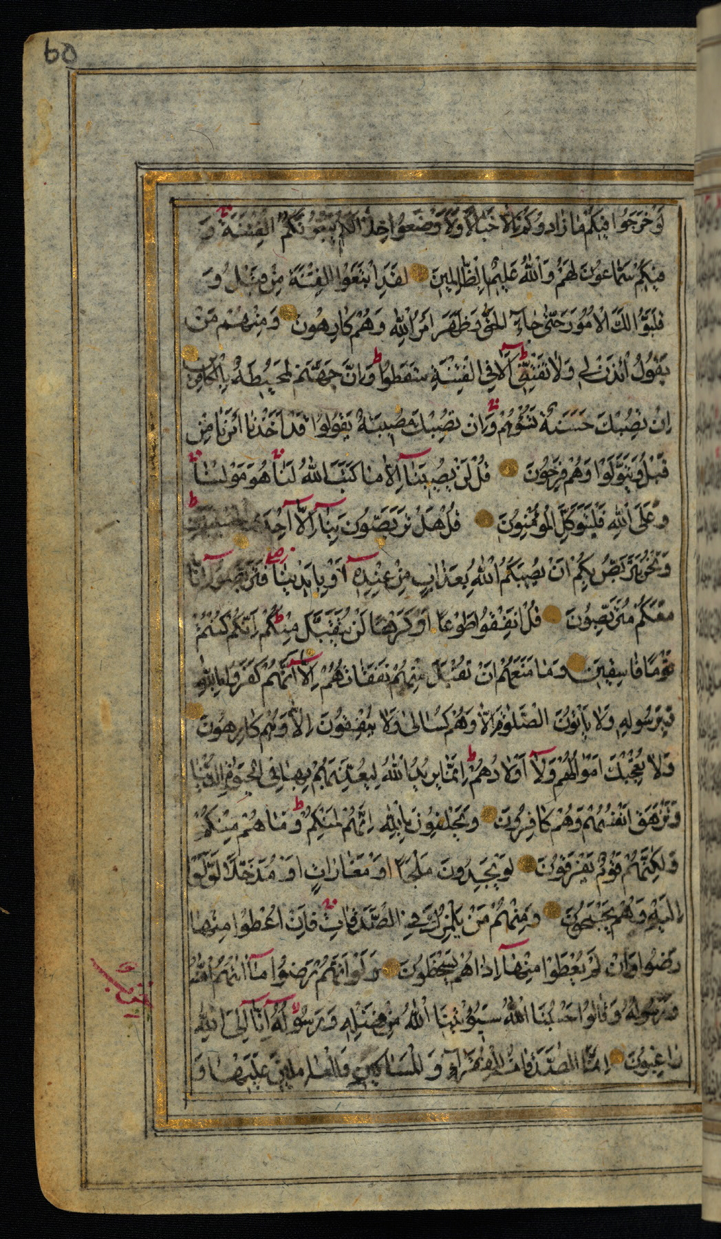 This small copy of the Qur'an was penned by an anonymous scribe in Iran in the thirteenth century AH / nineteenth century CE.
