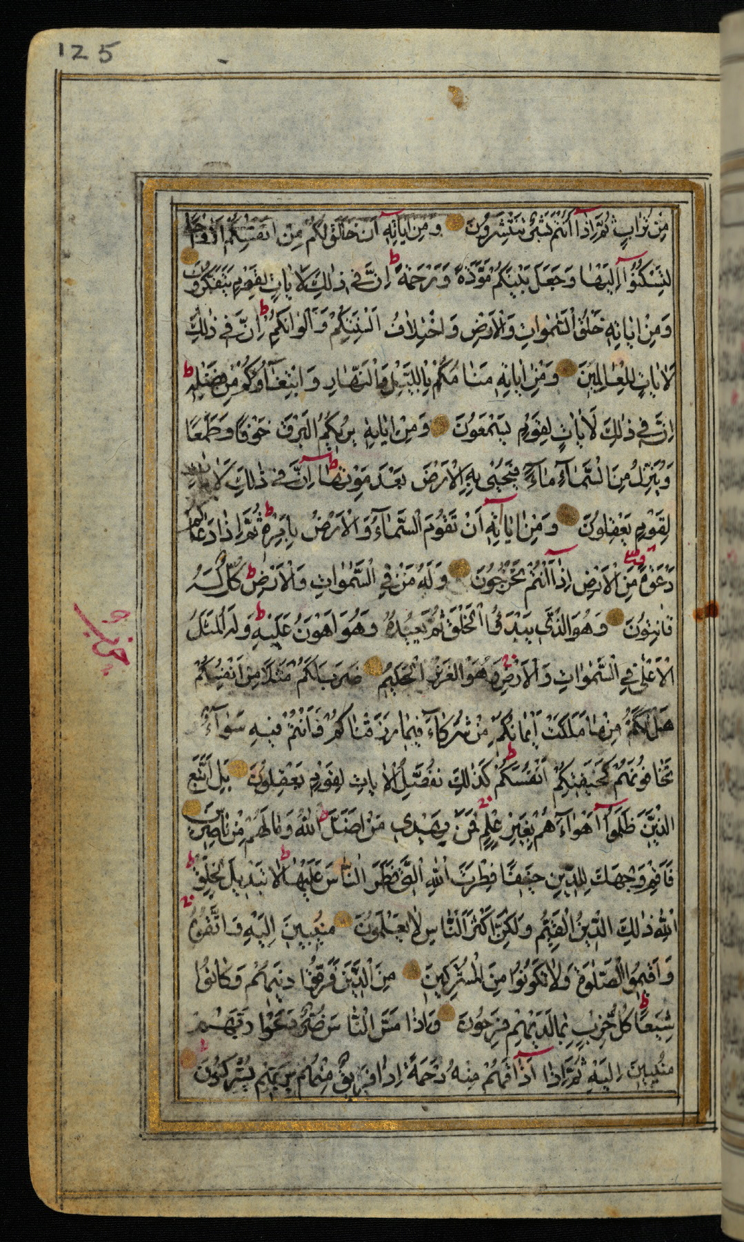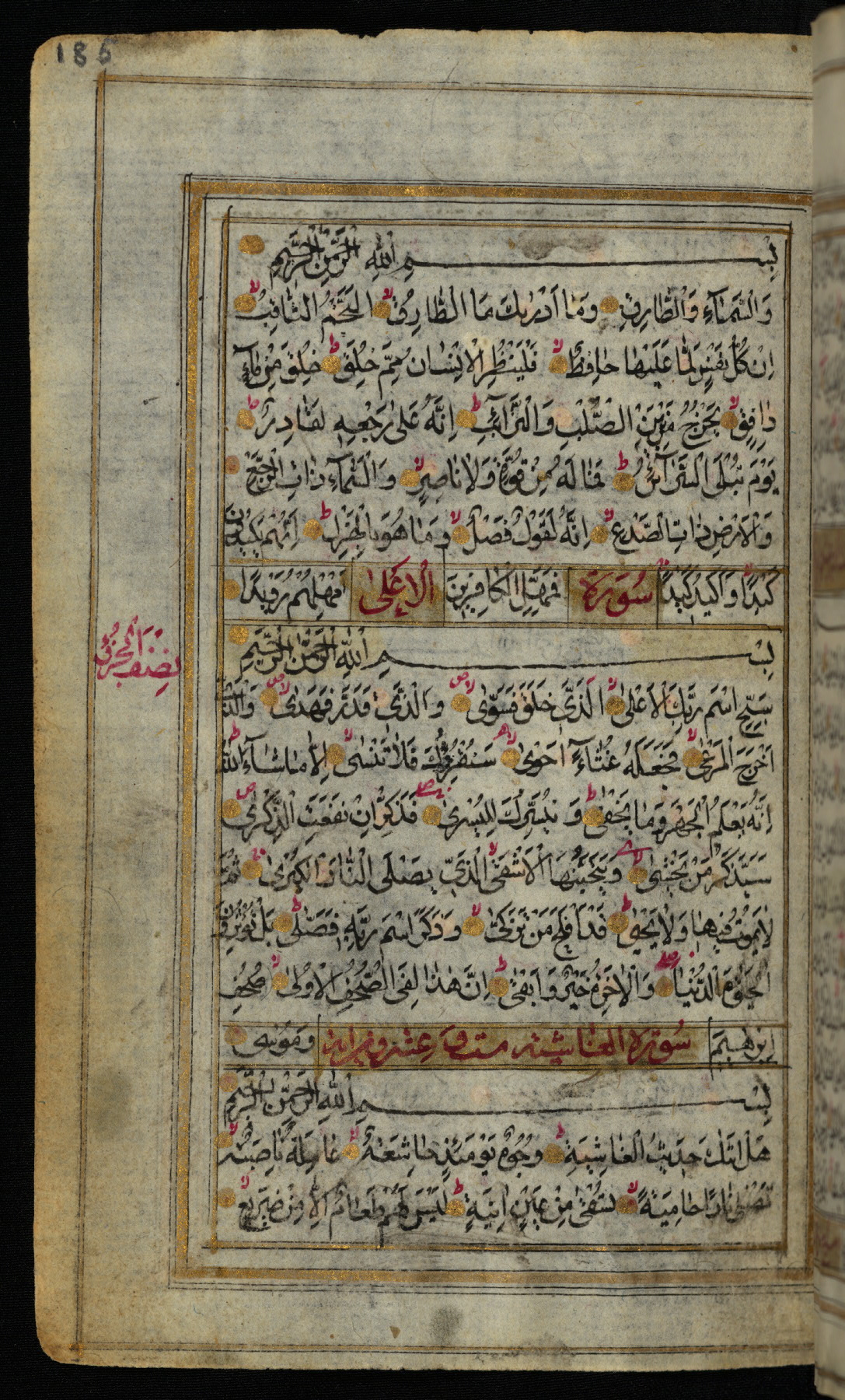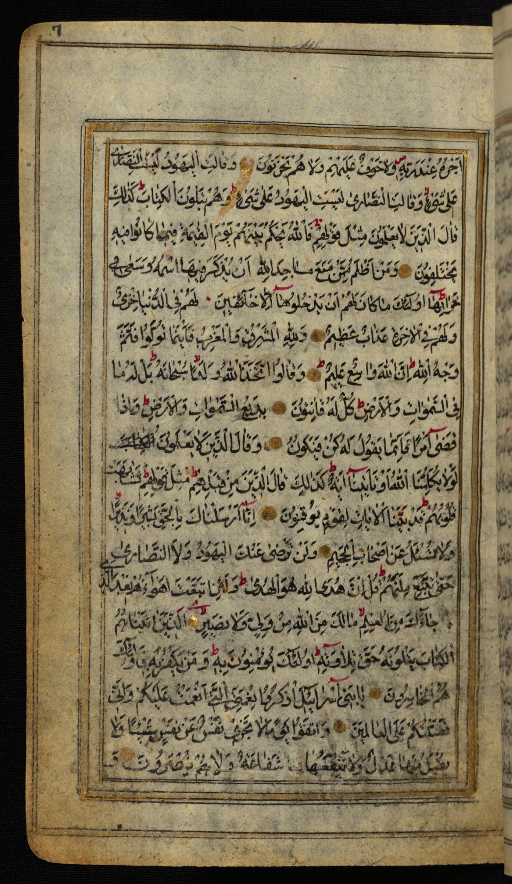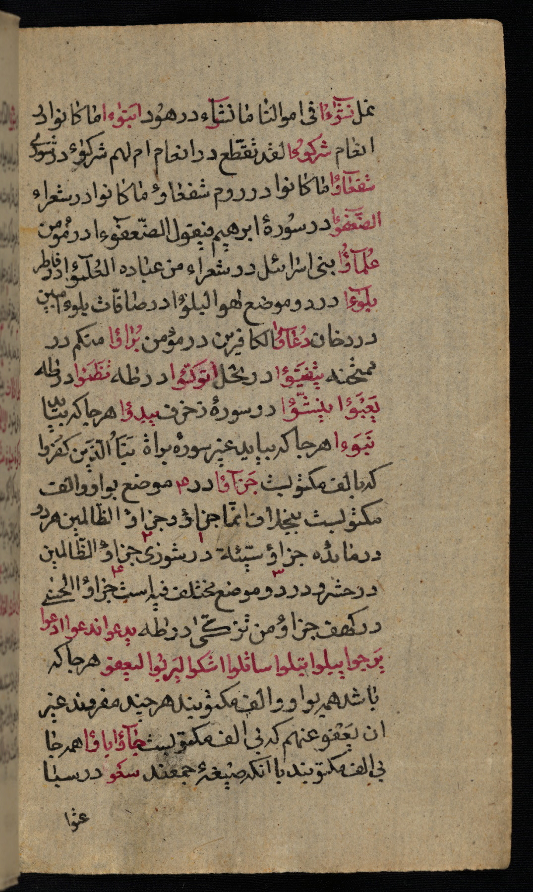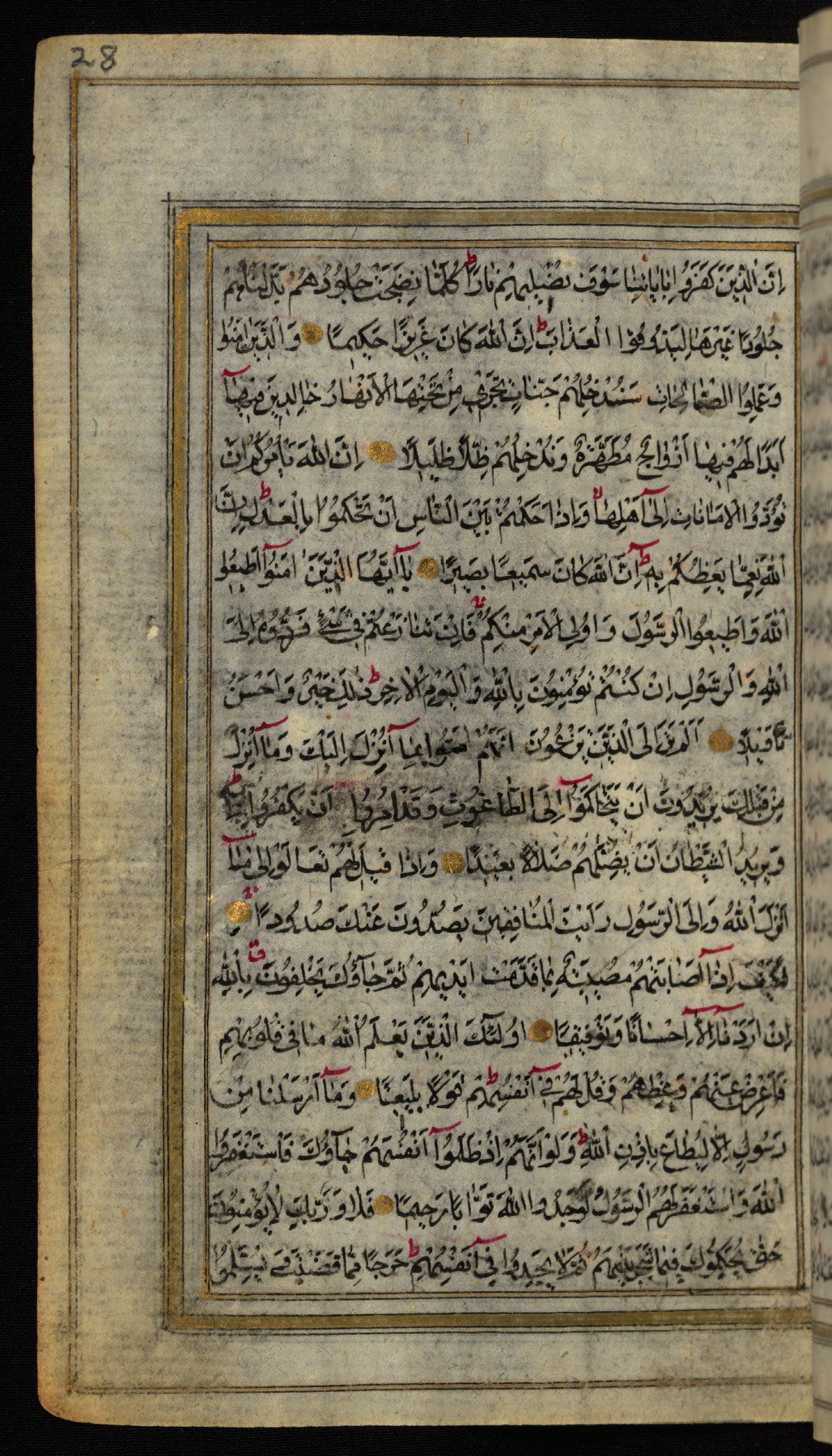This small copy of the Qur'an was penned by an anonymous scribe in Iran in the thirteenth century AH / nineteenth century CE.