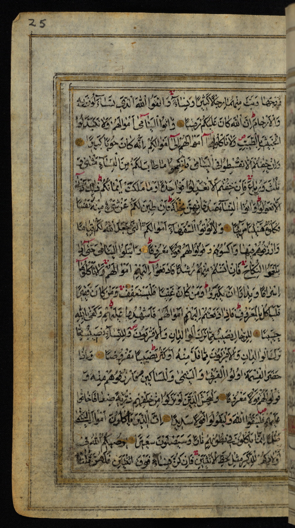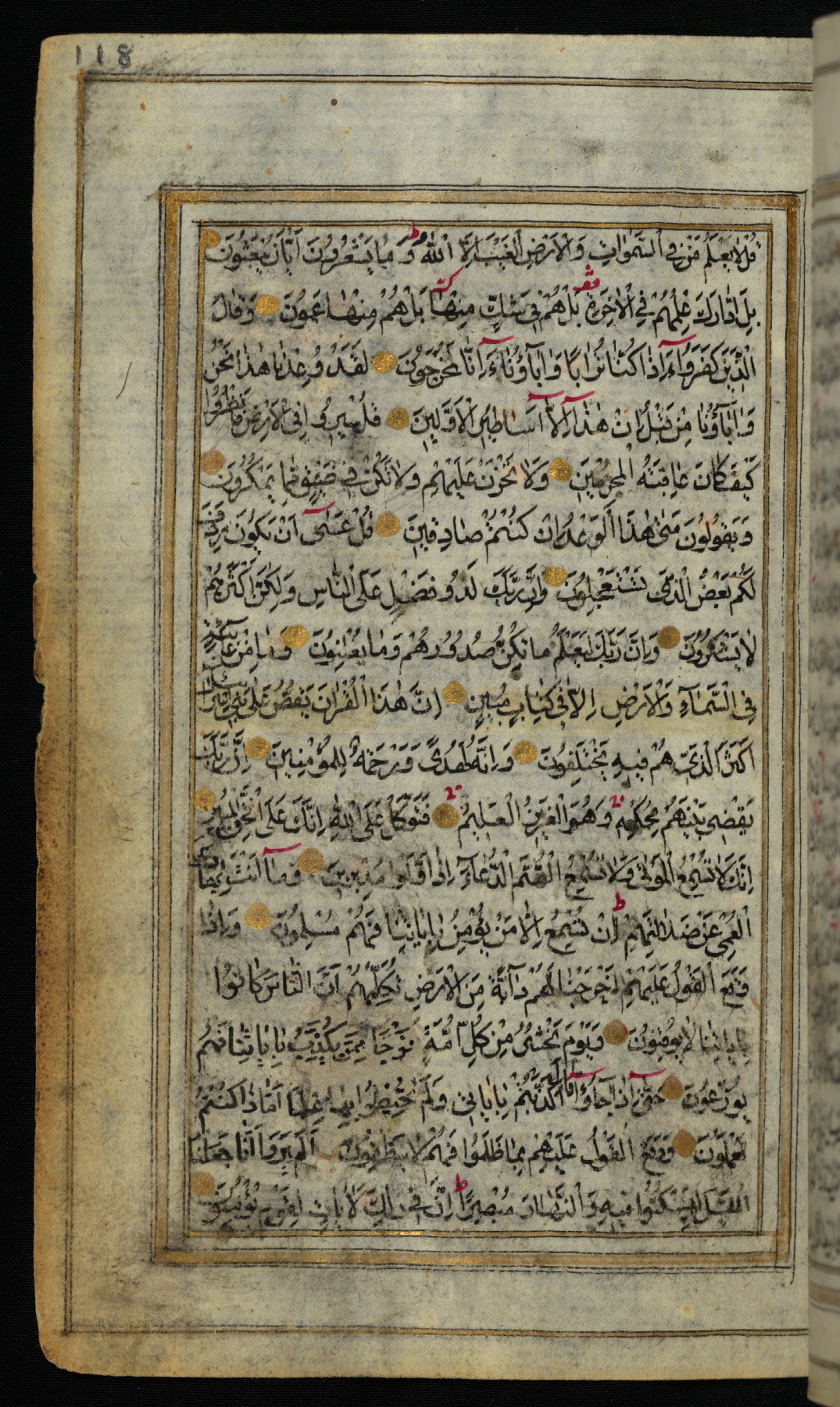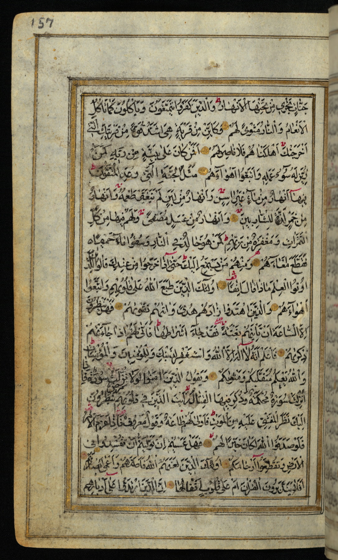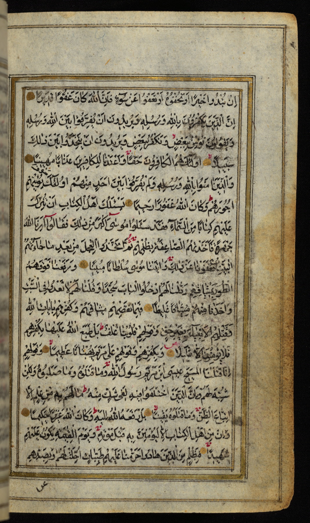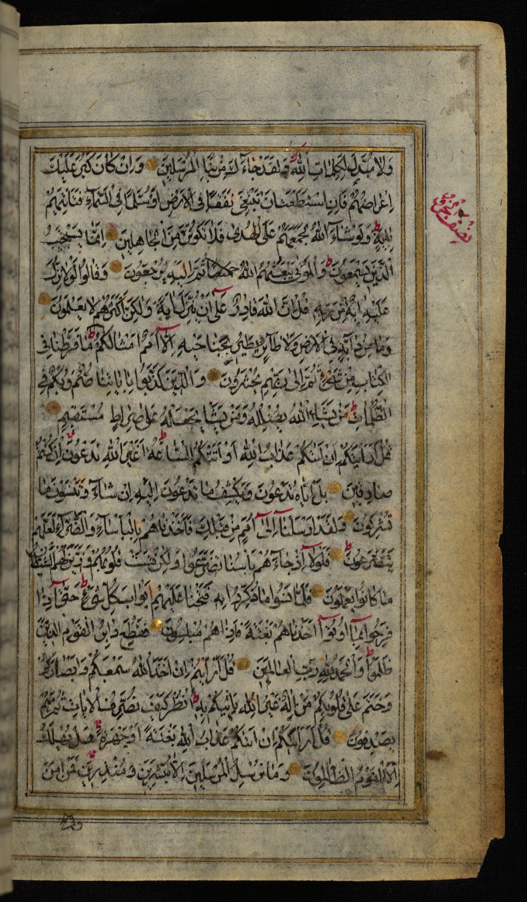 This small copy of the Qur'an was penned by an anonymous scribe in Iran in the thirteenth century AH / nineteenth century CE.