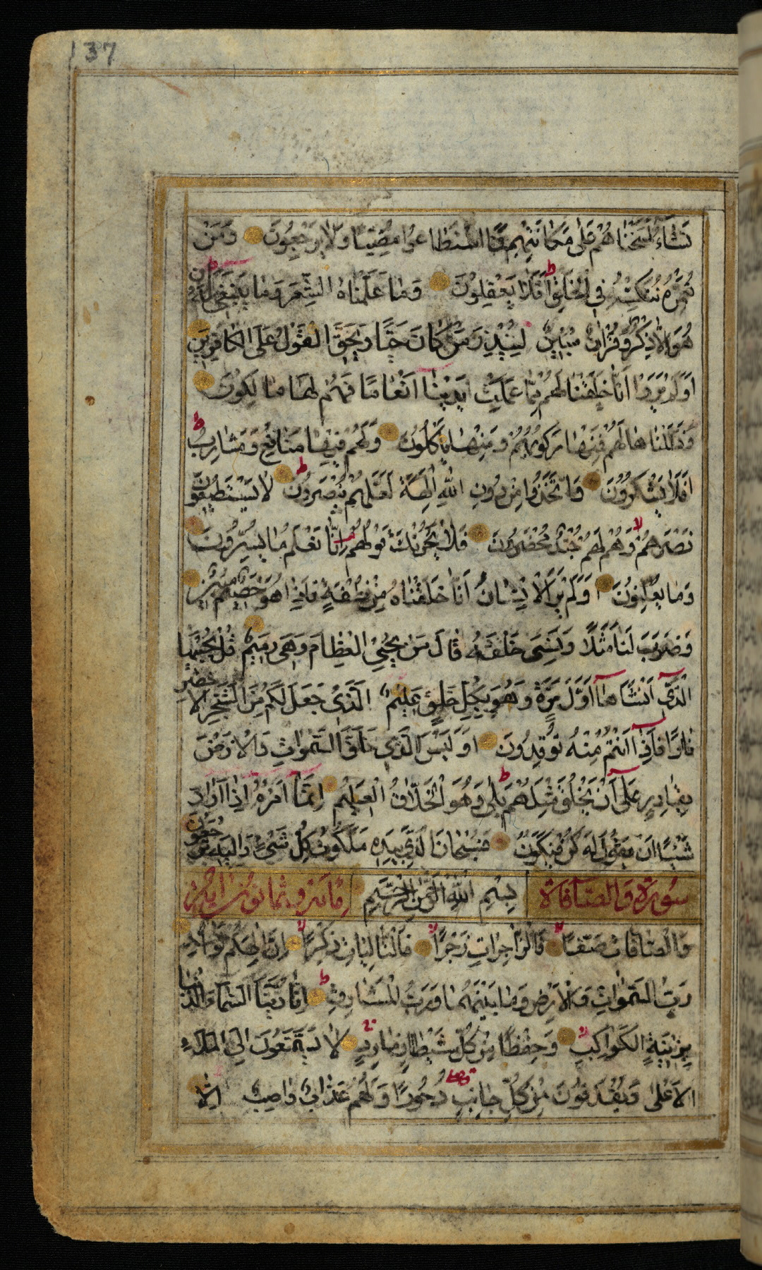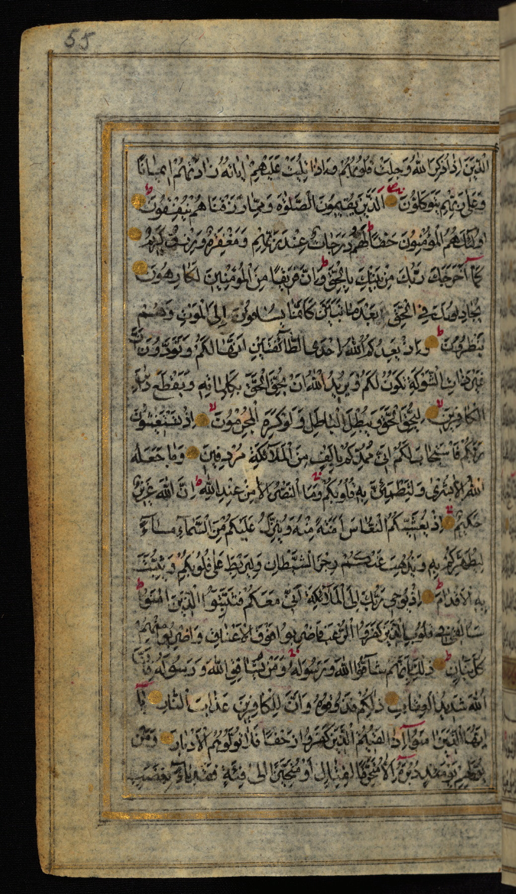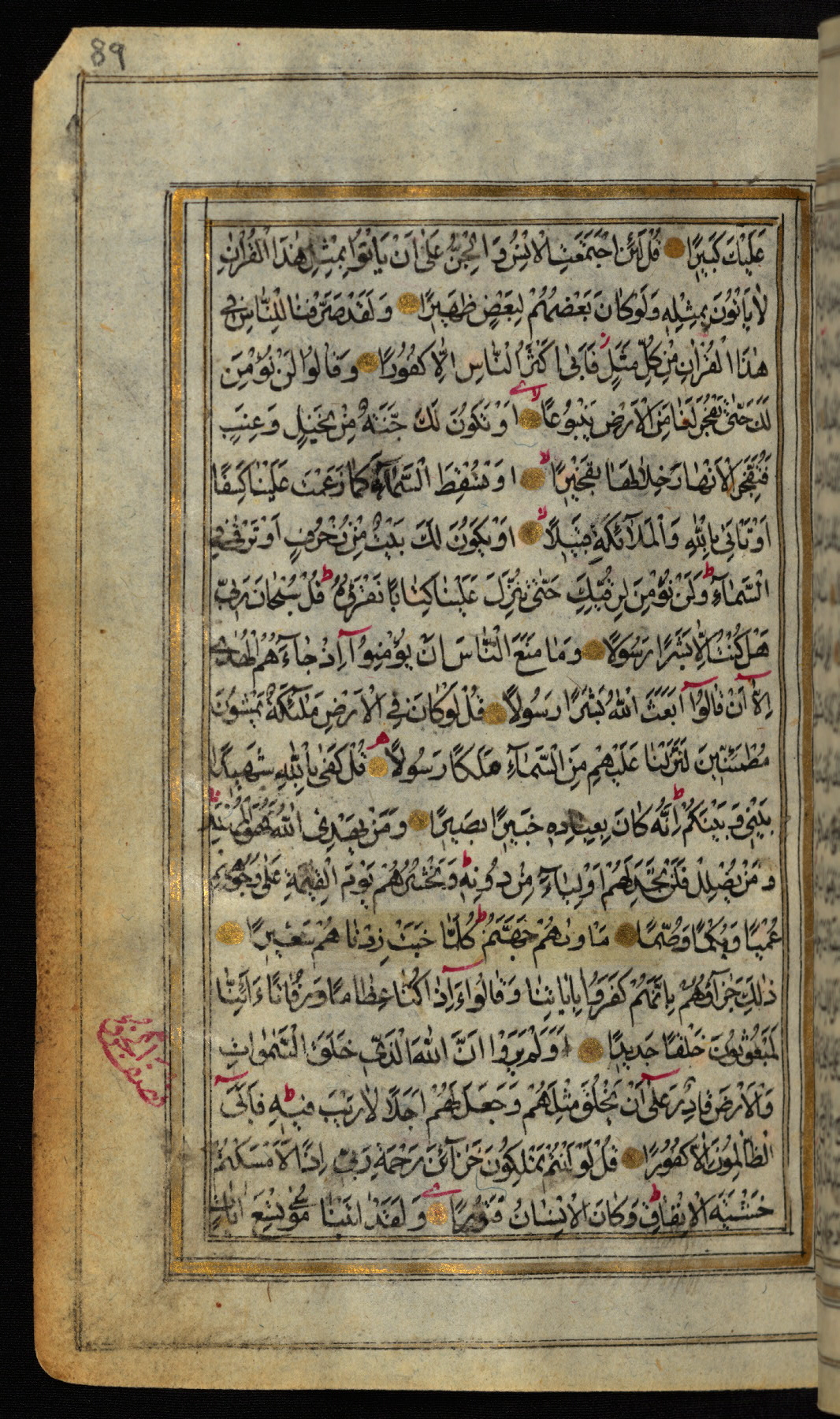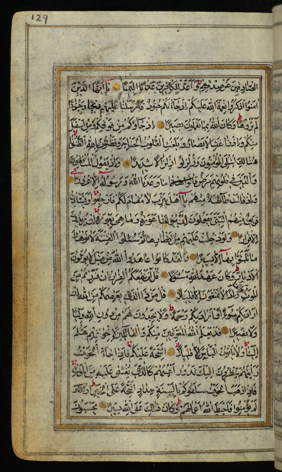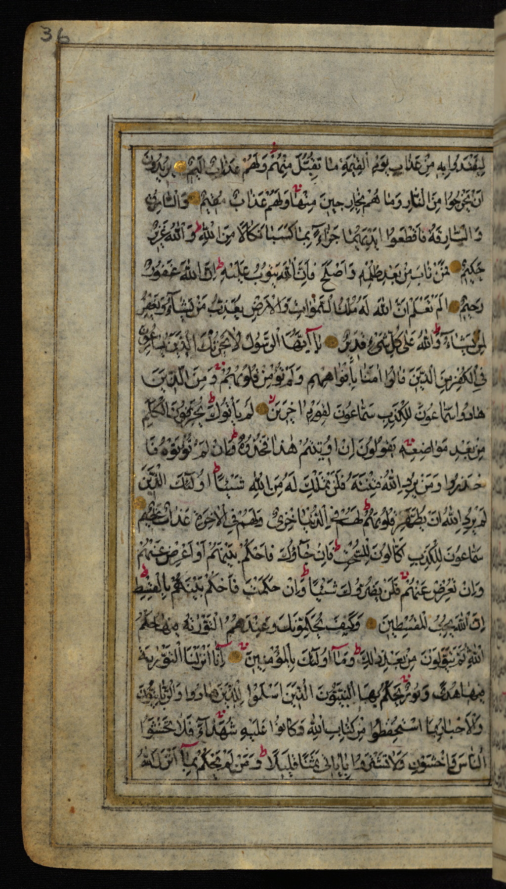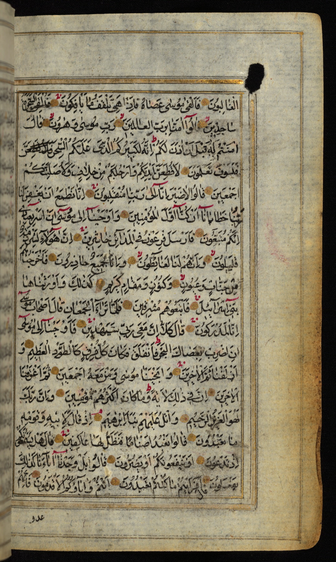 This small copy of the Qur'an was penned by an anonymous scribe in Iran in the thirteenth century AH / nineteenth century CE.