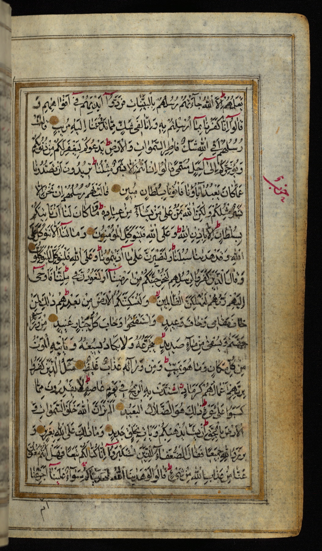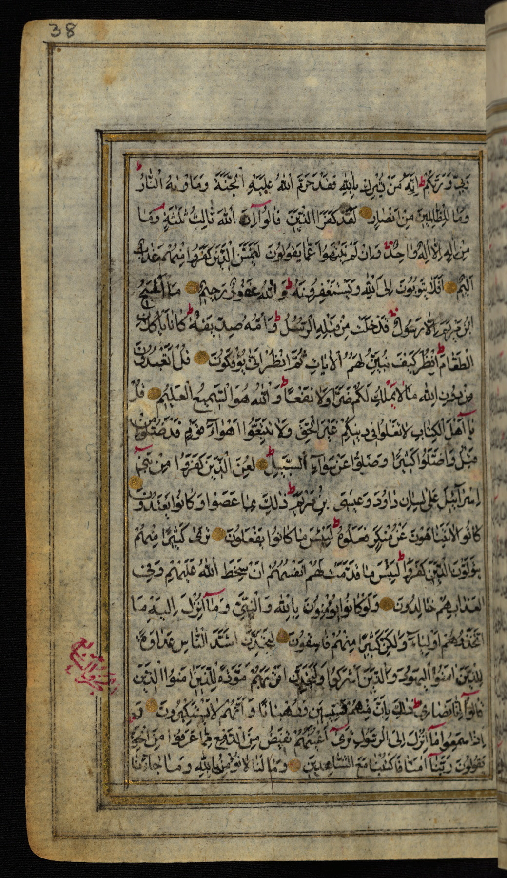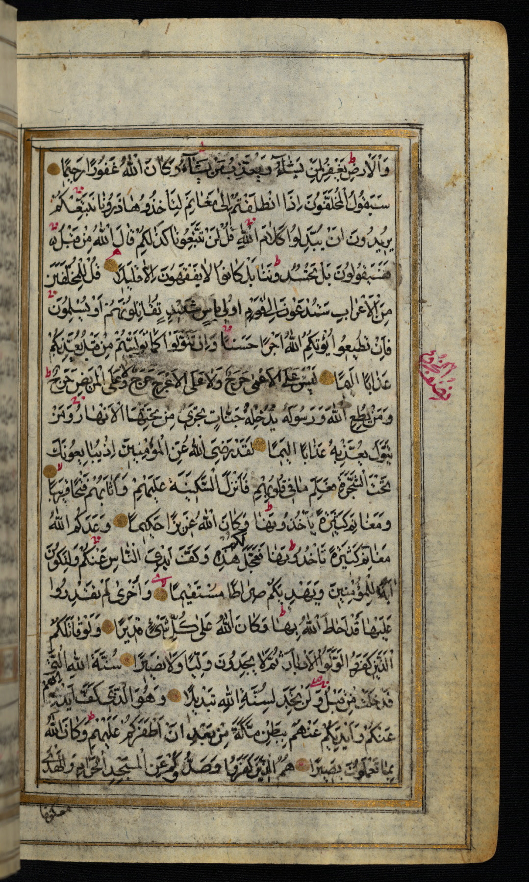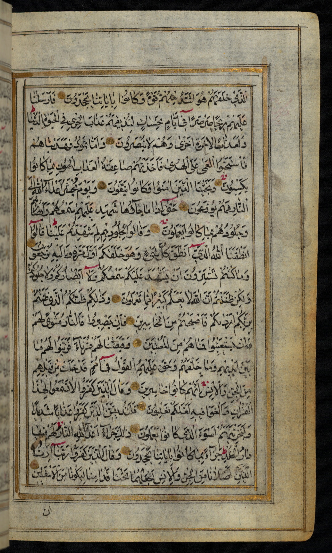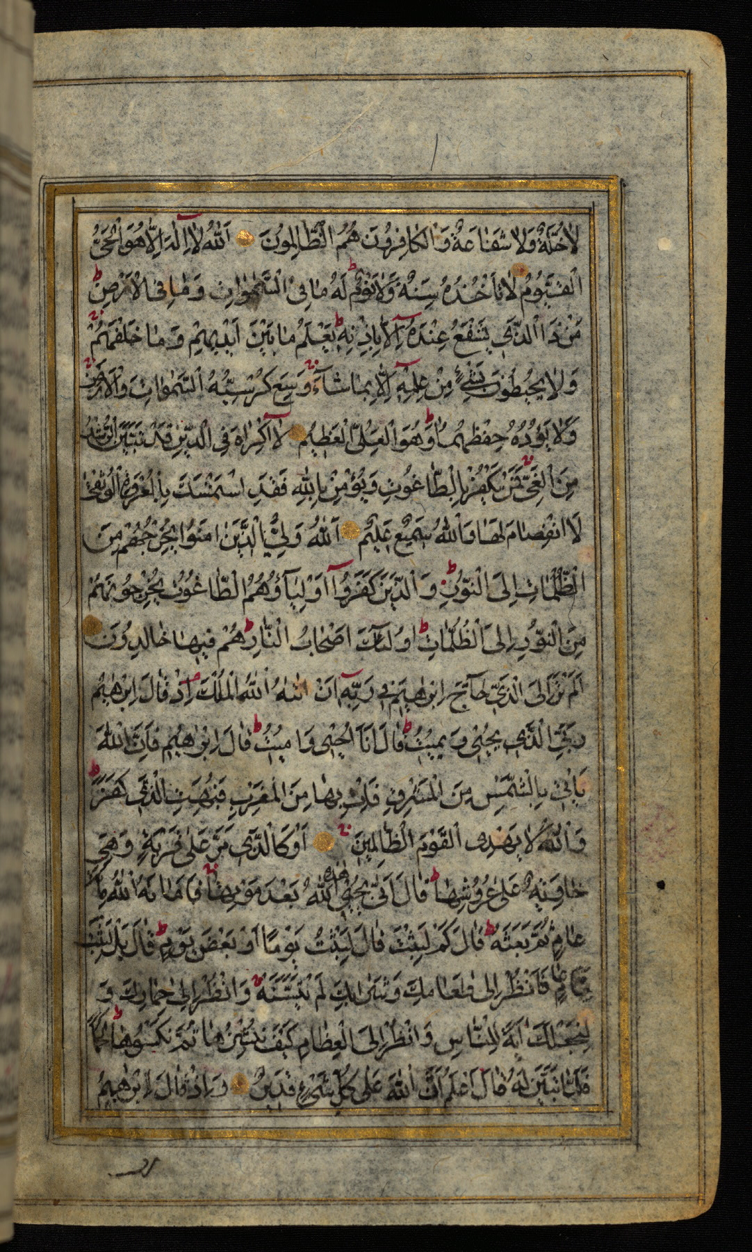 This small copy of the Qur'an was penned by an anonymous scribe in Iran in the thirteenth century AH / nineteenth century CE.