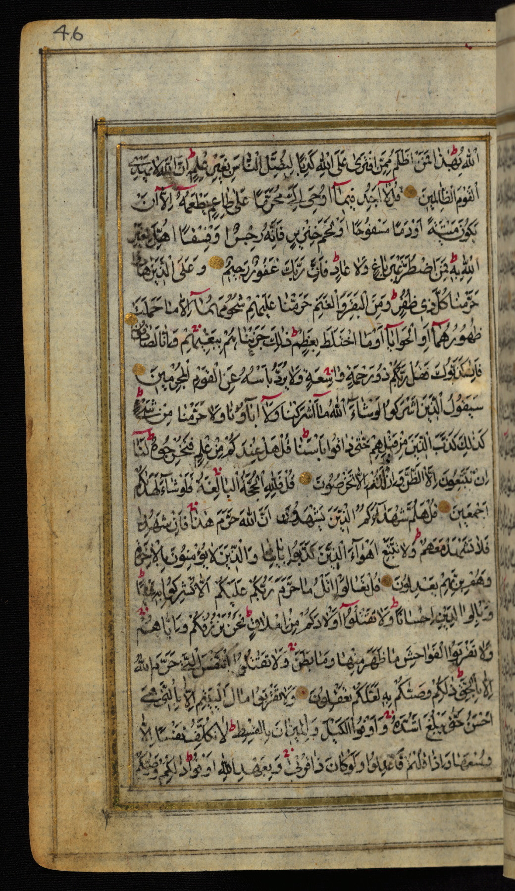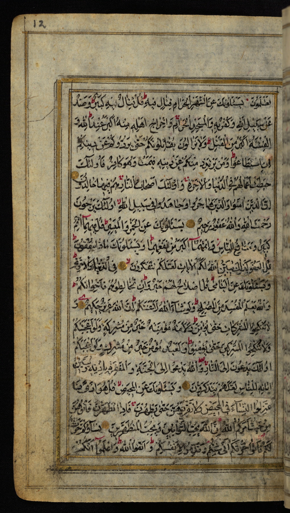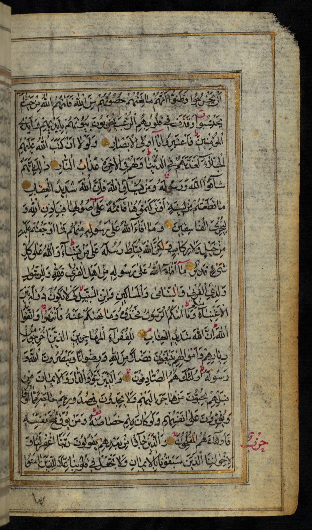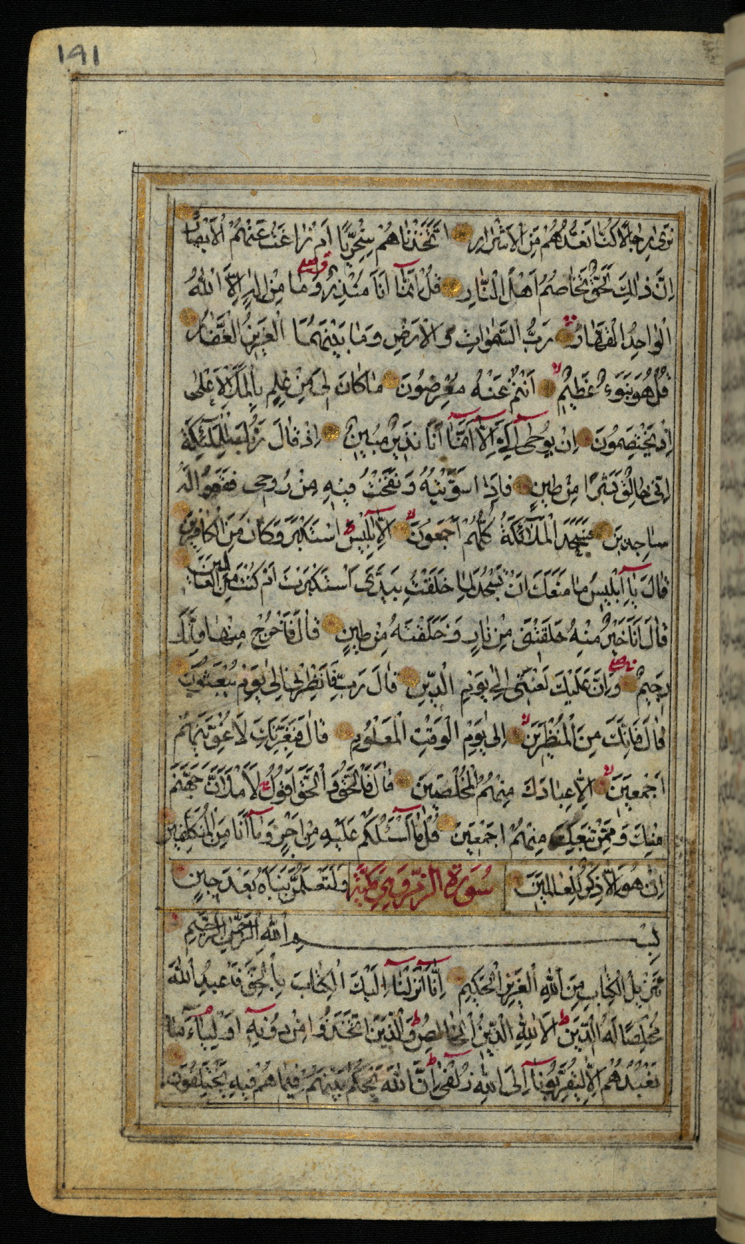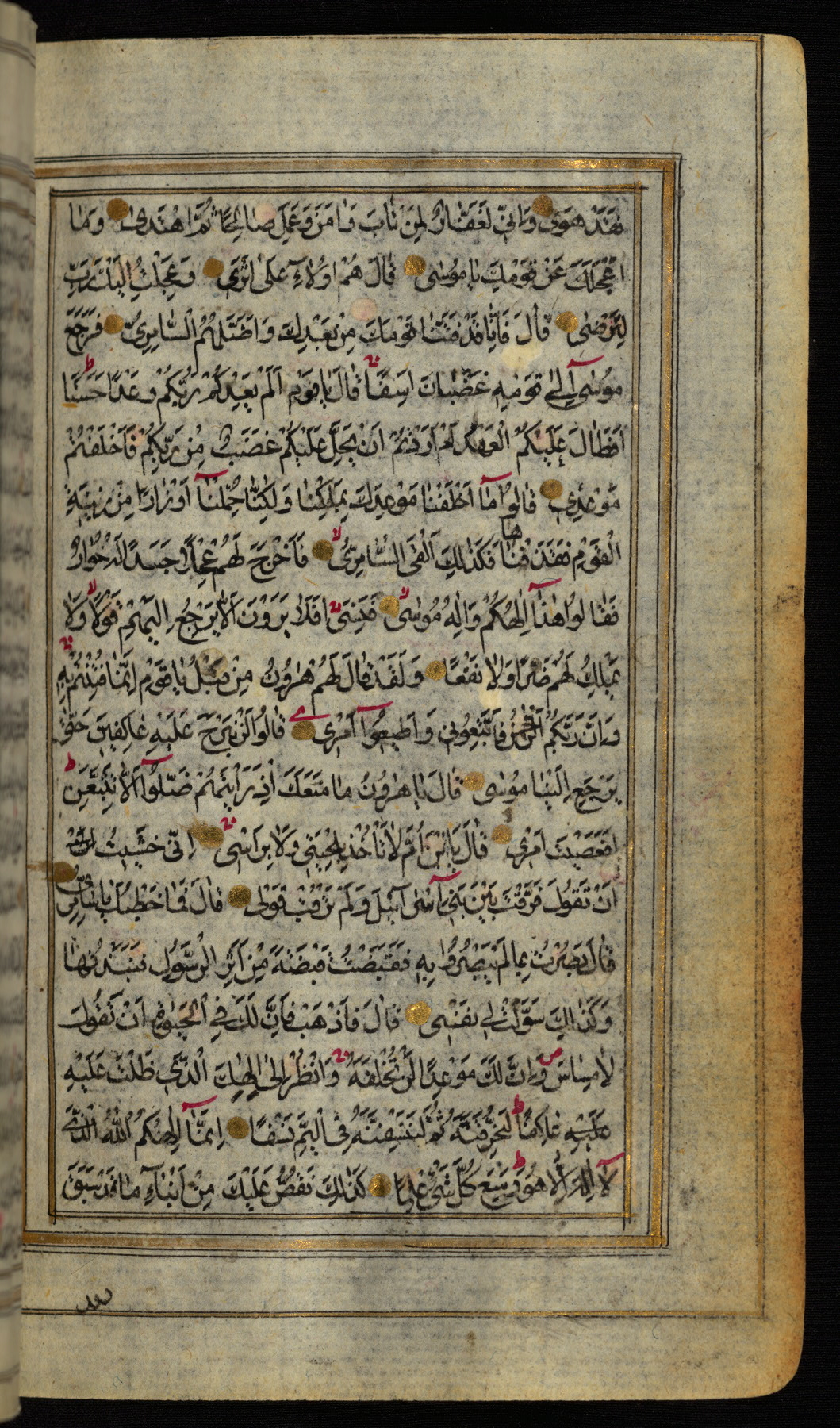This small copy of the Qur'an was penned by an anonymous scribe in Iran in the thirteenth century AH / nineteenth century CE.