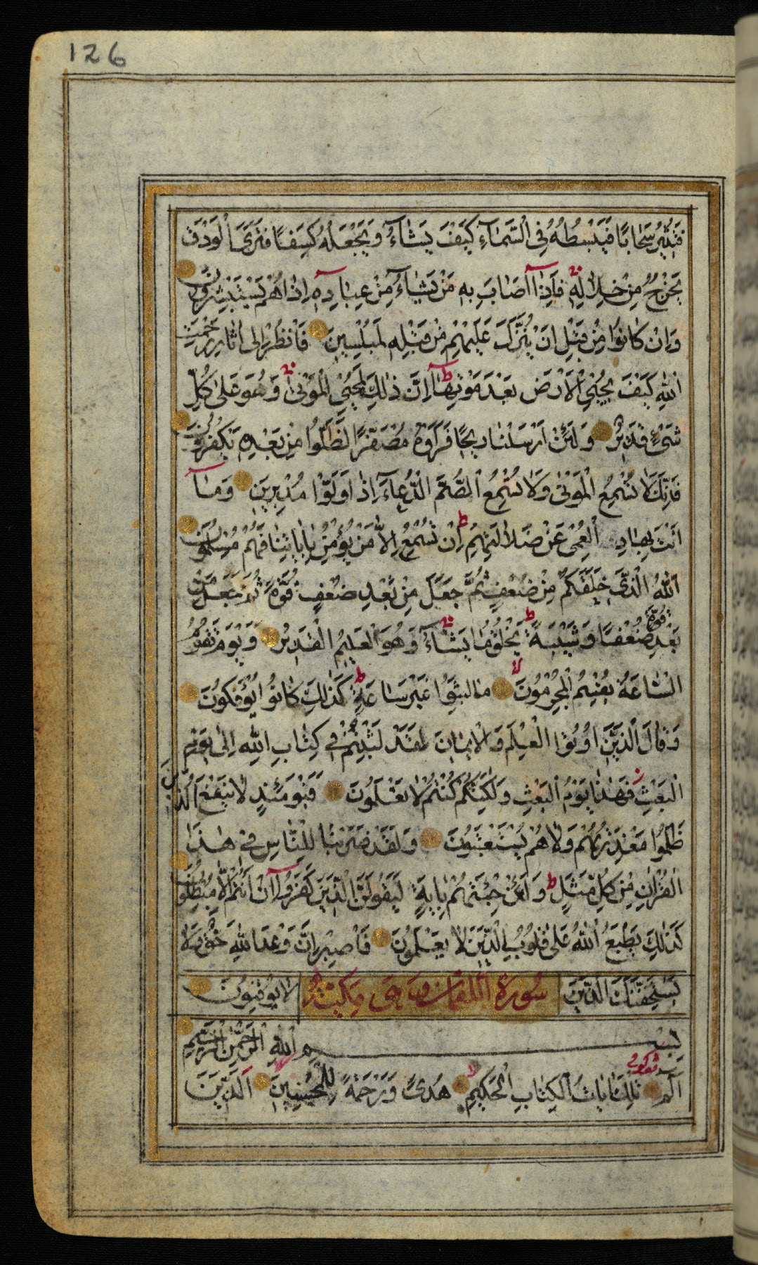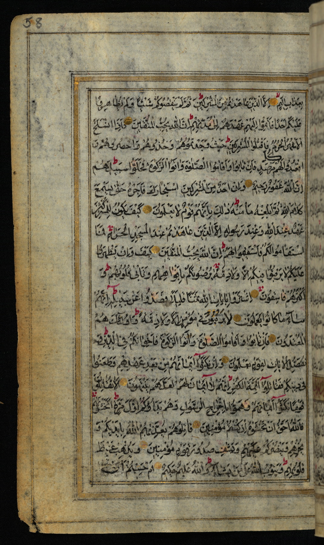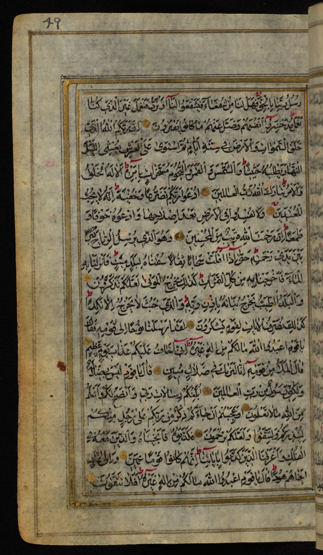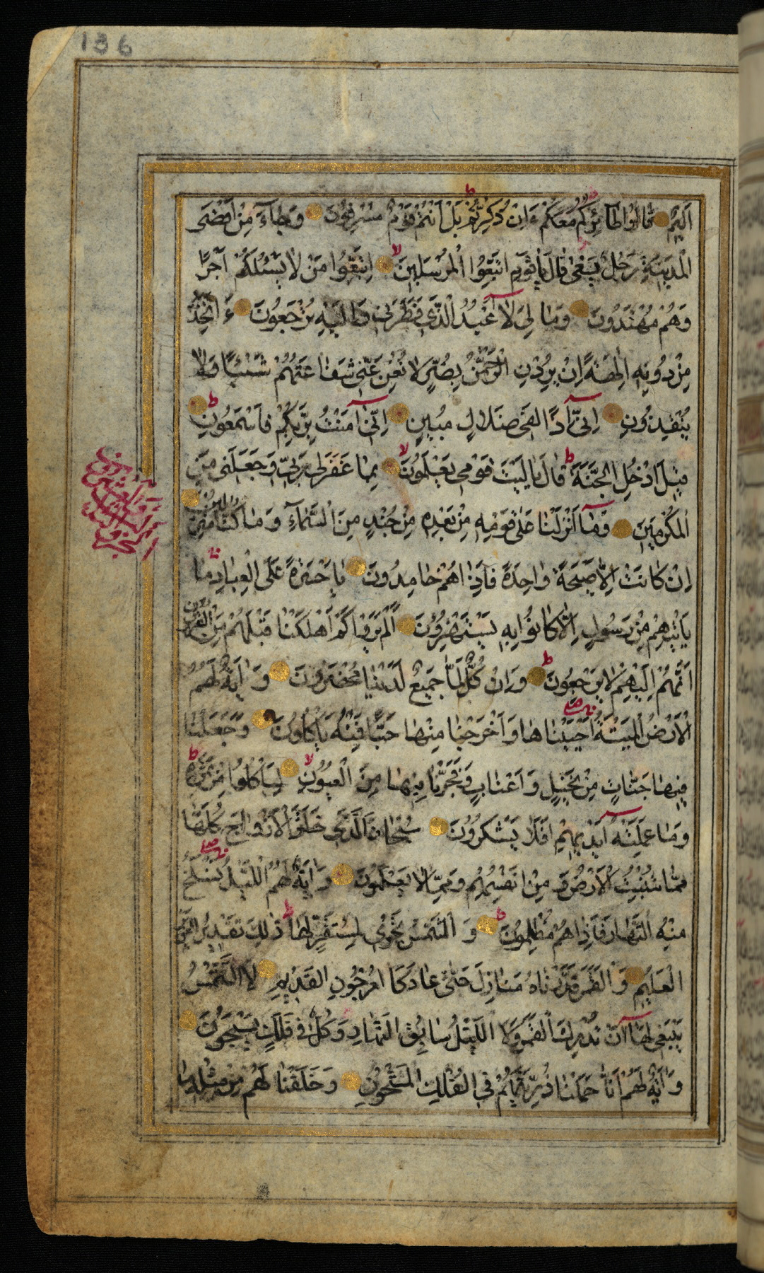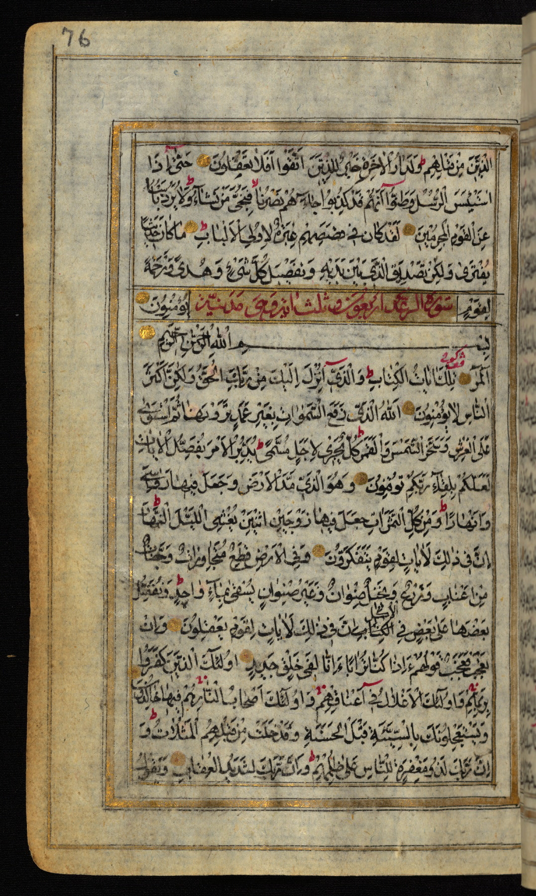 This small copy of the Qur'an was penned by an anonymous scribe in Iran in the thirteenth century AH / nineteenth century CE.