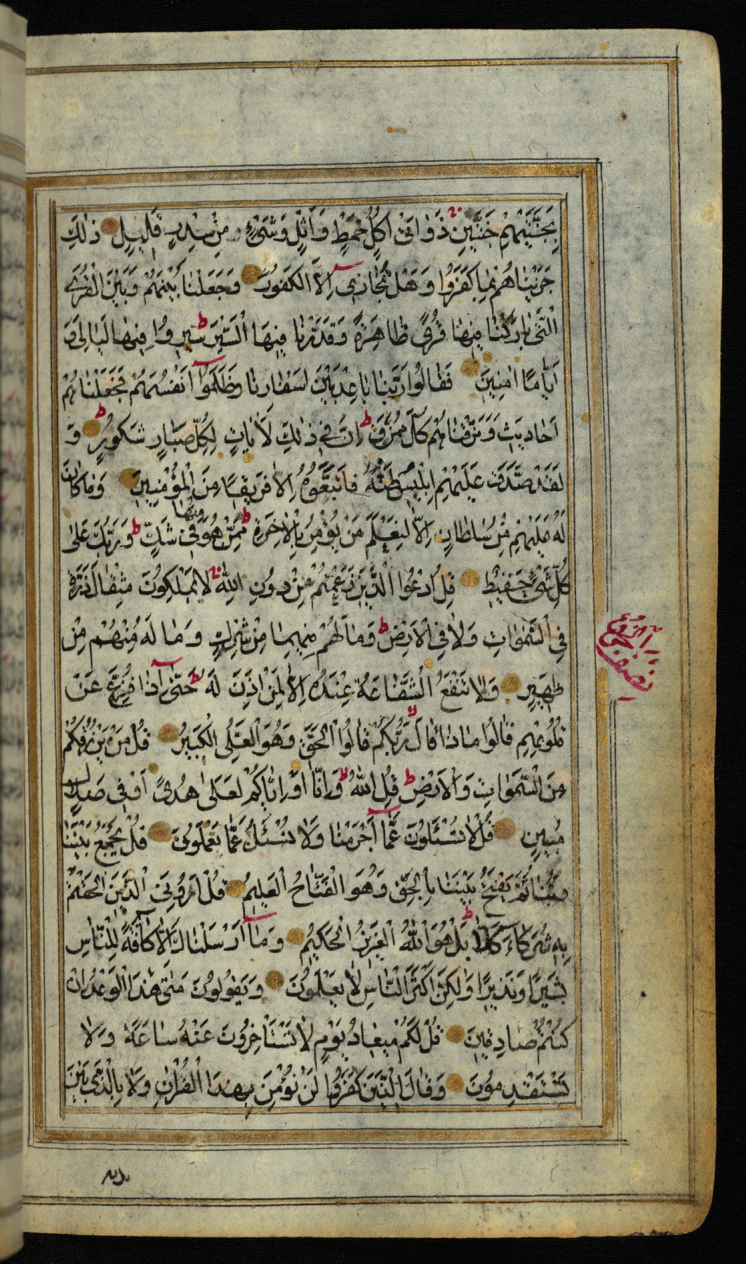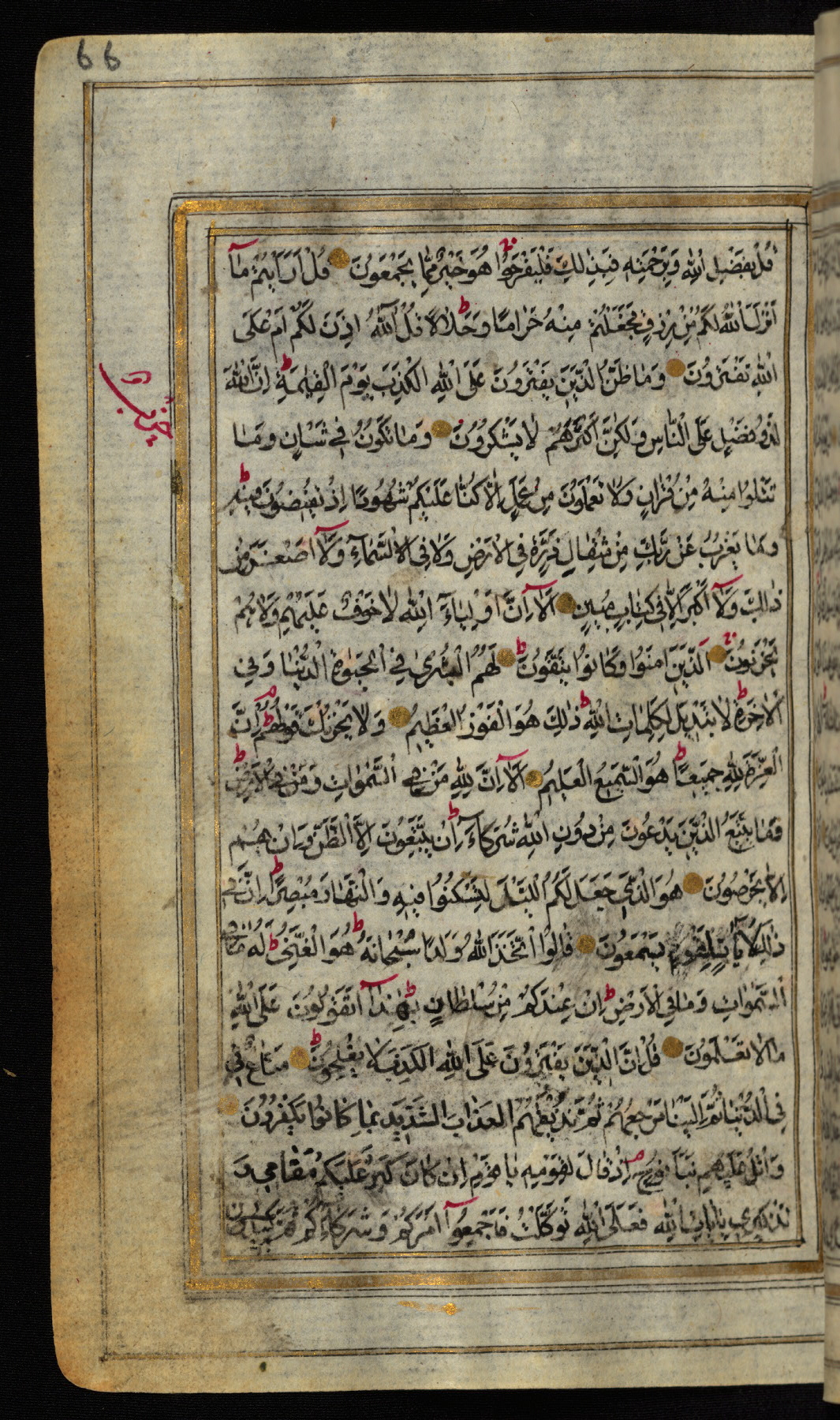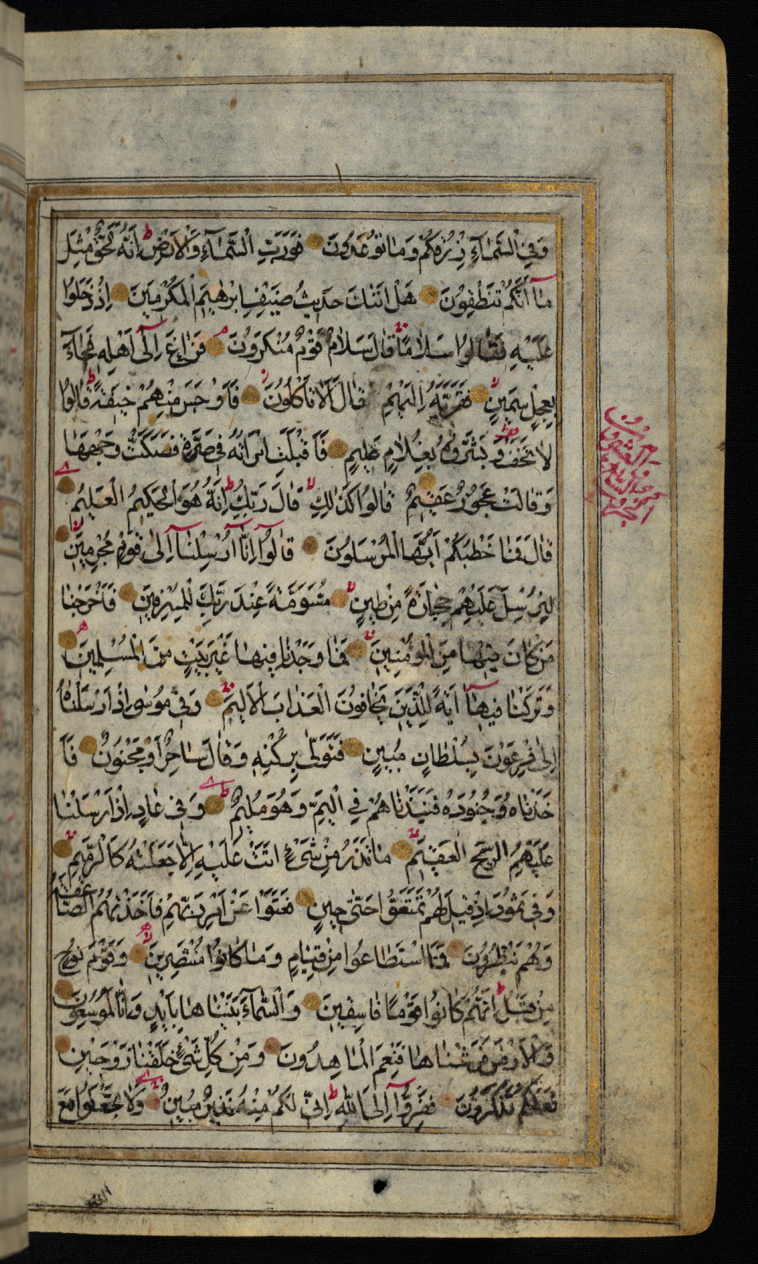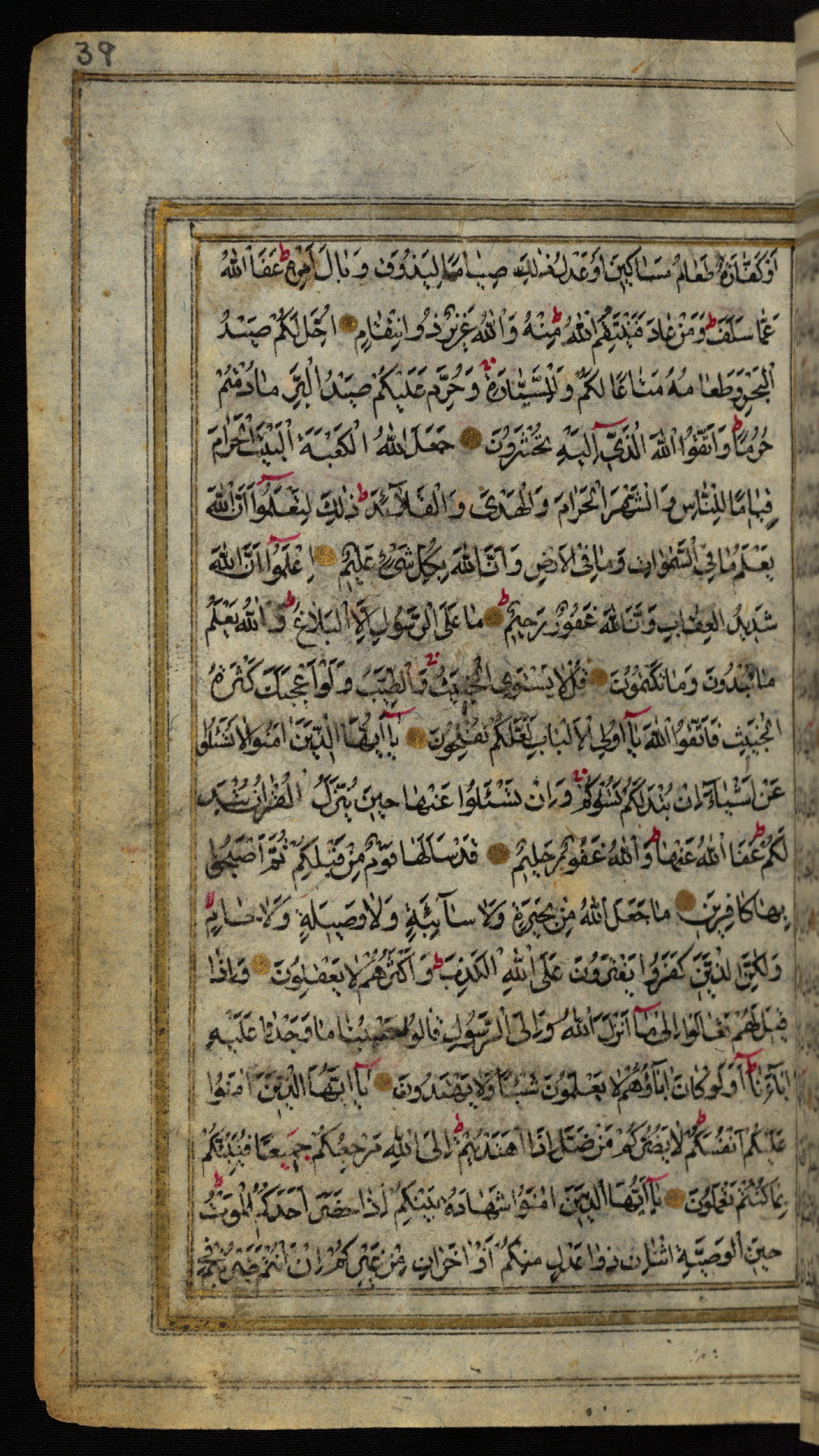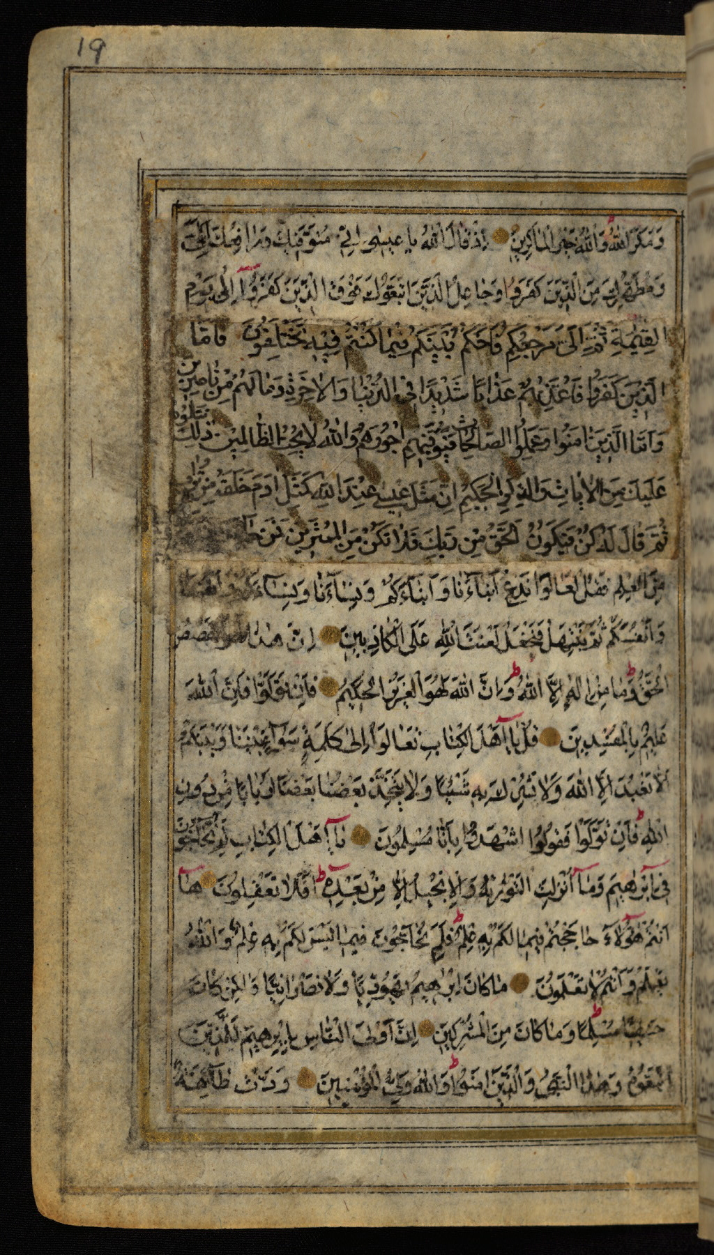 This small copy of the Qur'an was penned by an anonymous scribe in Iran in the thirteenth century AH / nineteenth century CE.