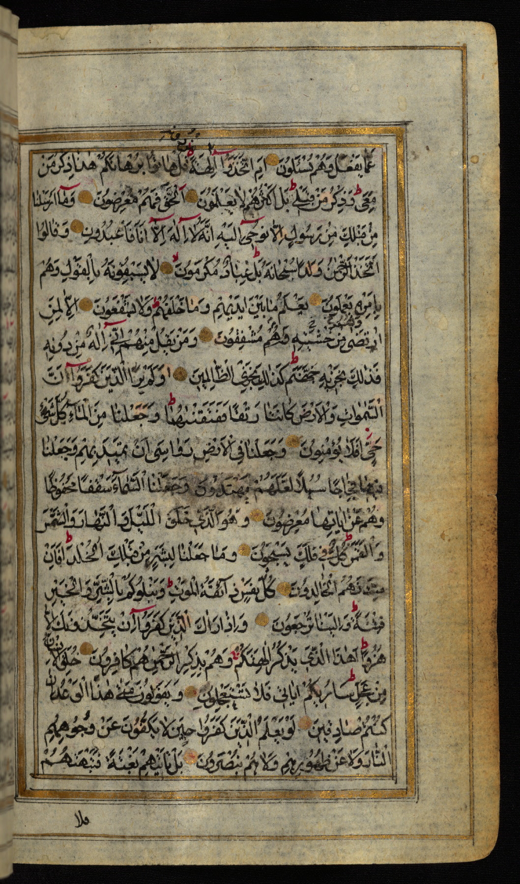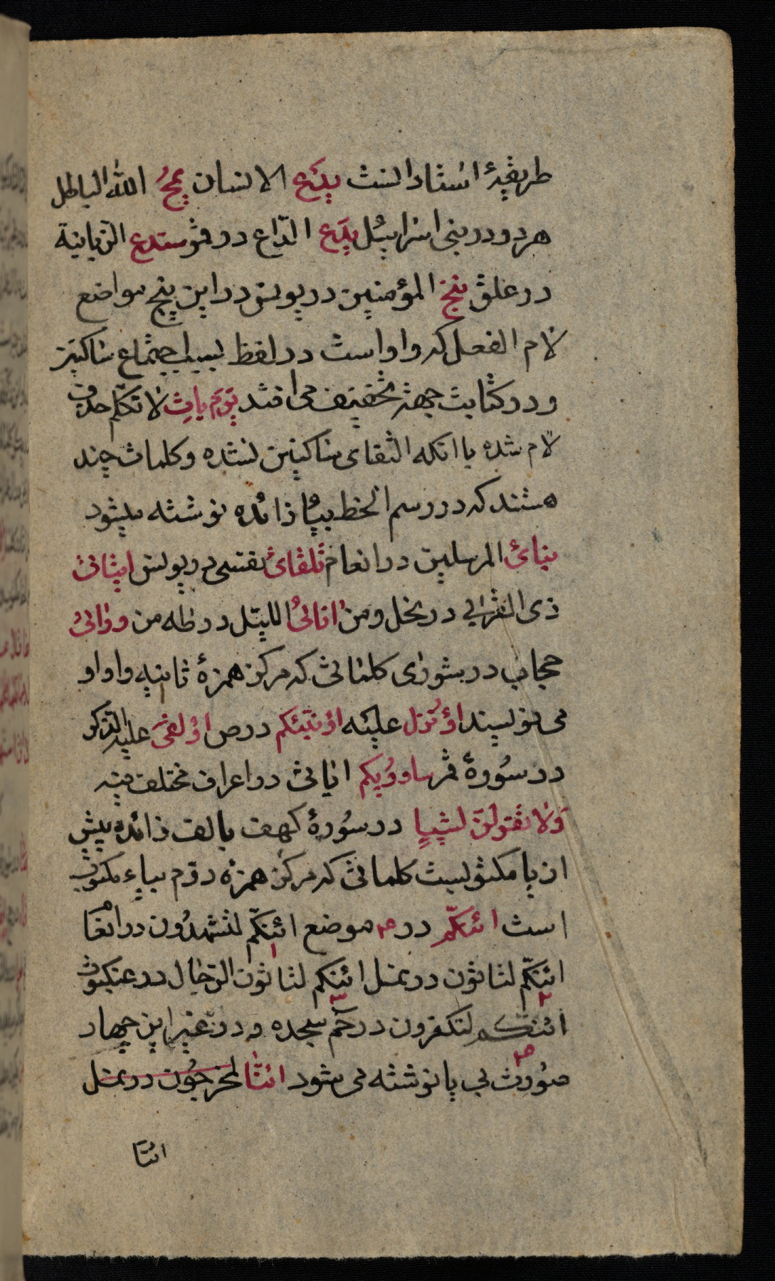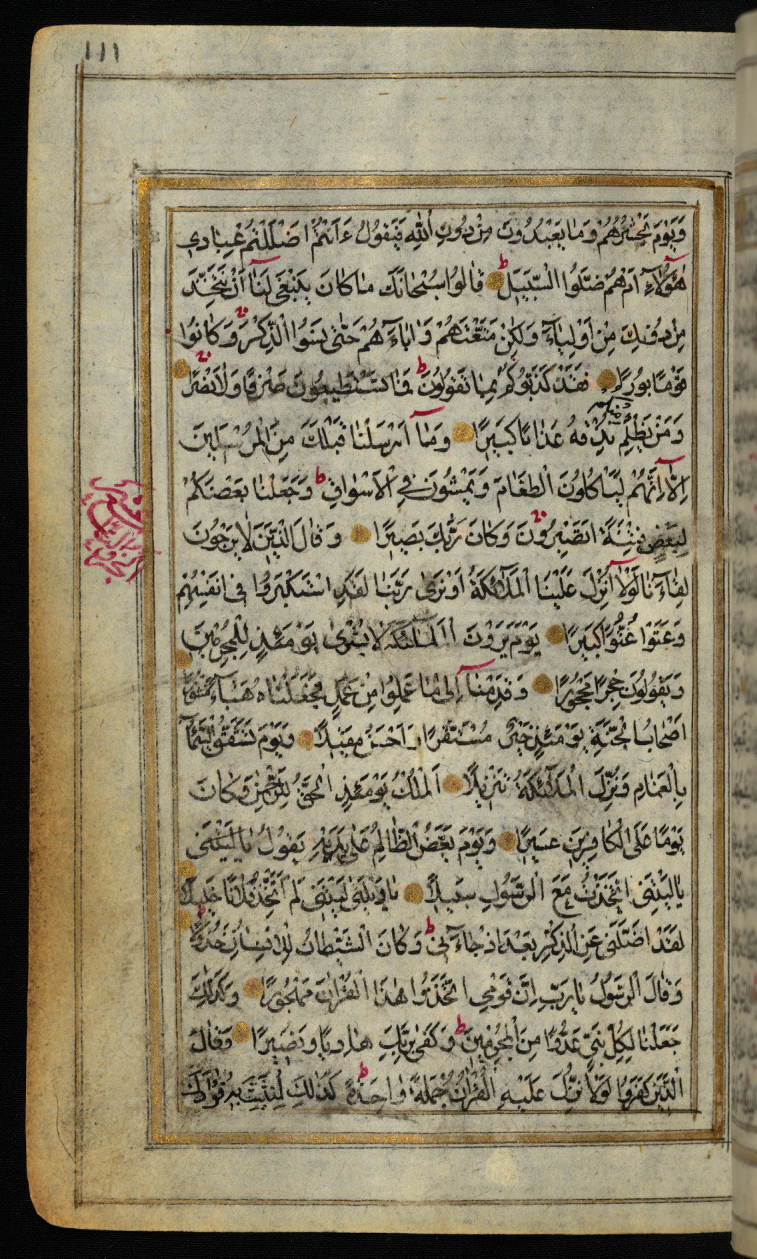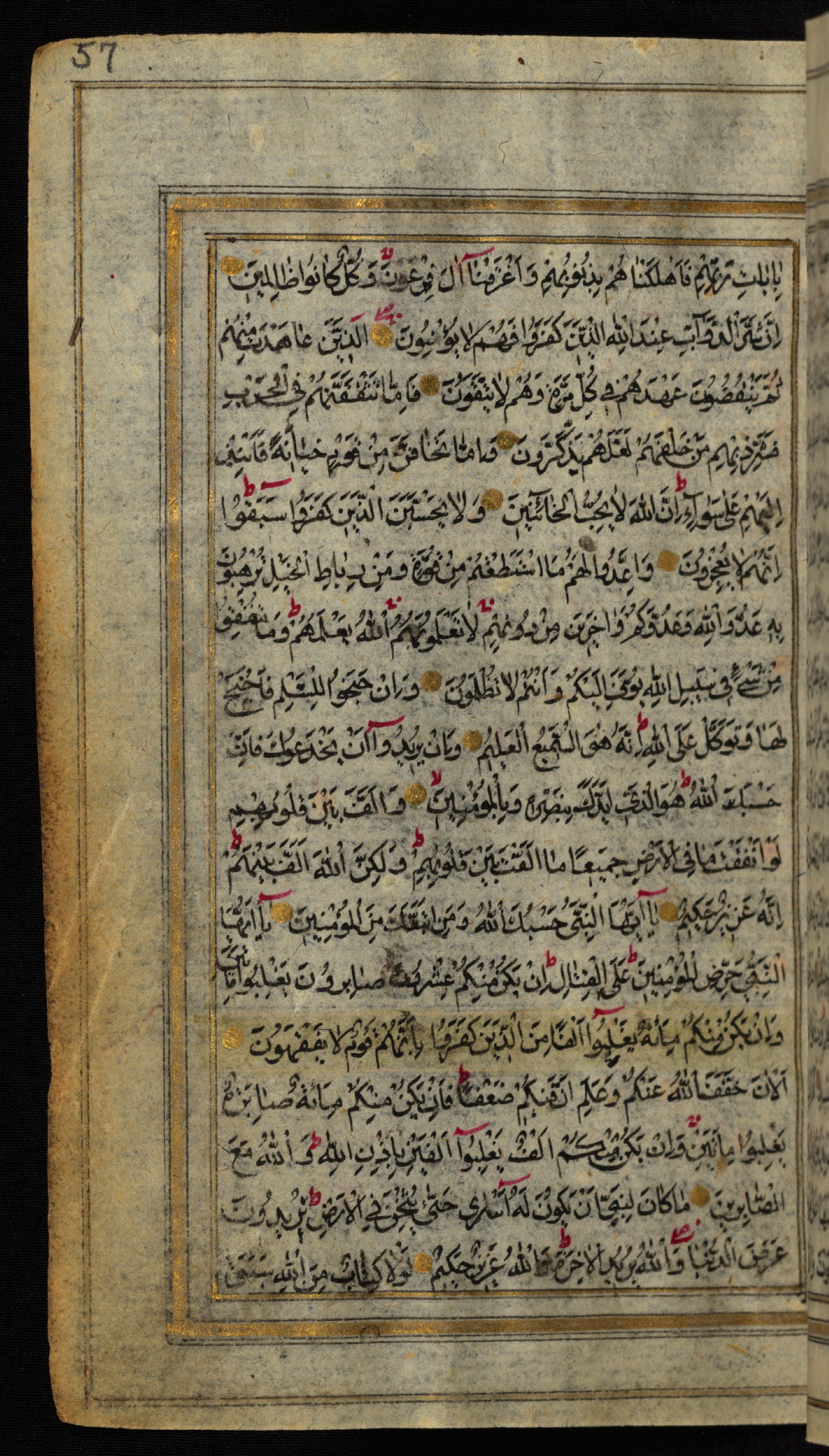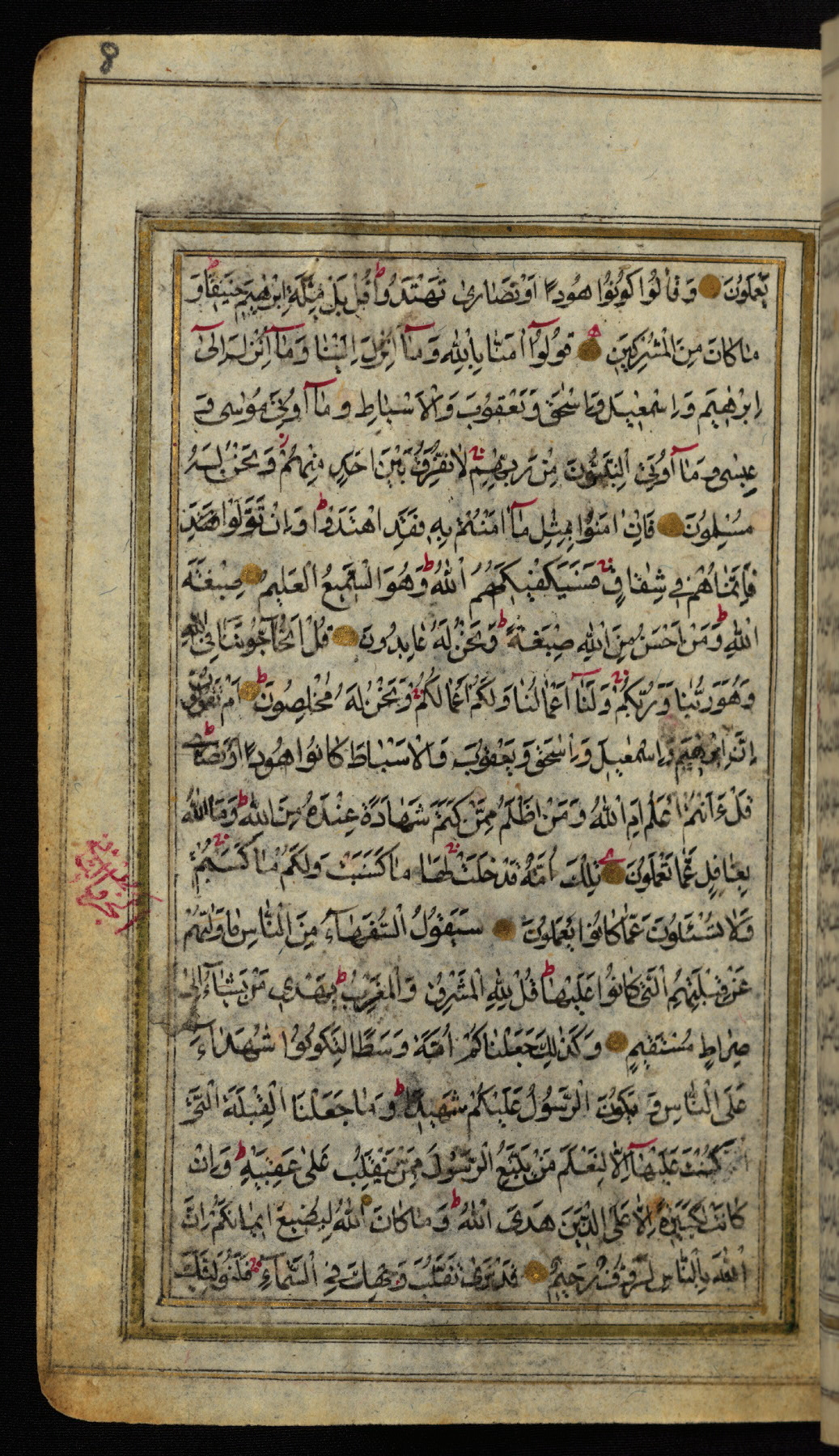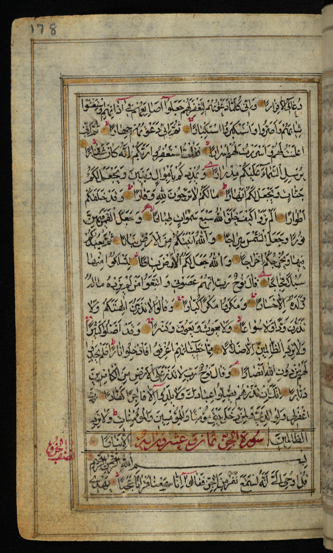 This small copy of the Qur'an was penned by an anonymous scribe in Iran in the thirteenth century AH / nineteenth century CE.