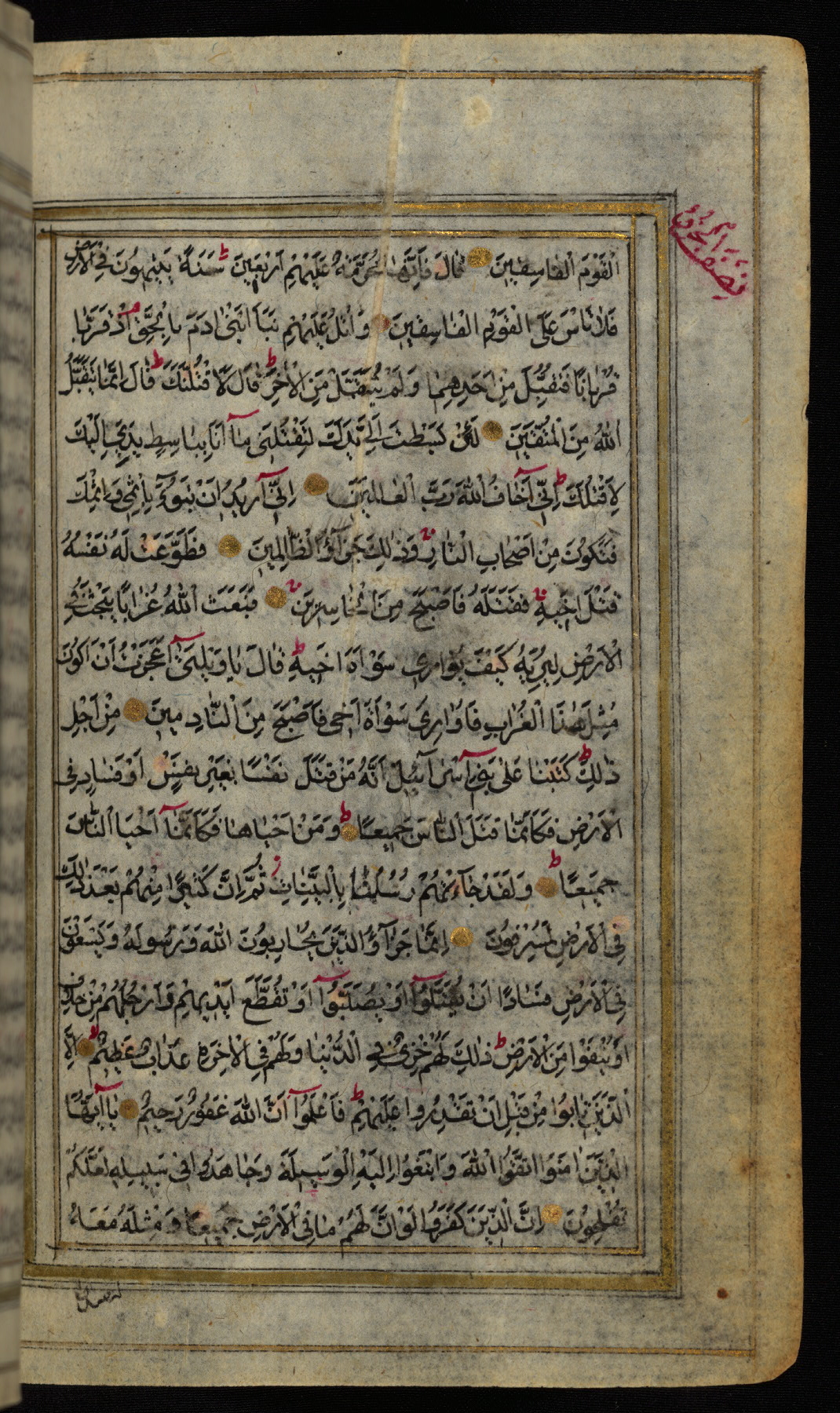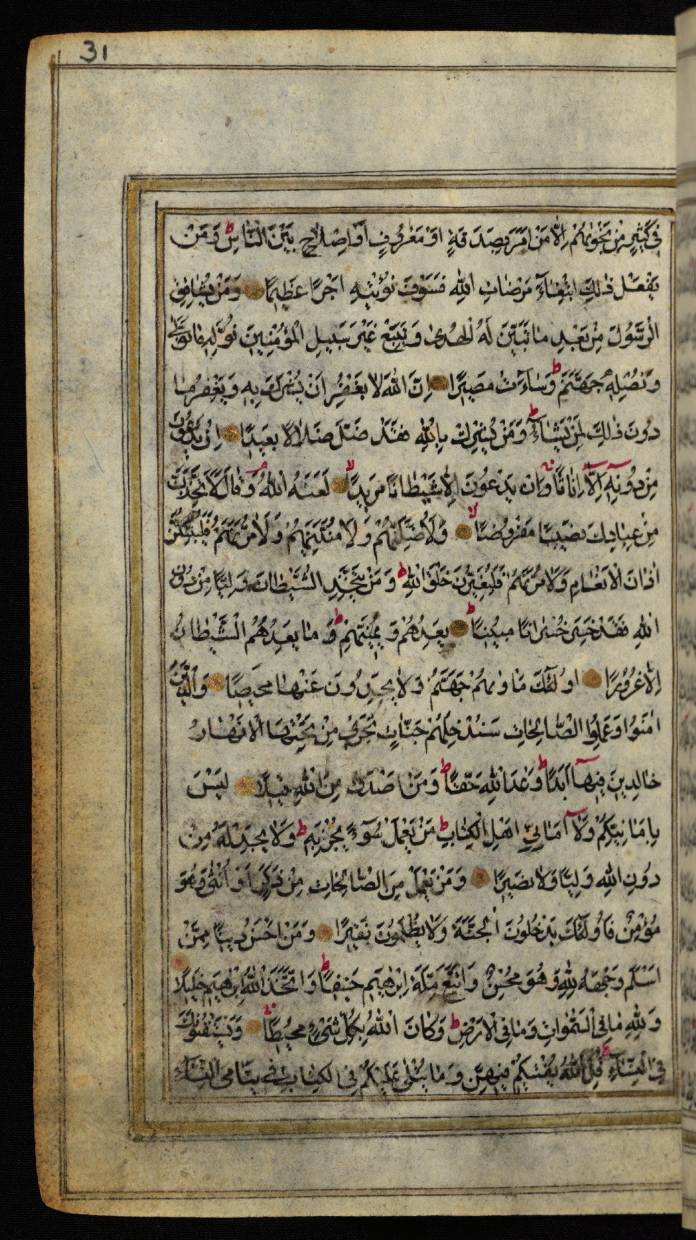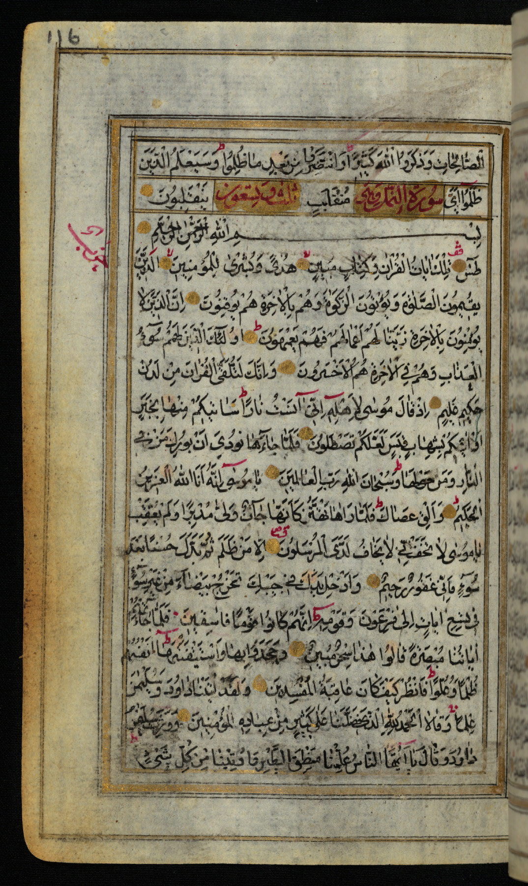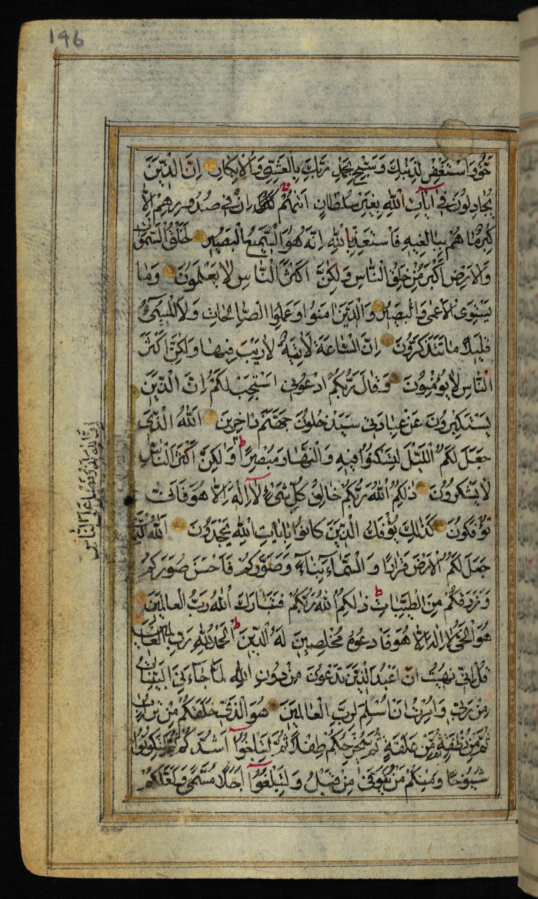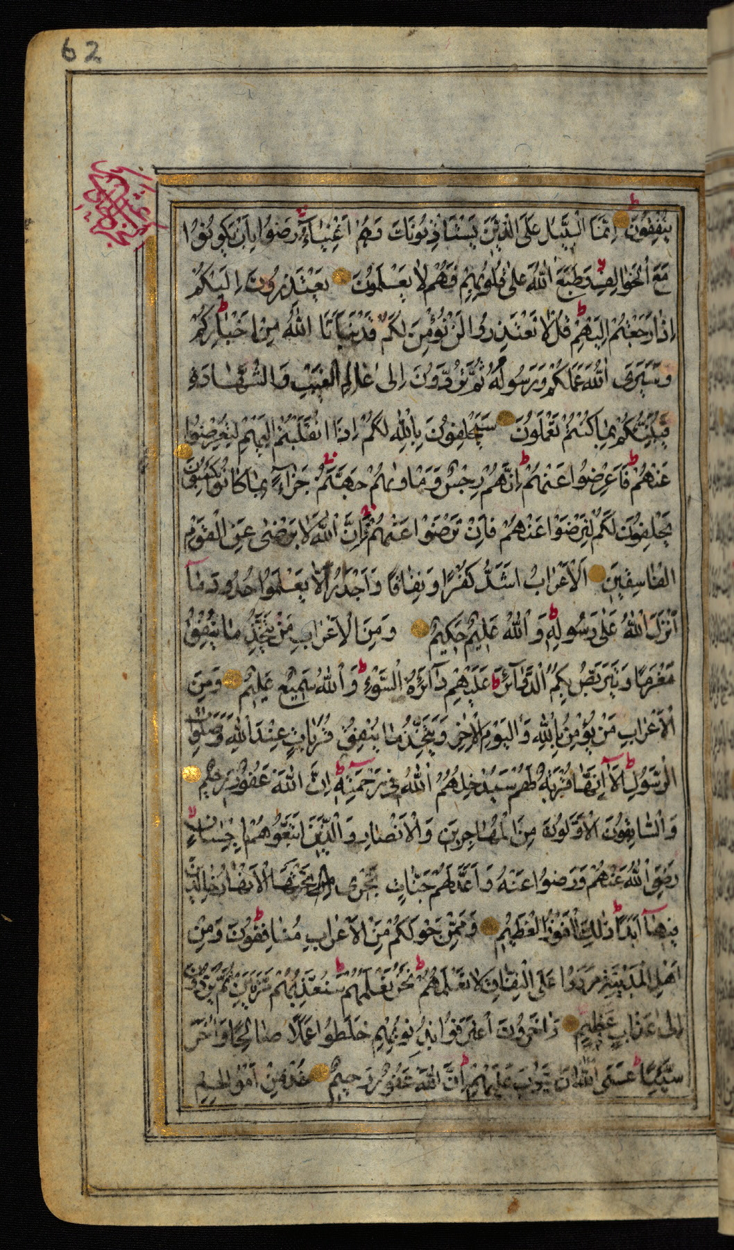 This small copy of the Qur'an was penned by an anonymous scribe in Iran in the thirteenth century AH / nineteenth century CE.