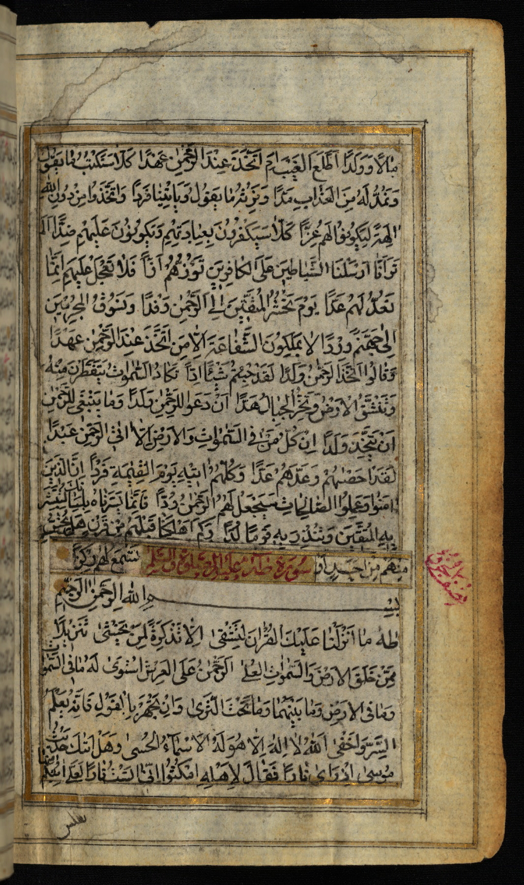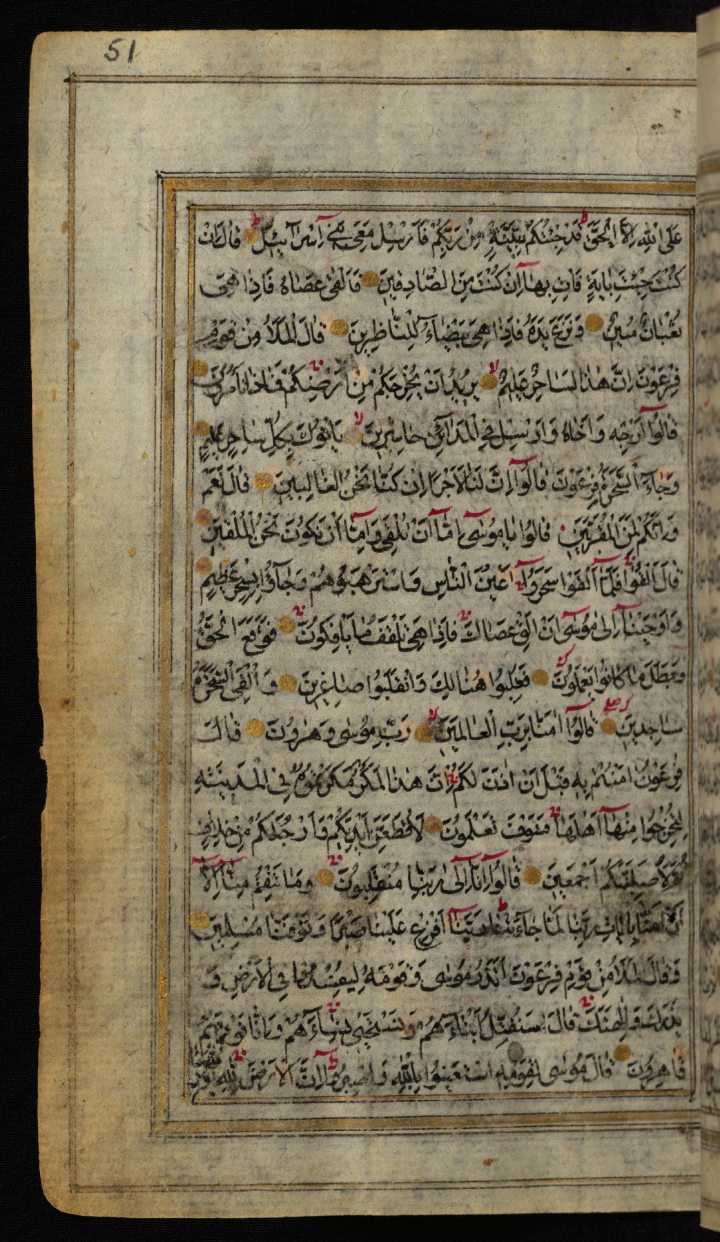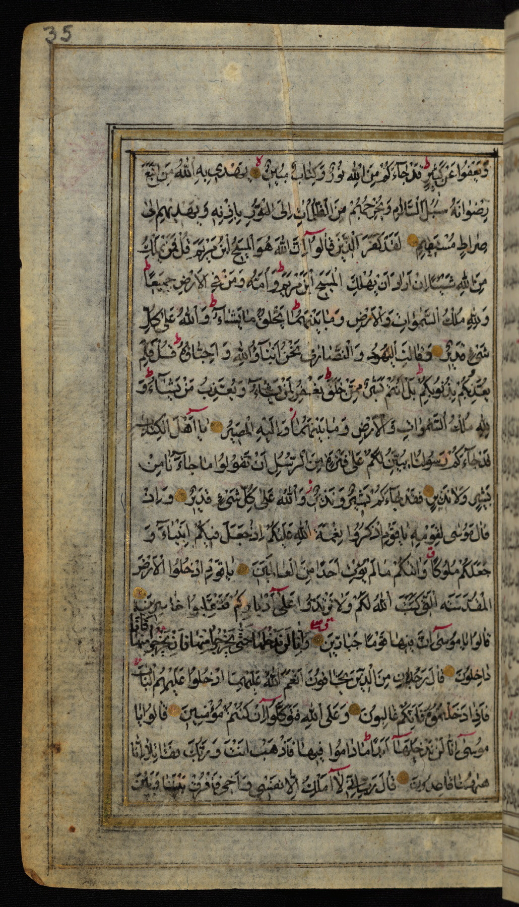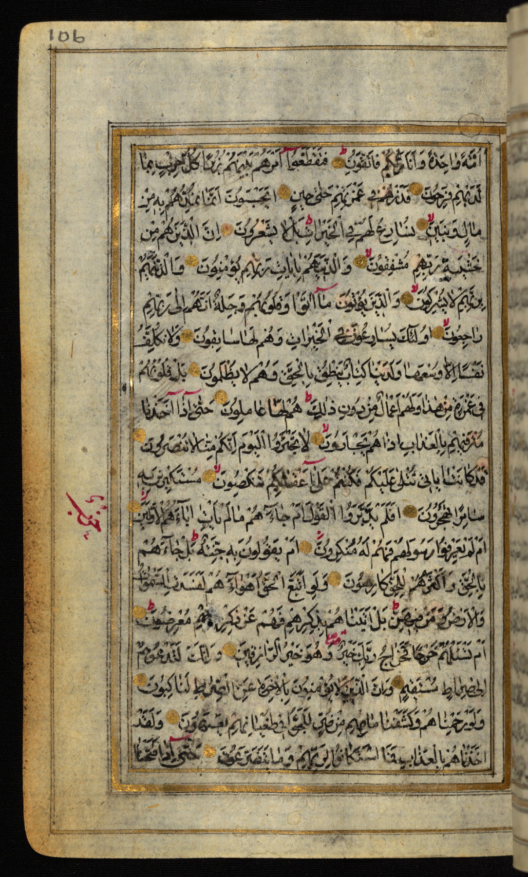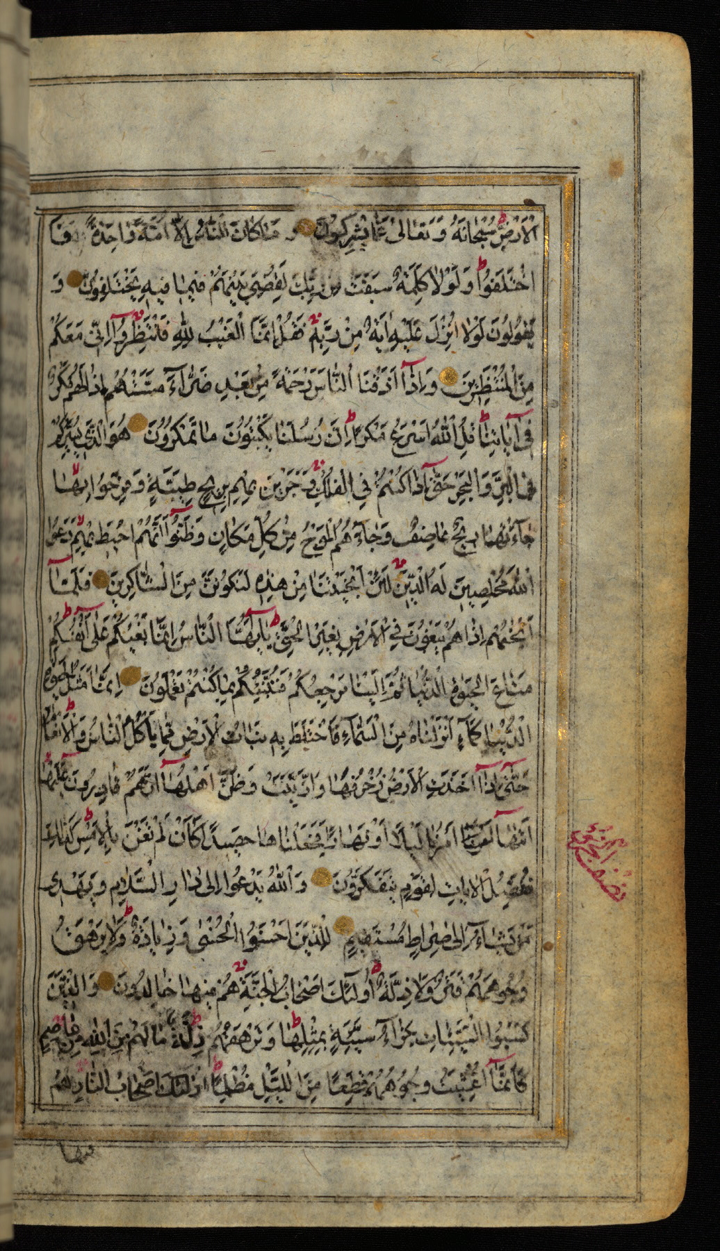 This small copy of the Qur'an was penned by an anonymous scribe in Iran in the thirteenth century AH / nineteenth century CE.
