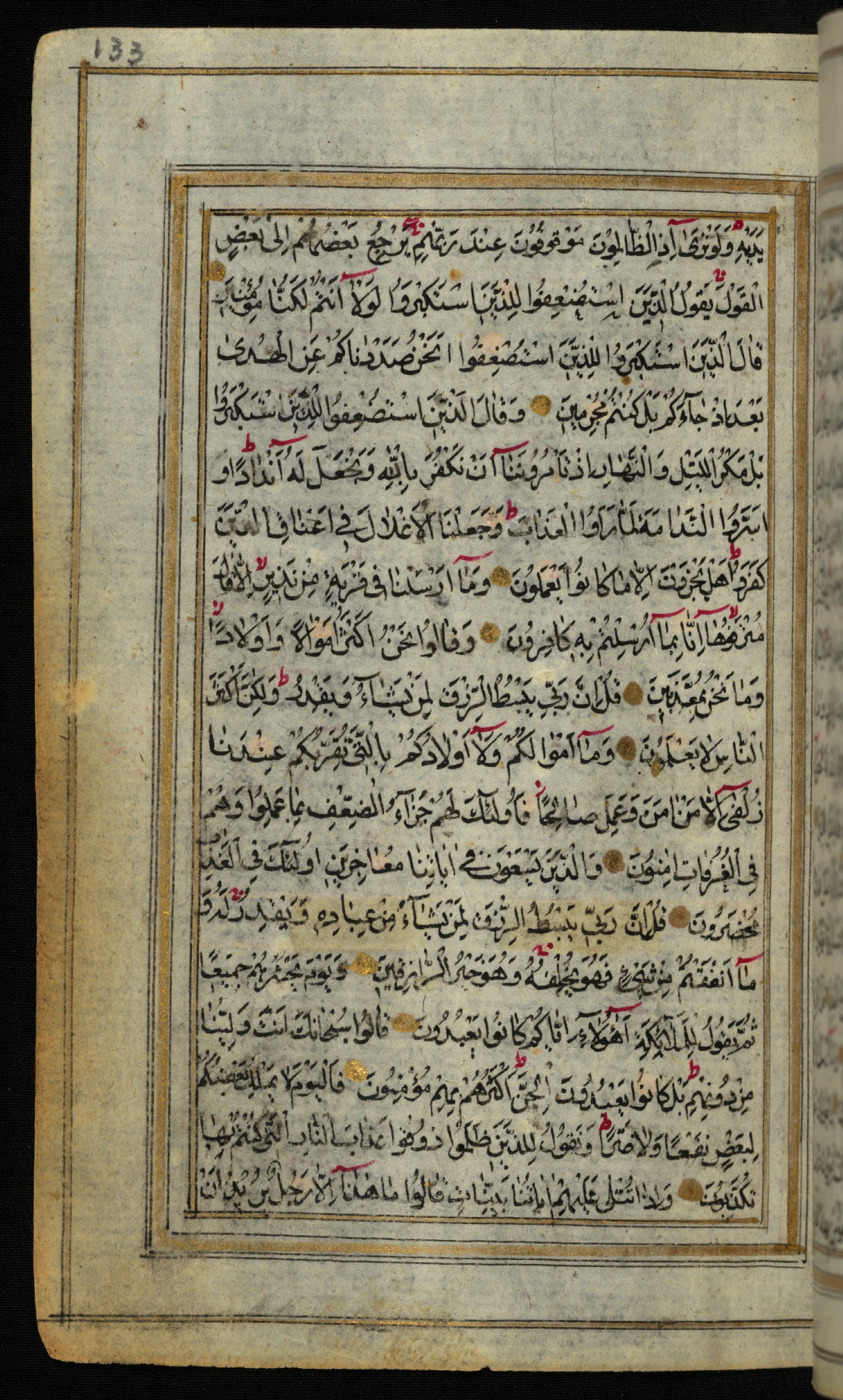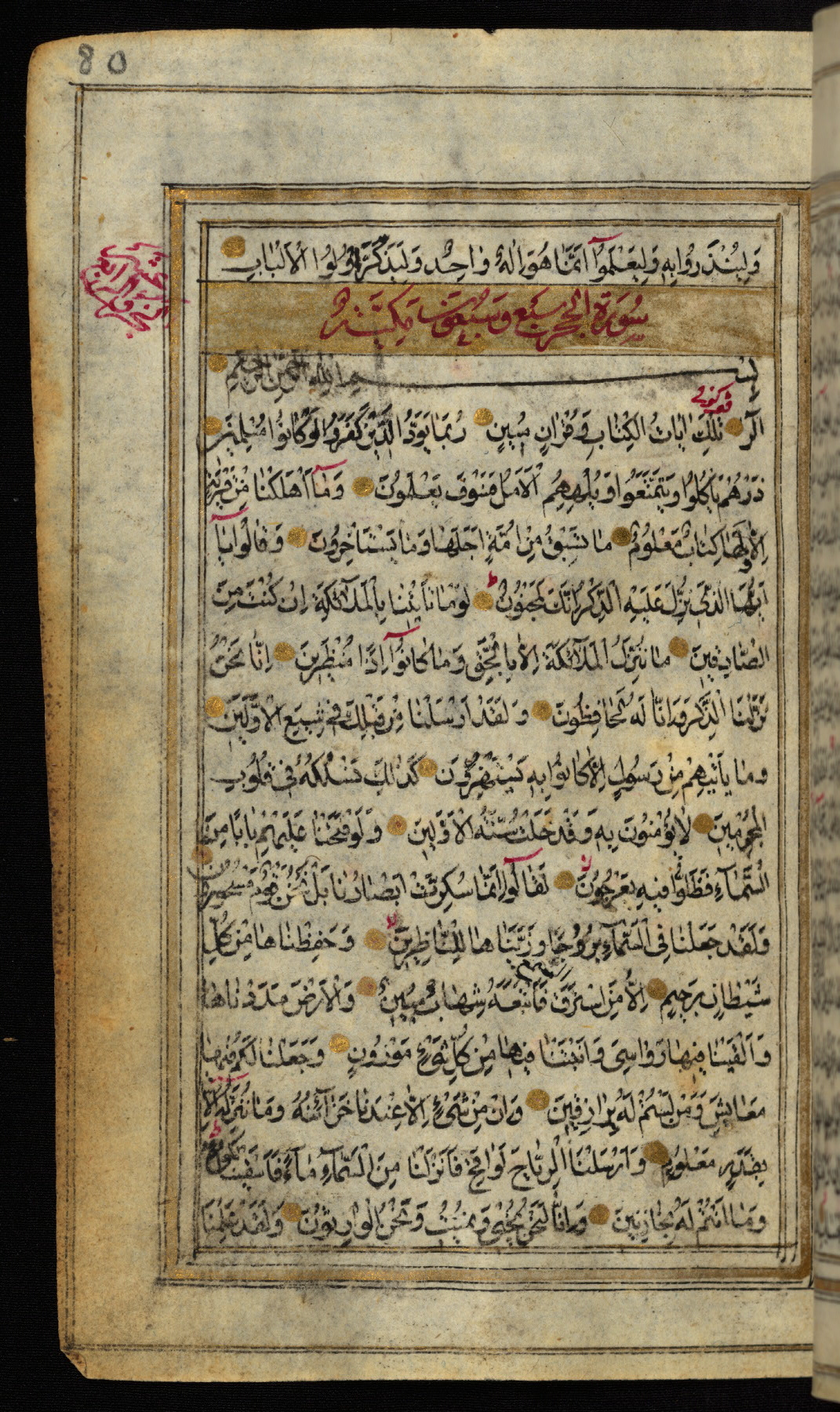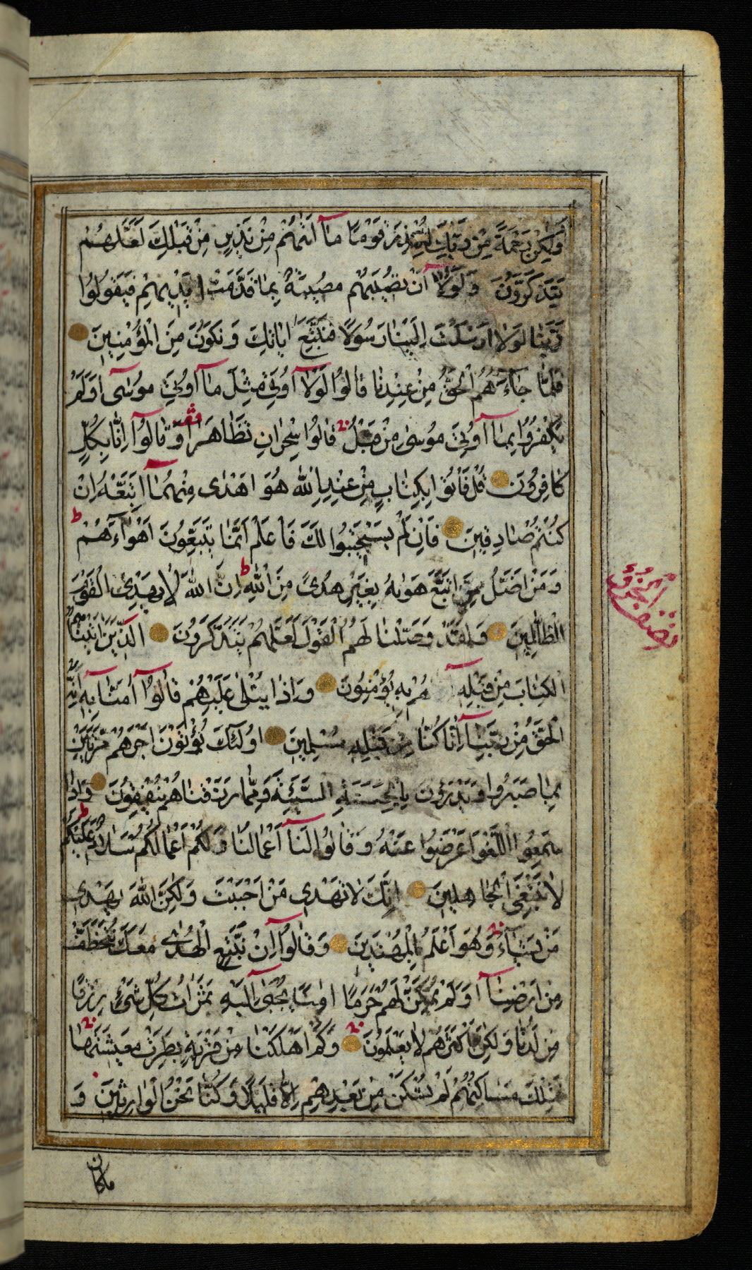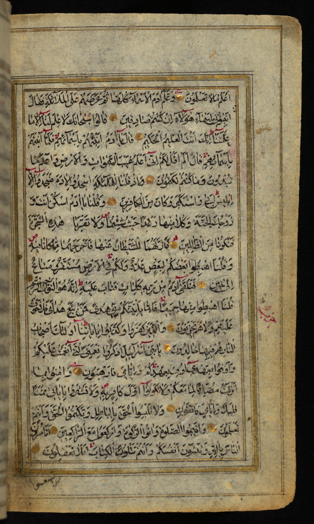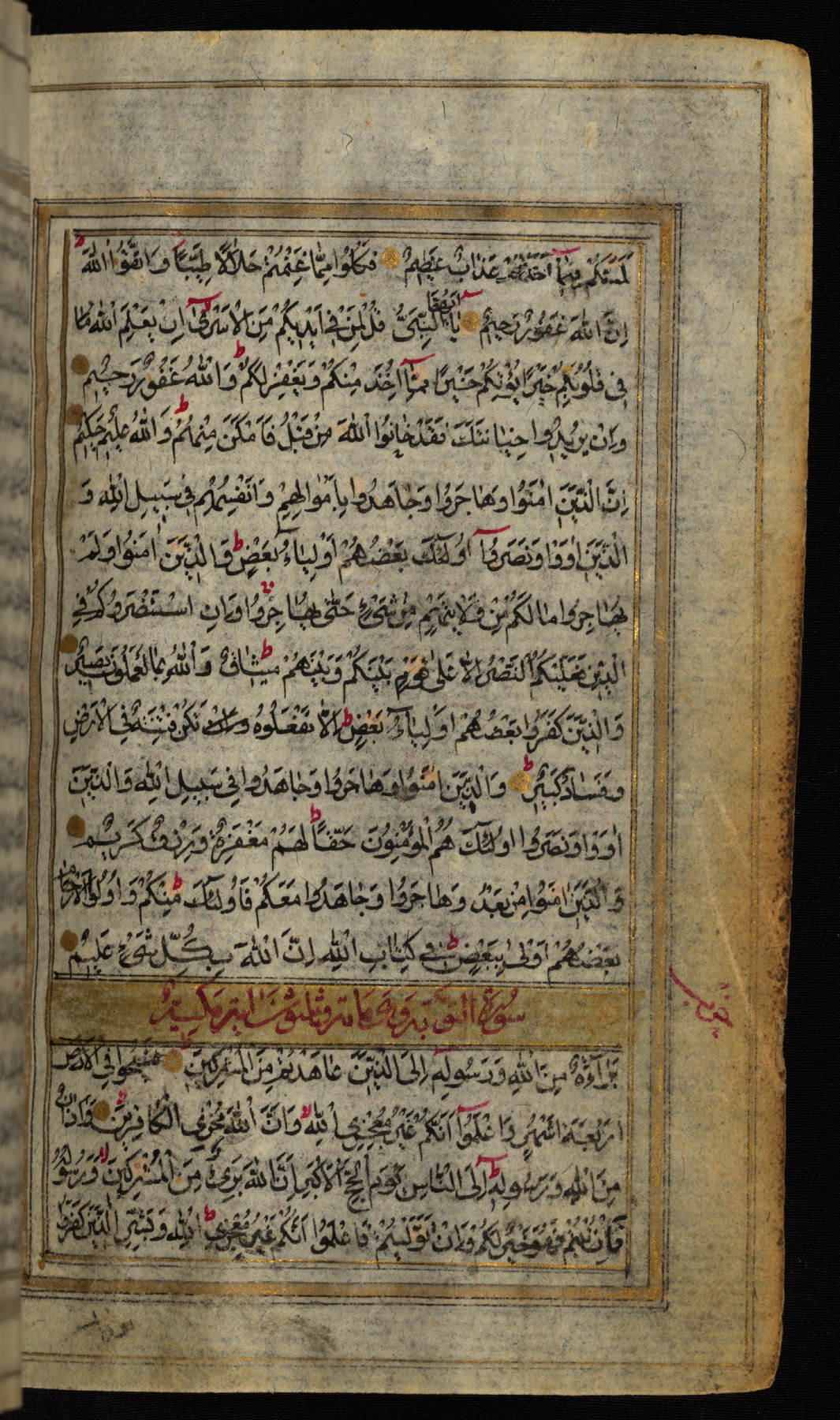 This small copy of the Qur'an was penned by an anonymous scribe in Iran in the thirteenth century AH / nineteenth century CE.