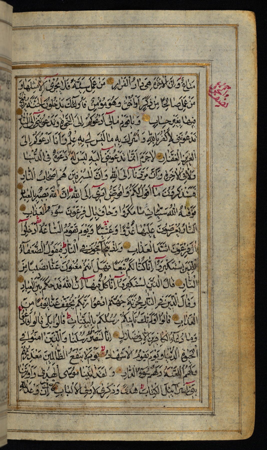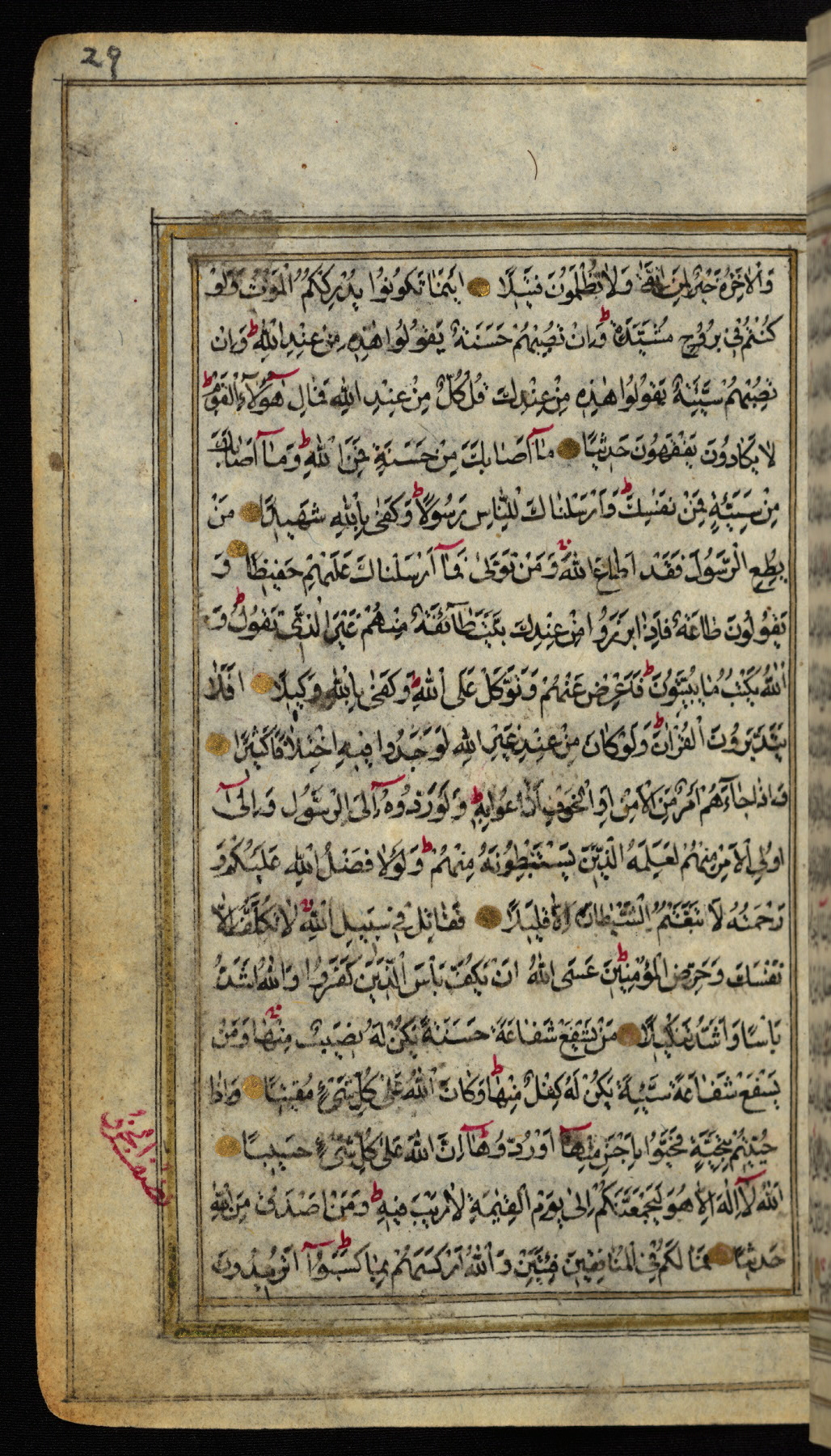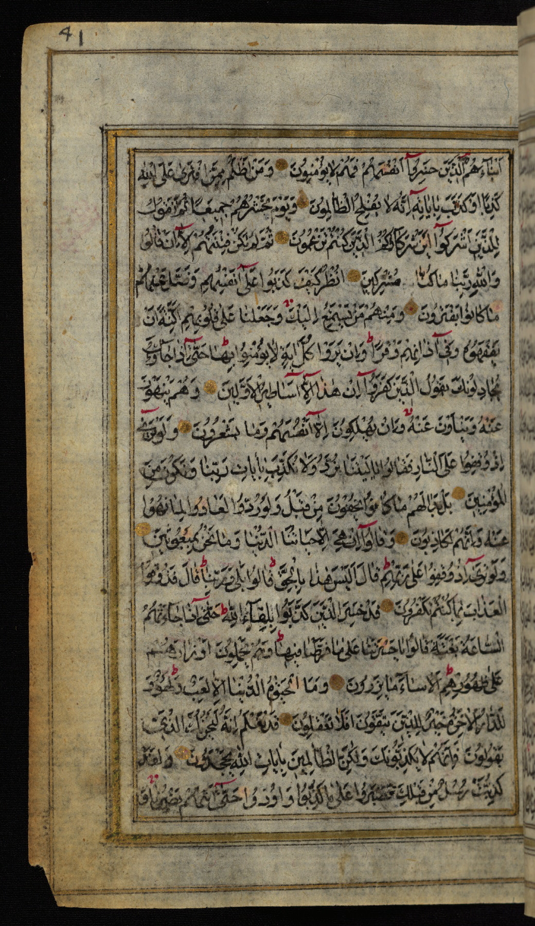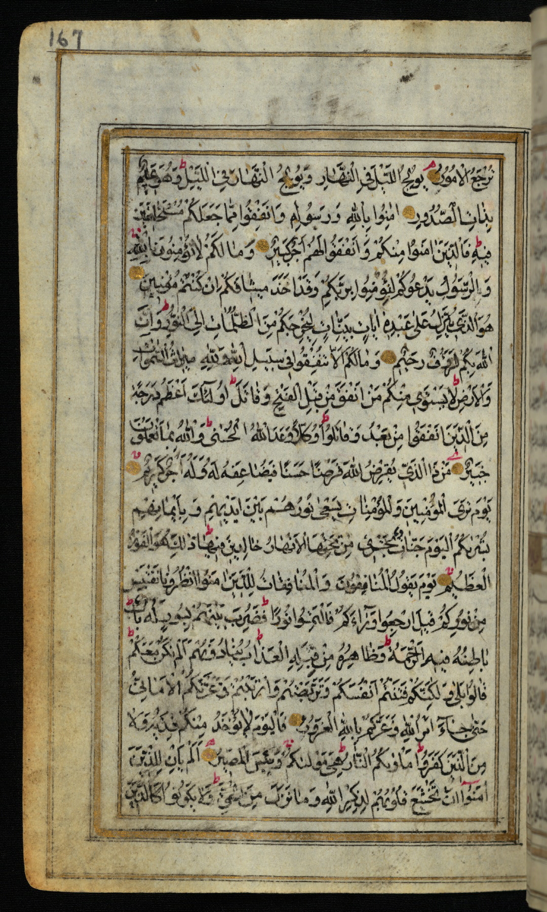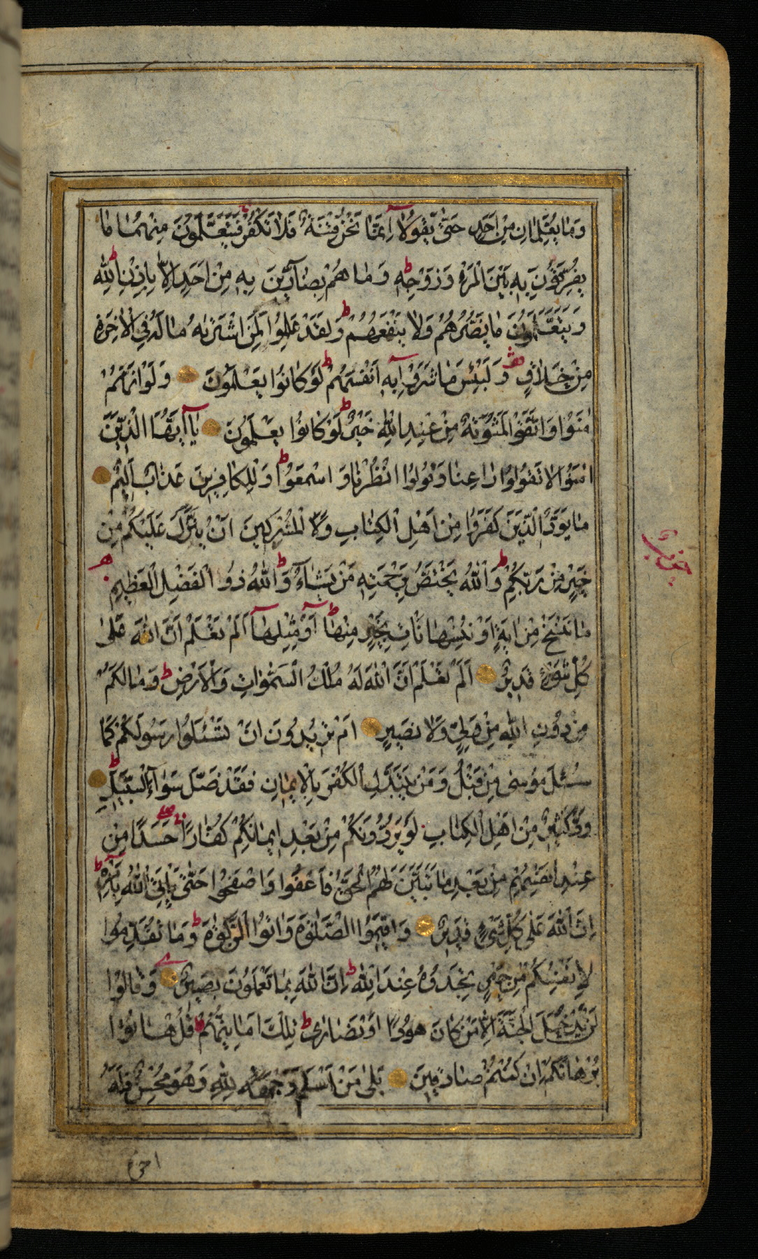 This small copy of the Qur'an was penned by an anonymous scribe in Iran in the thirteenth century AH / nineteenth century CE.
