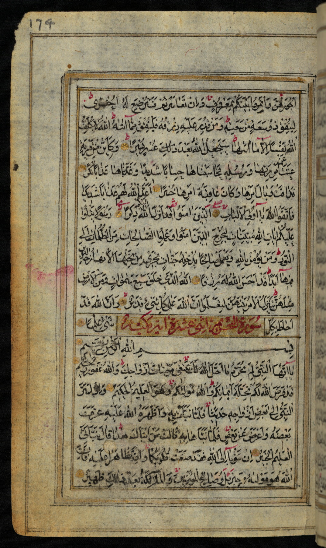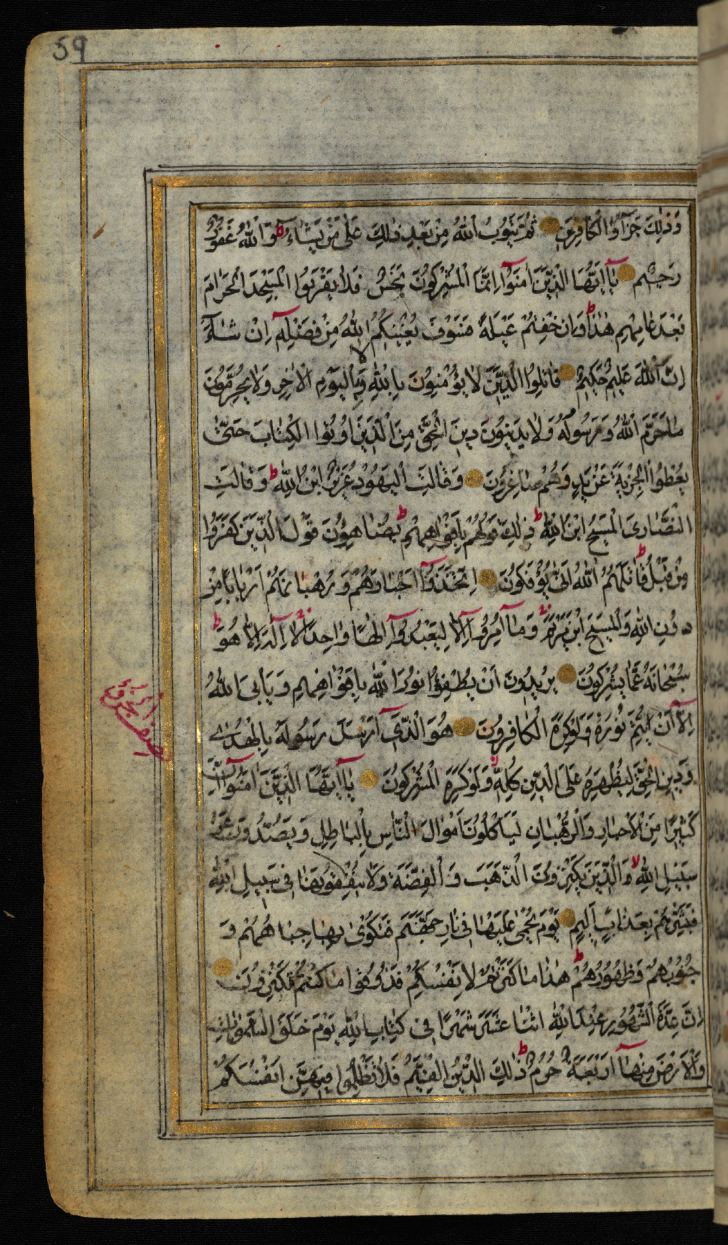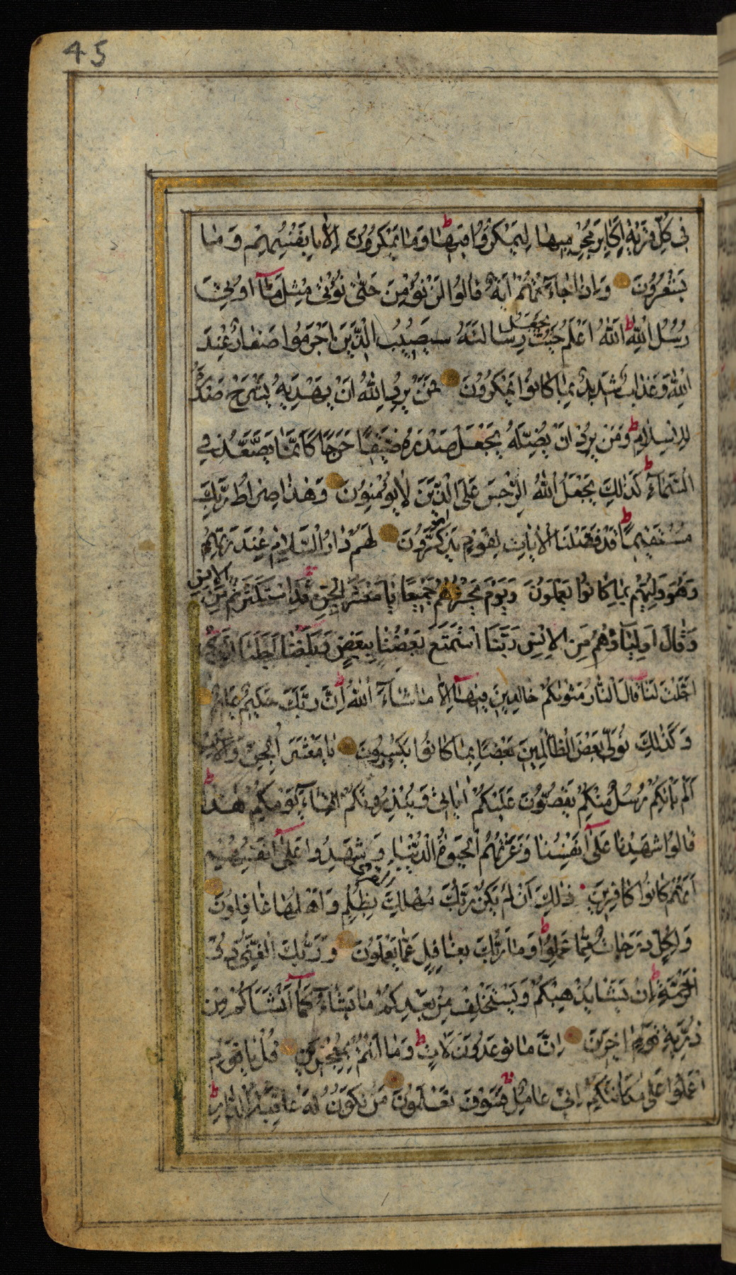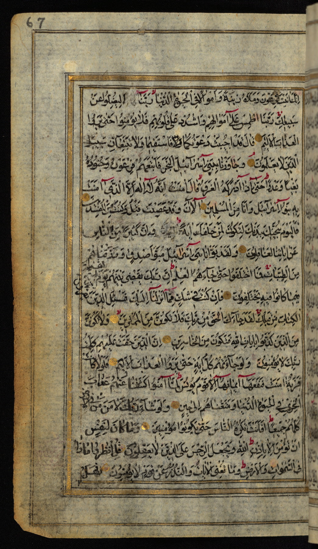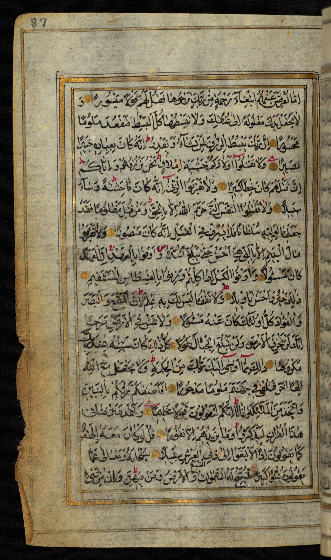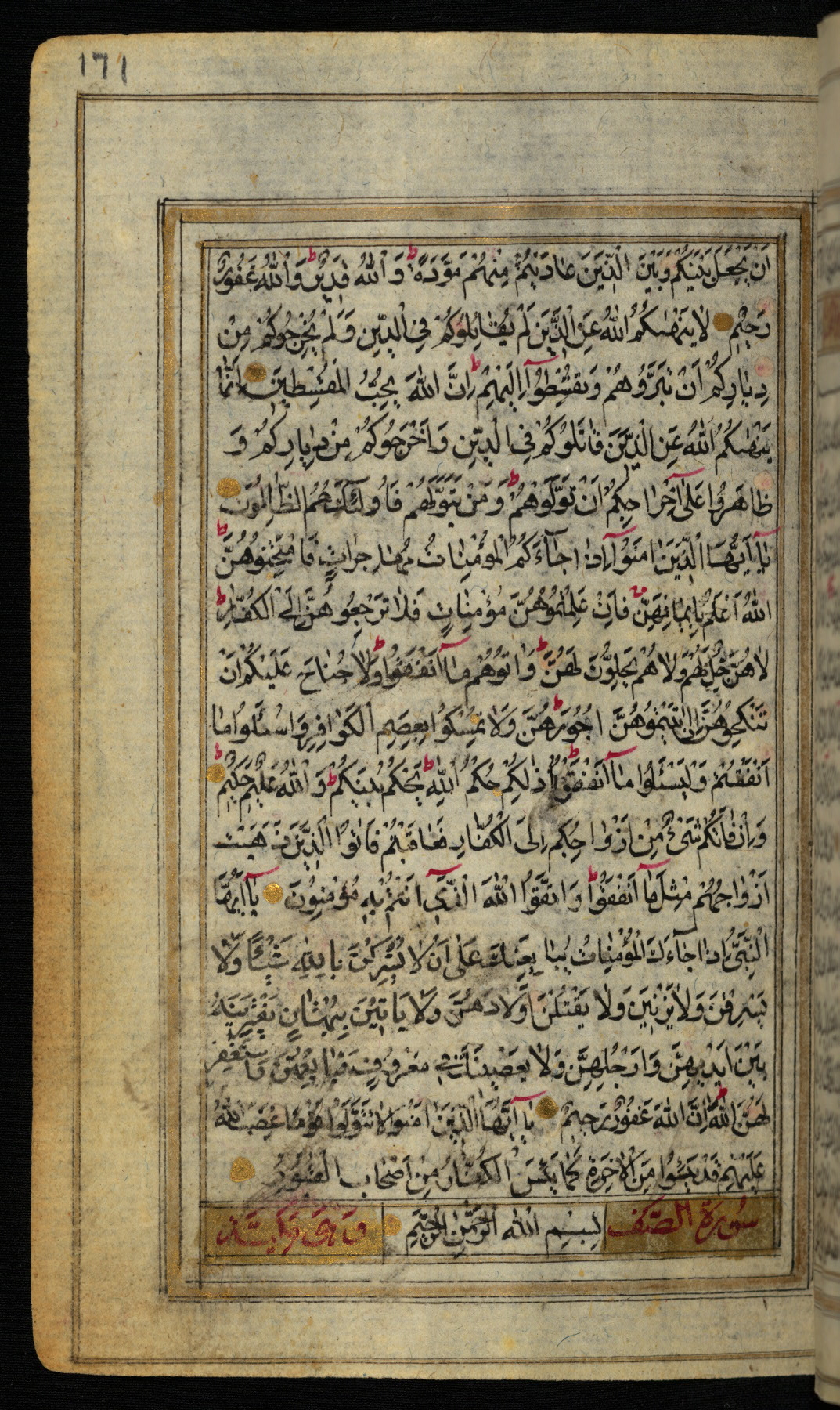 This small copy of the Qur'an was penned by an anonymous scribe in Iran in the thirteenth century AH / nineteenth century CE.
