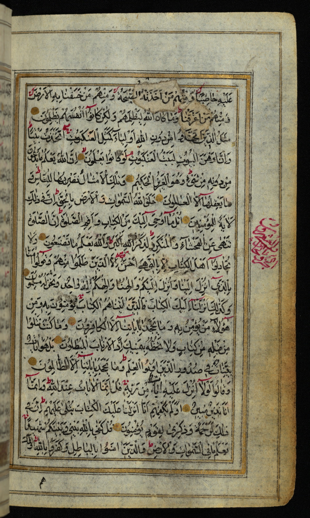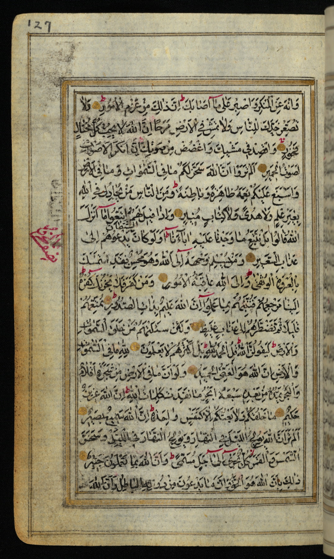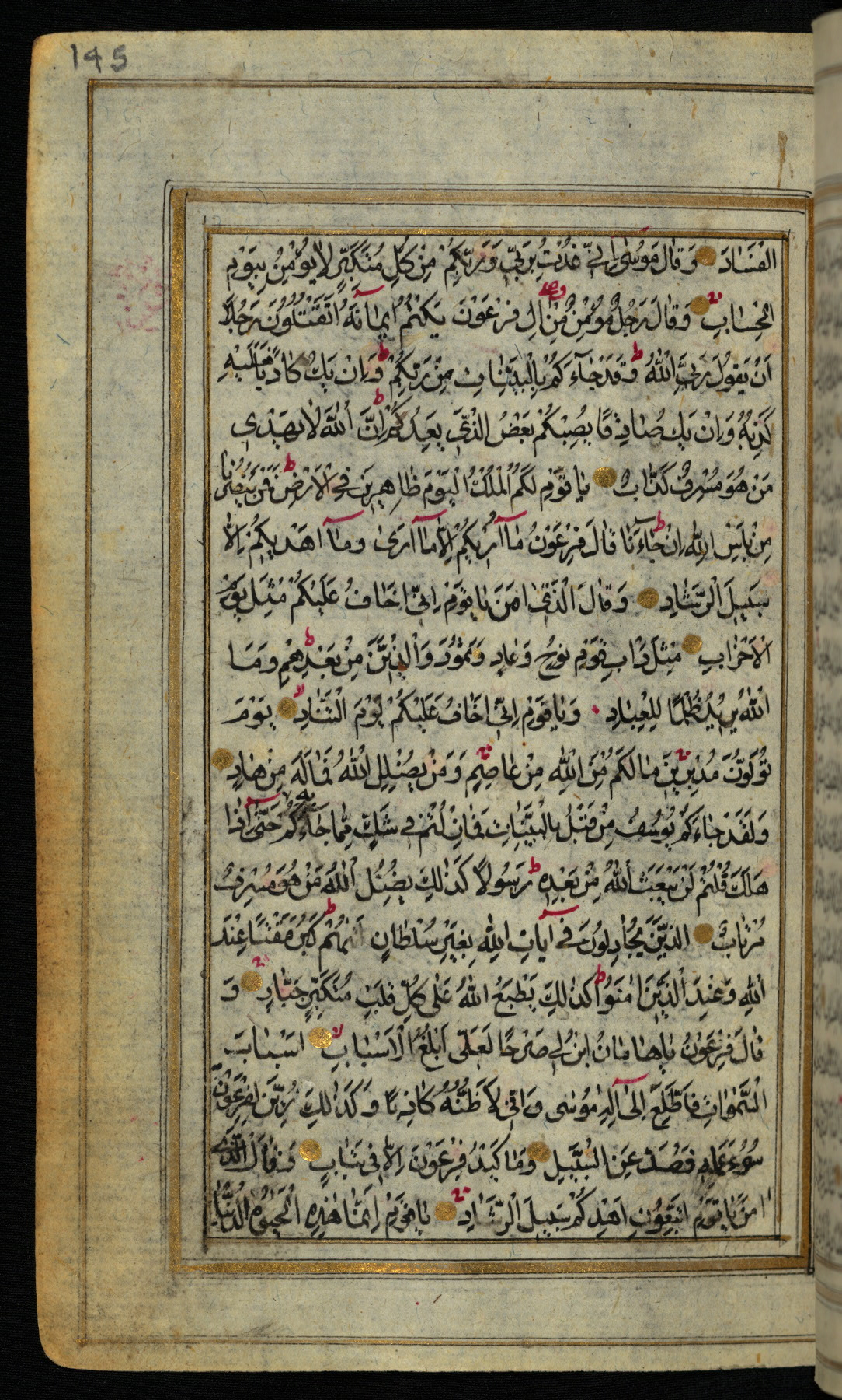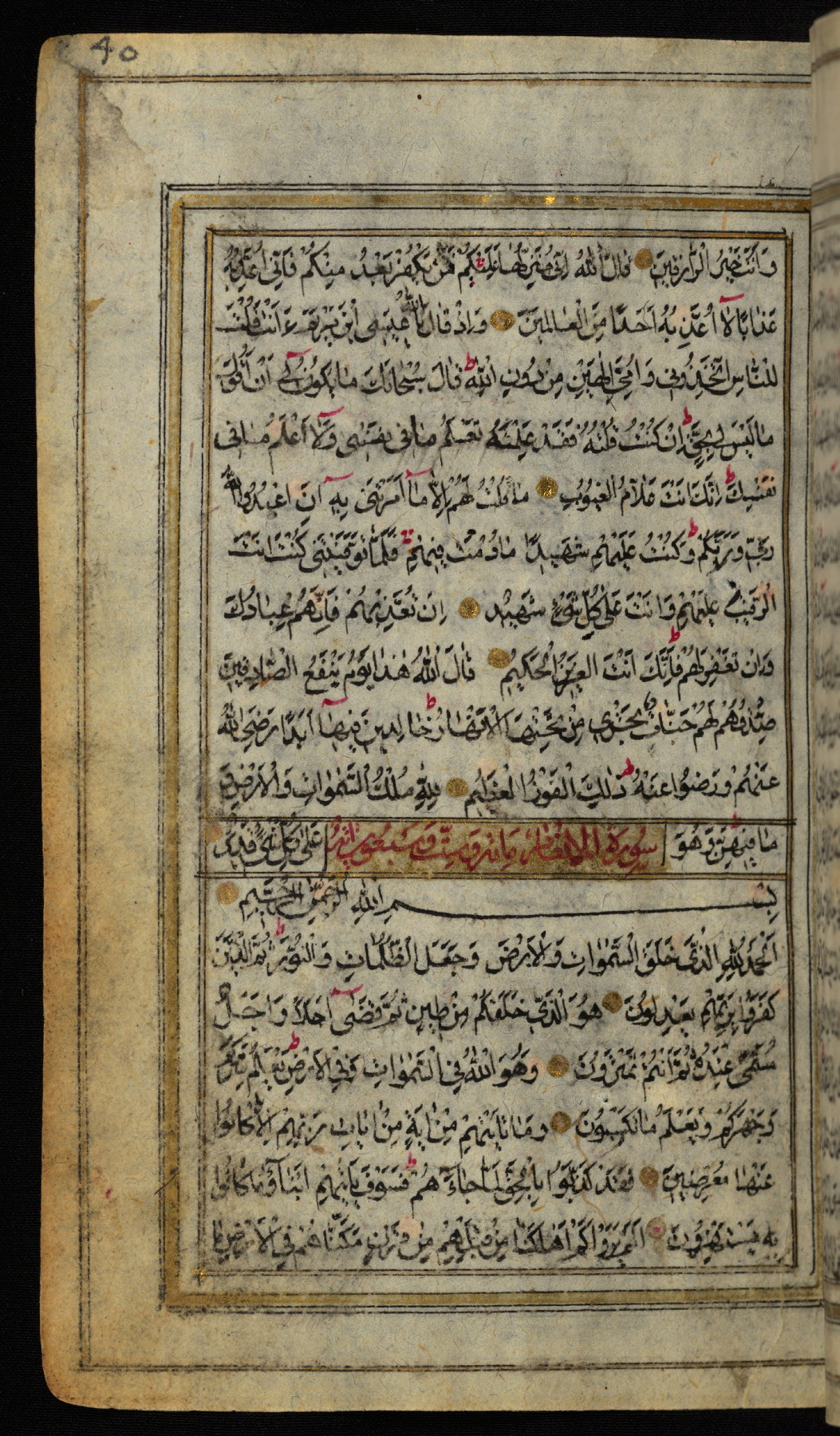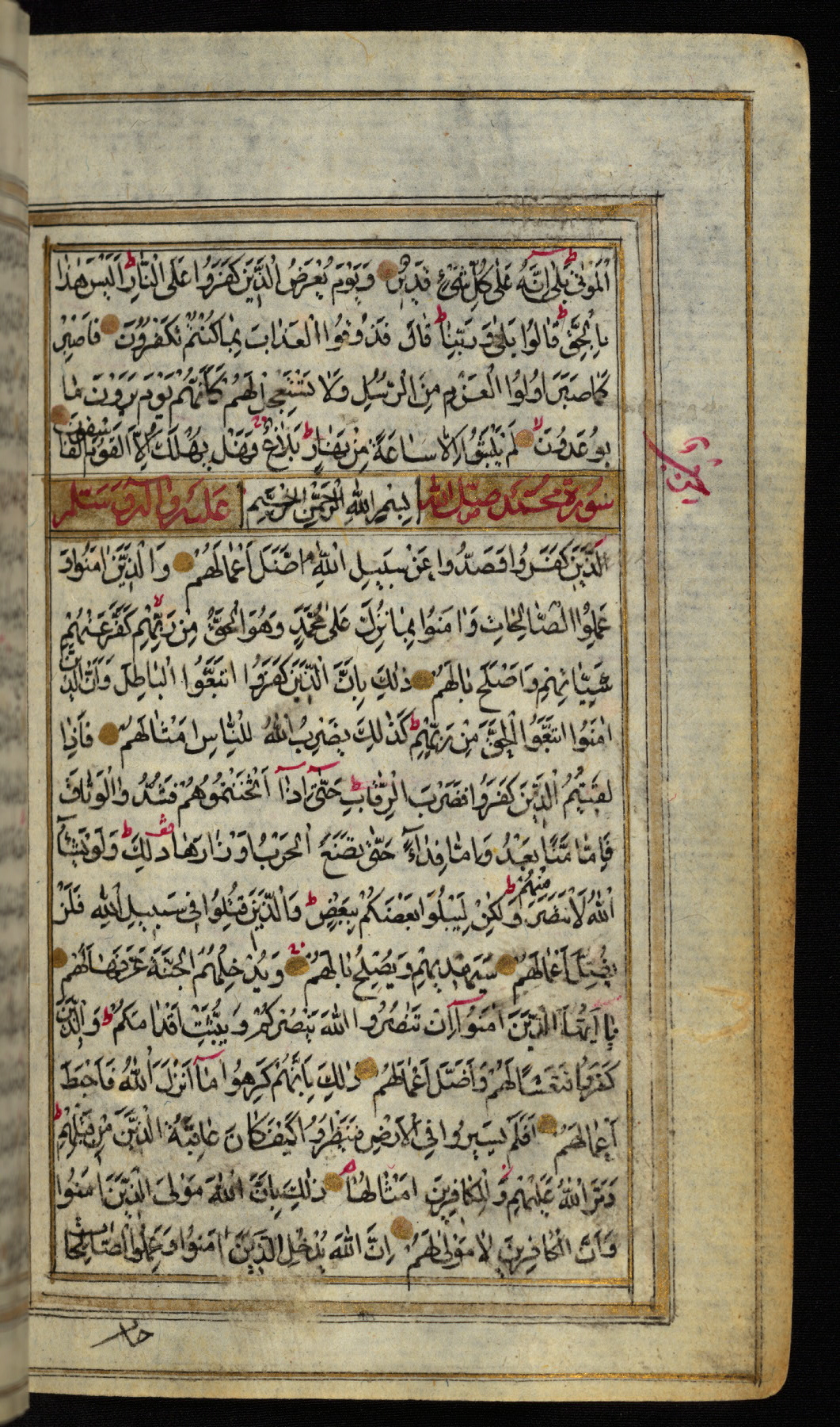 This small copy of the Qur'an was penned by an anonymous scribe in Iran in the thirteenth century AH / nineteenth century CE.