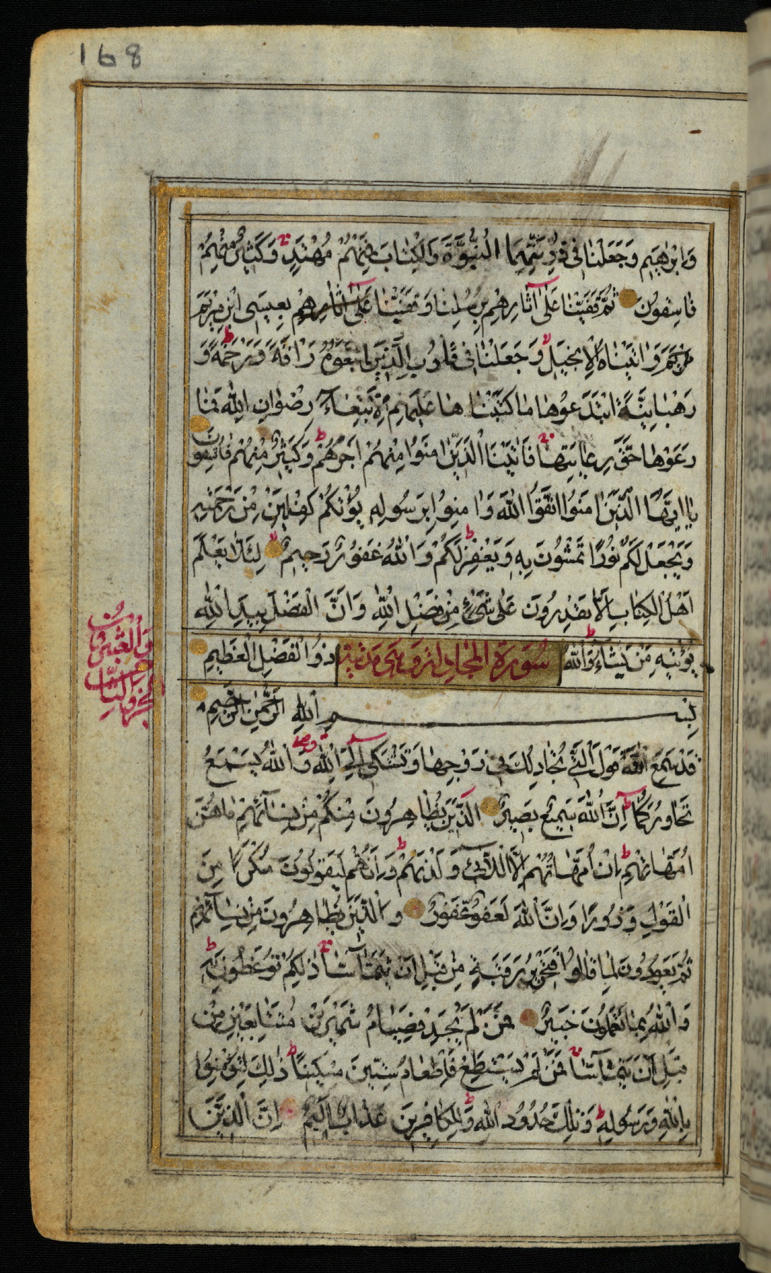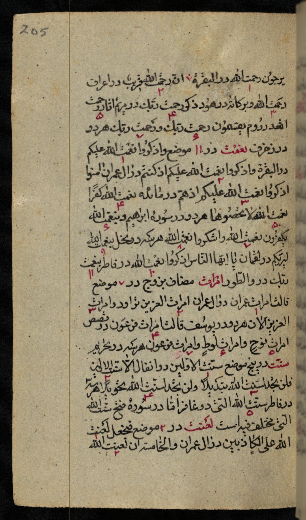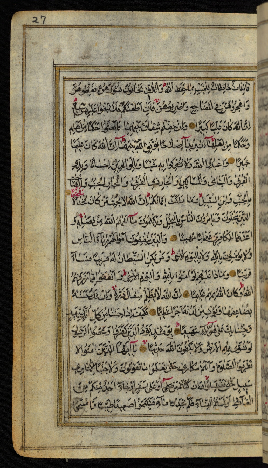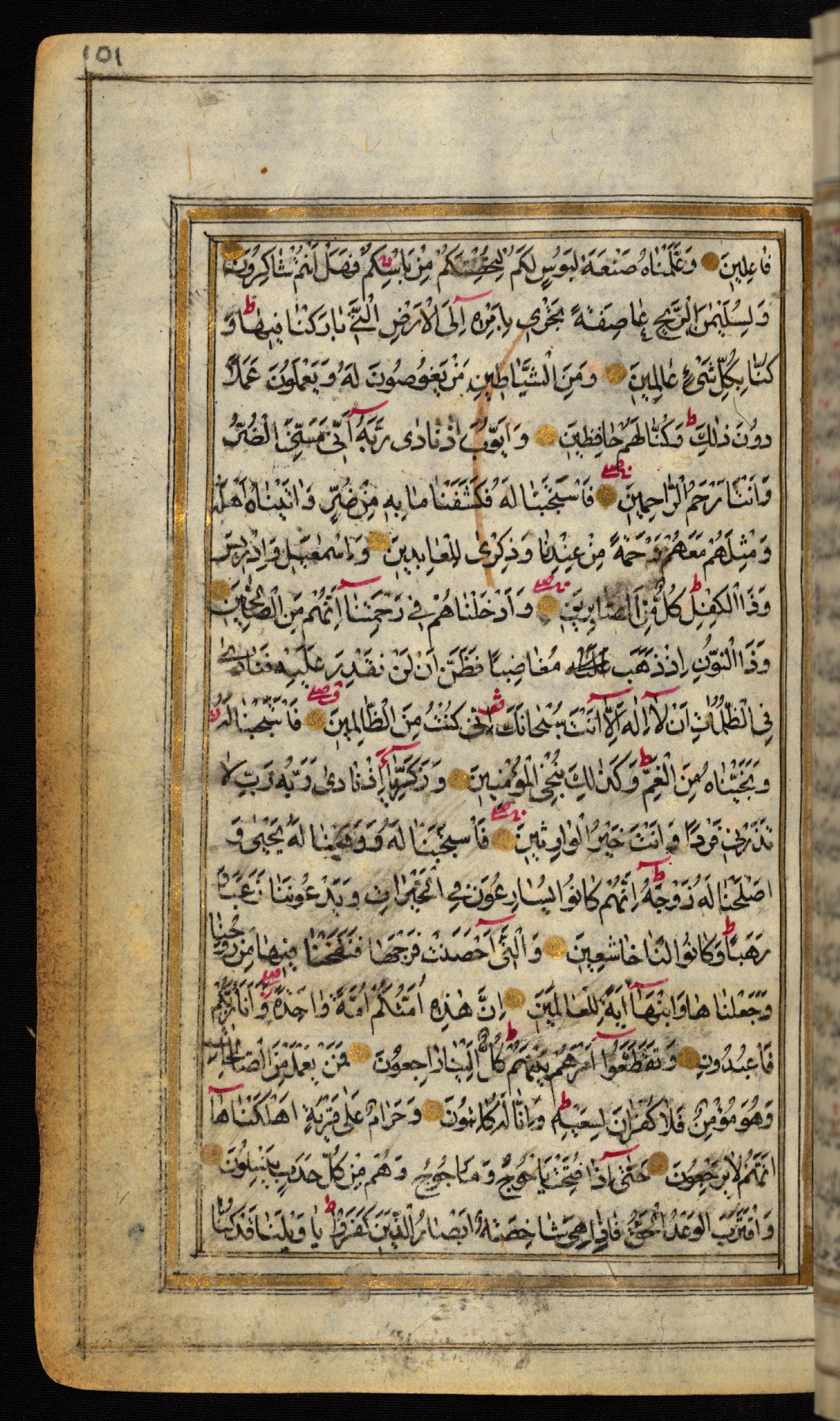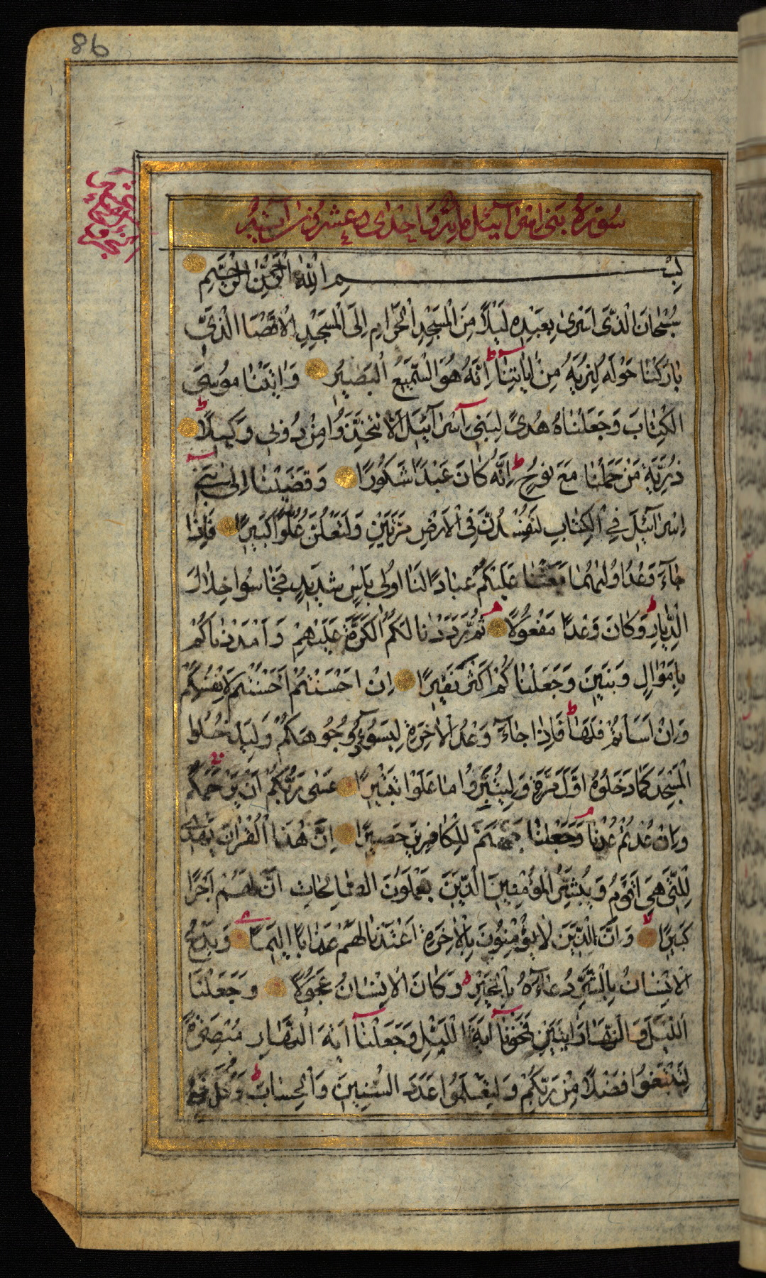This small copy of the Qur'an was penned by an anonymous scribe in Iran in the thirteenth century AH / nineteenth century CE.
