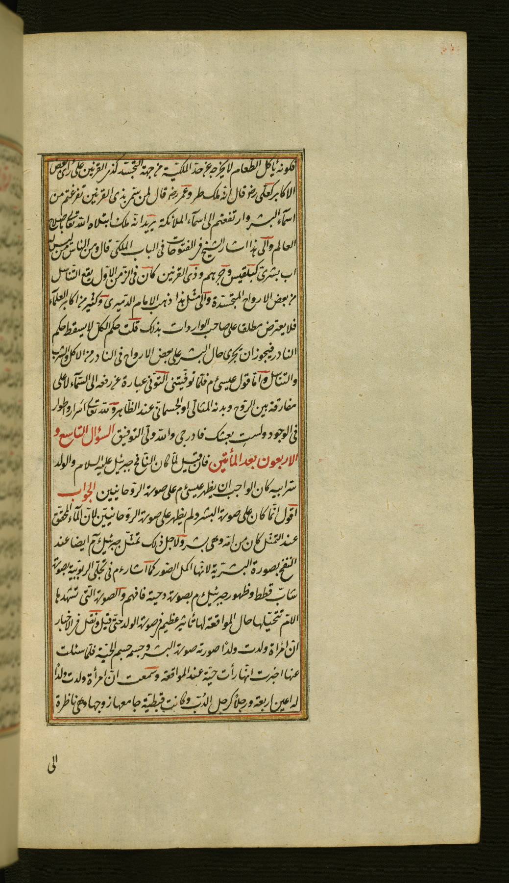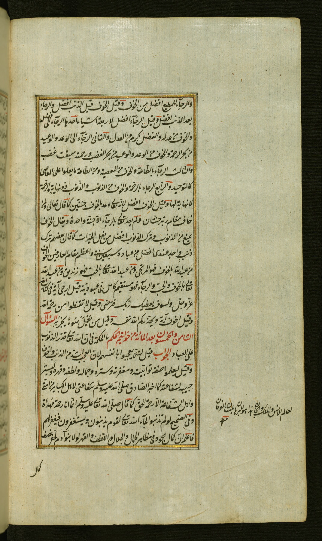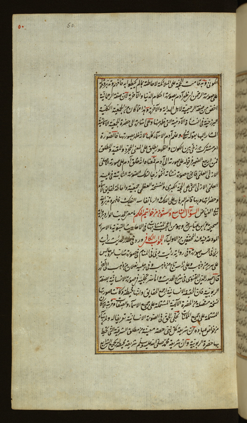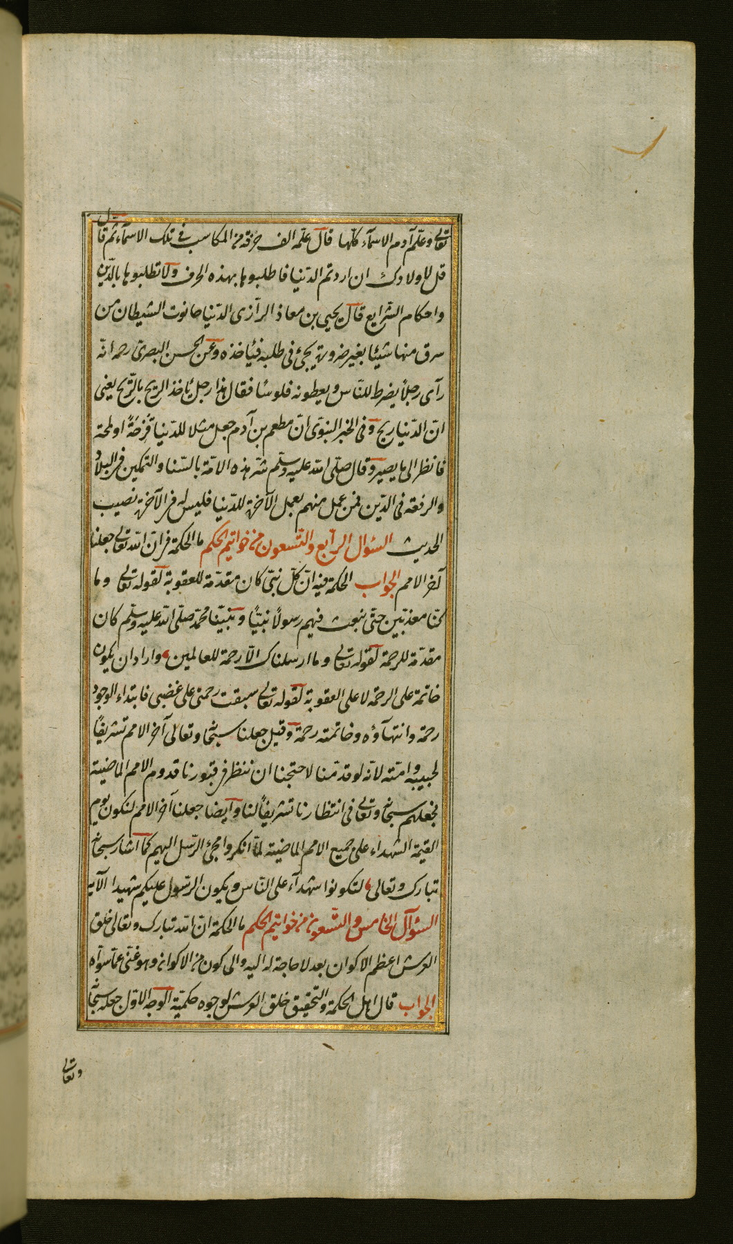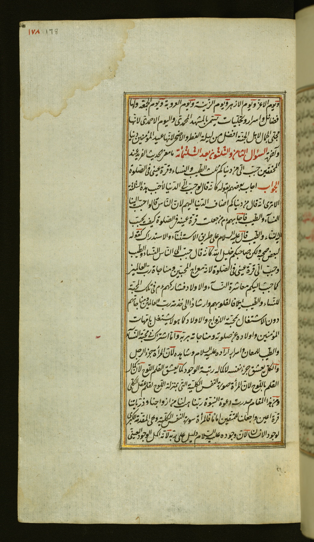 This work on Sufism in the form of questions entitled Khawātim al-ḥikam is by ʿAlī Dede al-Būsnawī (d. 1007 AH / 1598 CE). This particular Ottoman copy was written in nastaʿlīq script by Muṣṭafá ibn al-Ḥājj Muḥammad in 1081 AH / 1670 CE. The Arabic text begins with an illuminated headpiece (fol. 1b). The red leather binding with central lobed oval with arabesques on a gold ground is contemporary with the manuscript.