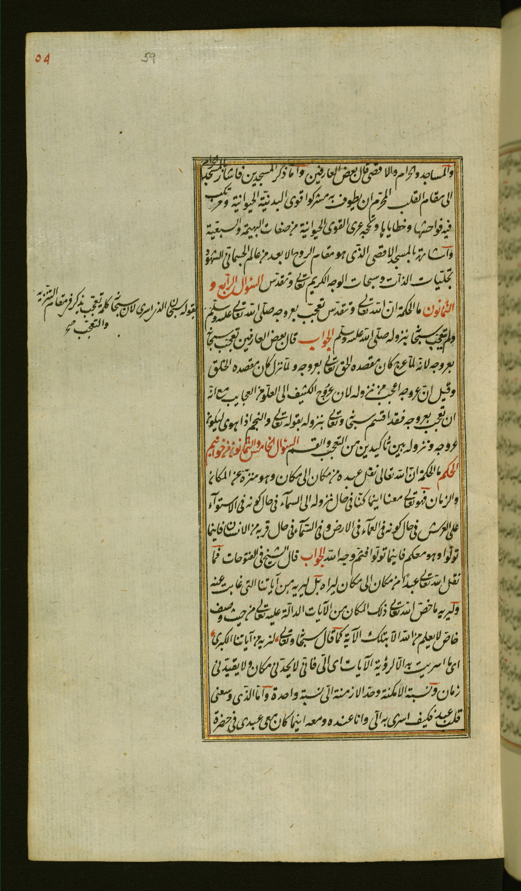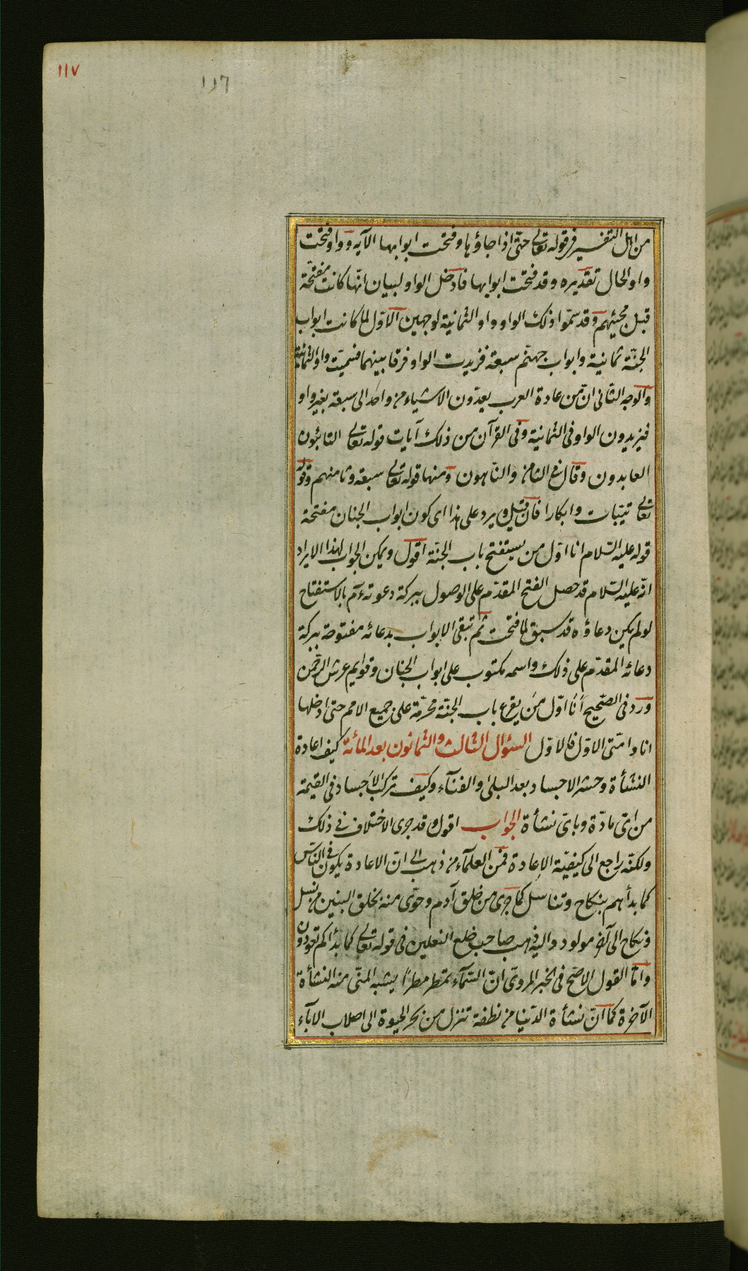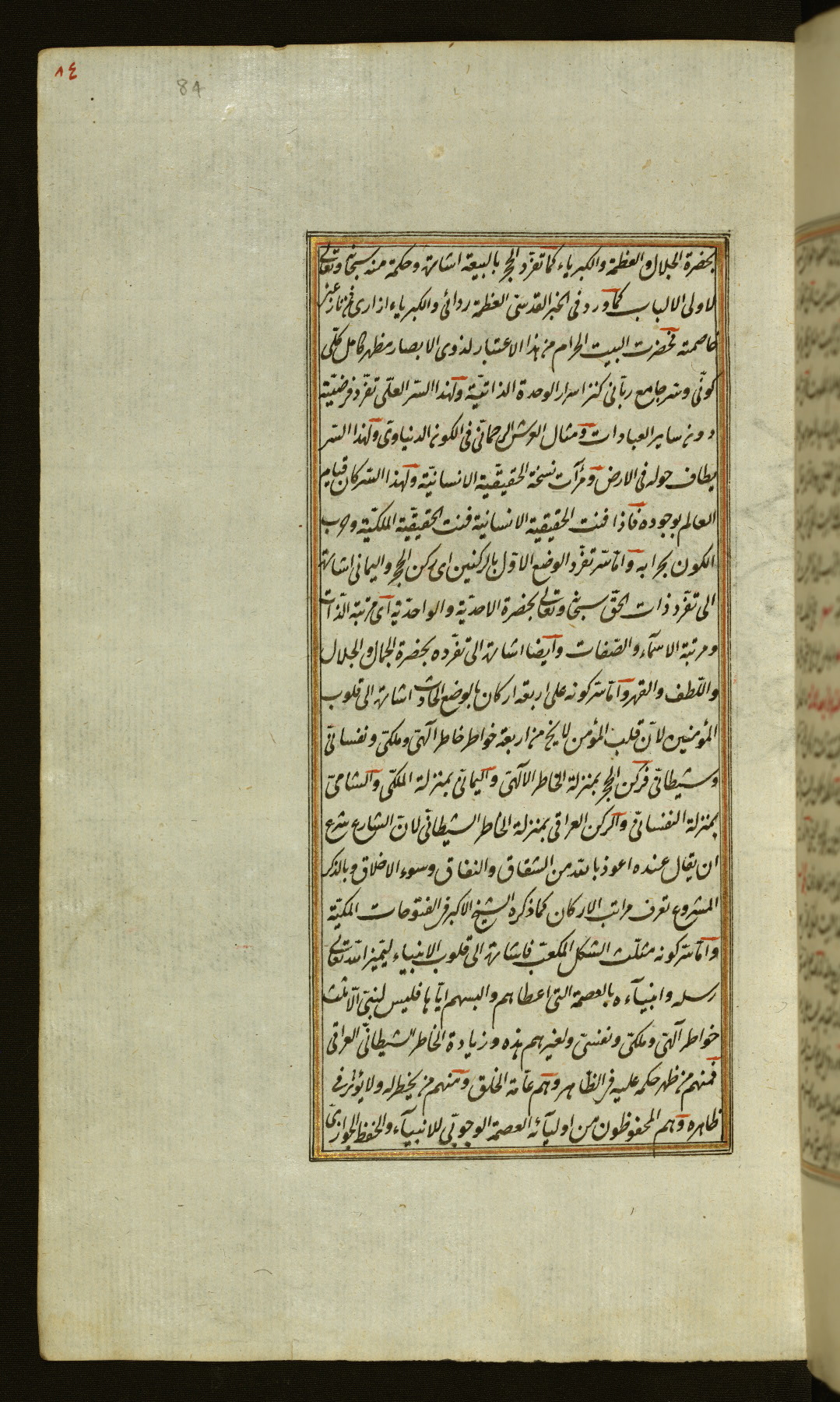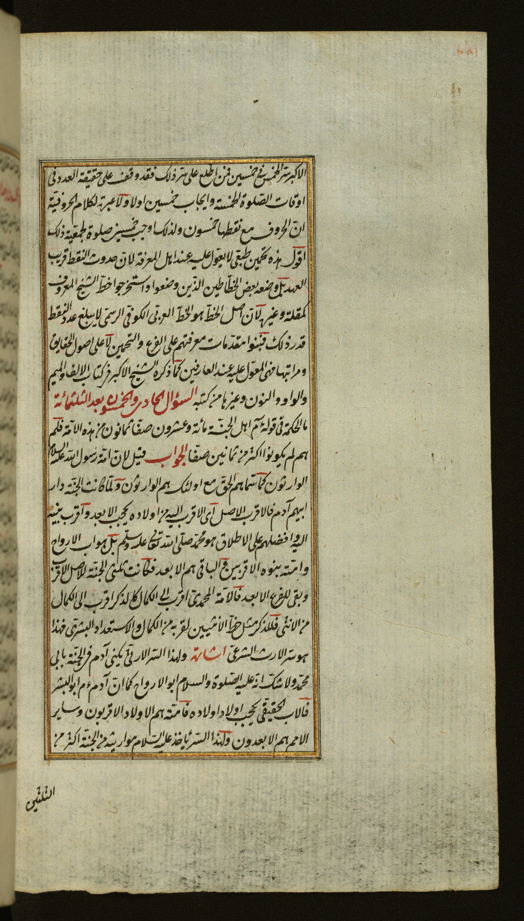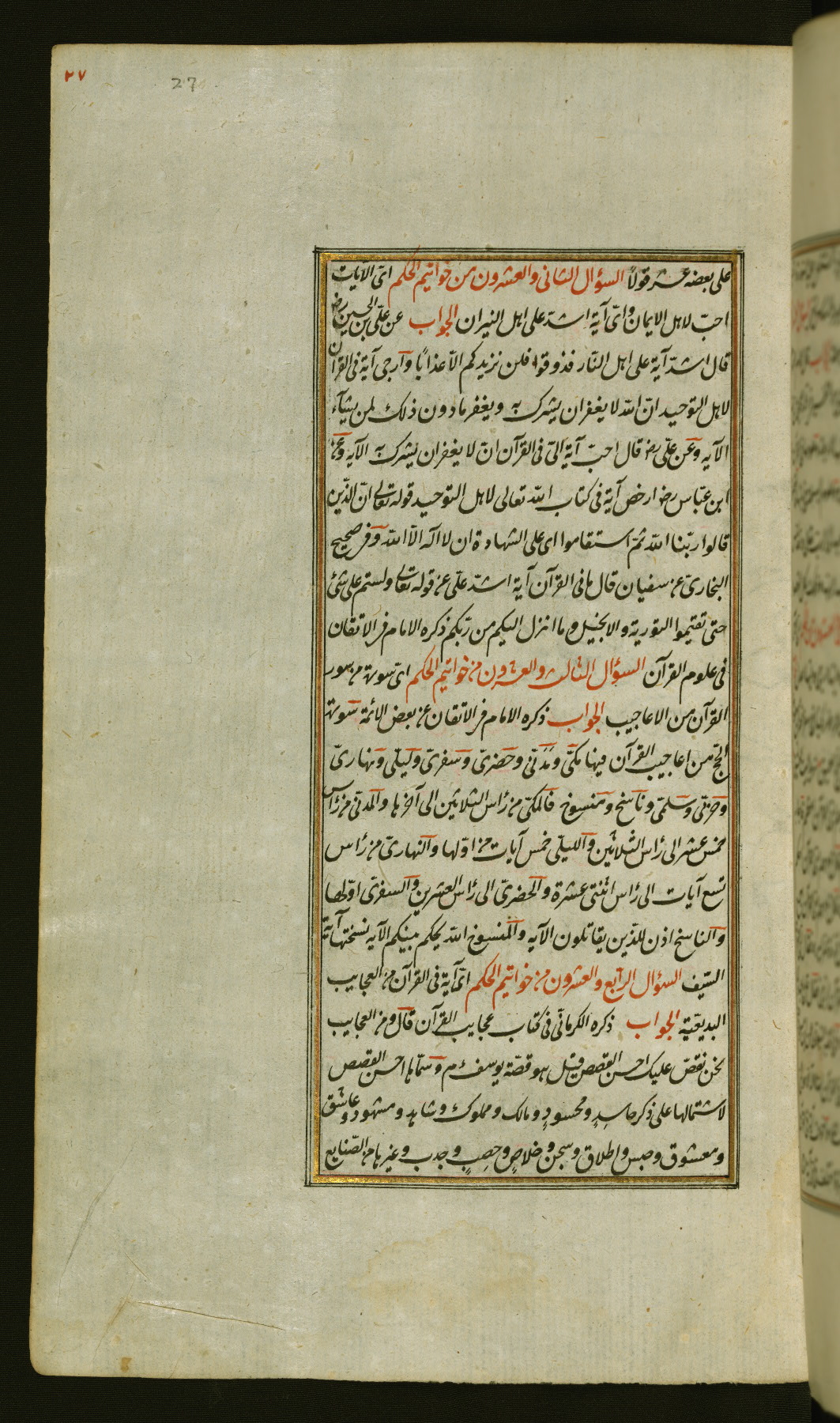 This work on Sufism in the form of questions entitled Khawātim al-ḥikam is by ʿAlī Dede al-Būsnawī (d. 1007 AH / 1598 CE). This particular Ottoman copy was written in nastaʿlīq script by Muṣṭafá ibn al-Ḥājj Muḥammad in 1081 AH / 1670 CE. The Arabic text begins with an illuminated headpiece (fol. 1b). The red leather binding with central lobed oval with arabesques on a gold ground is contemporary with the manuscript.