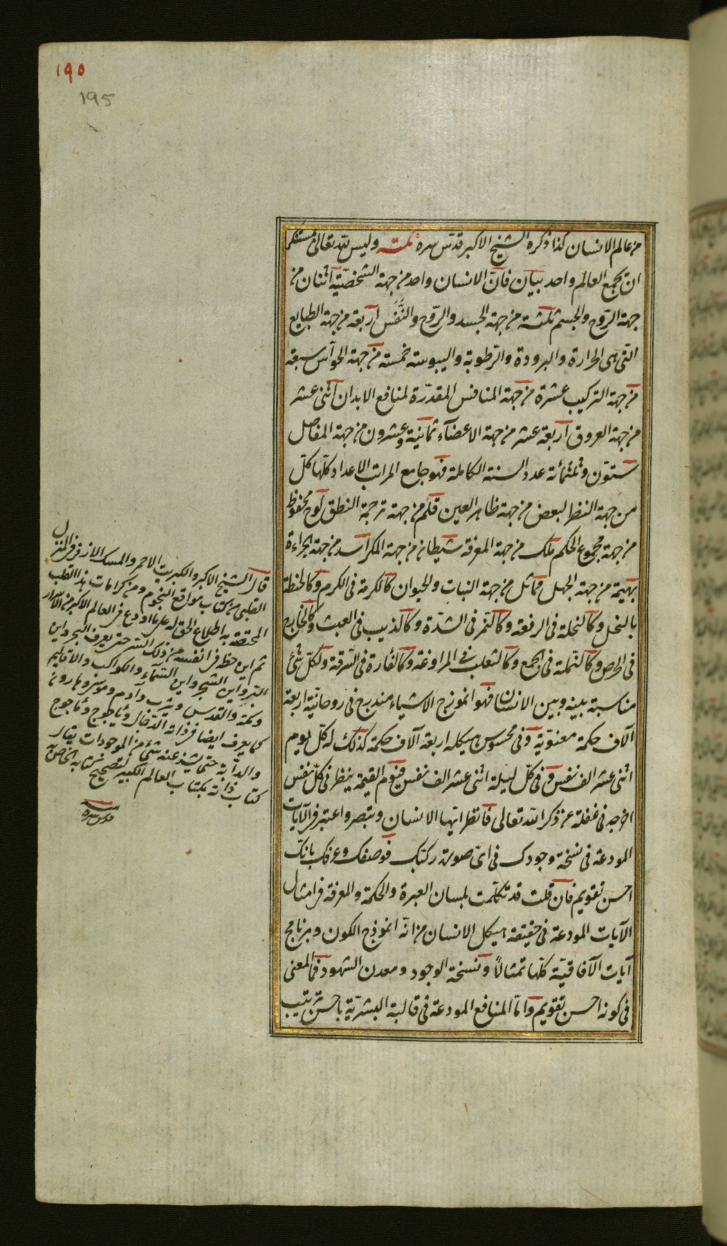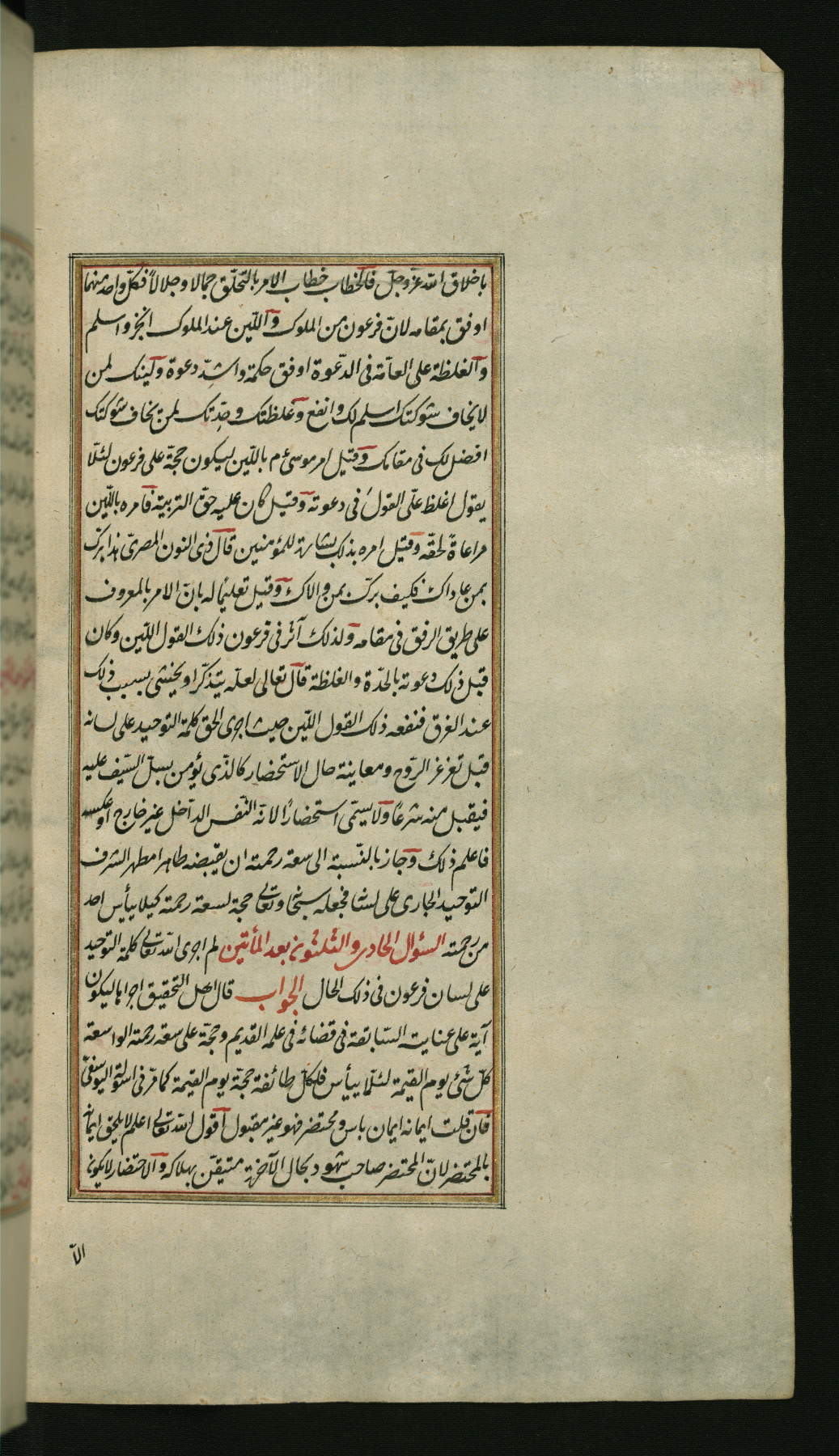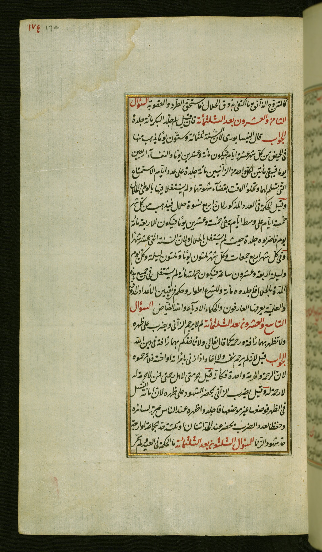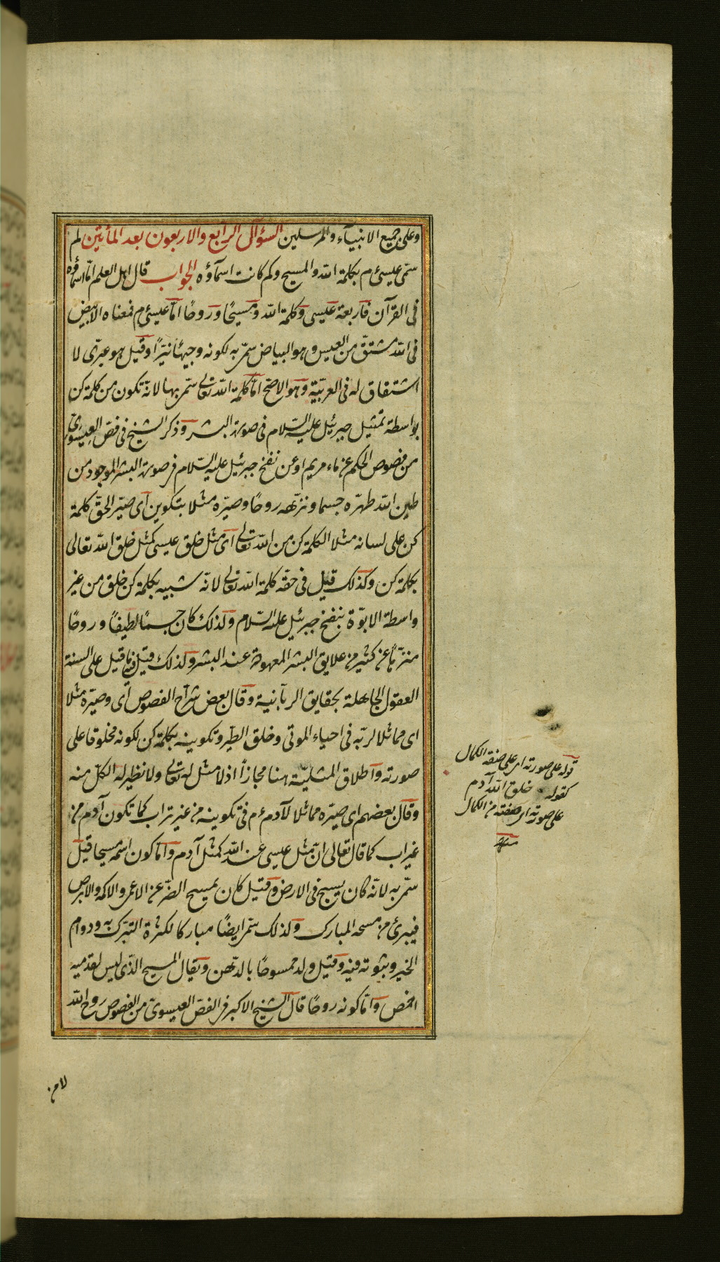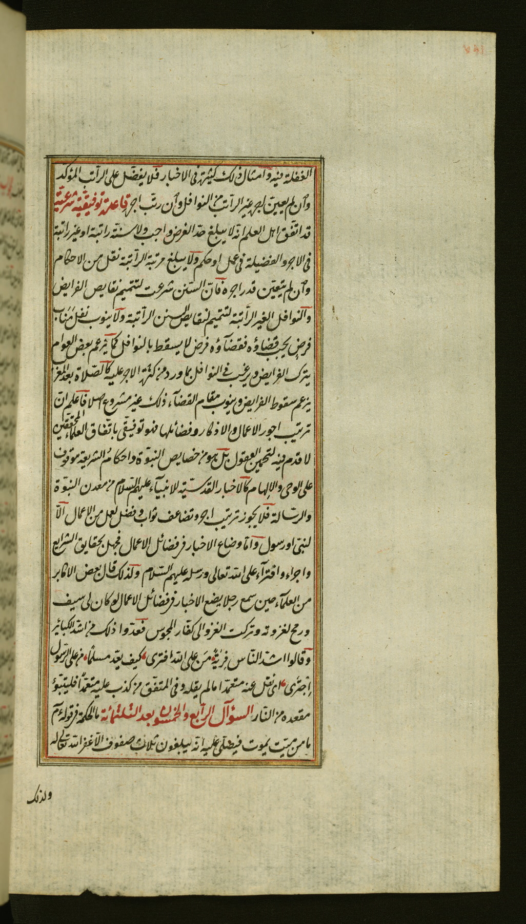 This work on Sufism in the form of questions entitled Khawātim al-ḥikam is by ʿAlī Dede al-Būsnawī (d. 1007 AH / 1598 CE). This particular Ottoman copy was written in nastaʿlīq script by Muṣṭafá ibn al-Ḥājj Muḥammad in 1081 AH / 1670 CE. The Arabic text begins with an illuminated headpiece (fol. 1b). The red leather binding with central lobed oval with arabesques on a gold ground is contemporary with the manuscript.