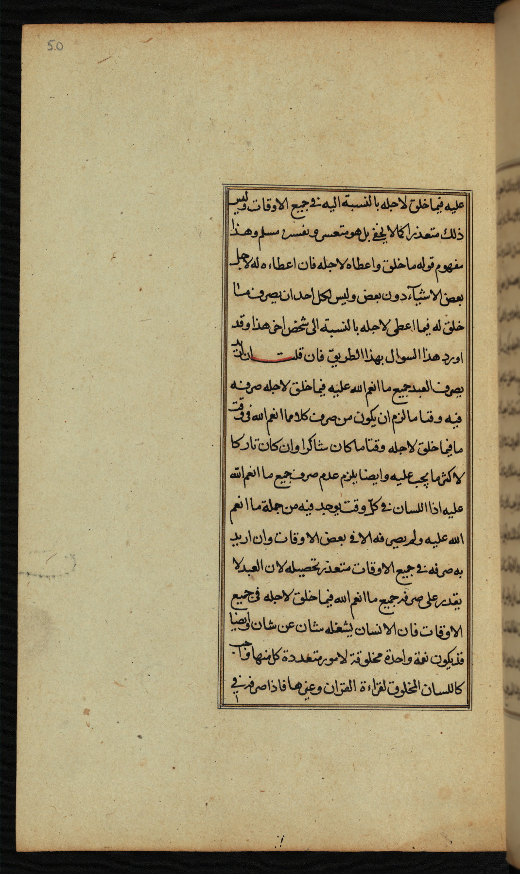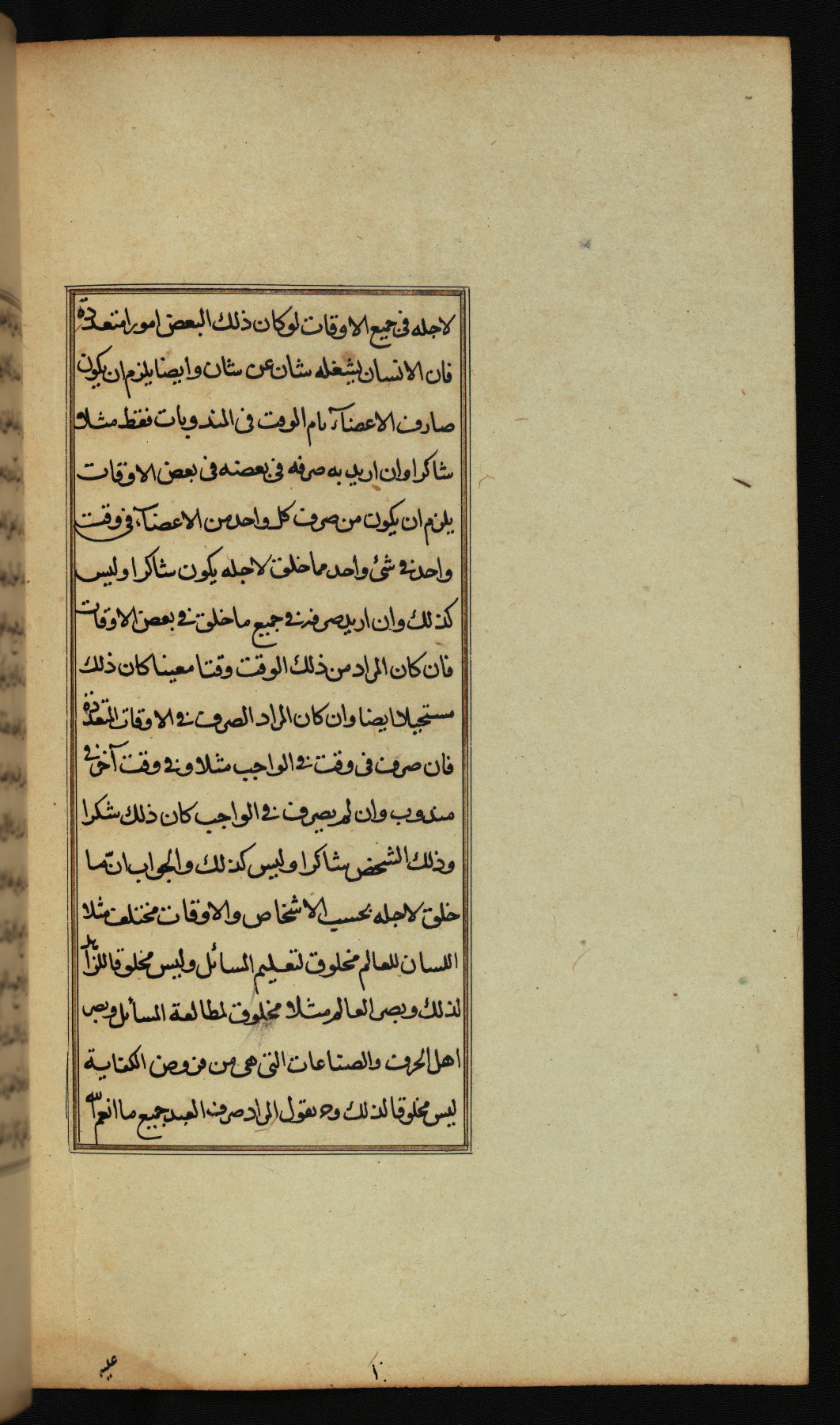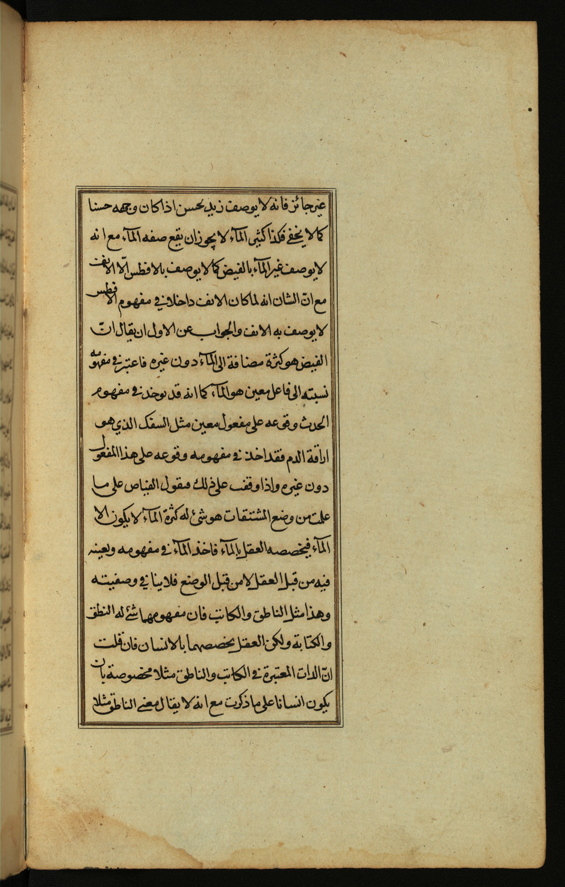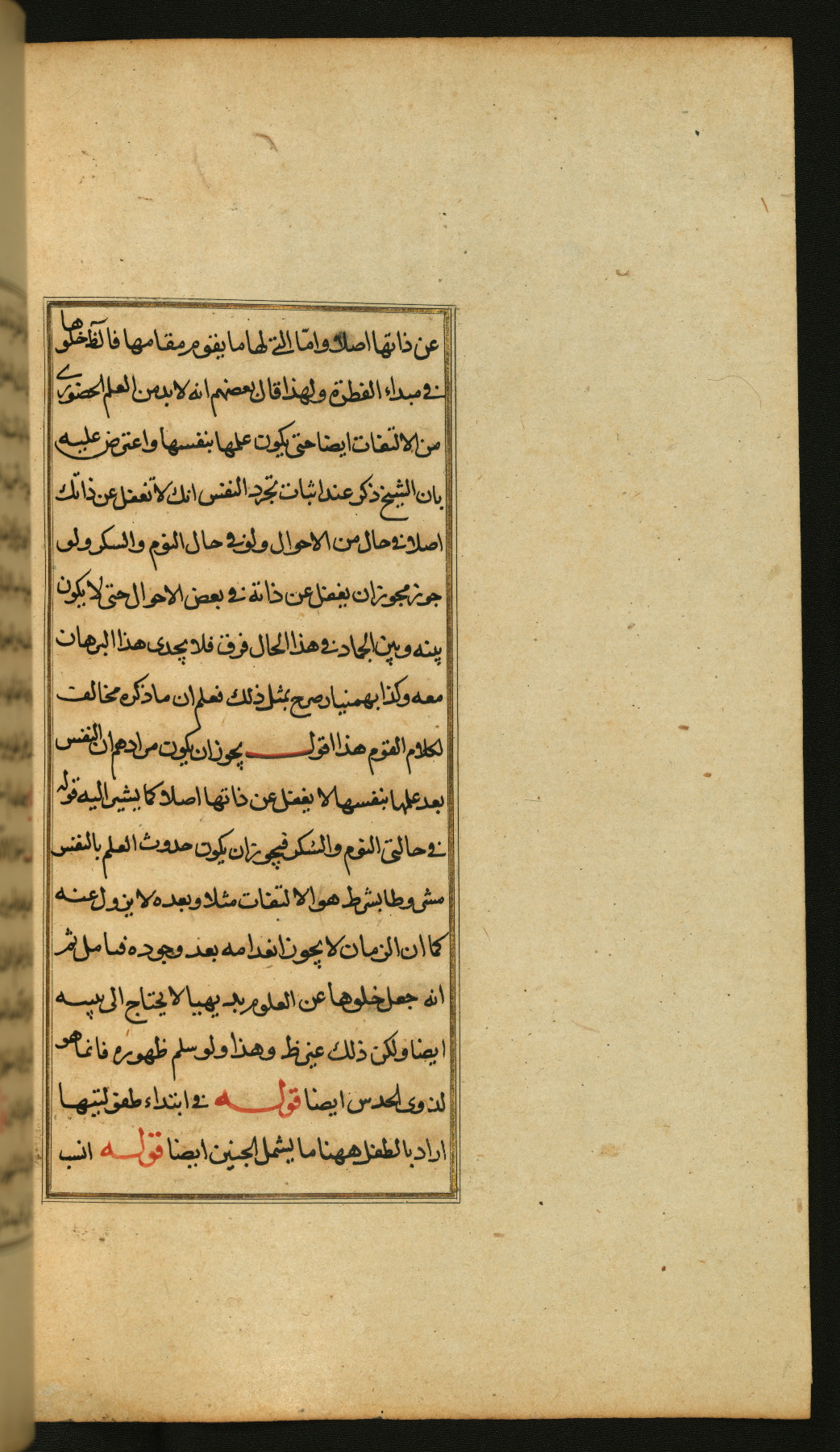 The present work is a supergloss on the gloss (ḥāshiyah) by al-Sayyid al-Sharīf al-Jurjānī (d. 816 AH / 1413 CE) on the Lawāmiʿ al-asrār by Qutb al-Dīn al-Taḥtānī al-Rāzī (d. 766 AH / 1364 CE), being in turn a commentary on a book of logic entitled Maṭāliʿ al-anwār by Sirāj al-Dīn Maḥmūd al-Urmawī (d. 682 AH / 1283 CE). Written for the library of the Ottoman Sultan Selim I, it was completed in Bursa in 918 AH / 1512 CE, the year of that ruler's accession to the throne. The text, which opens with an illuminated headpiece (fol. 1b), is written in naskh script mostly in black ink with certain words, such as qawluhu and aqūlu, in red. It is possible that the scribe is also the author of this work. The brown goatskin binding with central lobed oval and pendants with arabesque designs is contemporary with the manuscript.