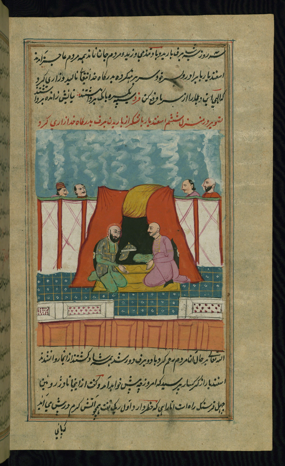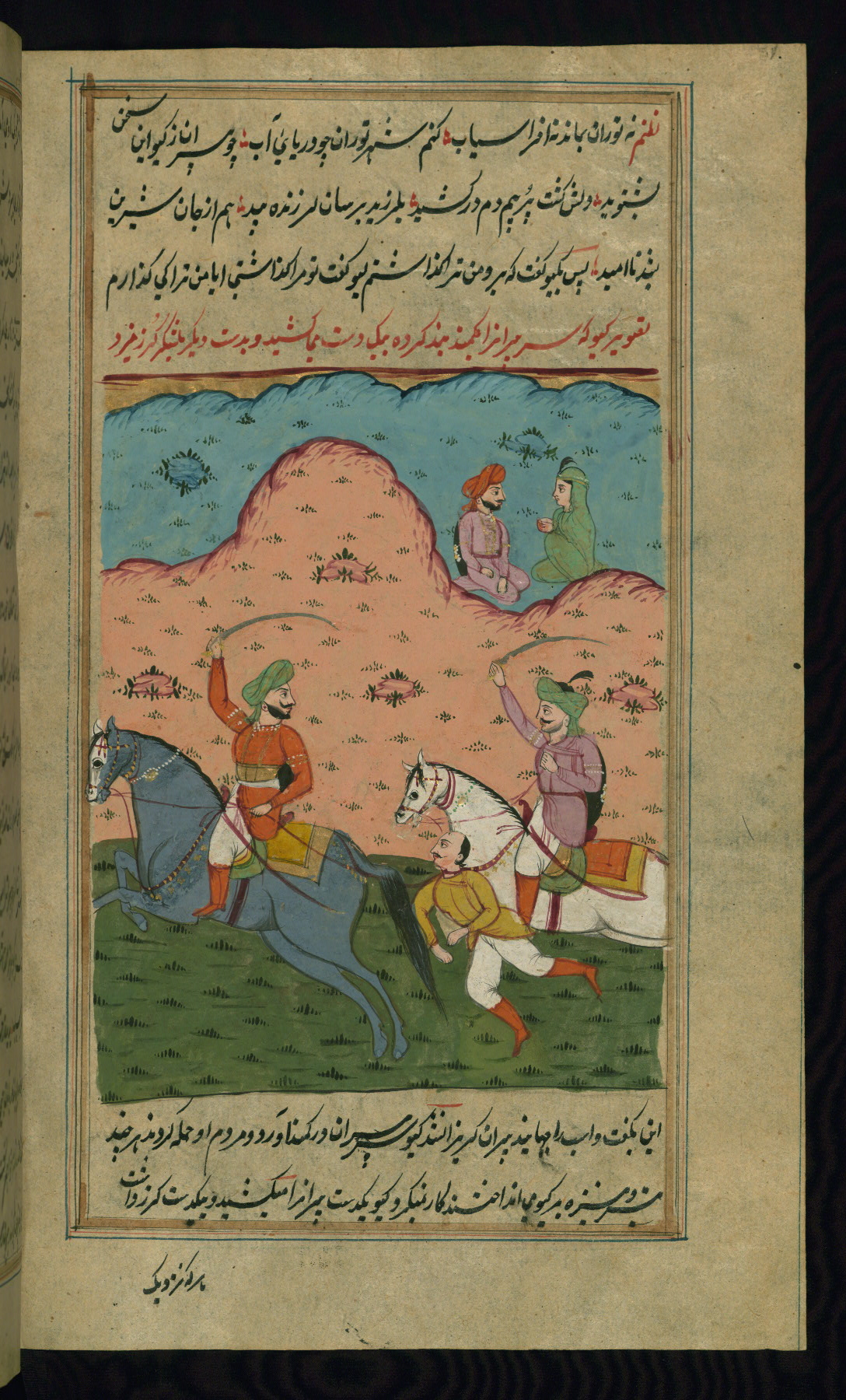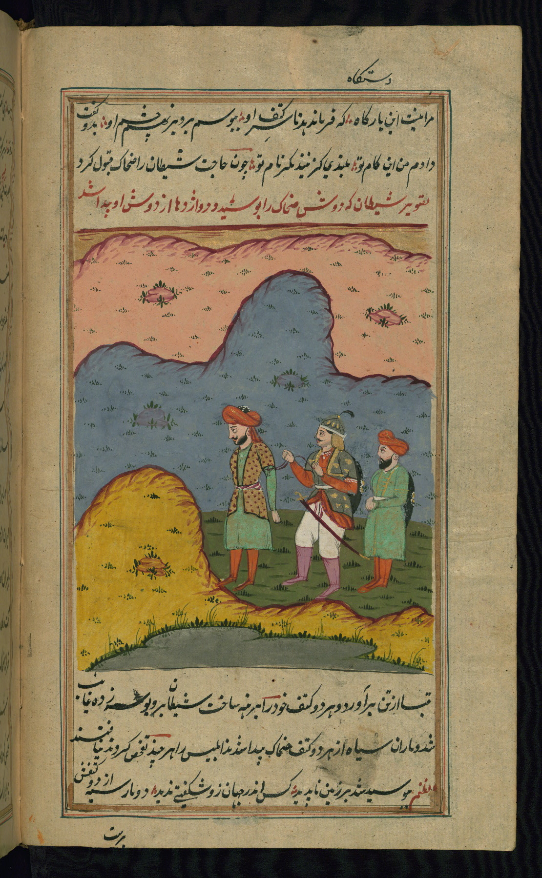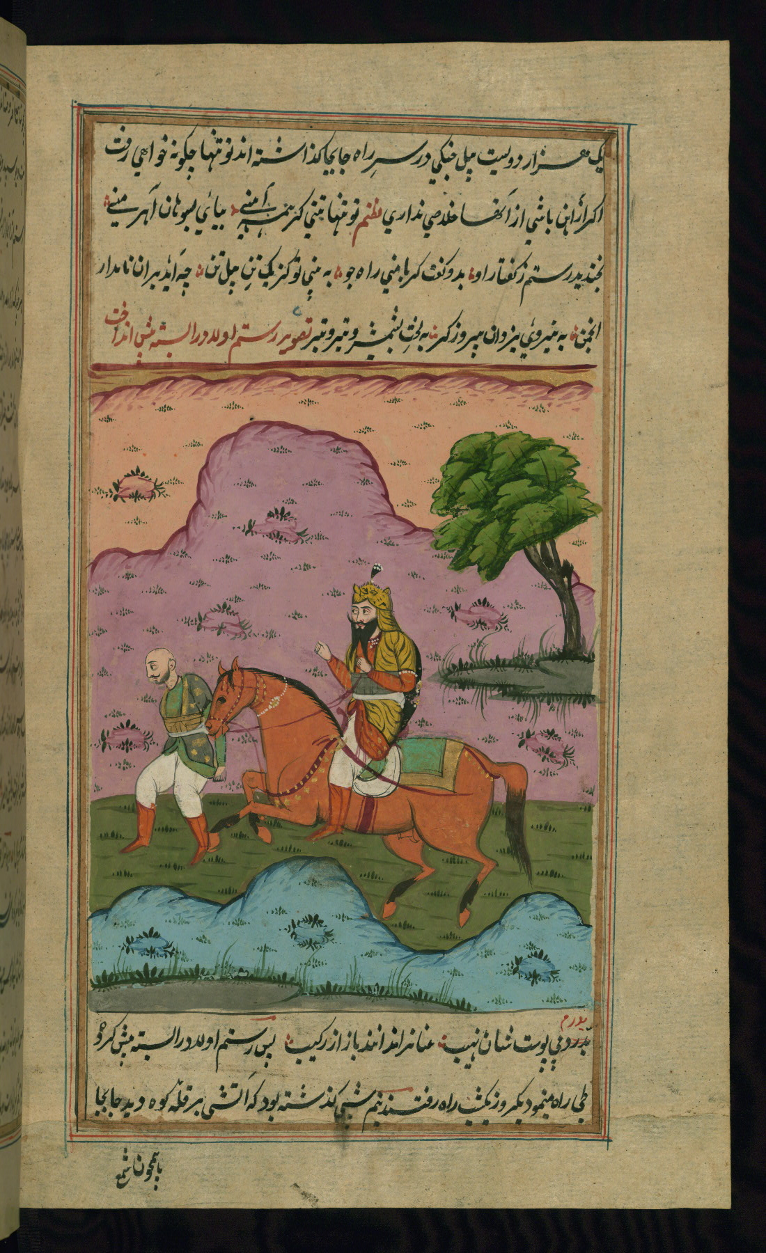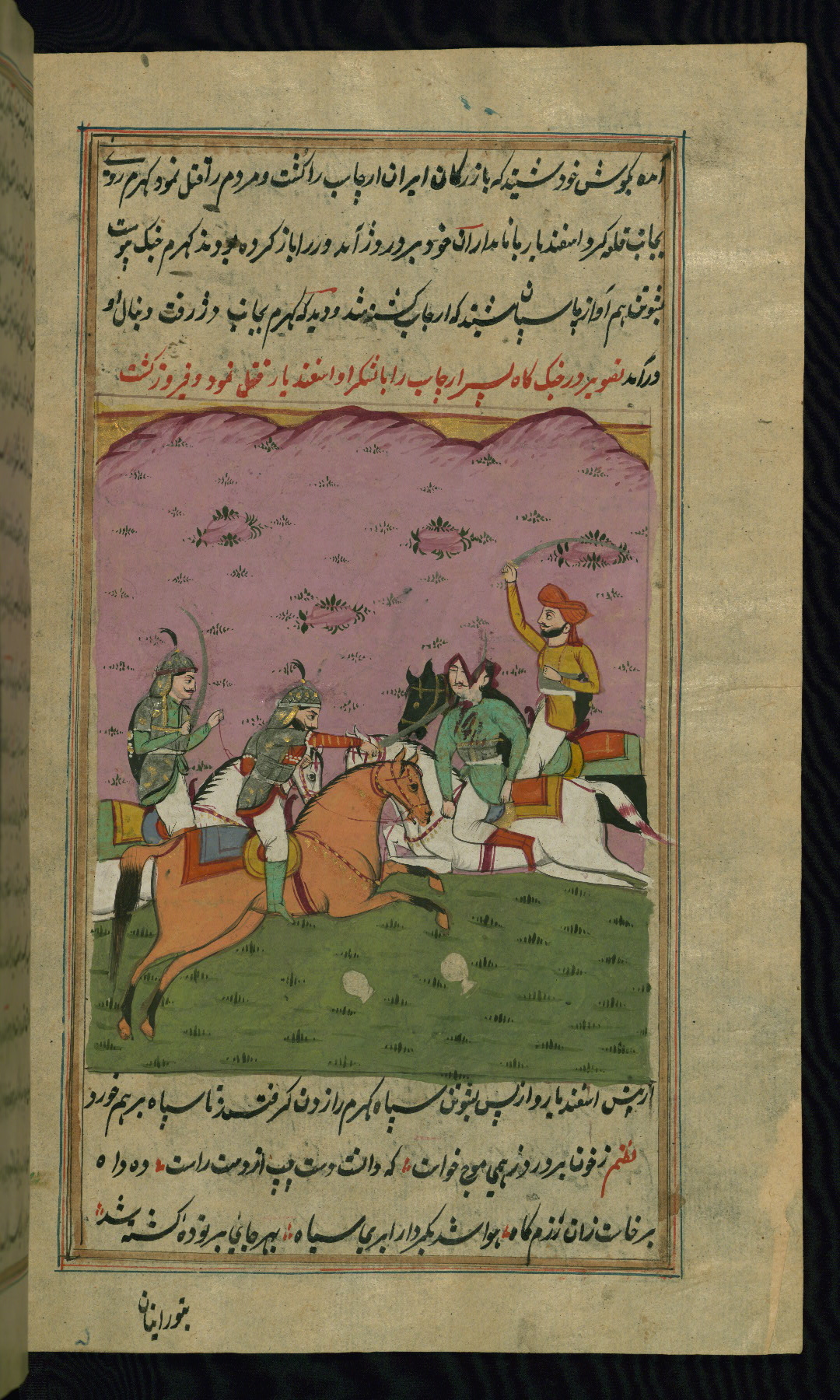 - Hand note: Written in nastaʿlīq script in black and red ink